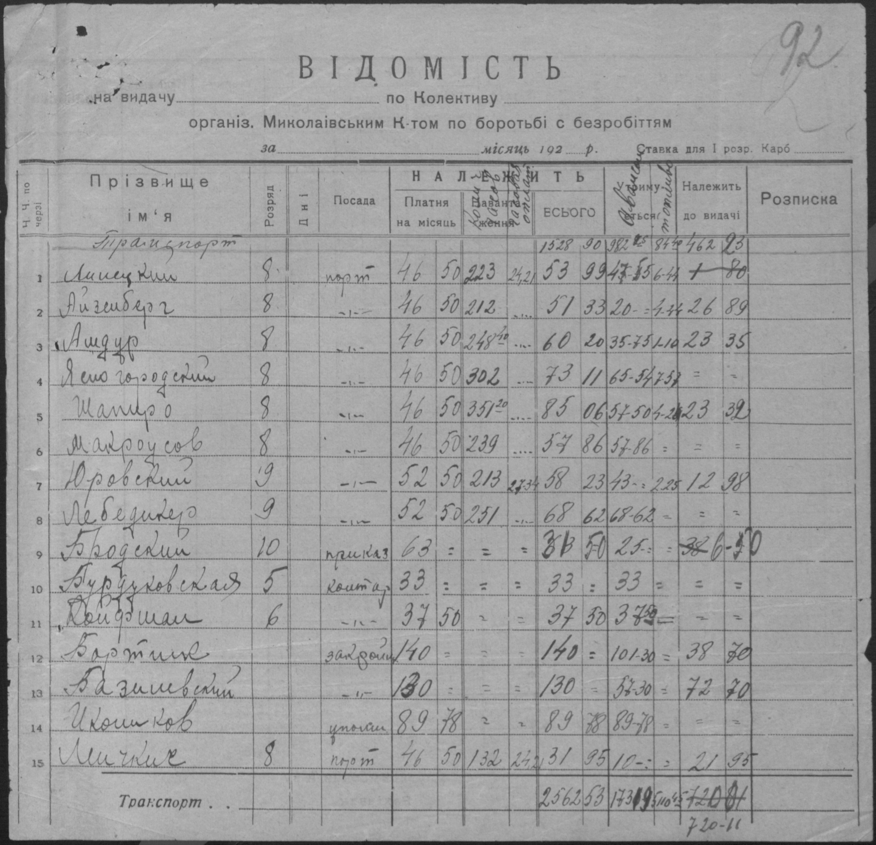 ◦ ◦ Фонд № Р-509 “Колектив безробітних швейників № 1 при Миколаївському окружному комітеті по боротьбі з безробіттям”