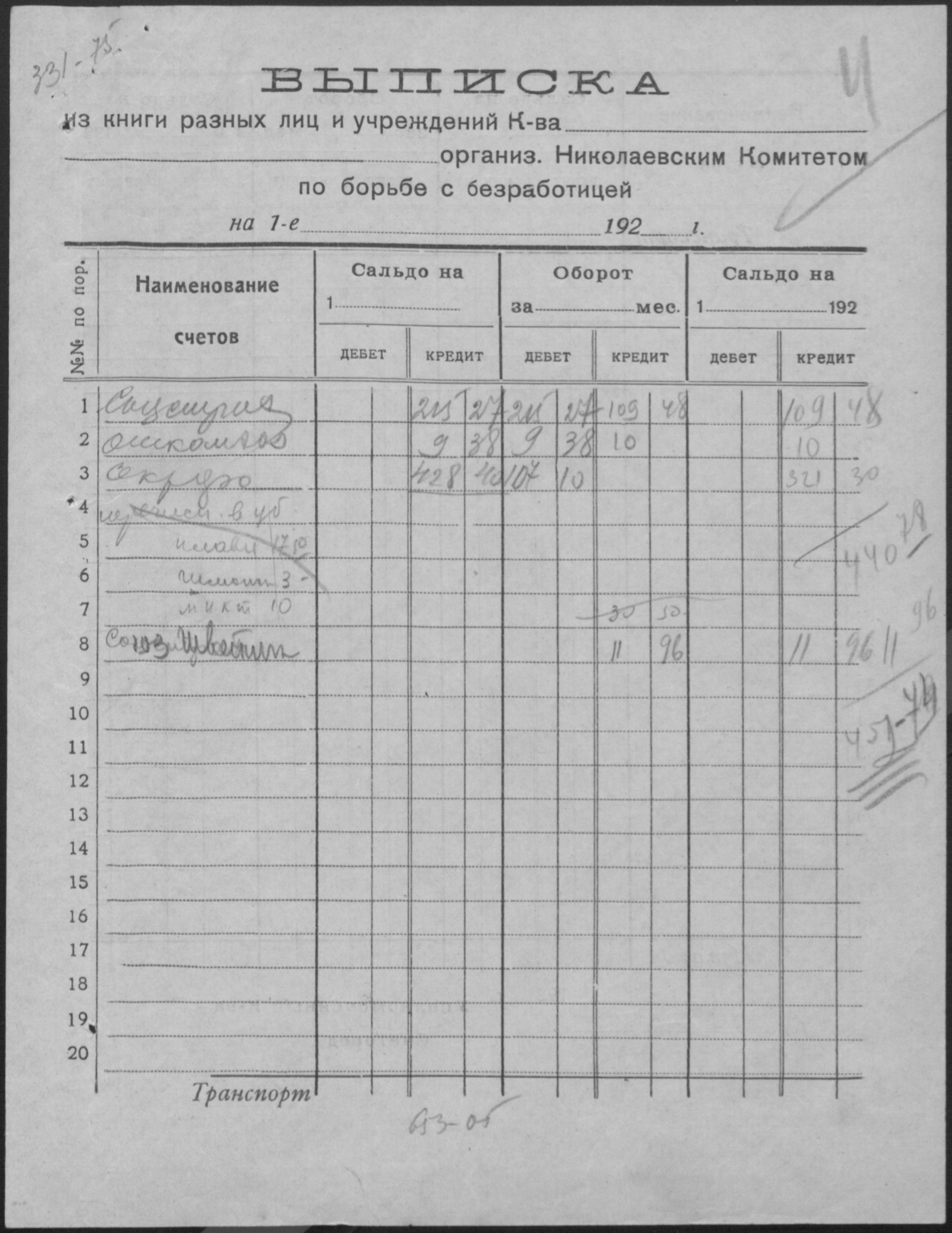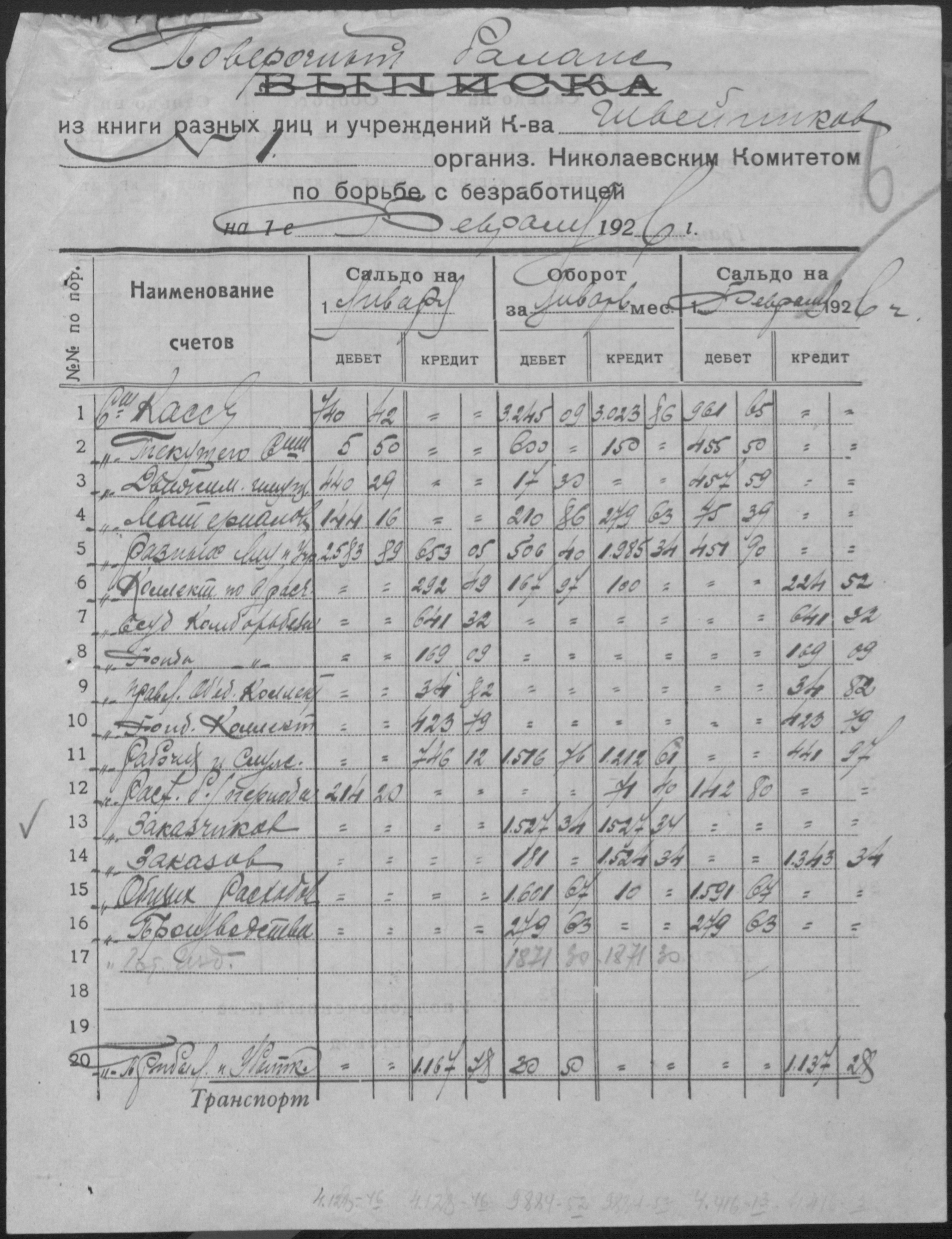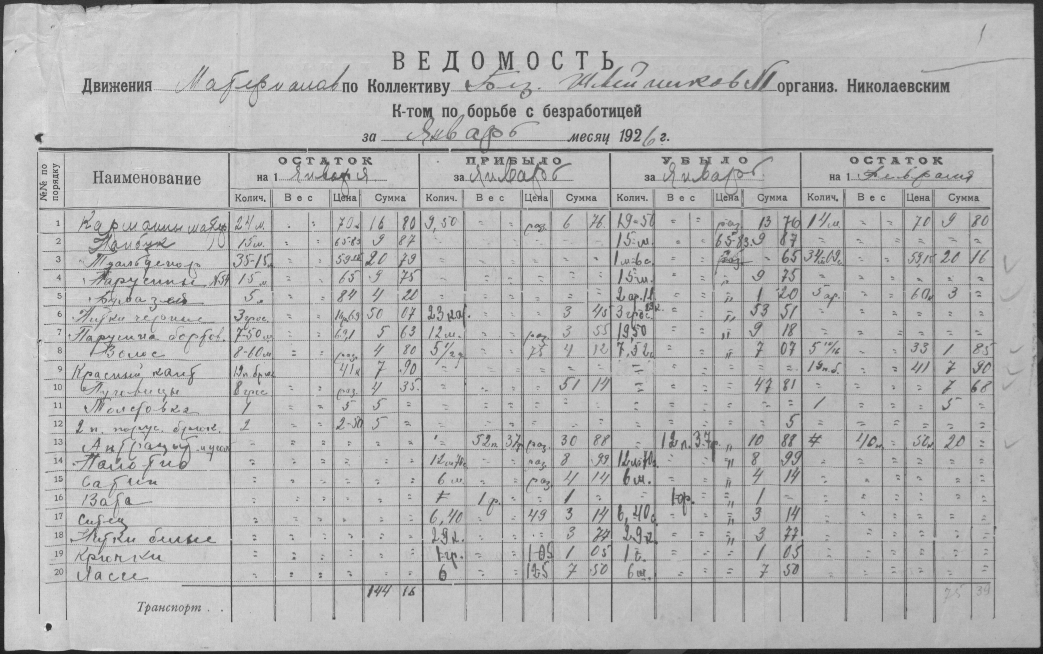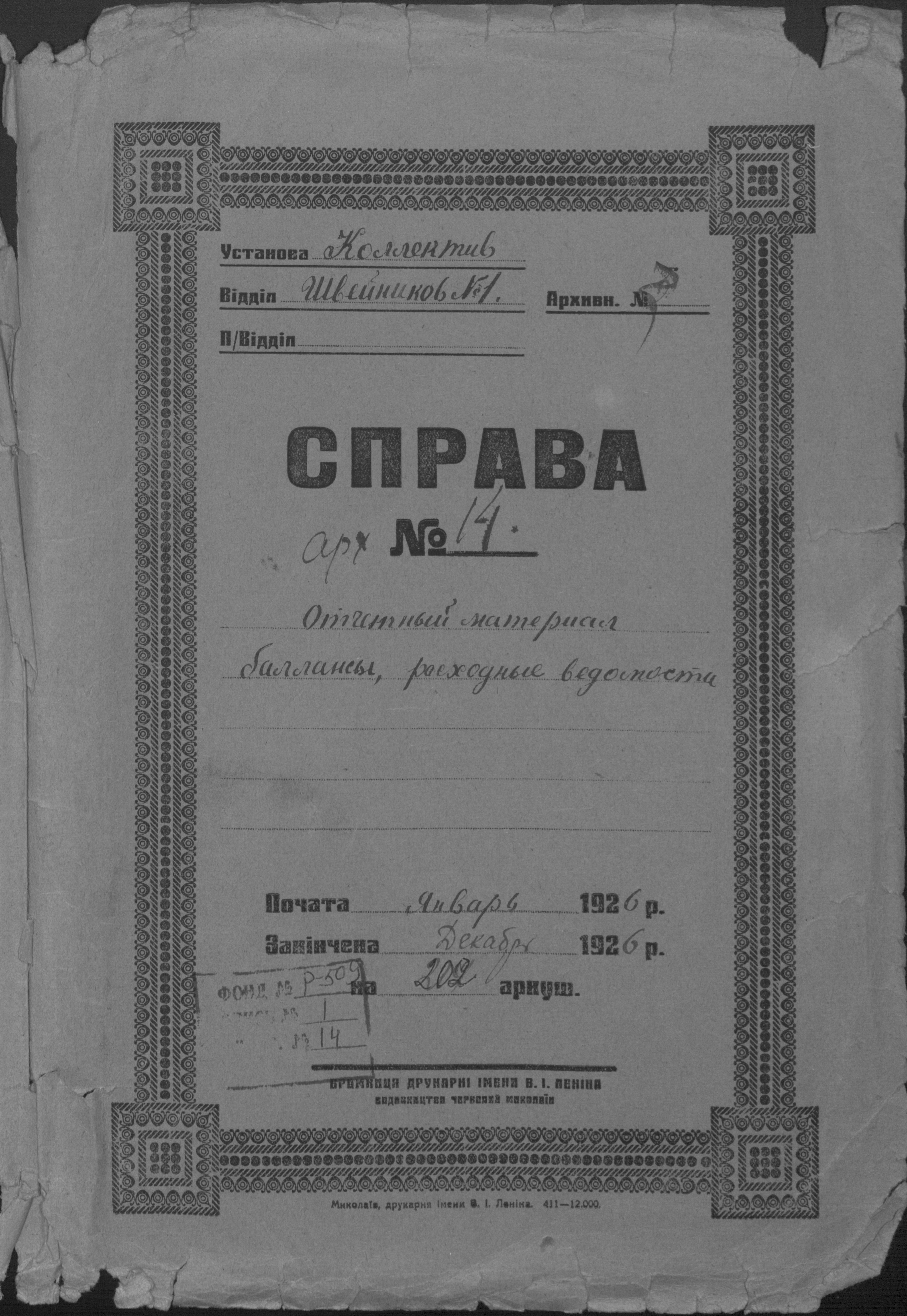 ◦ ◦ Фонд № Р-509 “Колектив безробітних швейників № 1 при Миколаївському окружному комітеті по боротьбі з безробіттям”