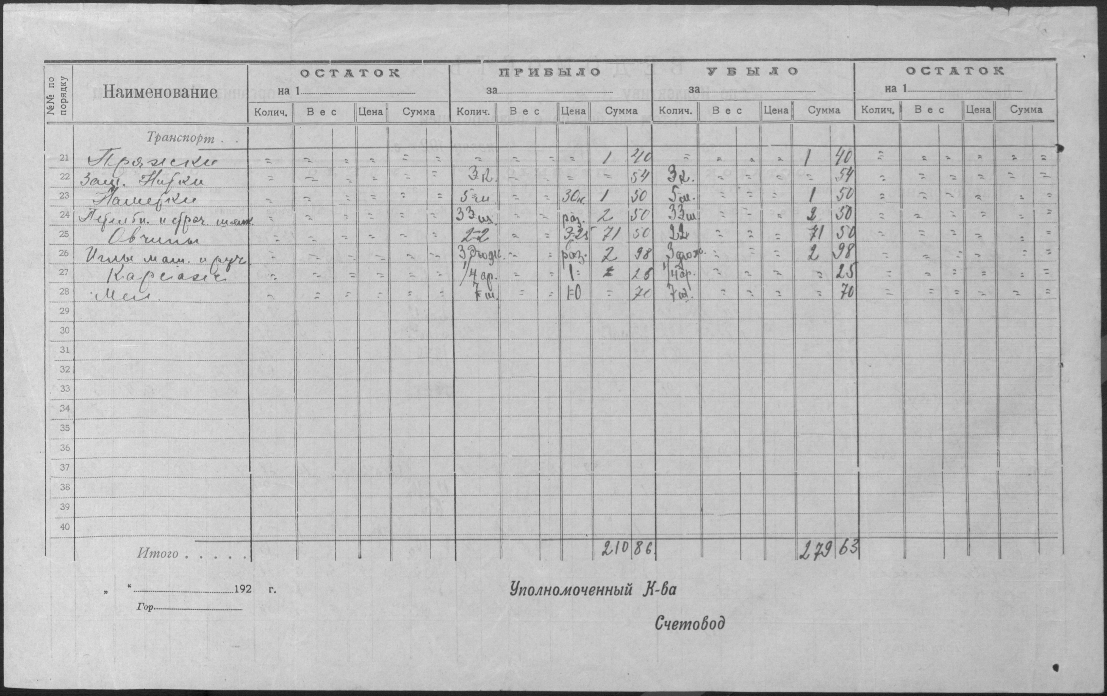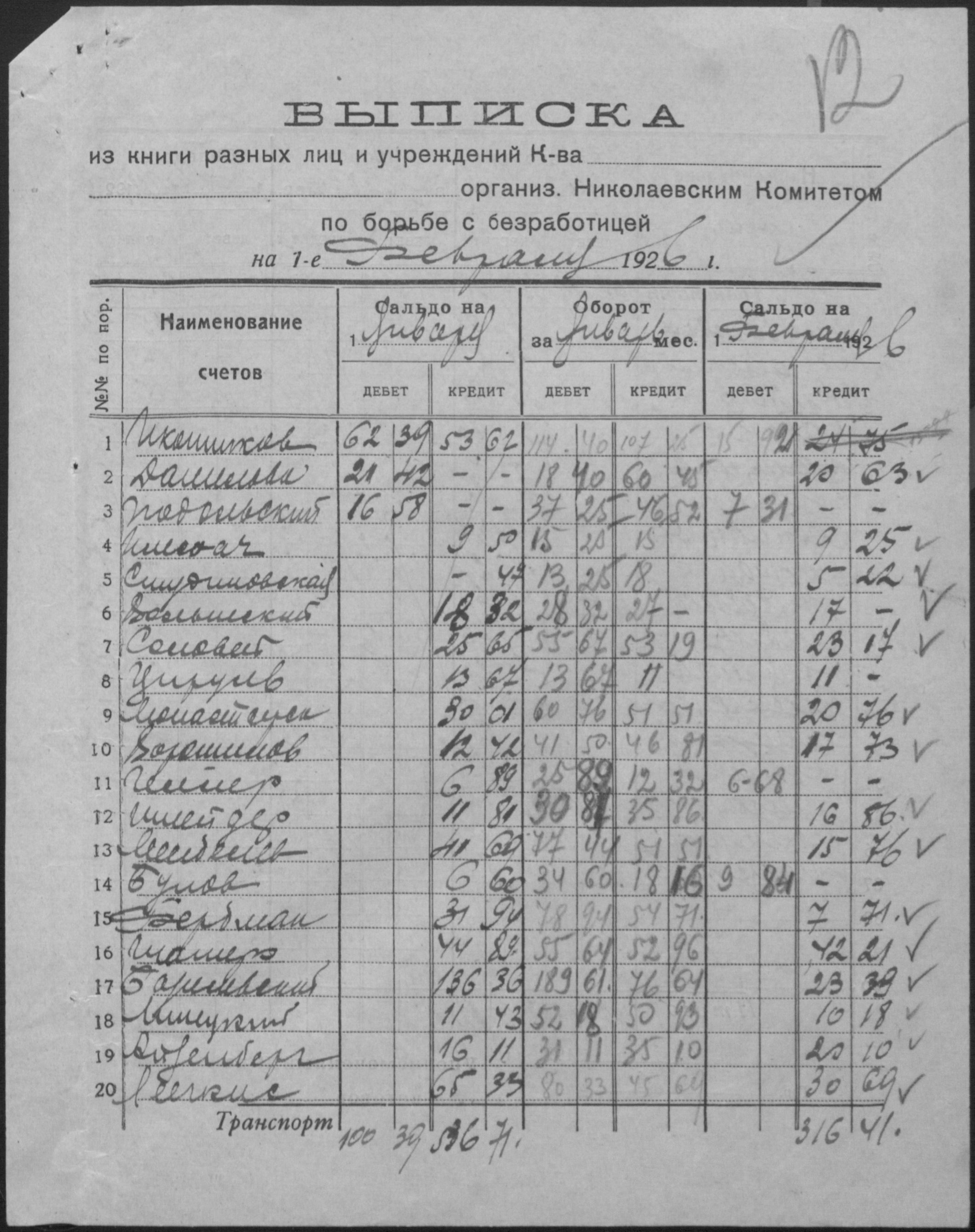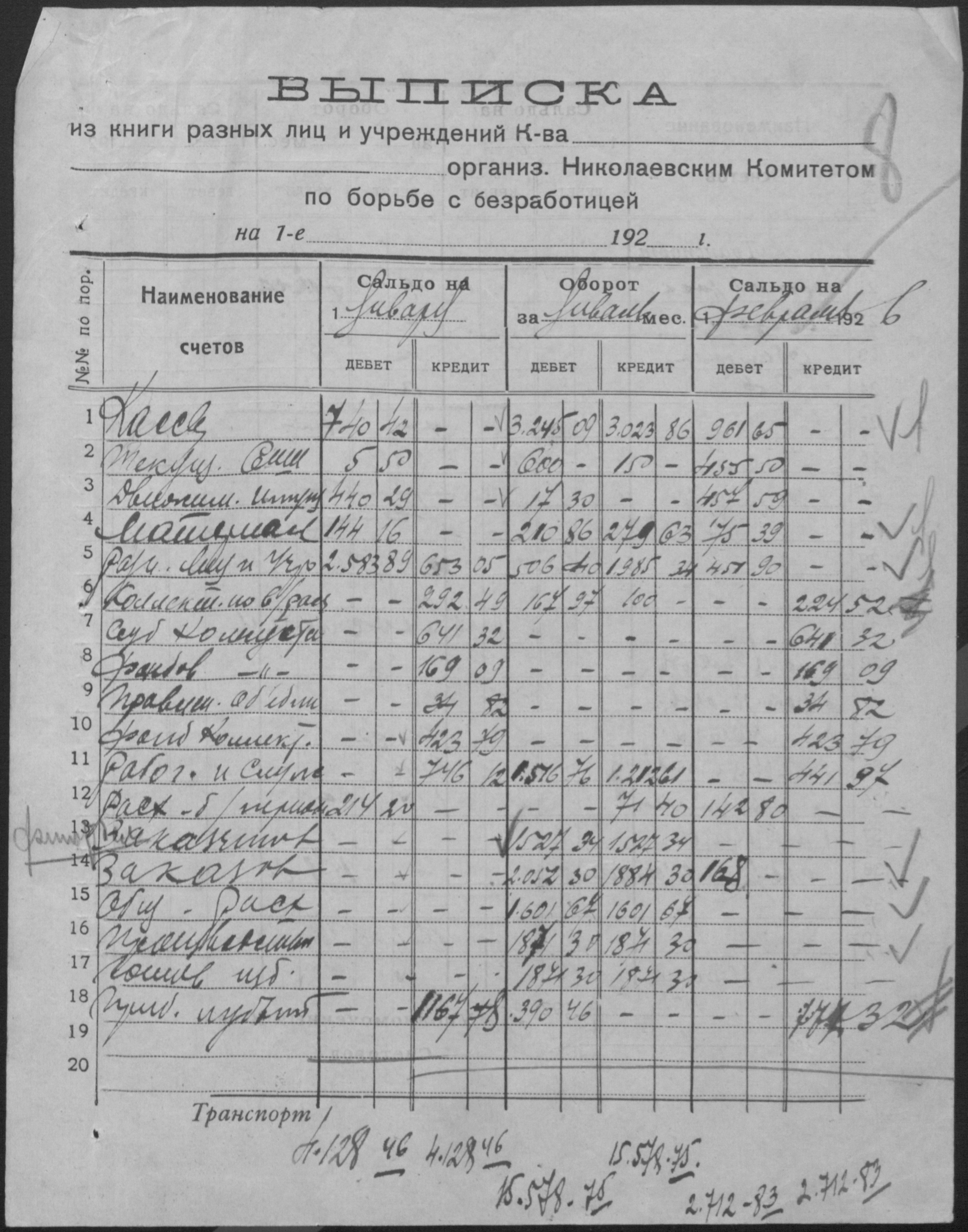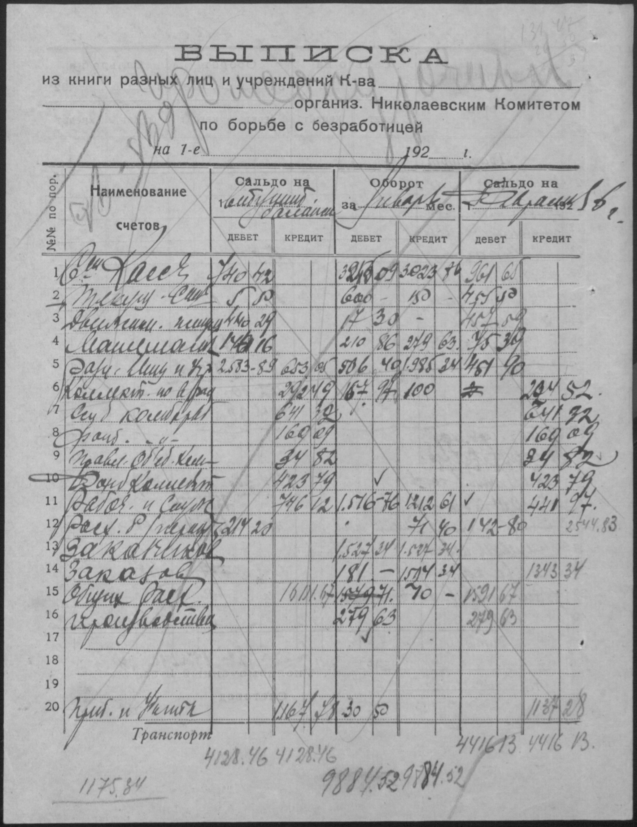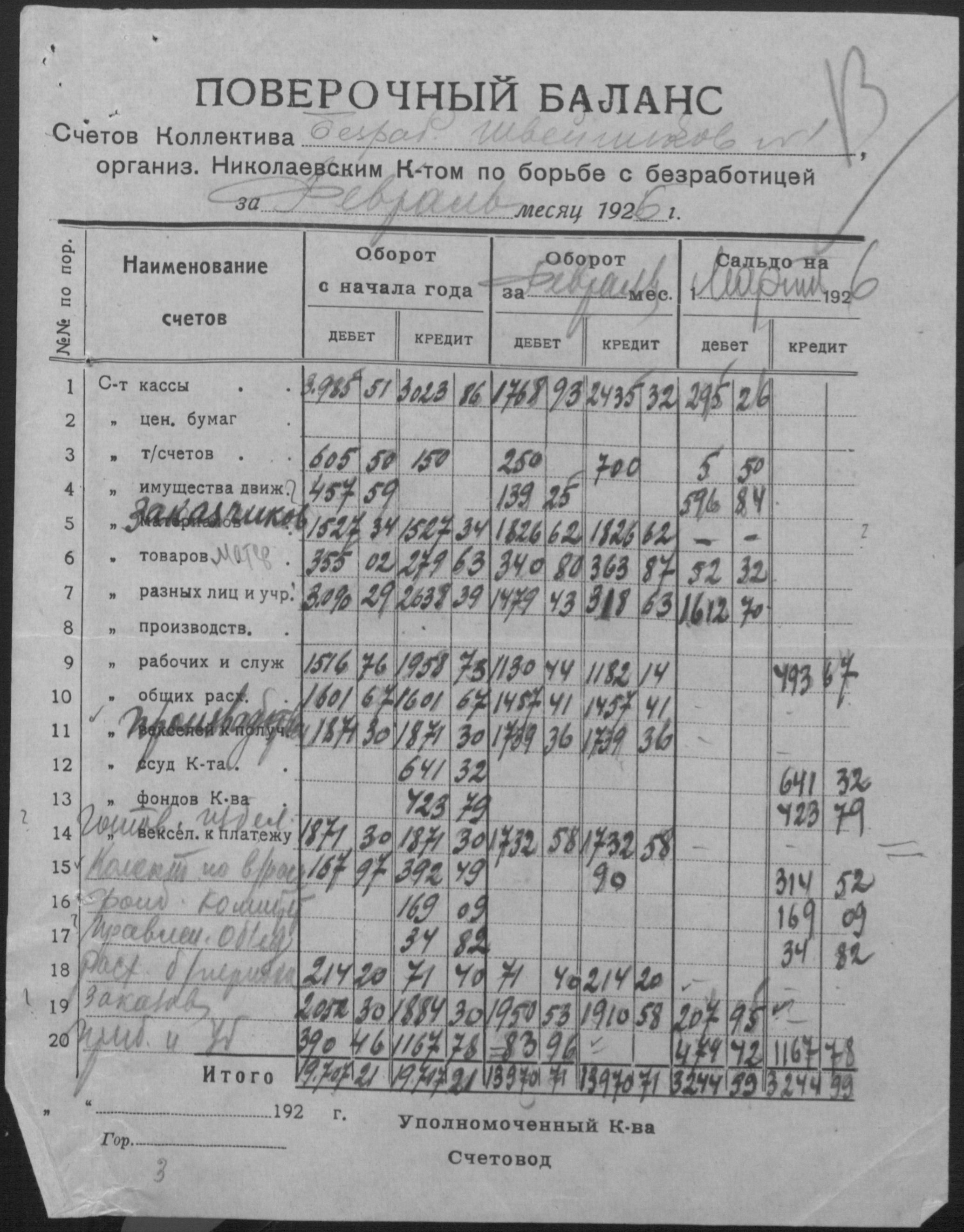 • • • • Справа № 14 “Баланси, витратні відомості, відомості про рух матеріалів, матеріальні звіти, виписки з книги обліку розрахунків з фізичними особами і установами, описи товарів, матеріалів, інвентаря”
