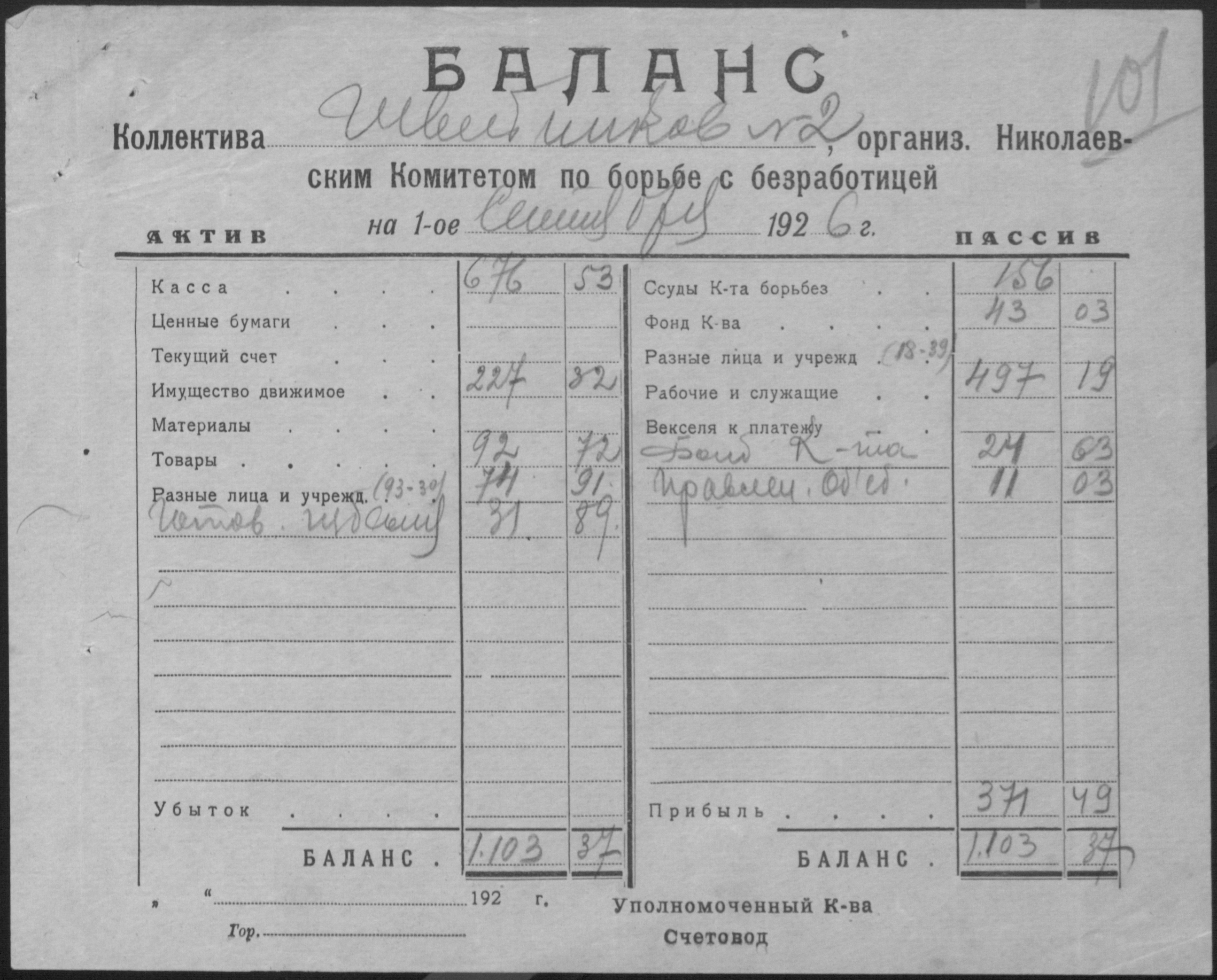 ◦ ◦ Фонд № Р-509 “Колектив безробітних швейників № 1 при Миколаївському окружному комітеті по боротьбі з безробіттям”