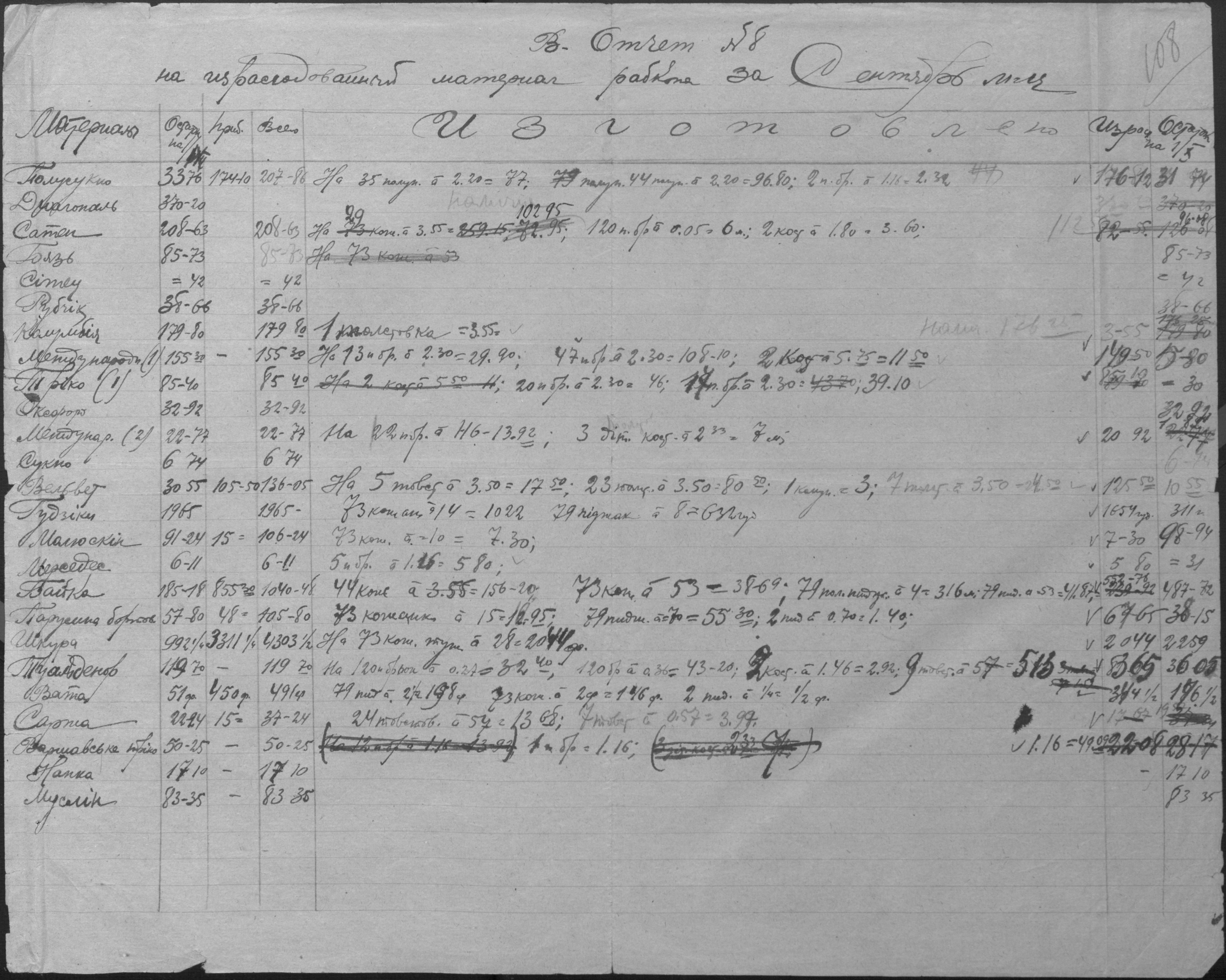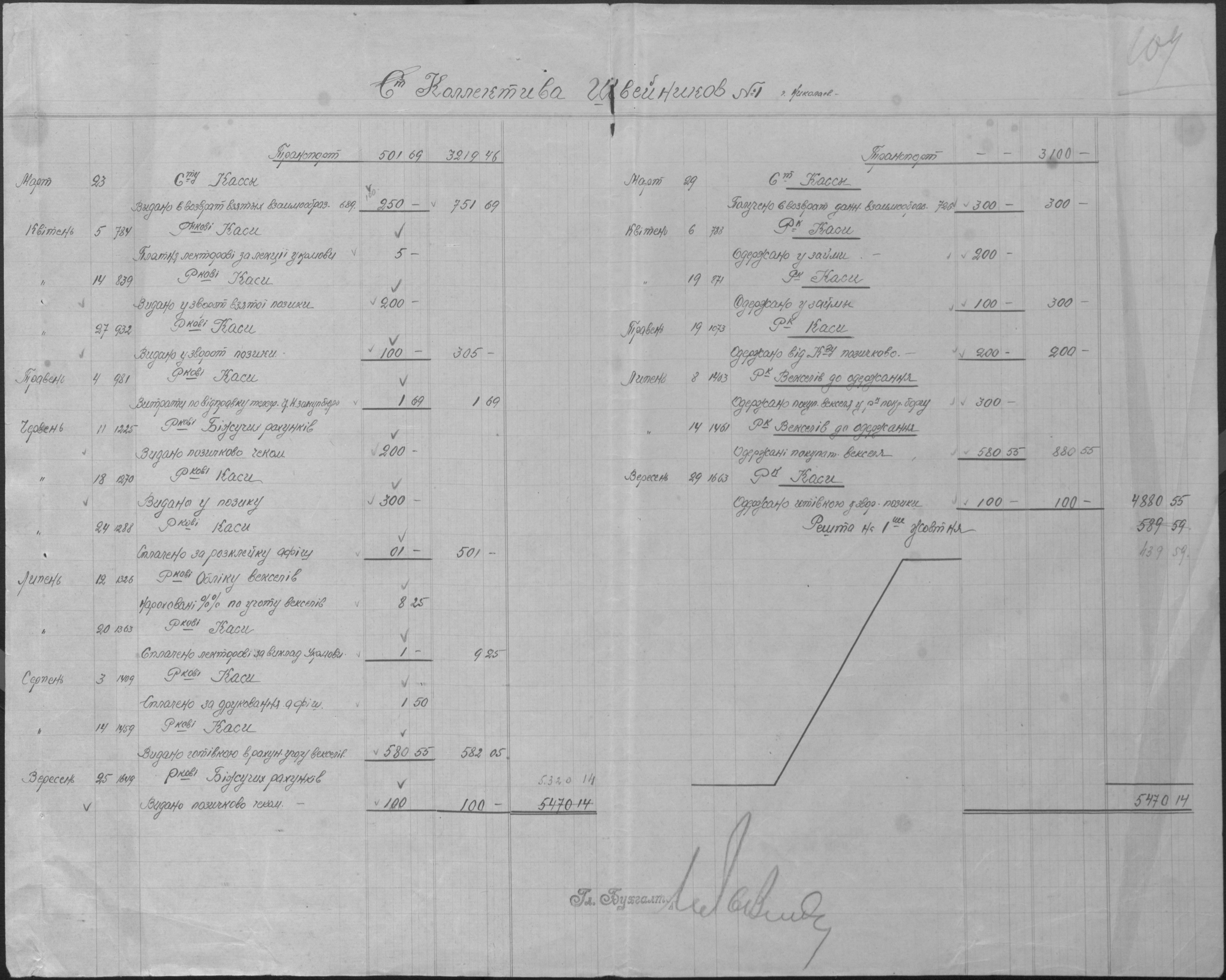 • • • • Справа № 14 “Баланси, витратні відомості, відомості про рух матеріалів, матеріальні звіти, виписки з книги обліку розрахунків з фізичними особами і установами, описи товарів, матеріалів, інвентаря”