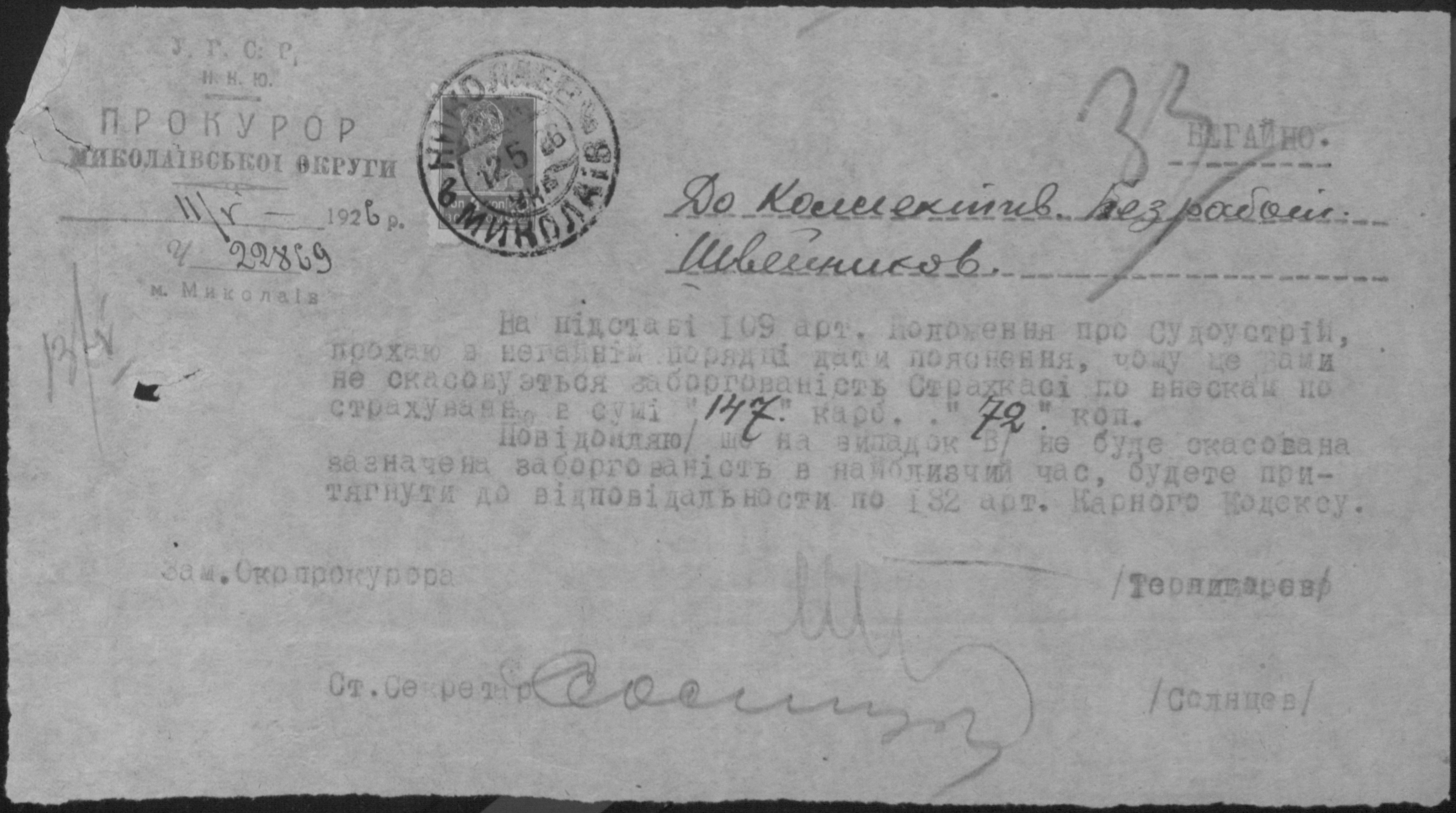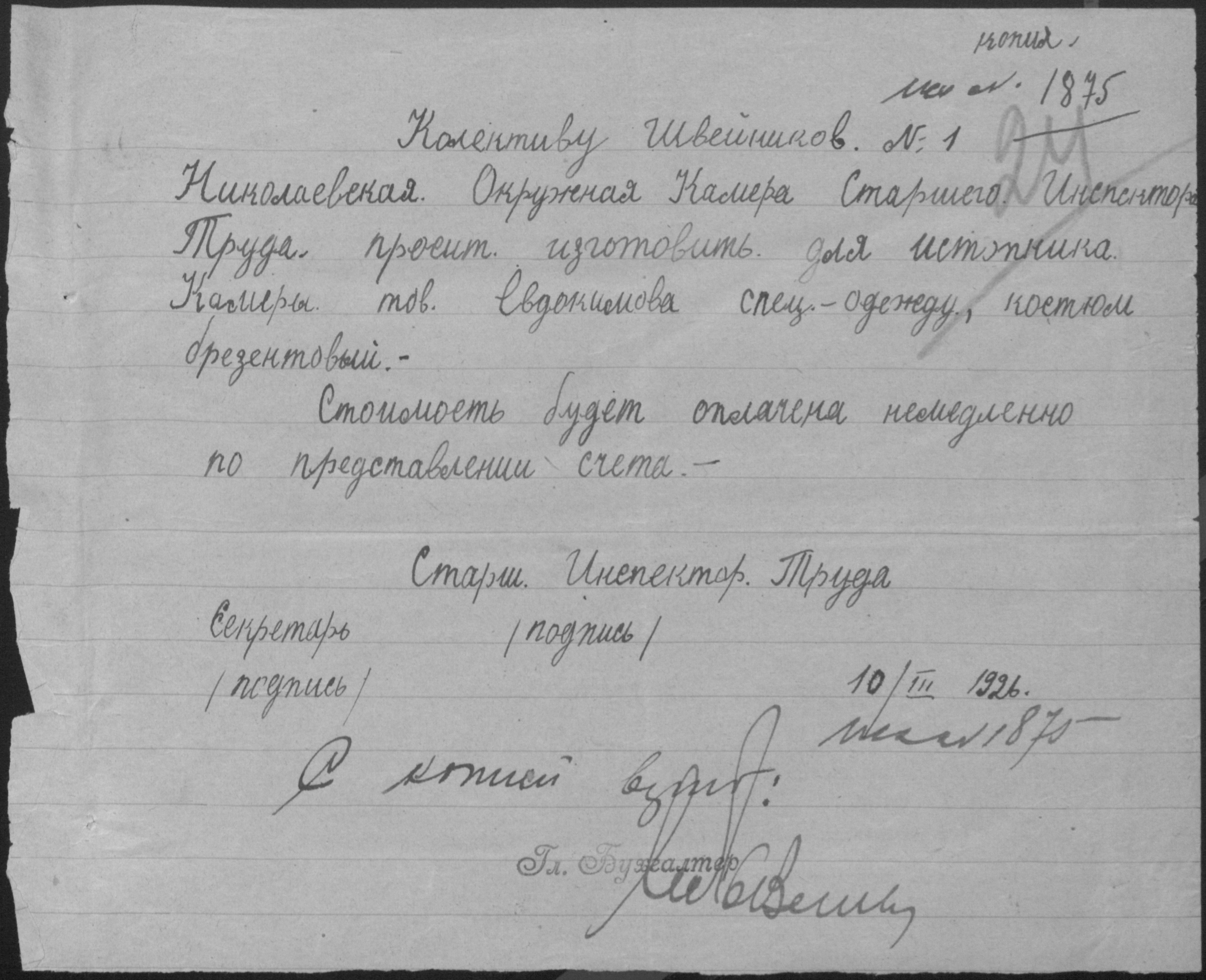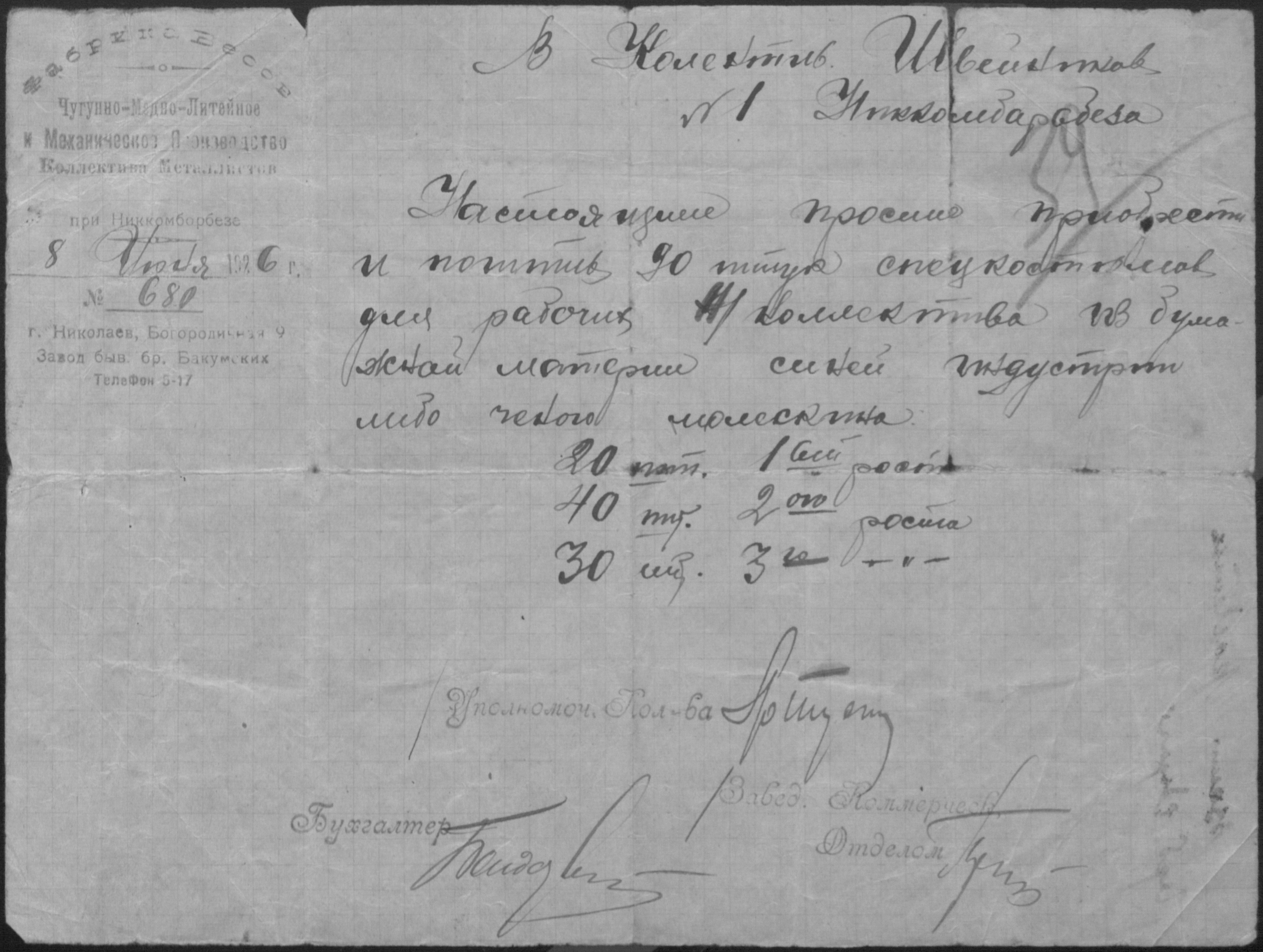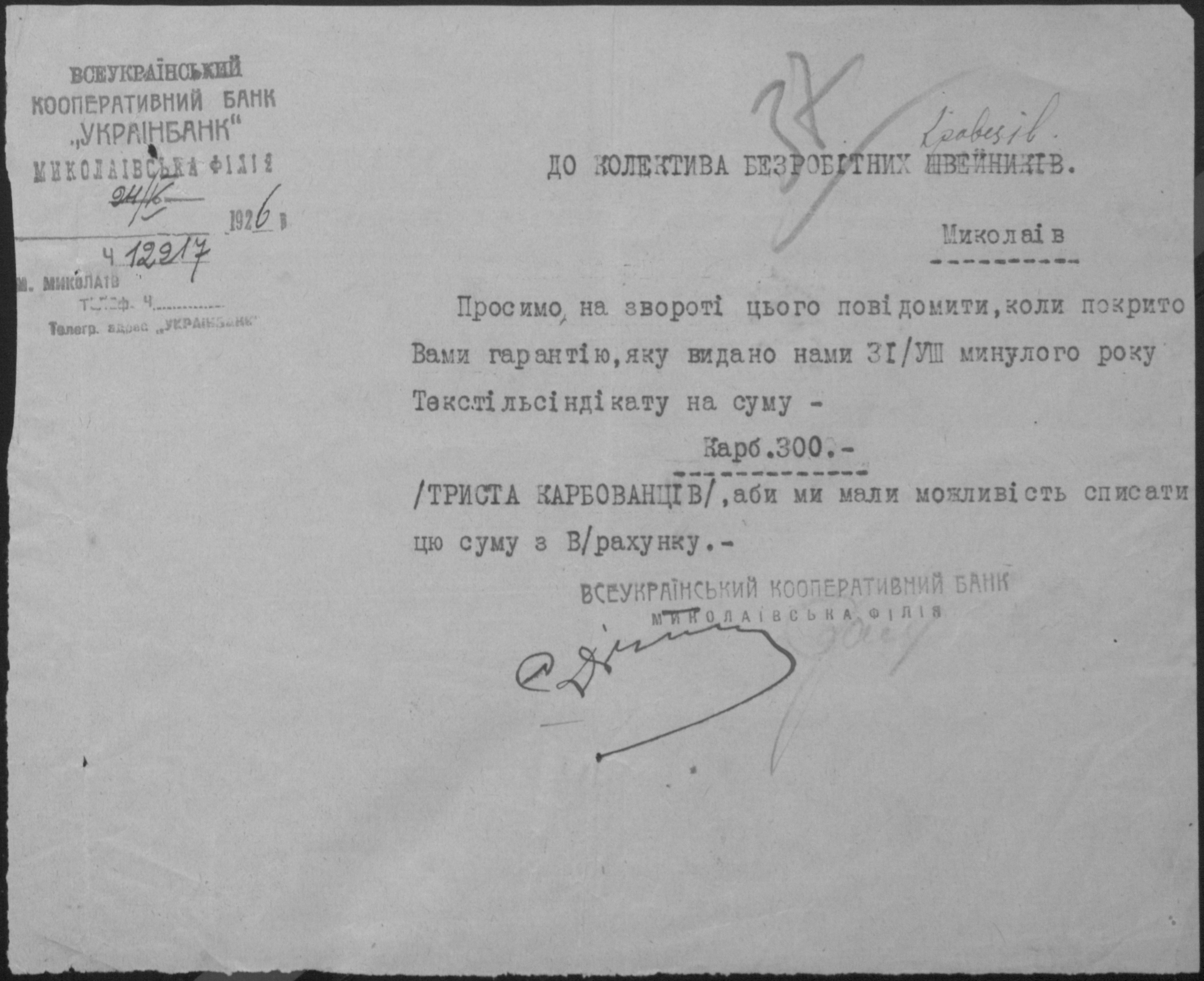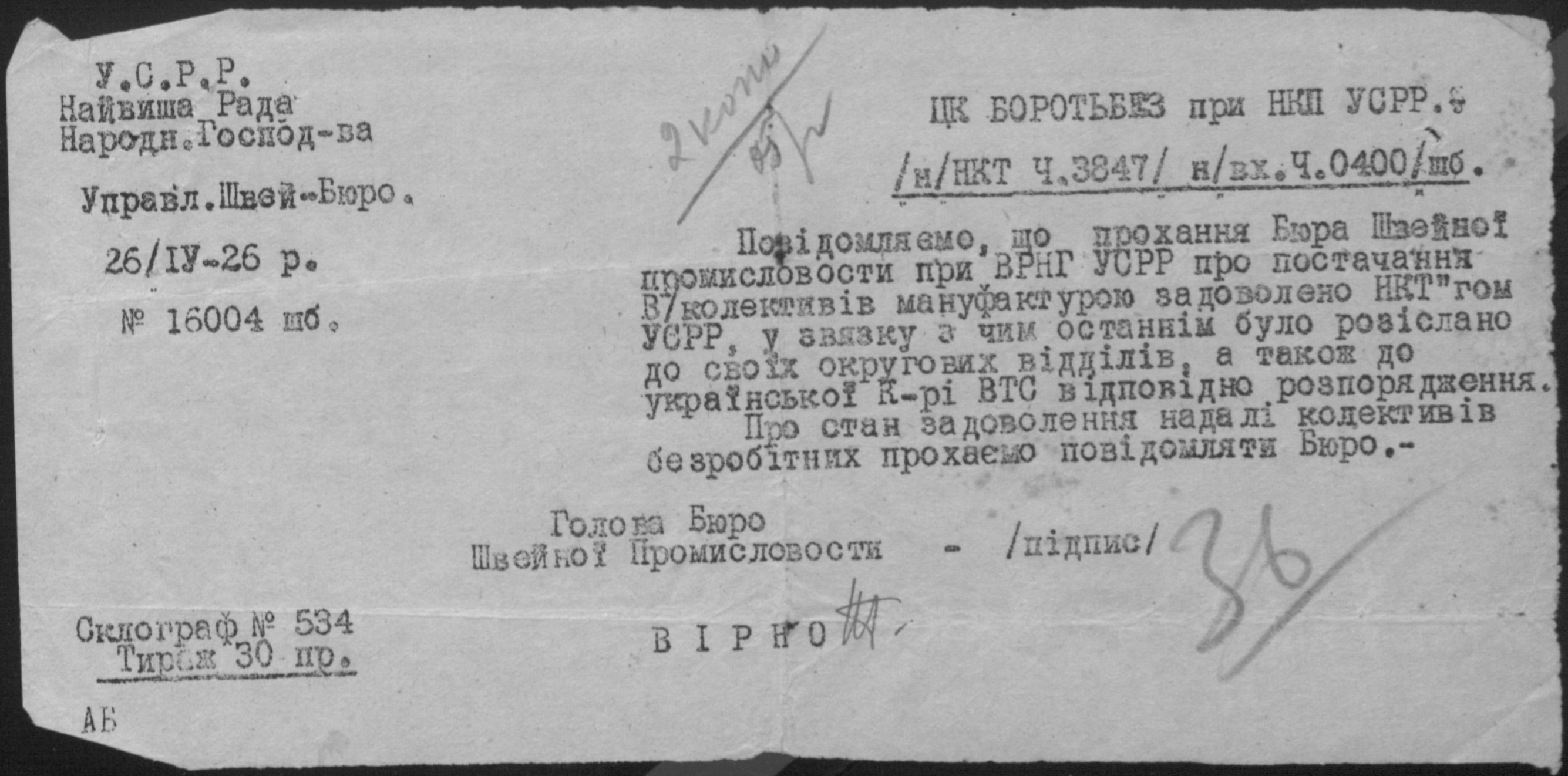 ◦ ◦ Фонд № Р-509 “Колектив безробітних швейників № 1 при Миколаївському окружному комітеті по боротьбі з безробіттям”
