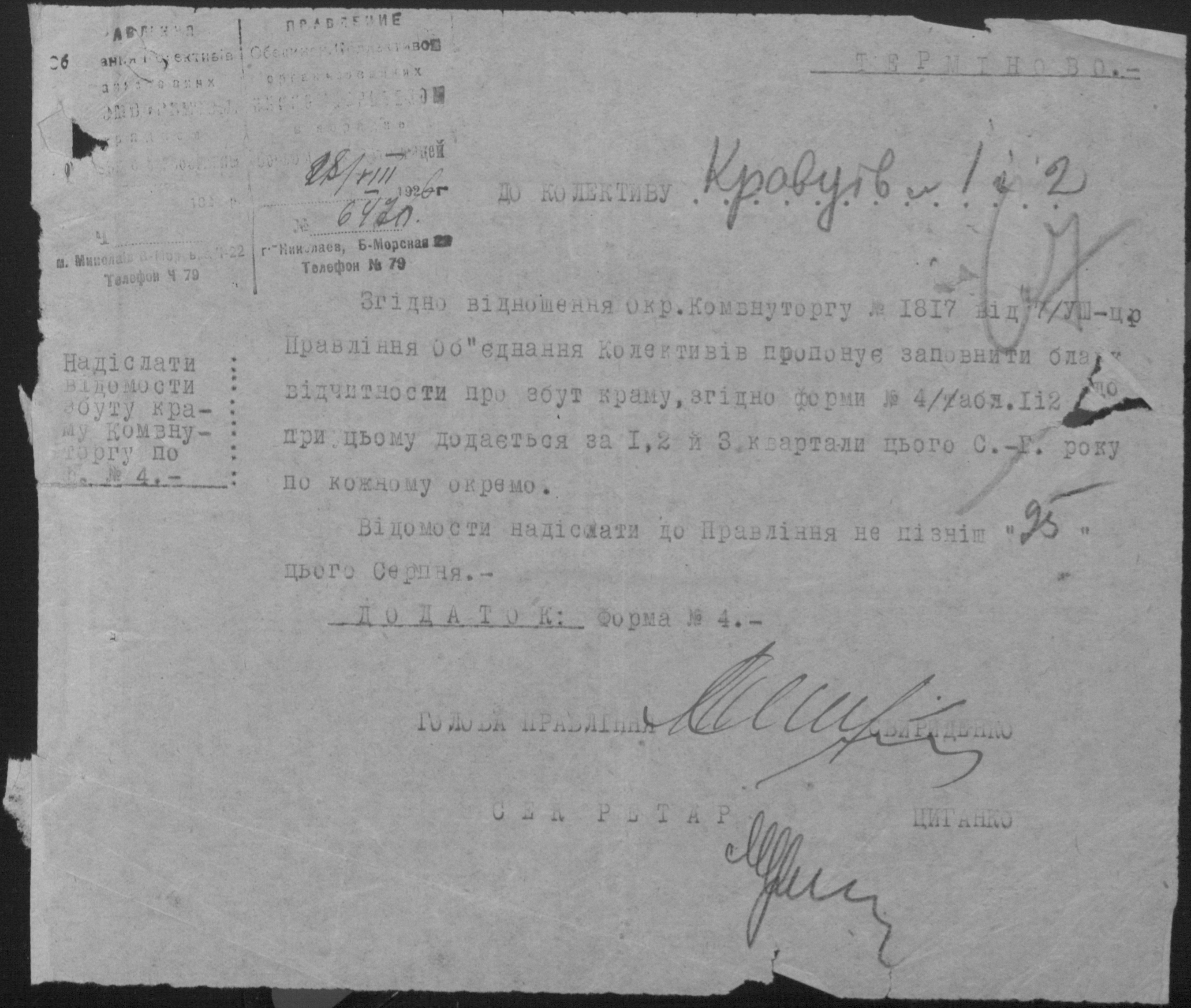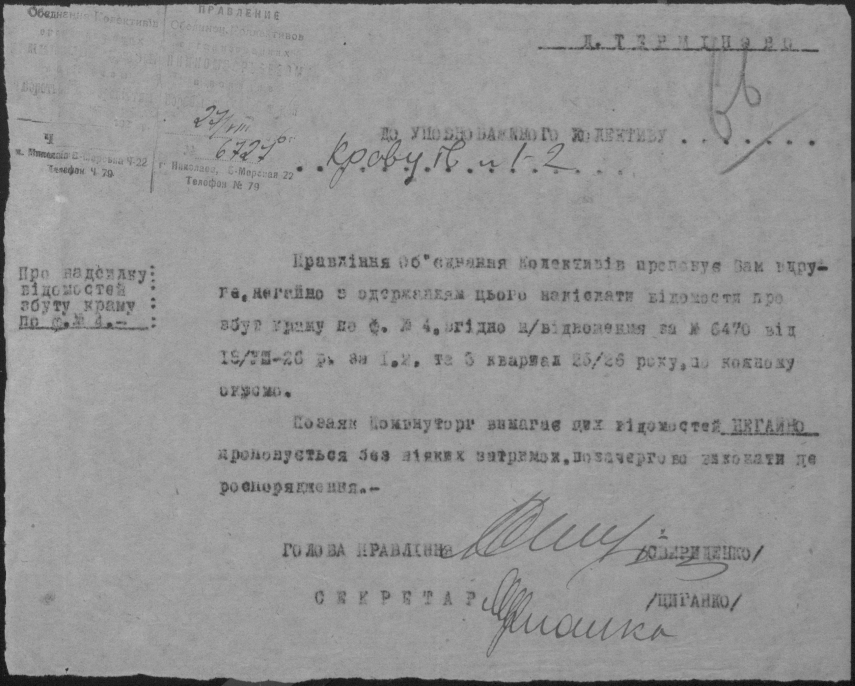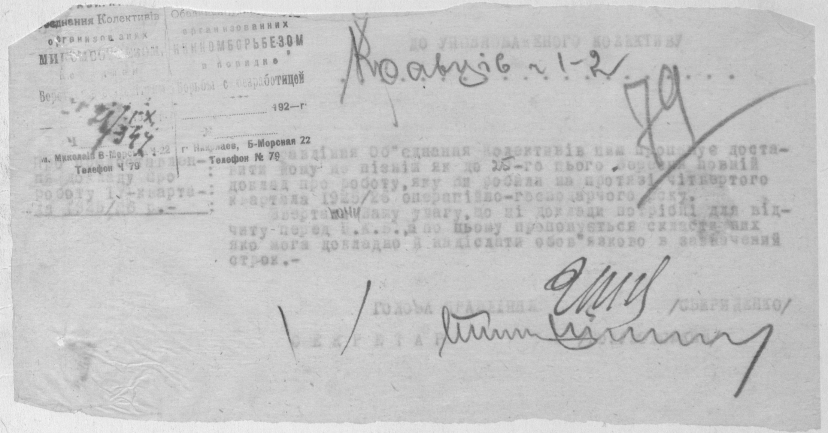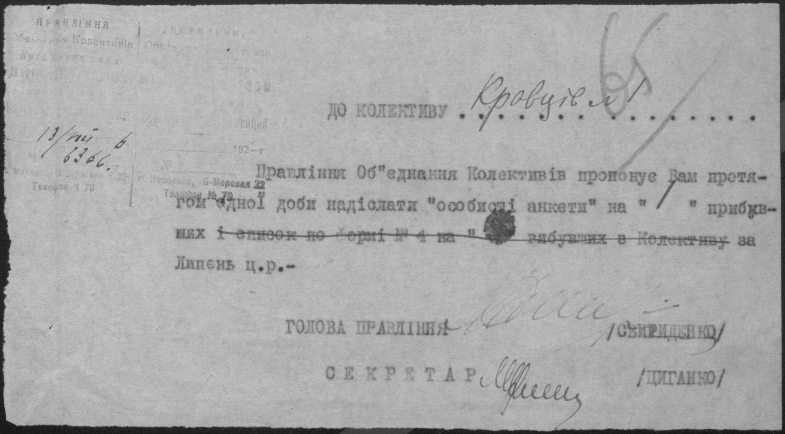 ◦ ◦ Фонд № Р-509 “Колектив безробітних швейників № 1 при Миколаївському окружному комітеті по боротьбі з безробіттям”