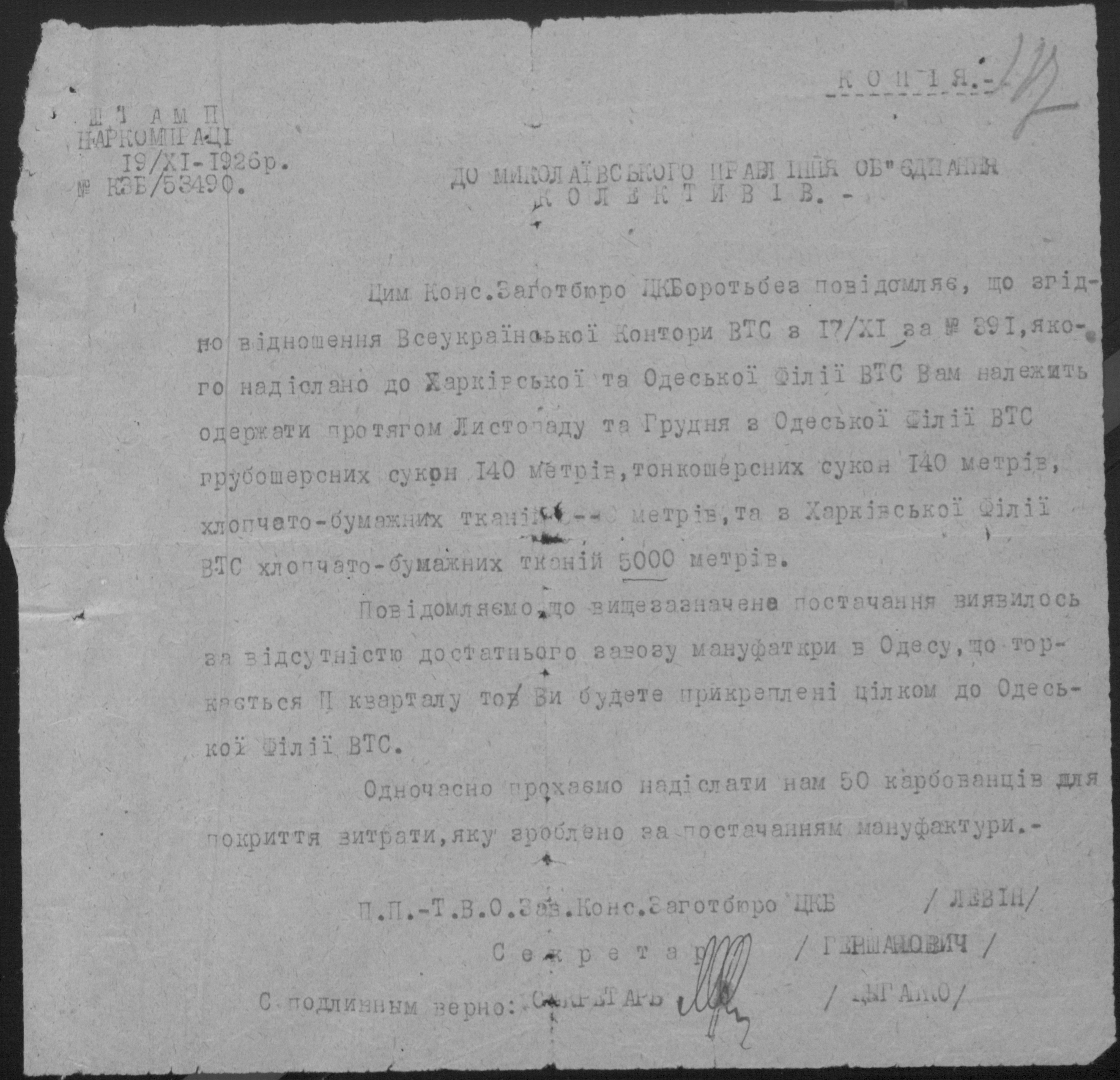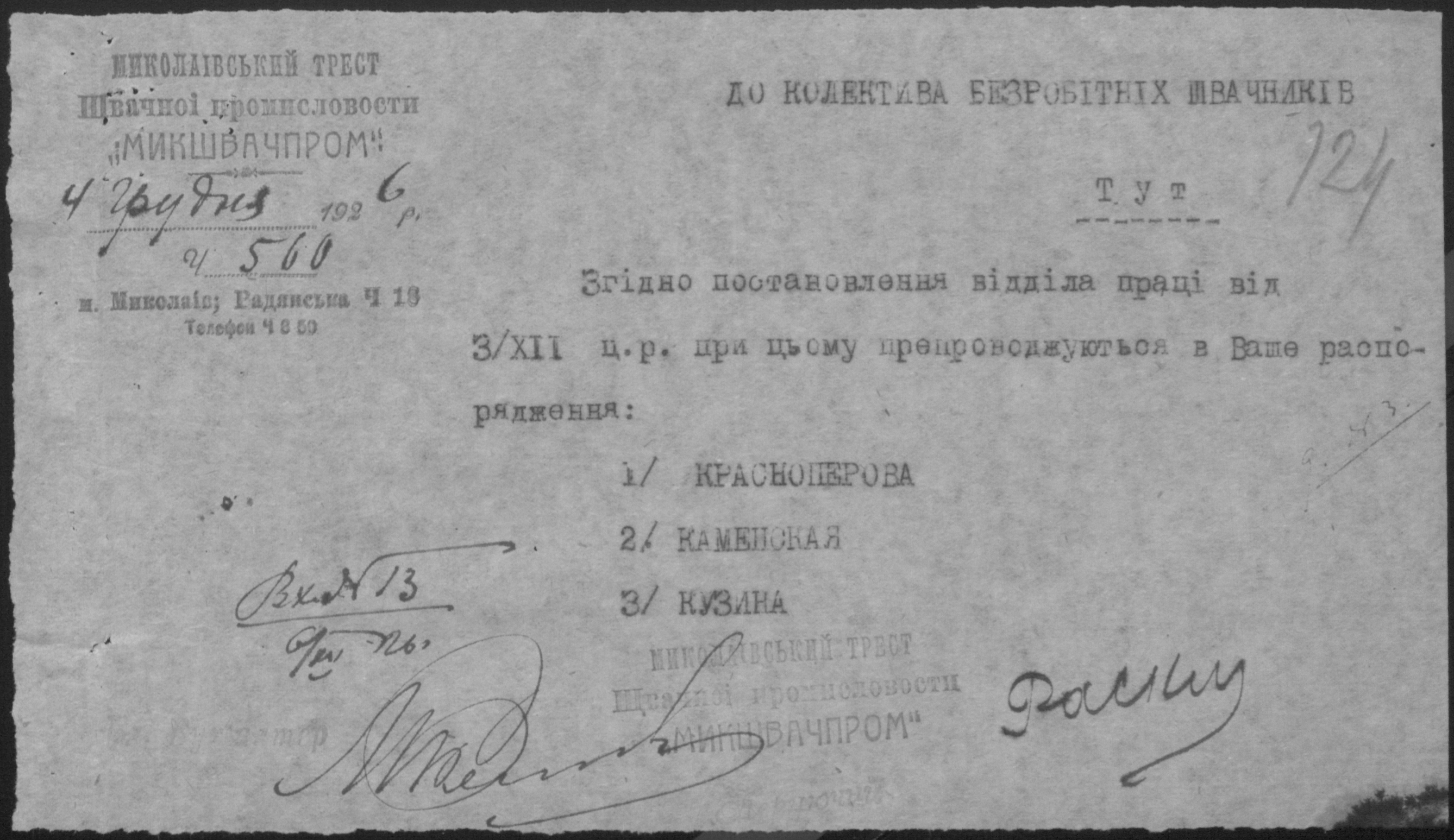 ◦ ◦ Фонд № Р-509 “Колектив безробітних швейників № 1 при Миколаївському окружному комітеті по боротьбі з безробіттям”