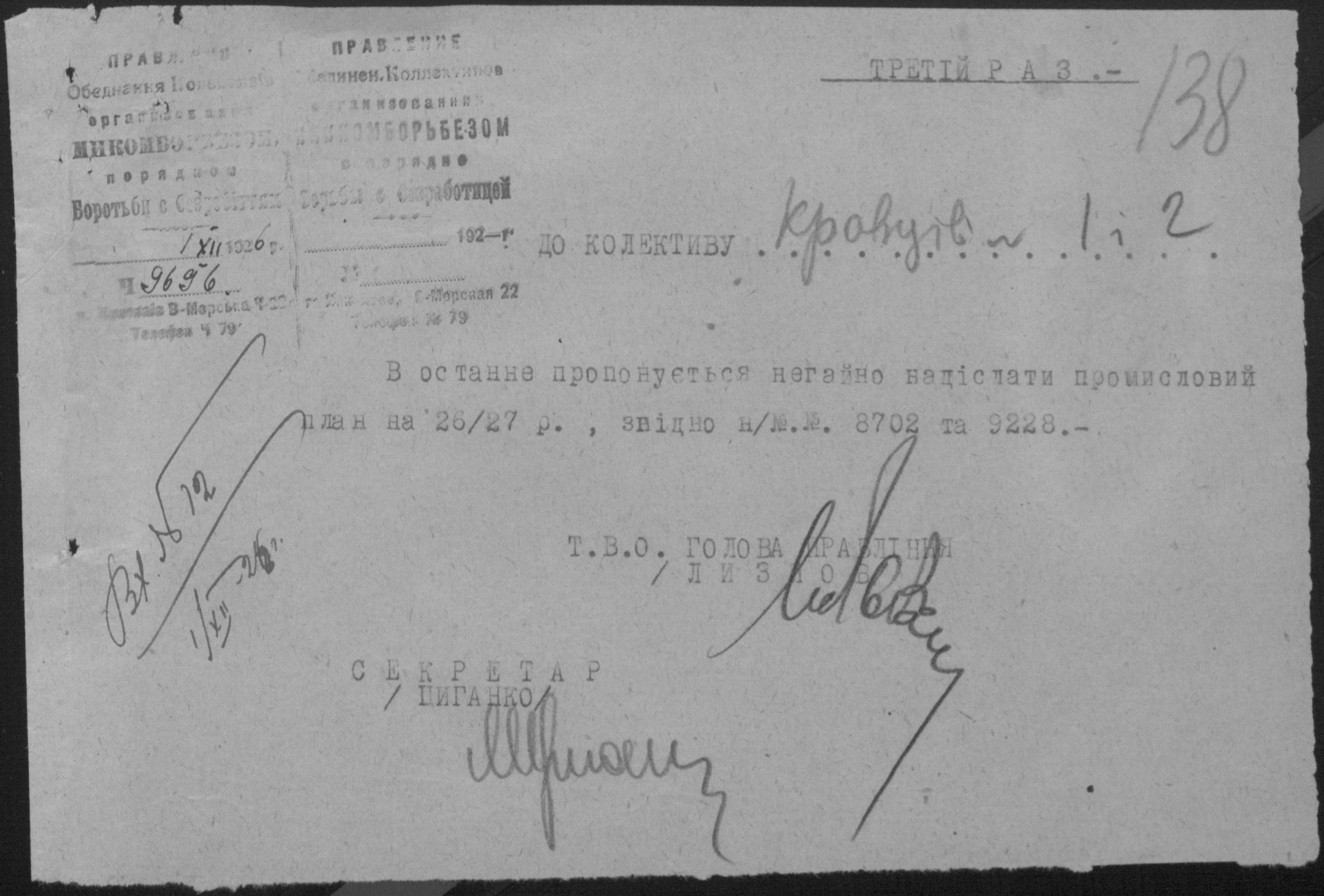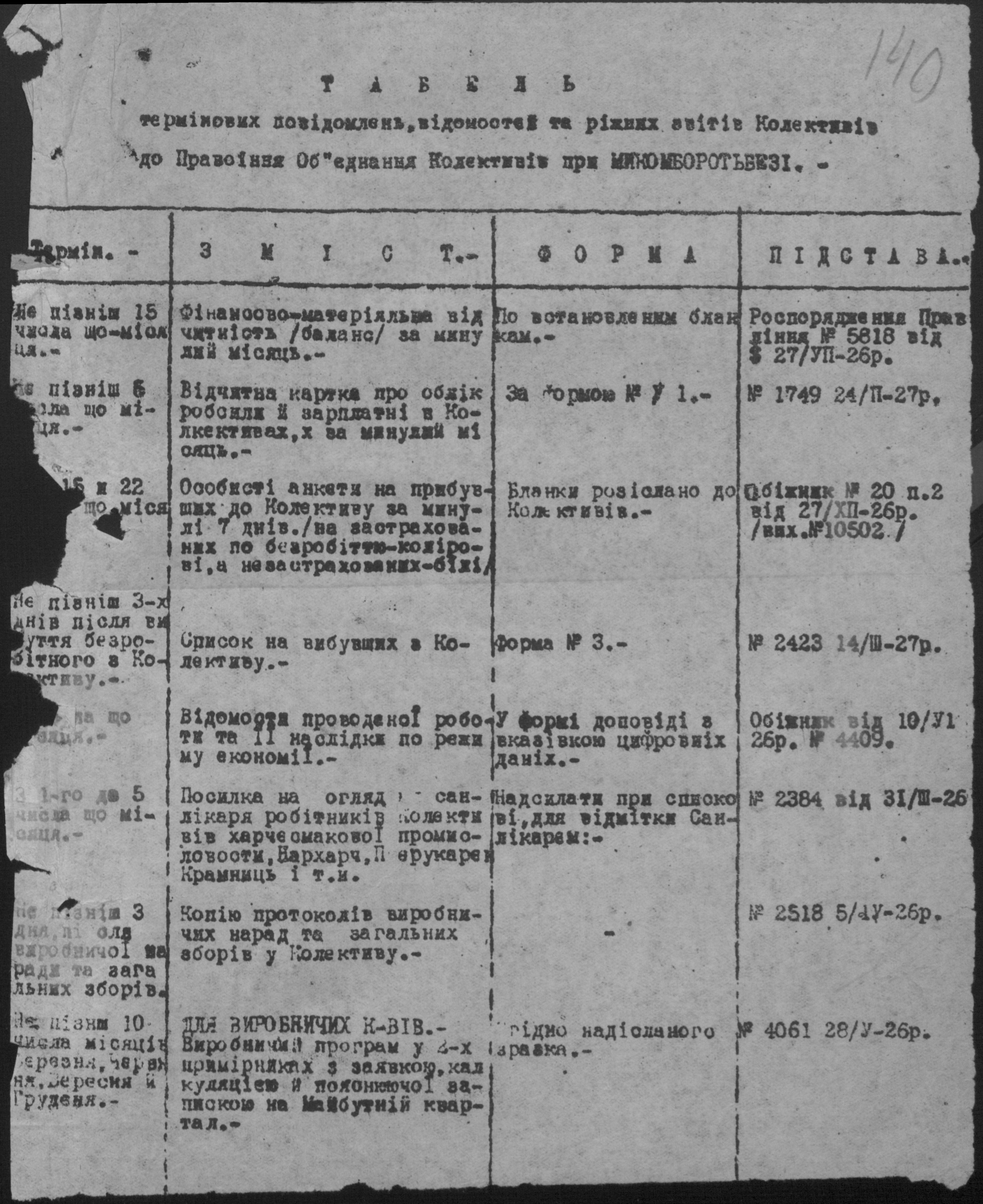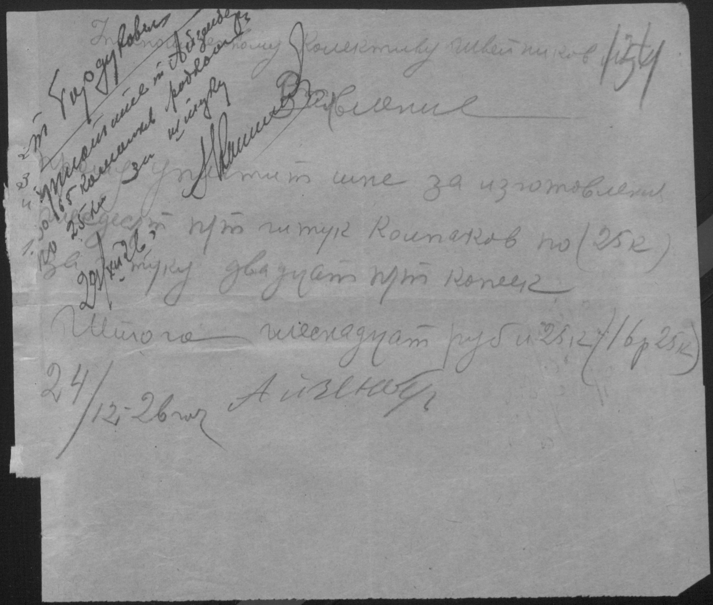 • • • • Справа № 15 “Листування з правлінням об’єднання колективів безробітних при Миккомборбезі та окружним фінансовим відділом з виробничих, господарських і фінансових питань. Листування з замовниками про пошиття виробів. Відомості про соціальний і професійний склад і трудовий стаж членів колективу”