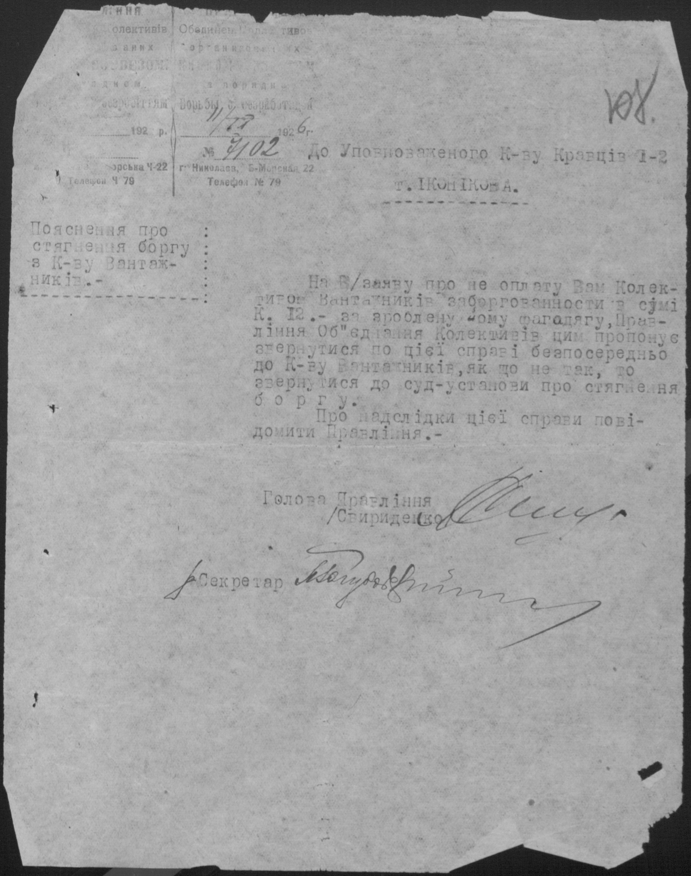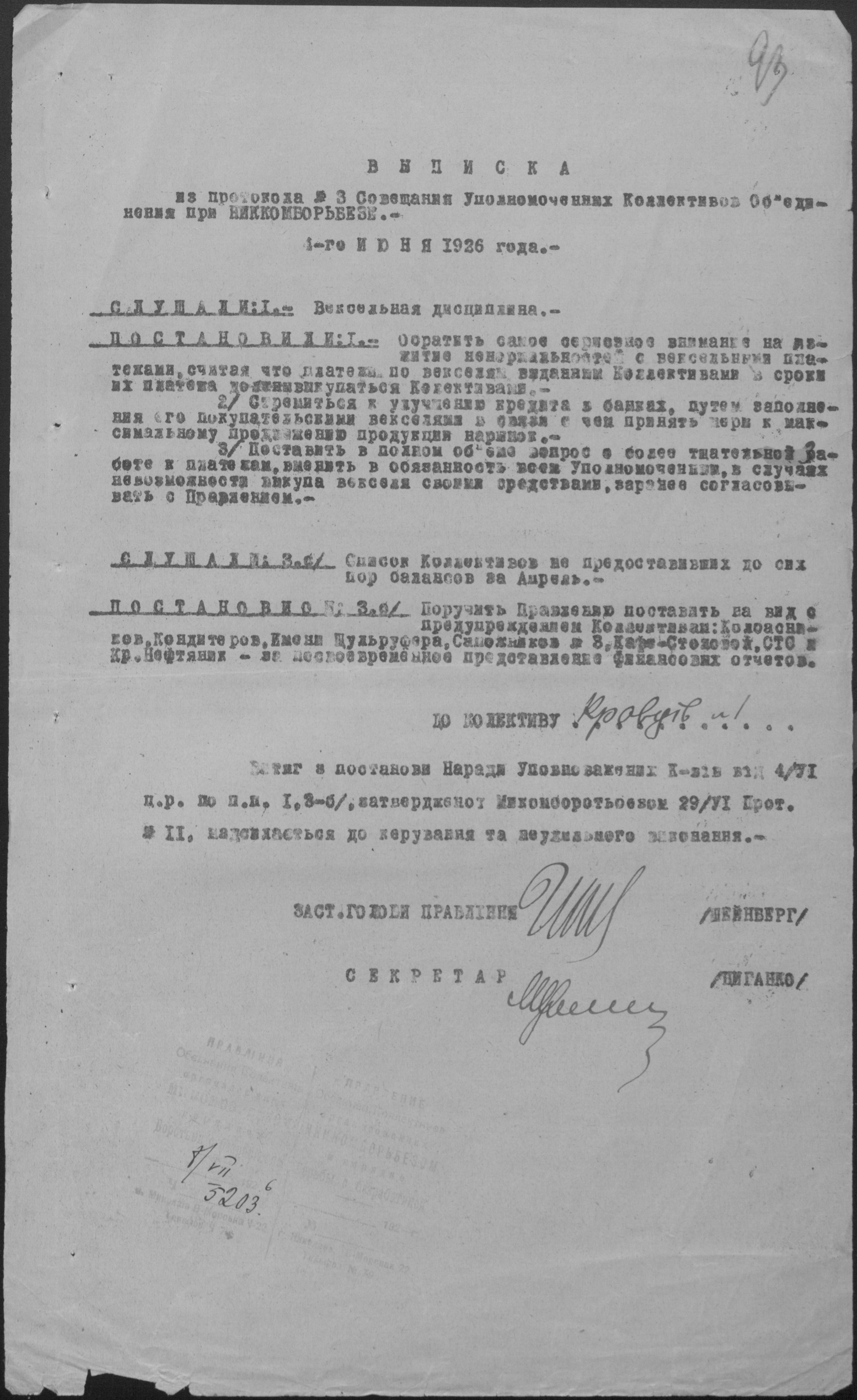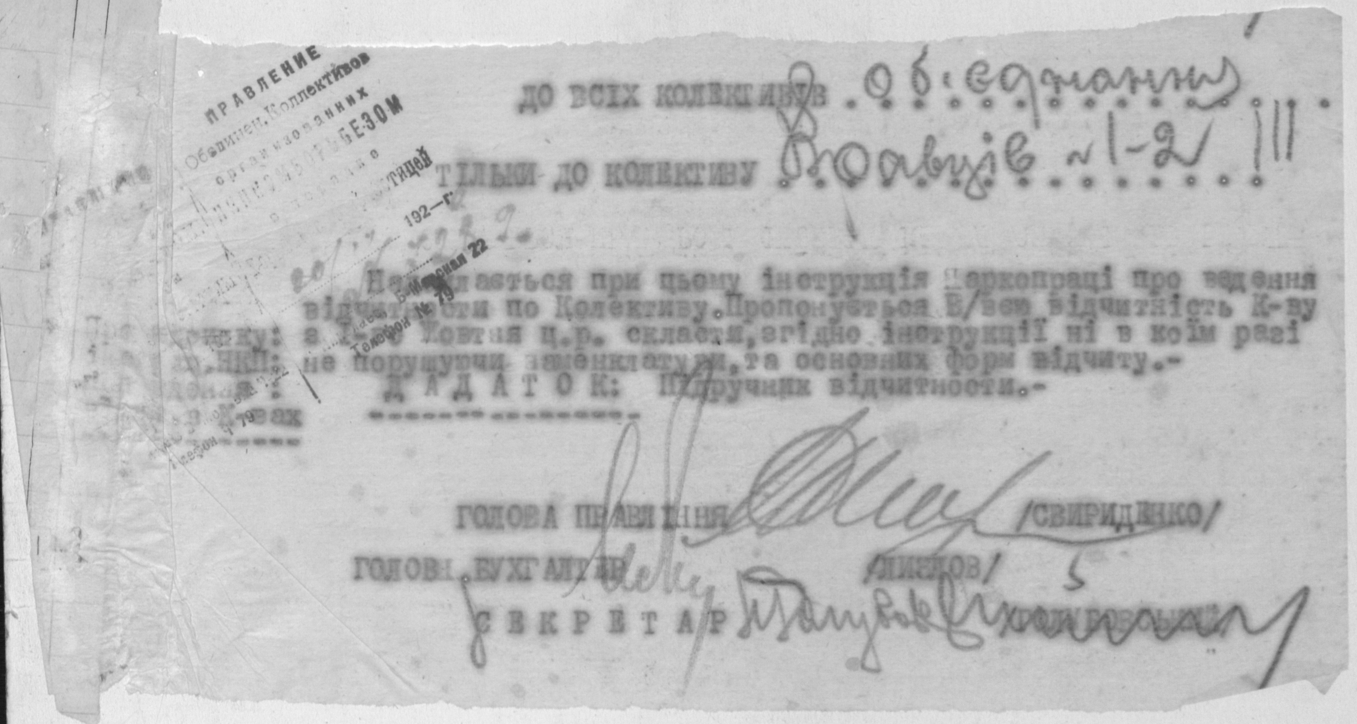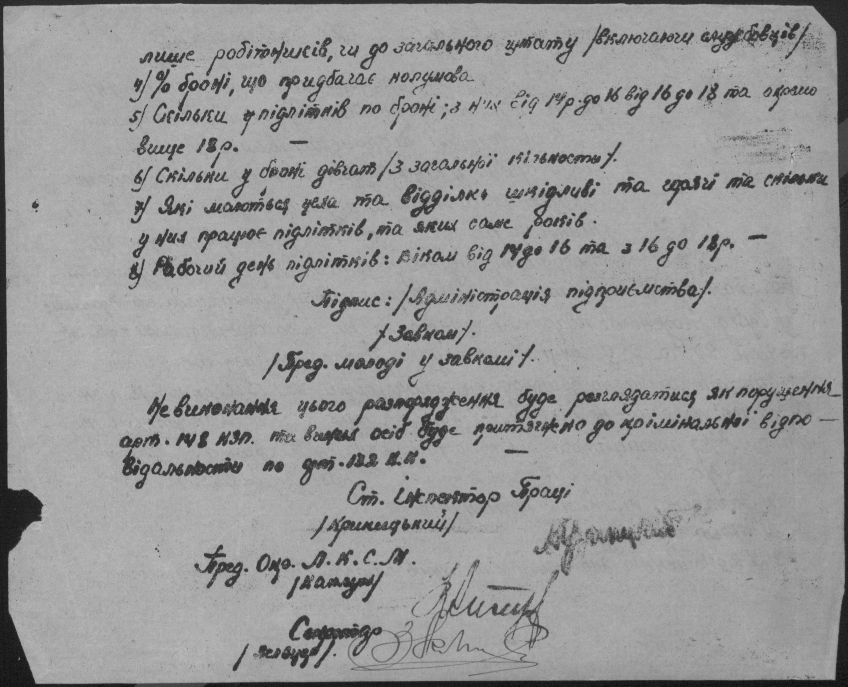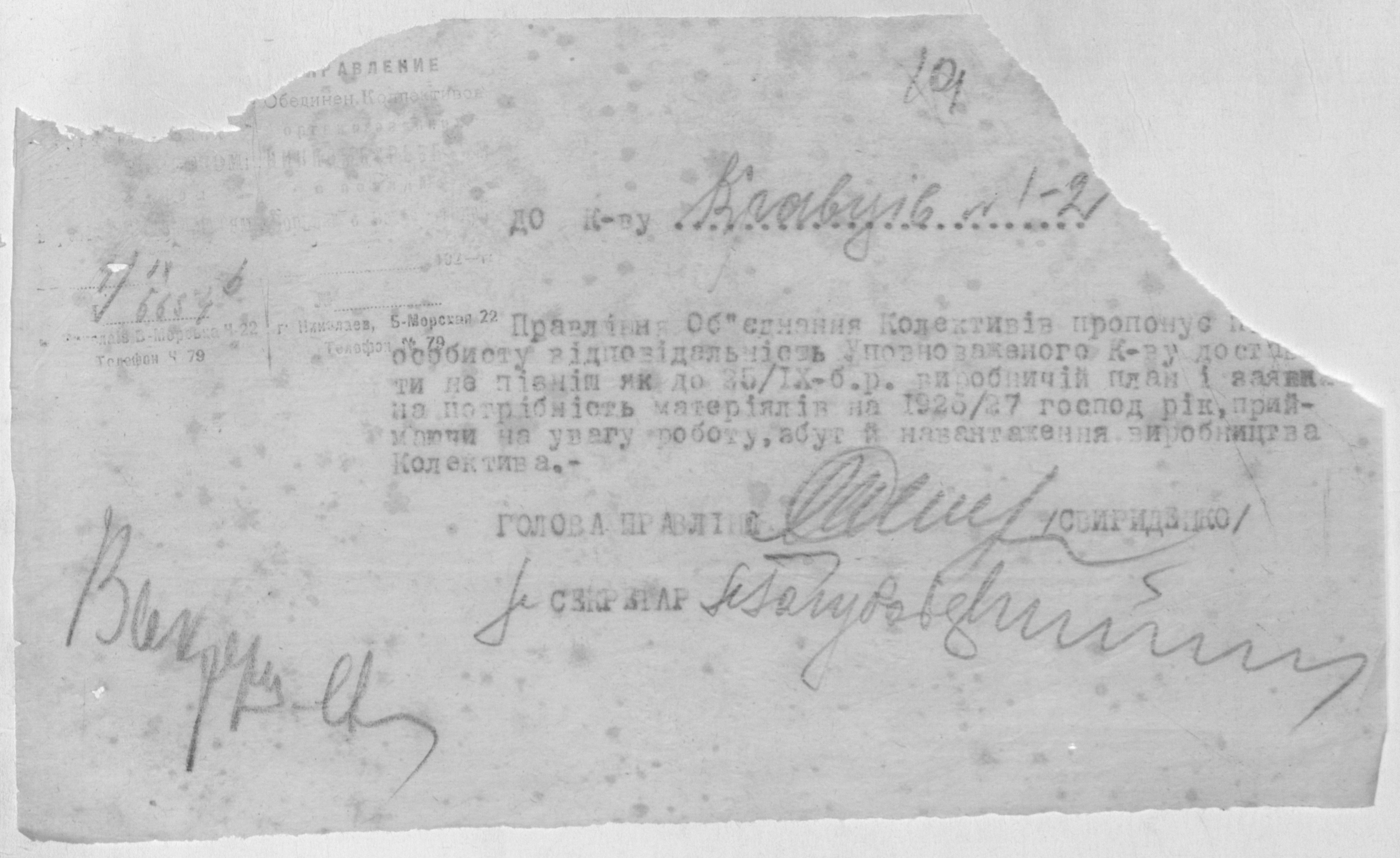 • • • • Справа № 16 “Обіжник Народного комісаріату праці УРСР про надсилання виробничого плану колективів. Листування з правлінням об’єднання колективів безробітних при Миккомборбезі з виробничих і господарських питань. Витяги з протоколу засідань Миккомборбезу. Списки керівного складу, робітників і службовців колективу”