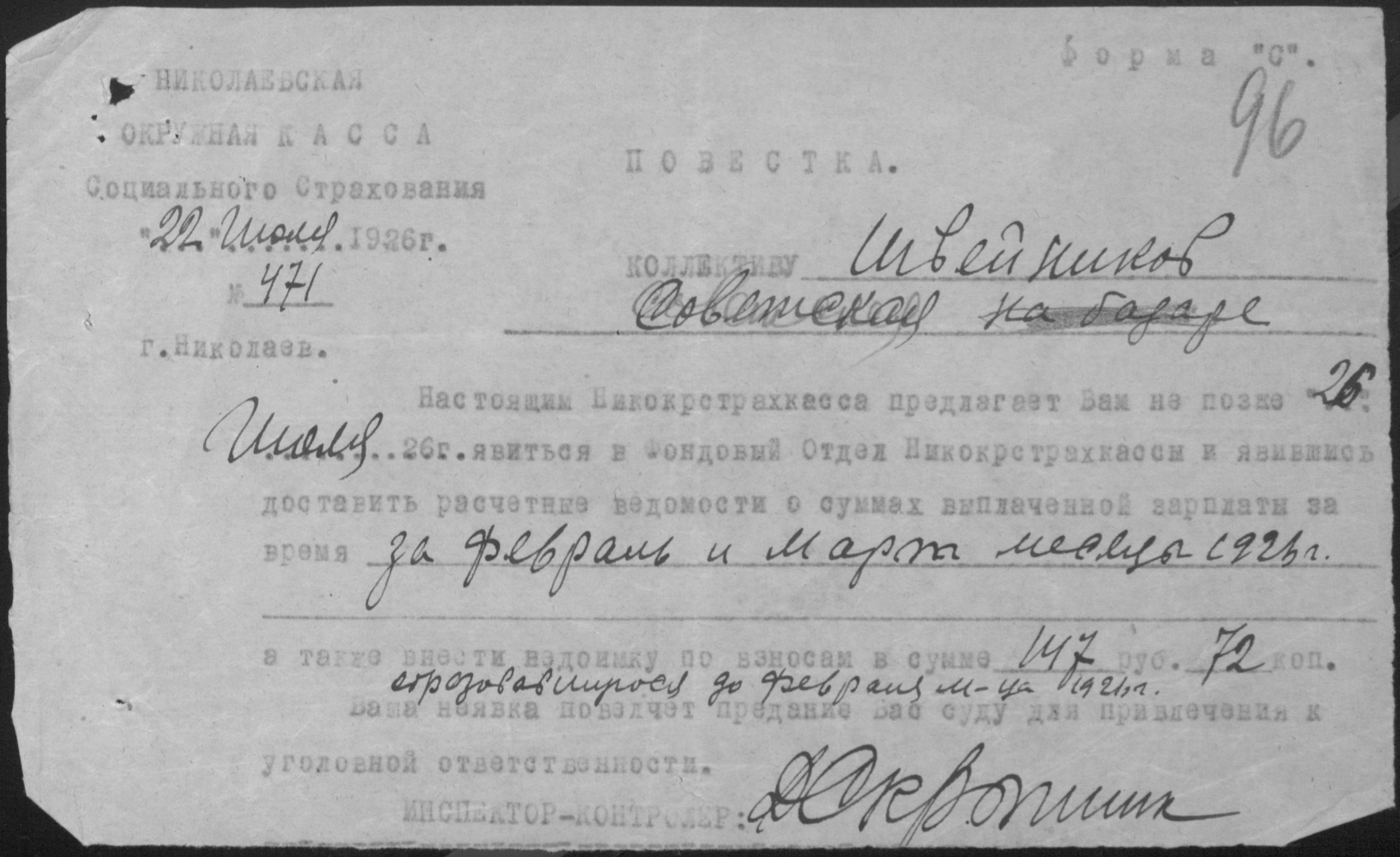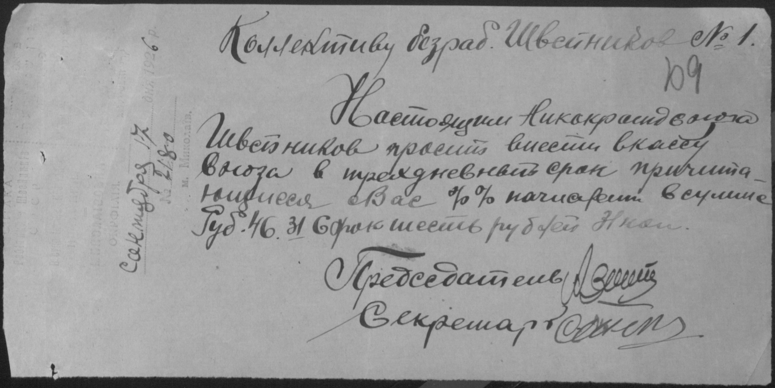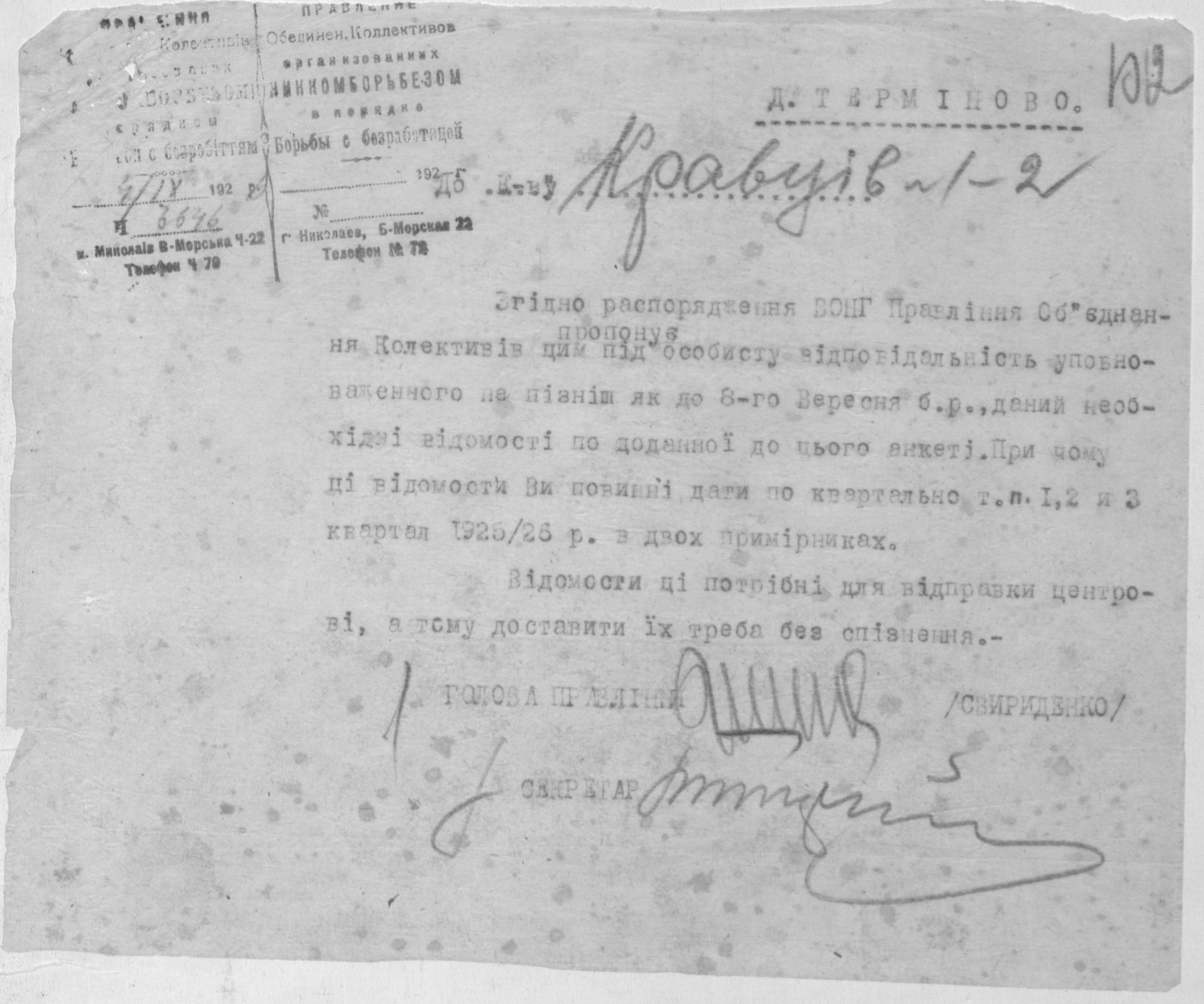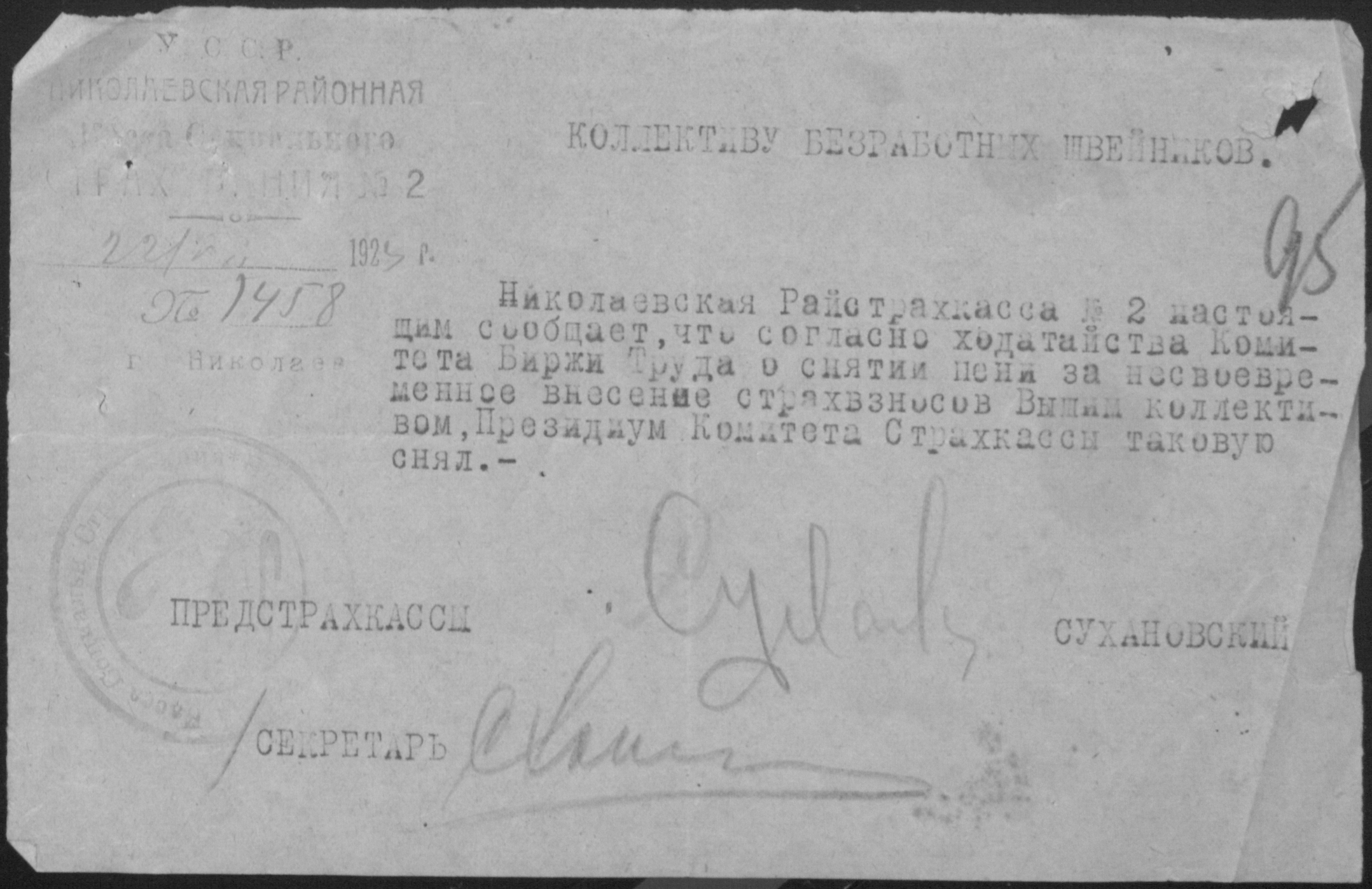 ◦ ◦ Фонд № Р-509 “Колектив безробітних швейників № 1 при Миколаївському окружному комітеті по боротьбі з безробіттям”