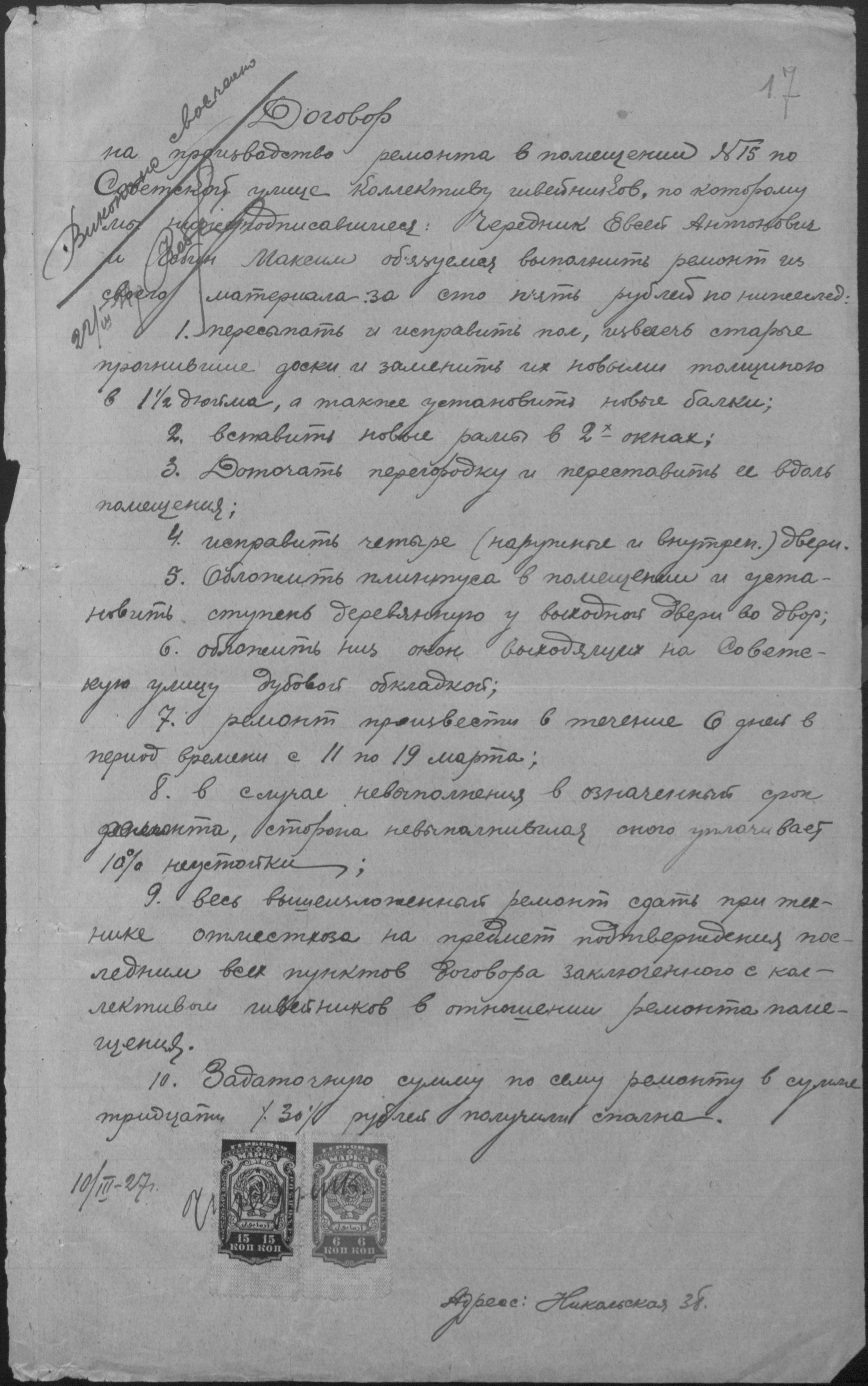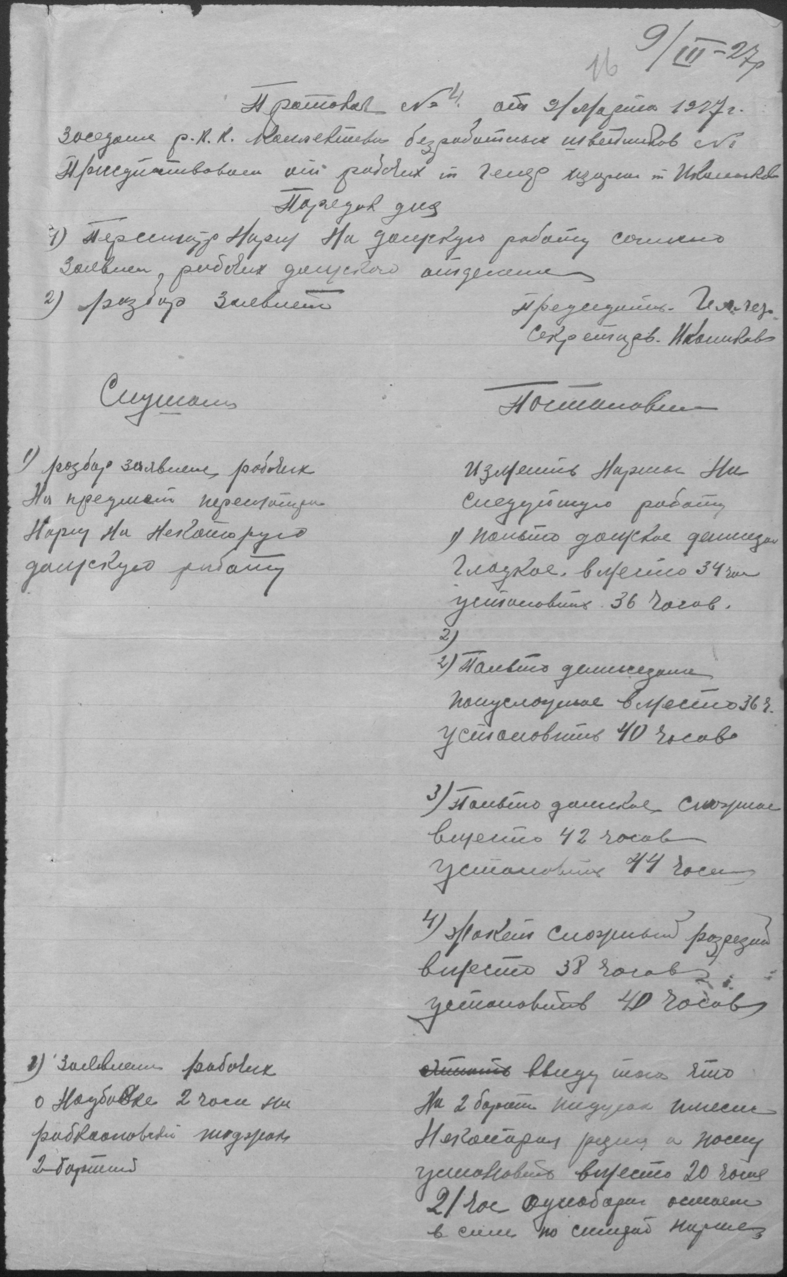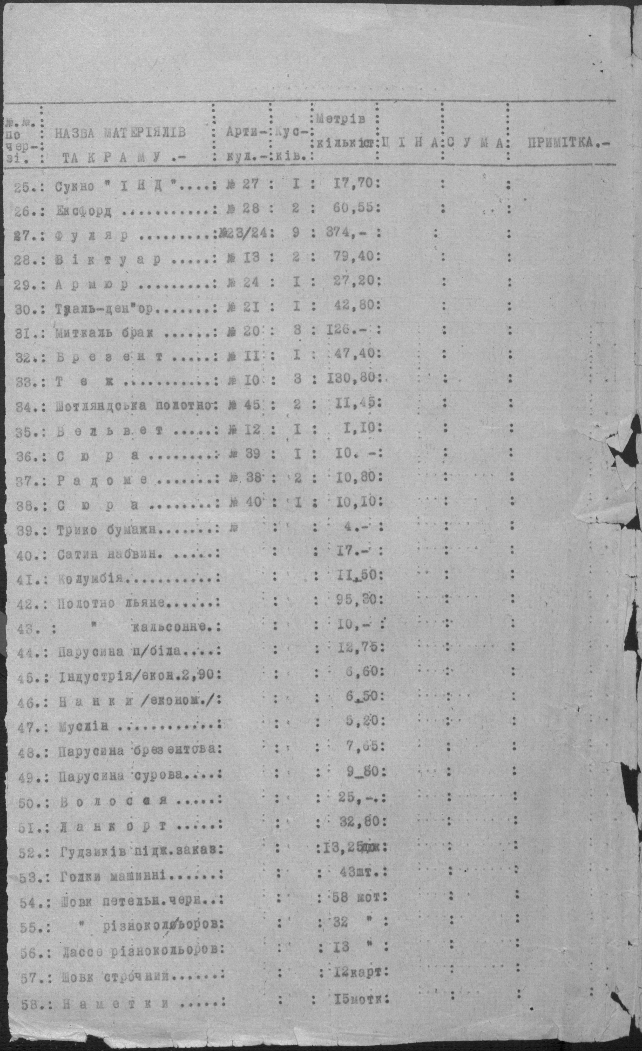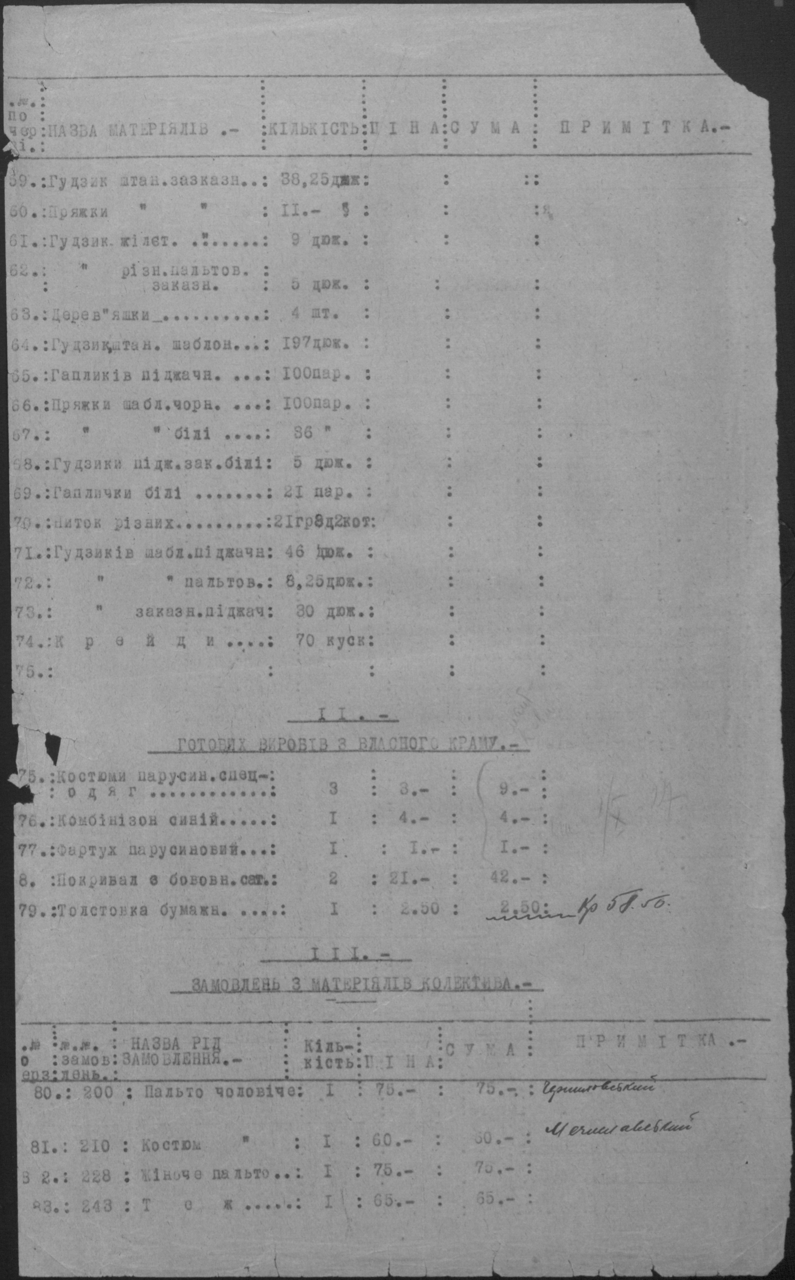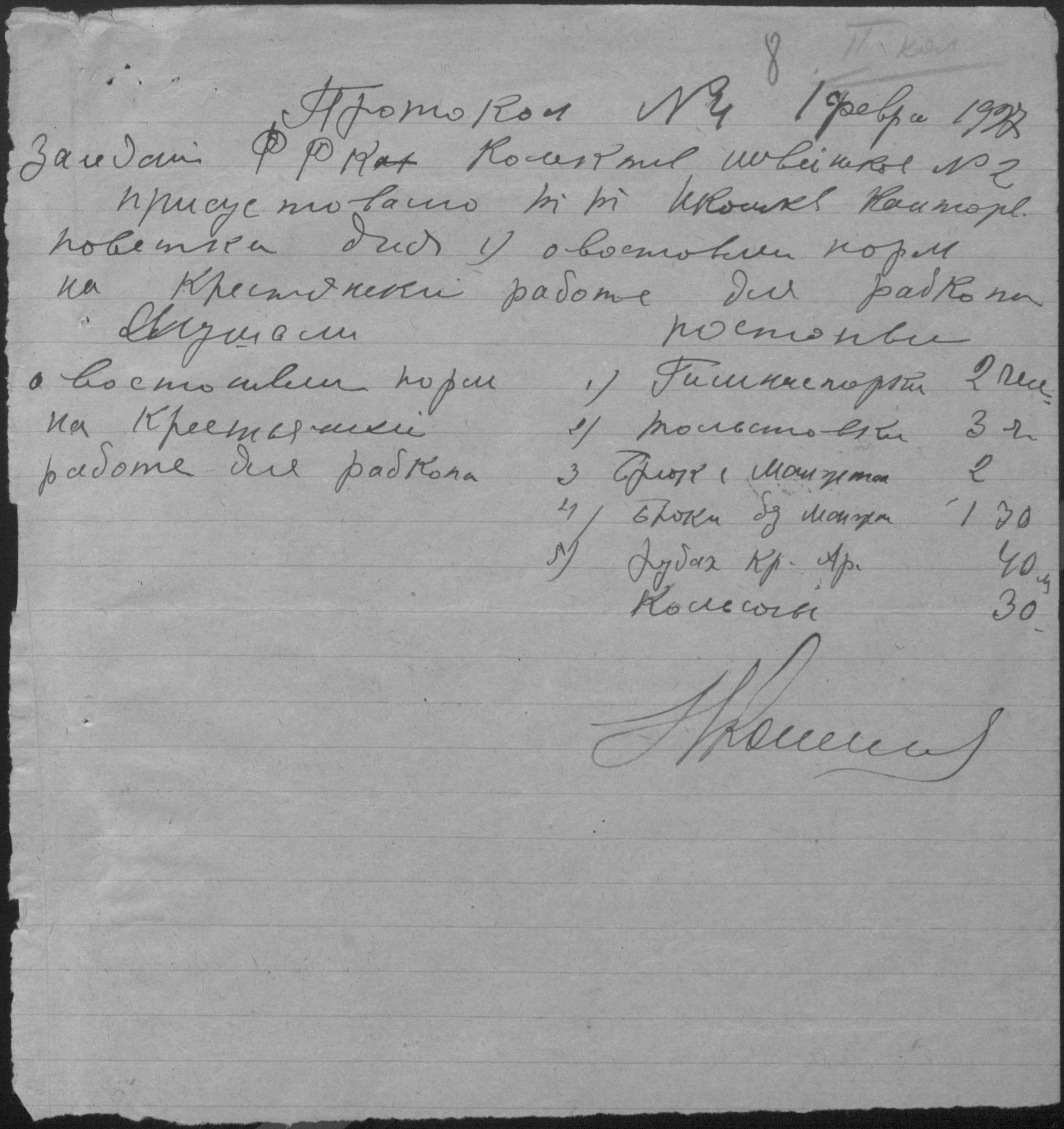 • • • • Справа № 20 “Обіжник Народного комісаріату праці УРСР про виплату підйомної допомоги особам, які переводяться у партійному порядку. Обіжник Народного комісаріату зовнішньої і внутрішньої торгівлі УРСР про зниження роздрібних цін. Листування з правлінням об’єднання колективів безробітних при Миккомборбезі з виробничих і господарських питань. Протоколи засідань членів колективу. Акти інвентаризації”