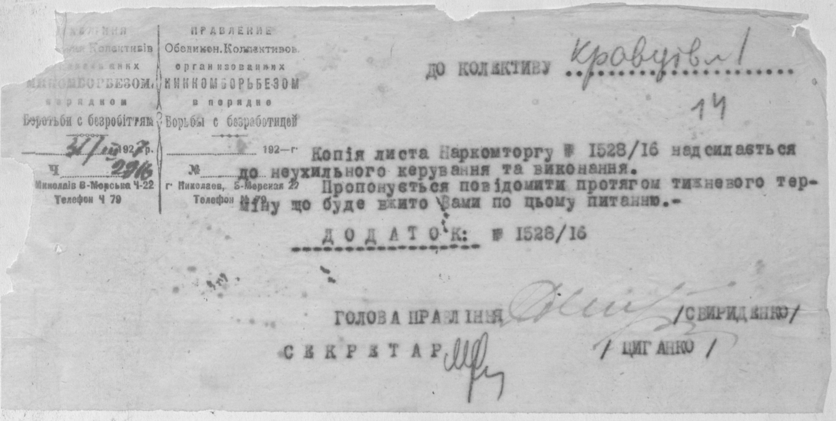 ◦ ◦ Фонд № Р-509 “Колектив безробітних швейників № 1 при Миколаївському окружному комітеті по боротьбі з безробіттям”