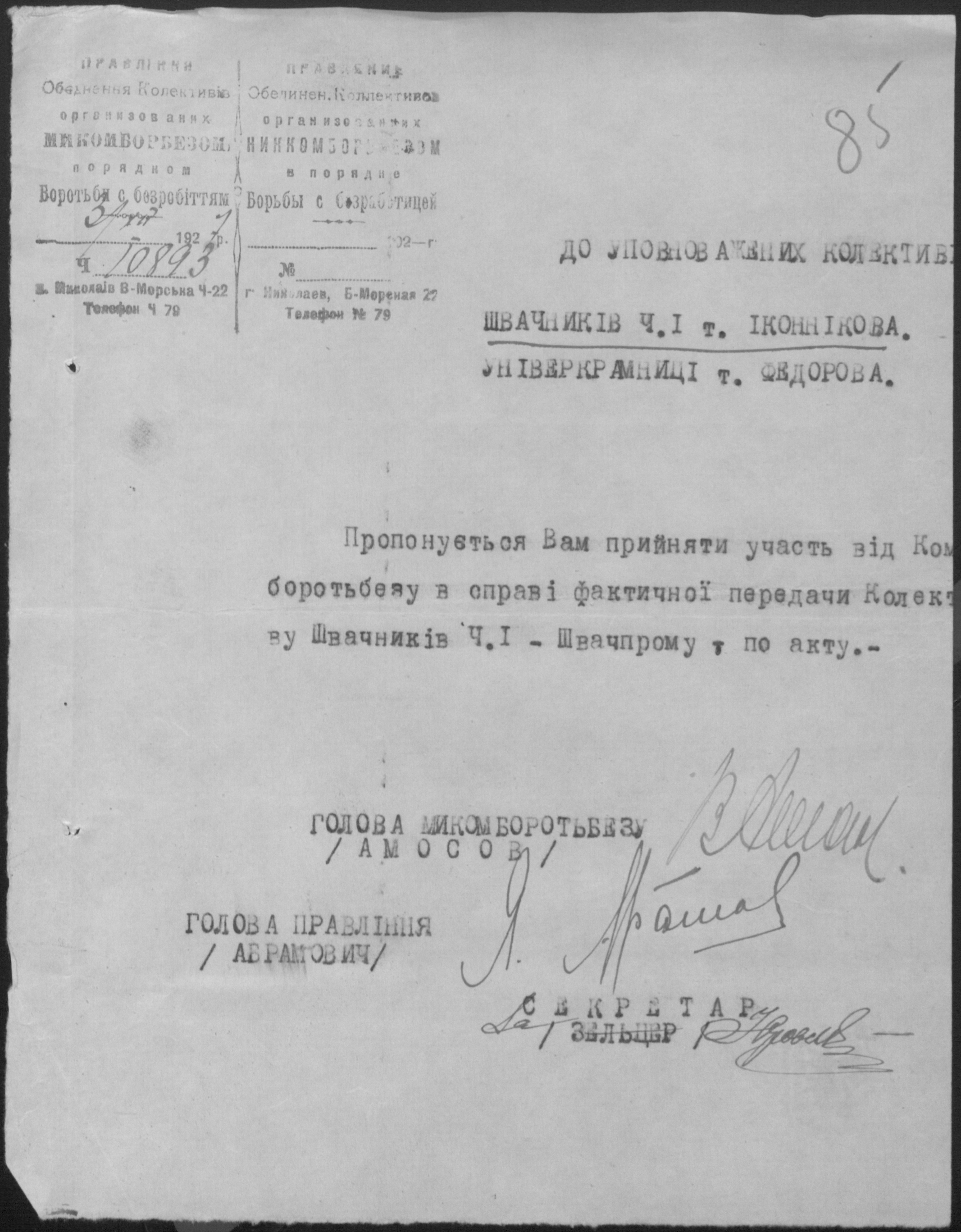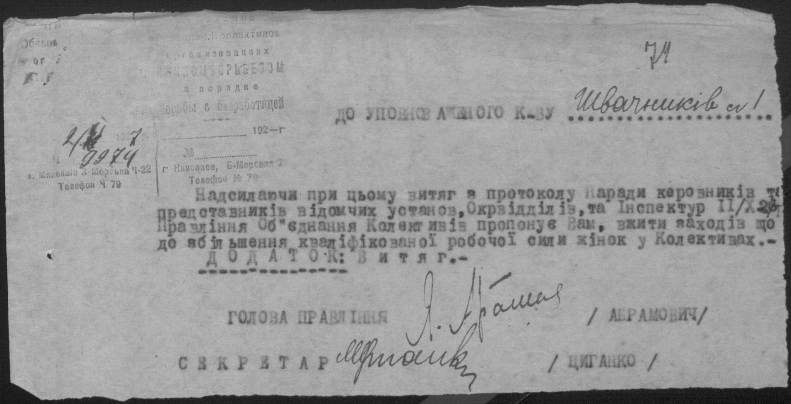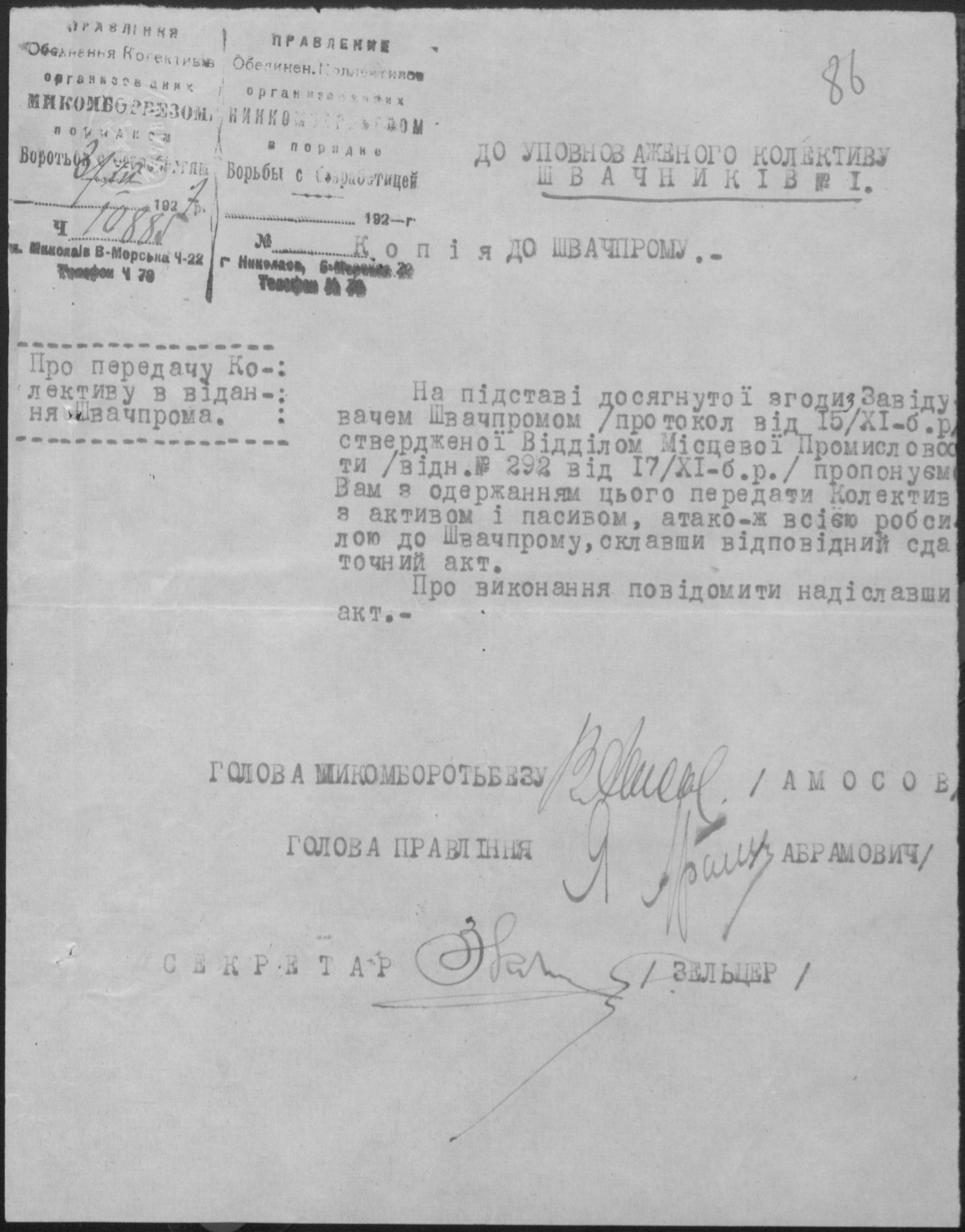 ◦ ◦ Фонд № Р-509 “Колектив безробітних швейників № 1 при Миколаївському окружному комітеті по боротьбі з безробіттям”