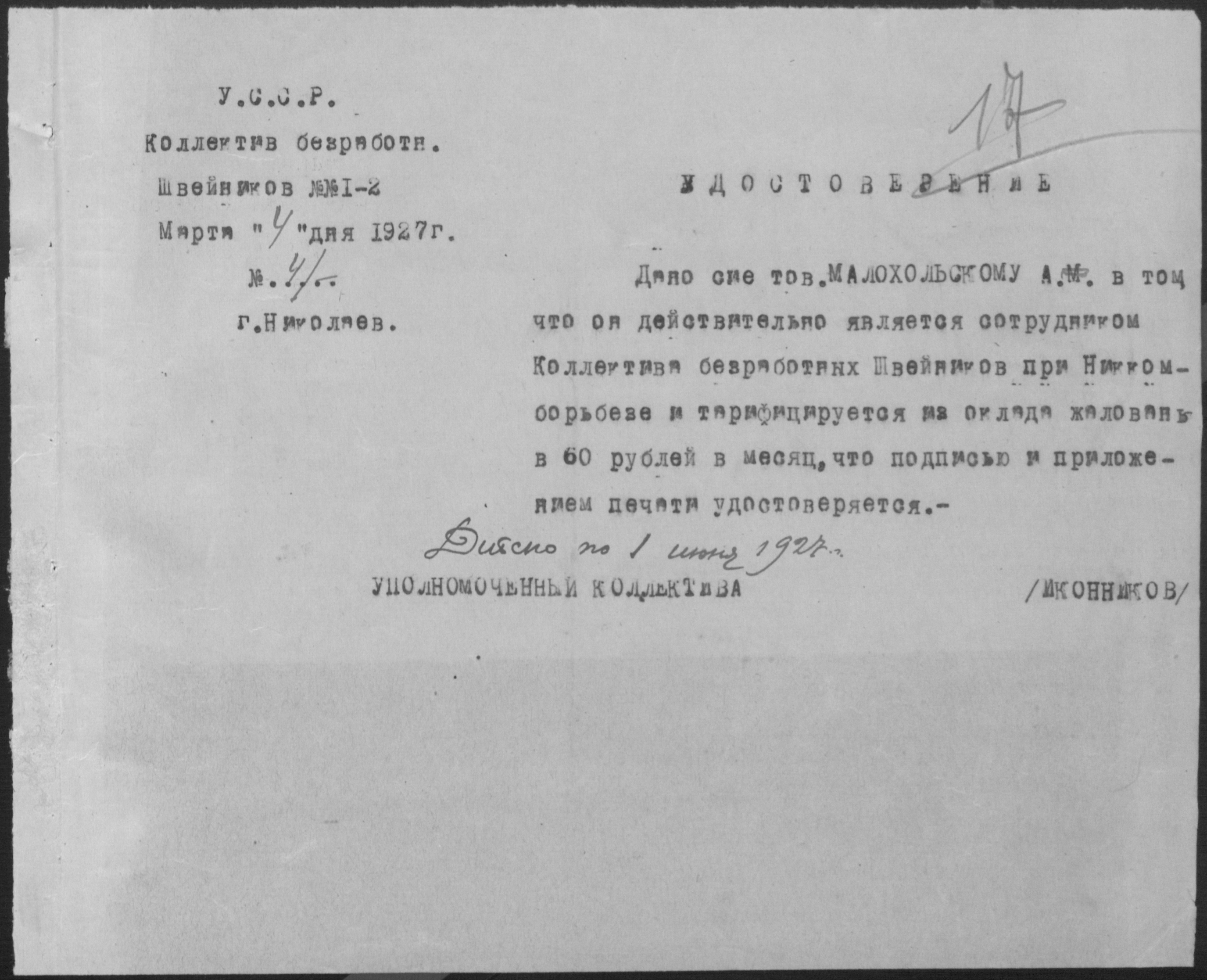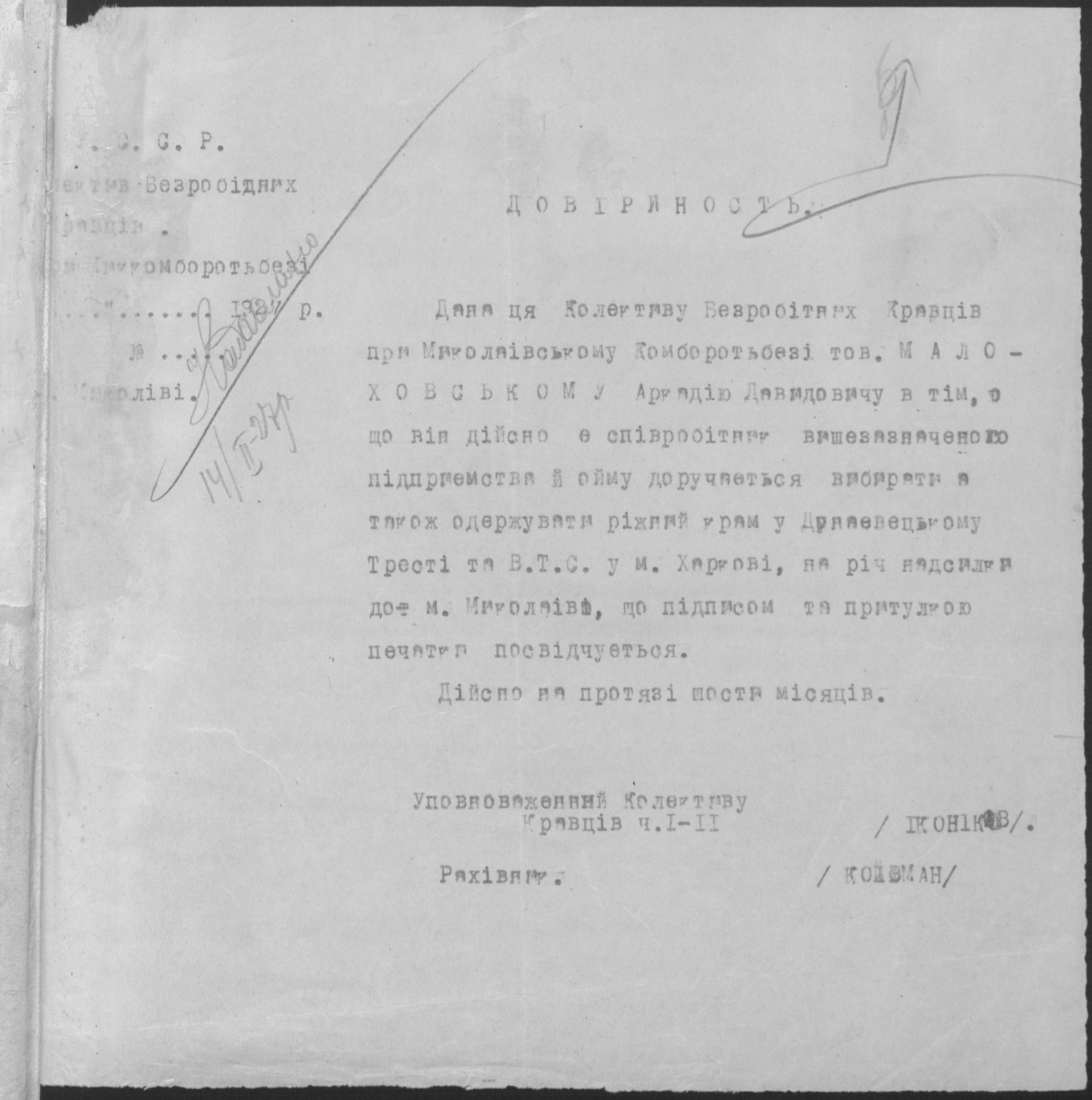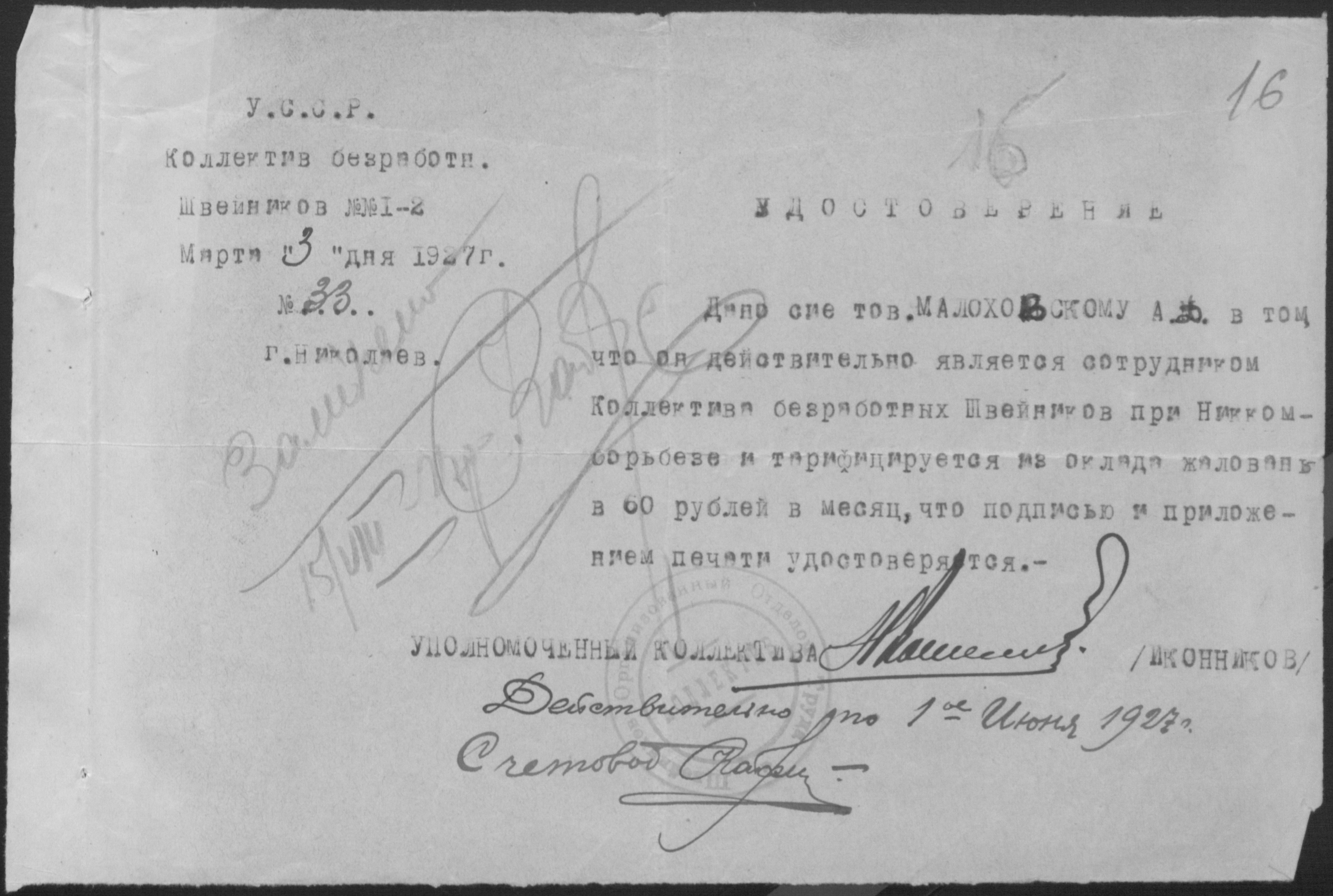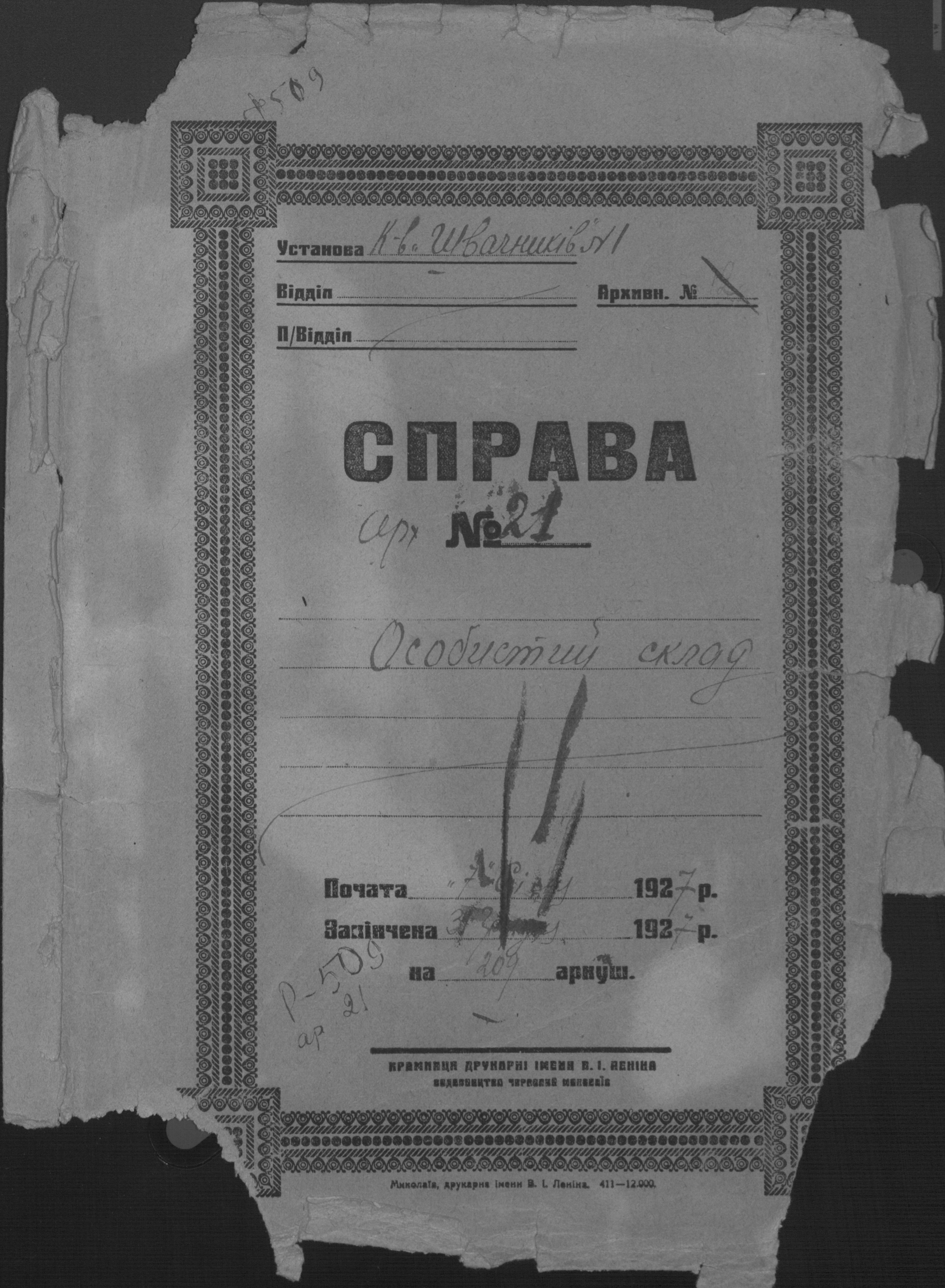 ◦ ◦ Фонд № Р-509 “Колектив безробітних швейників № 1 при Миколаївському окружному комітеті по боротьбі з безробіттям”