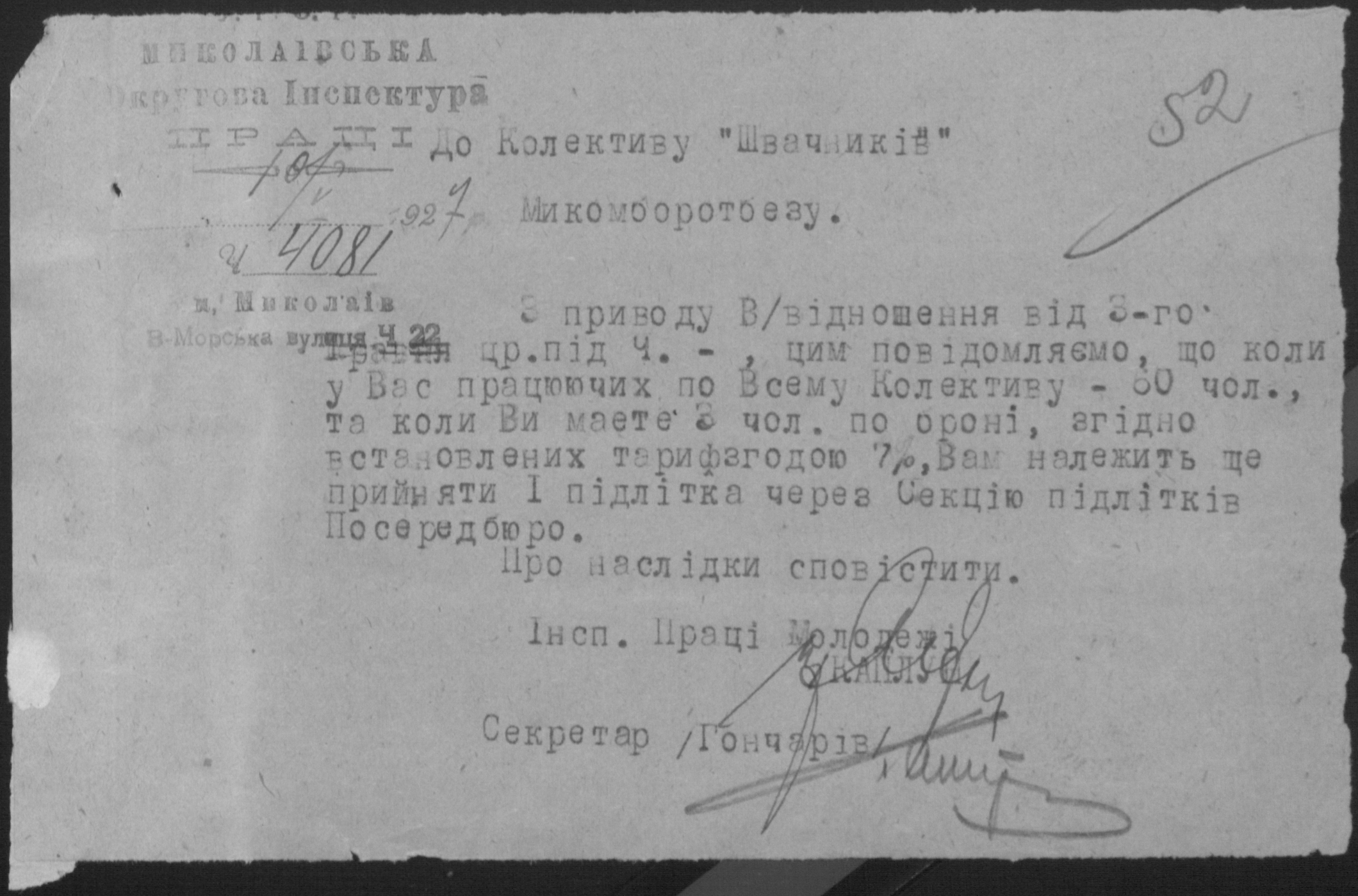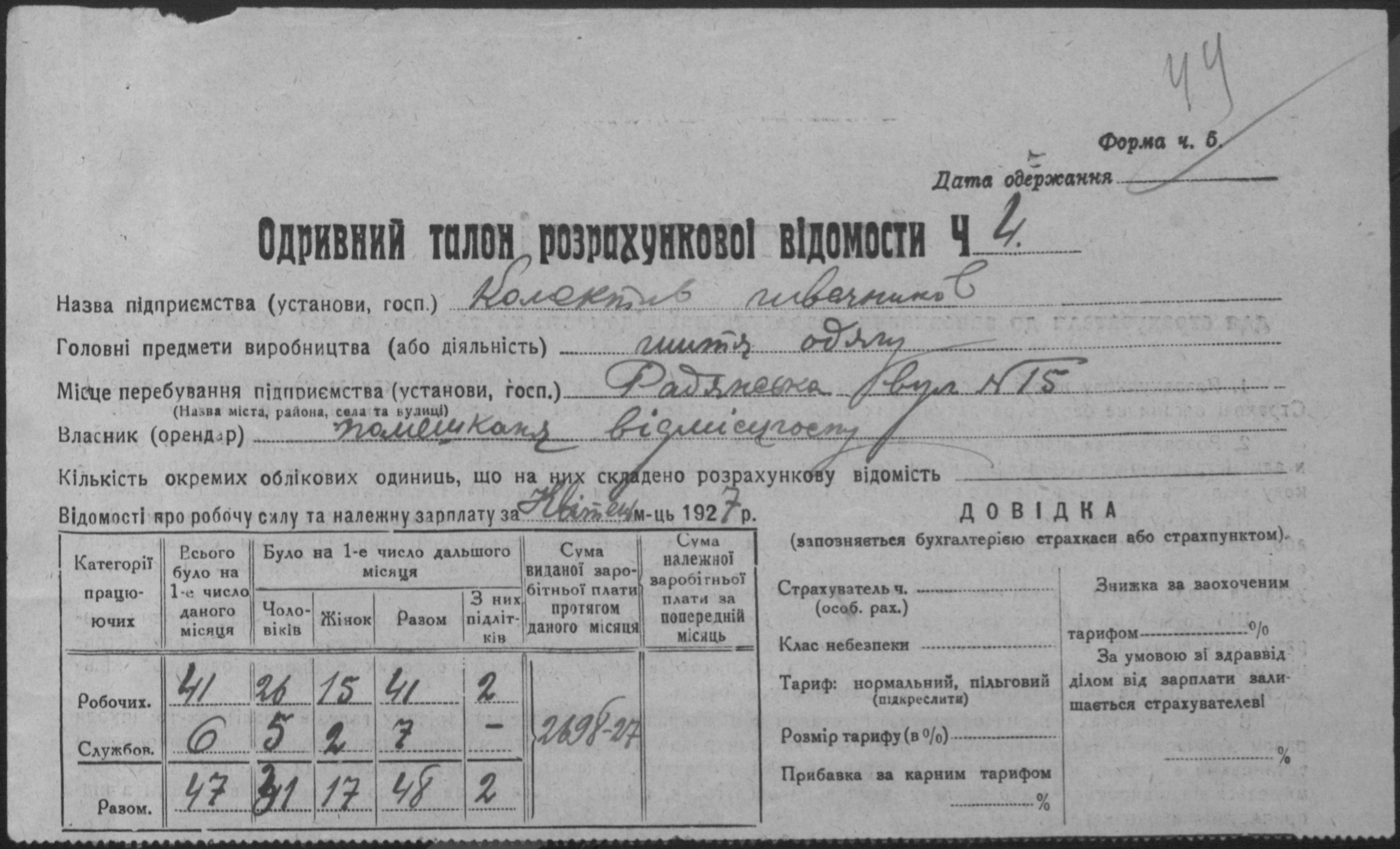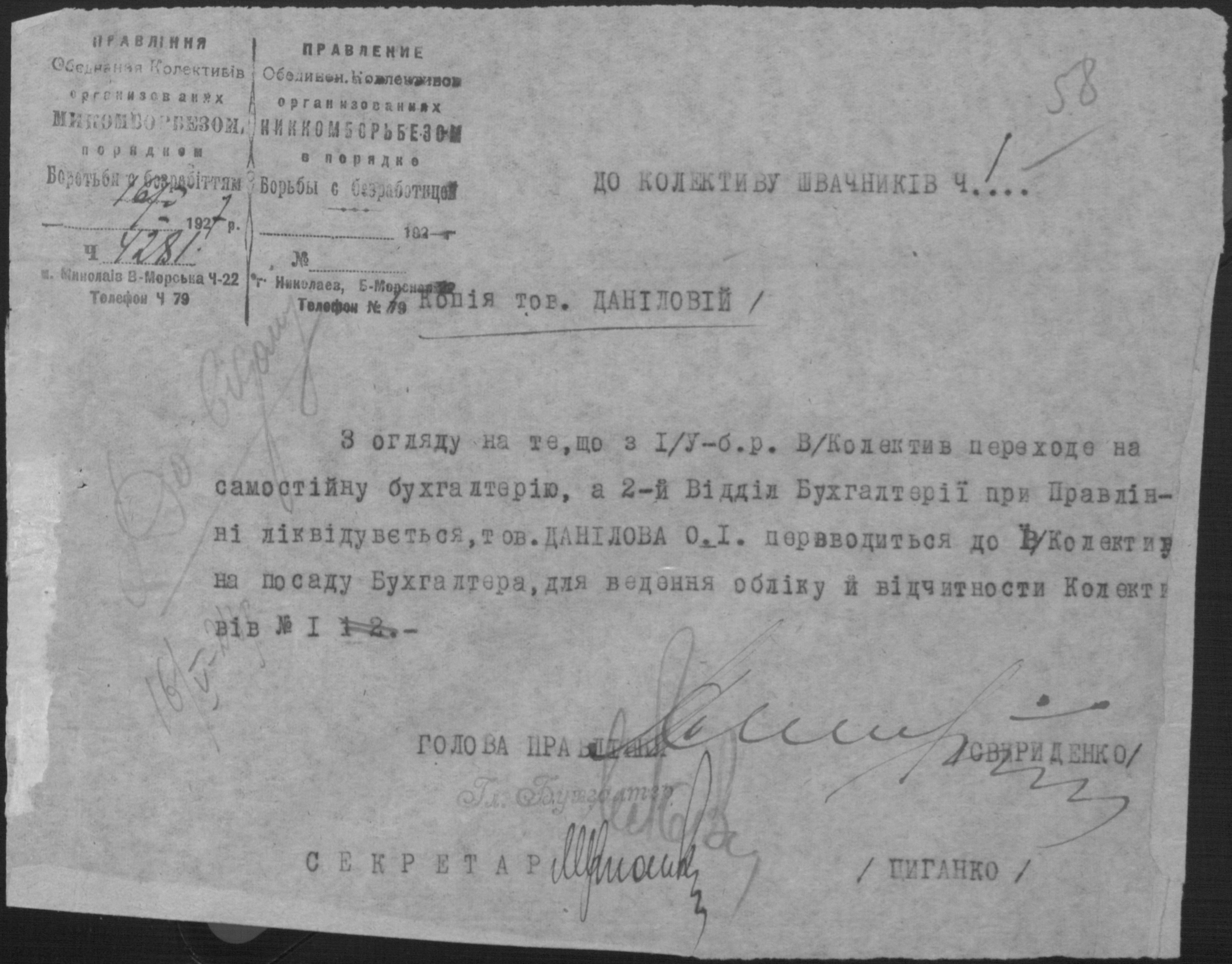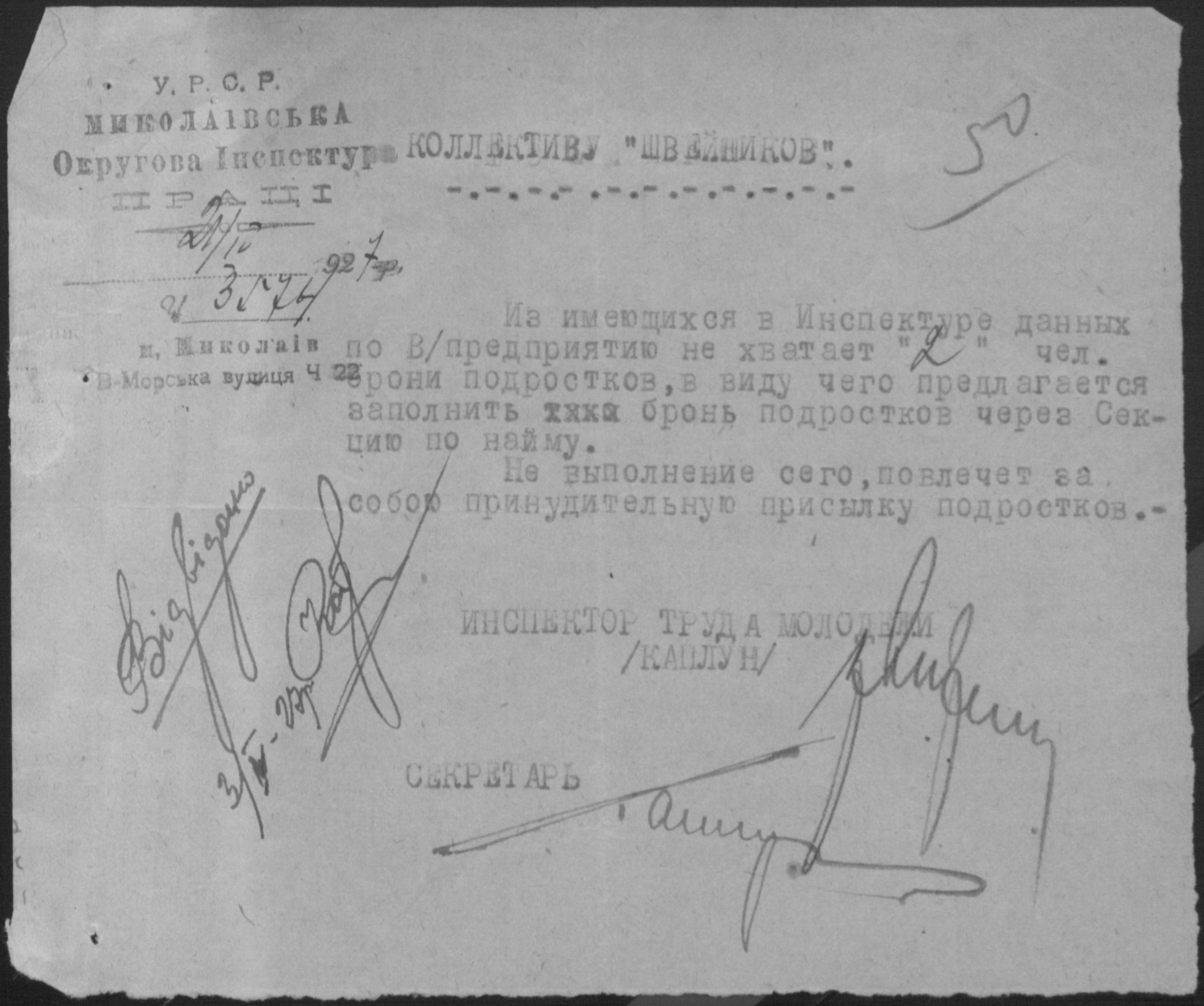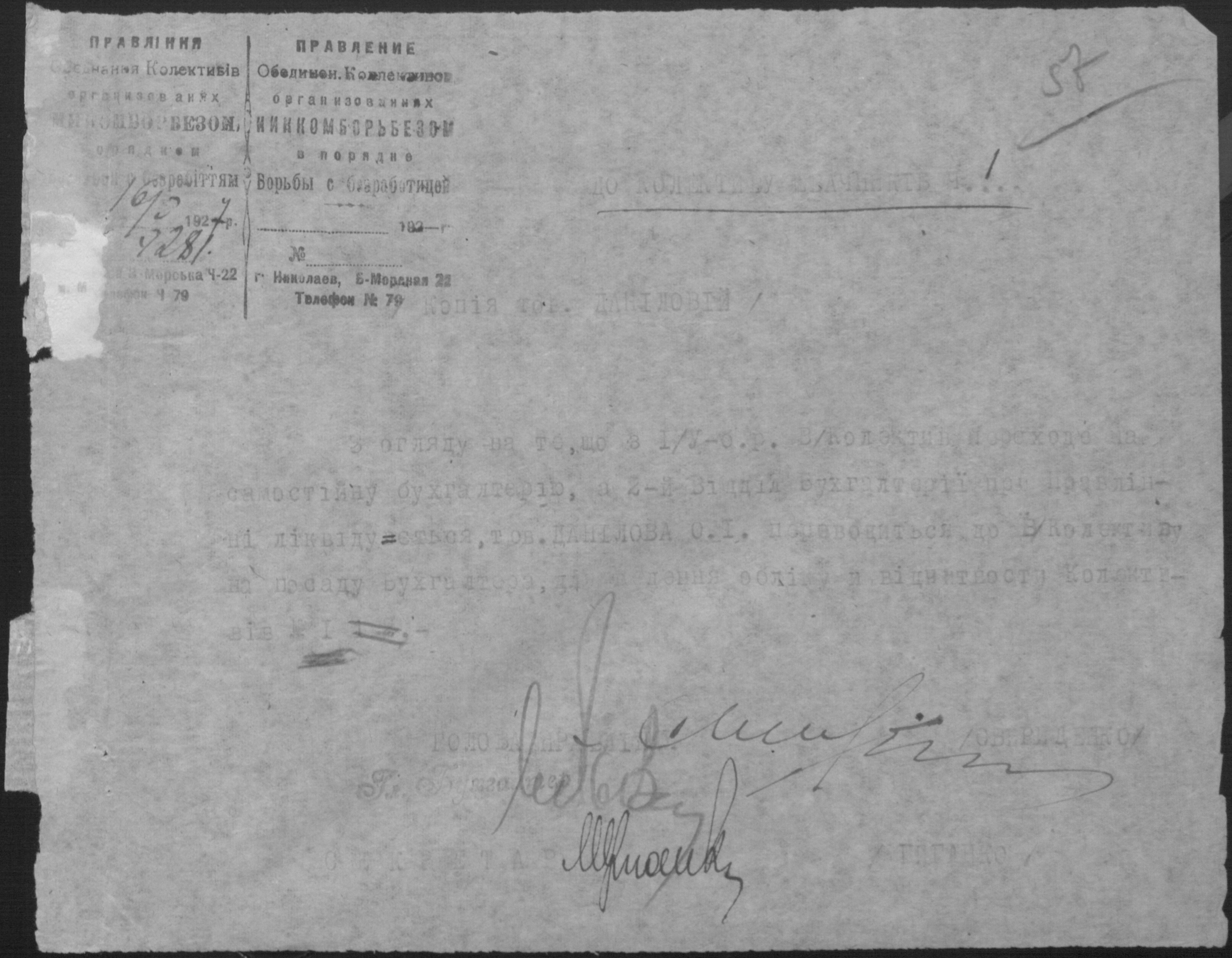 ◦ ◦ Фонд № Р-509 “Колектив безробітних швейників № 1 при Миколаївському окружному комітеті по боротьбі з безробіттям”