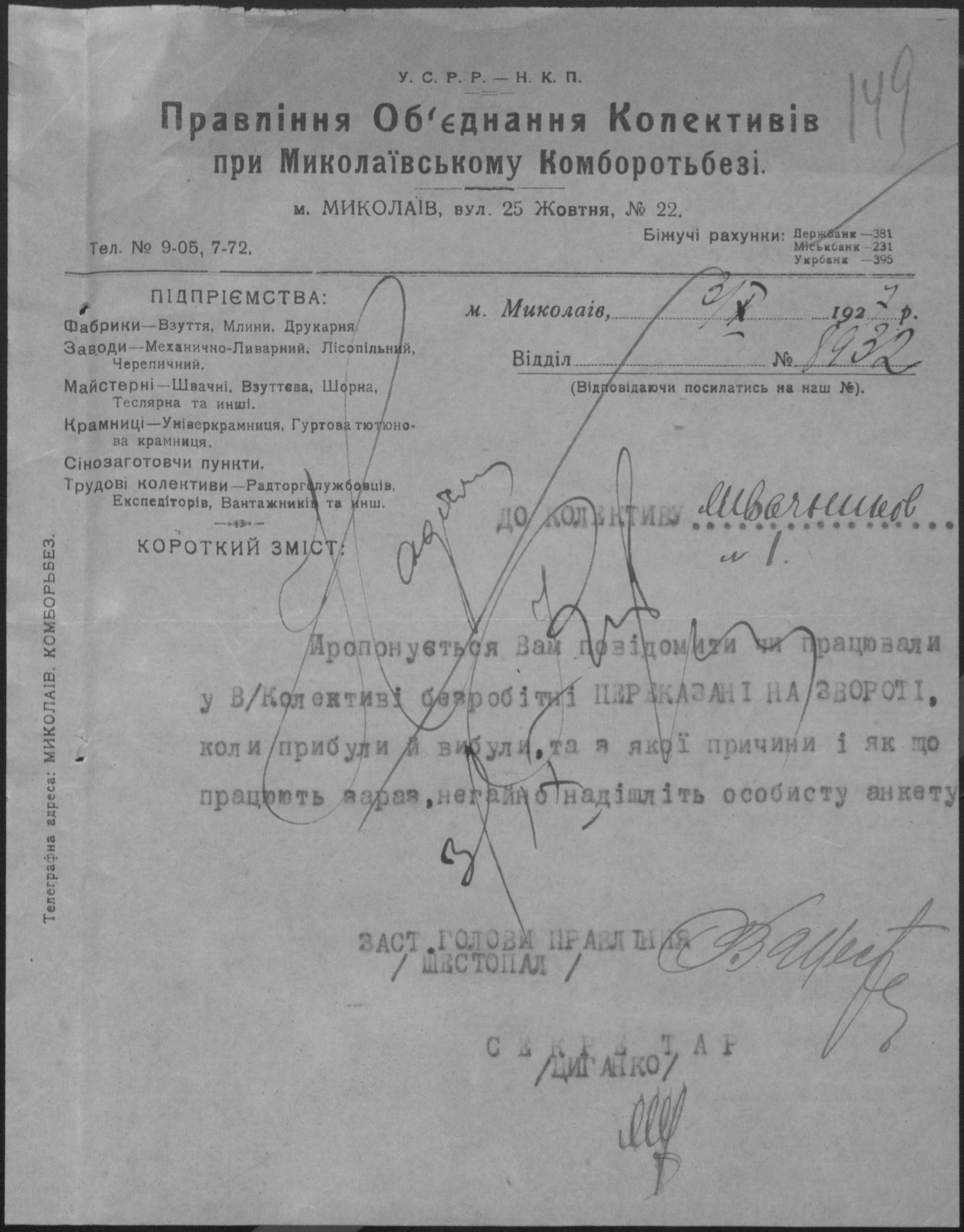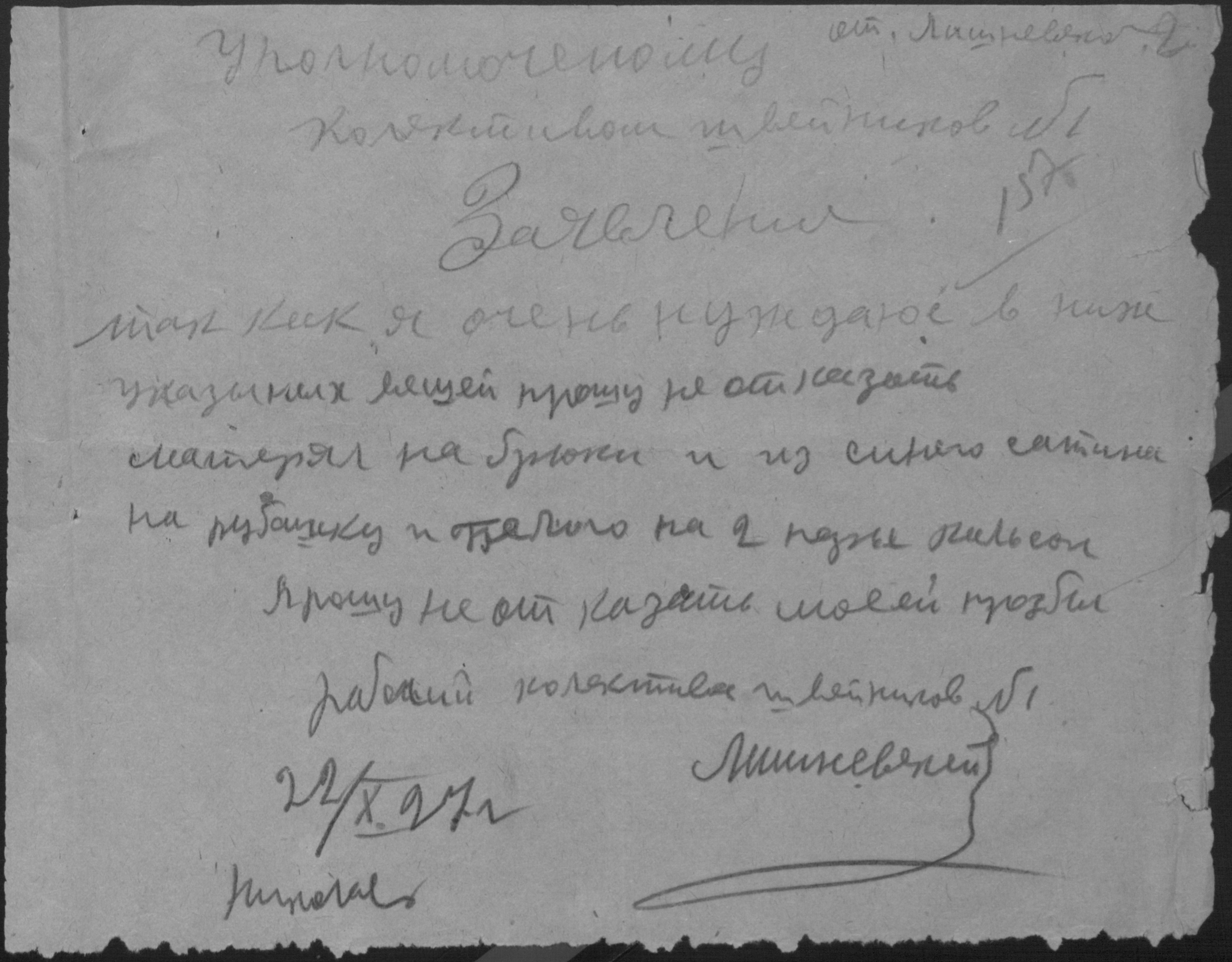 ◦ ◦ Фонд № Р-509 “Колектив безробітних швейників № 1 при Миколаївському окружному комітеті по боротьбі з безробіттям”