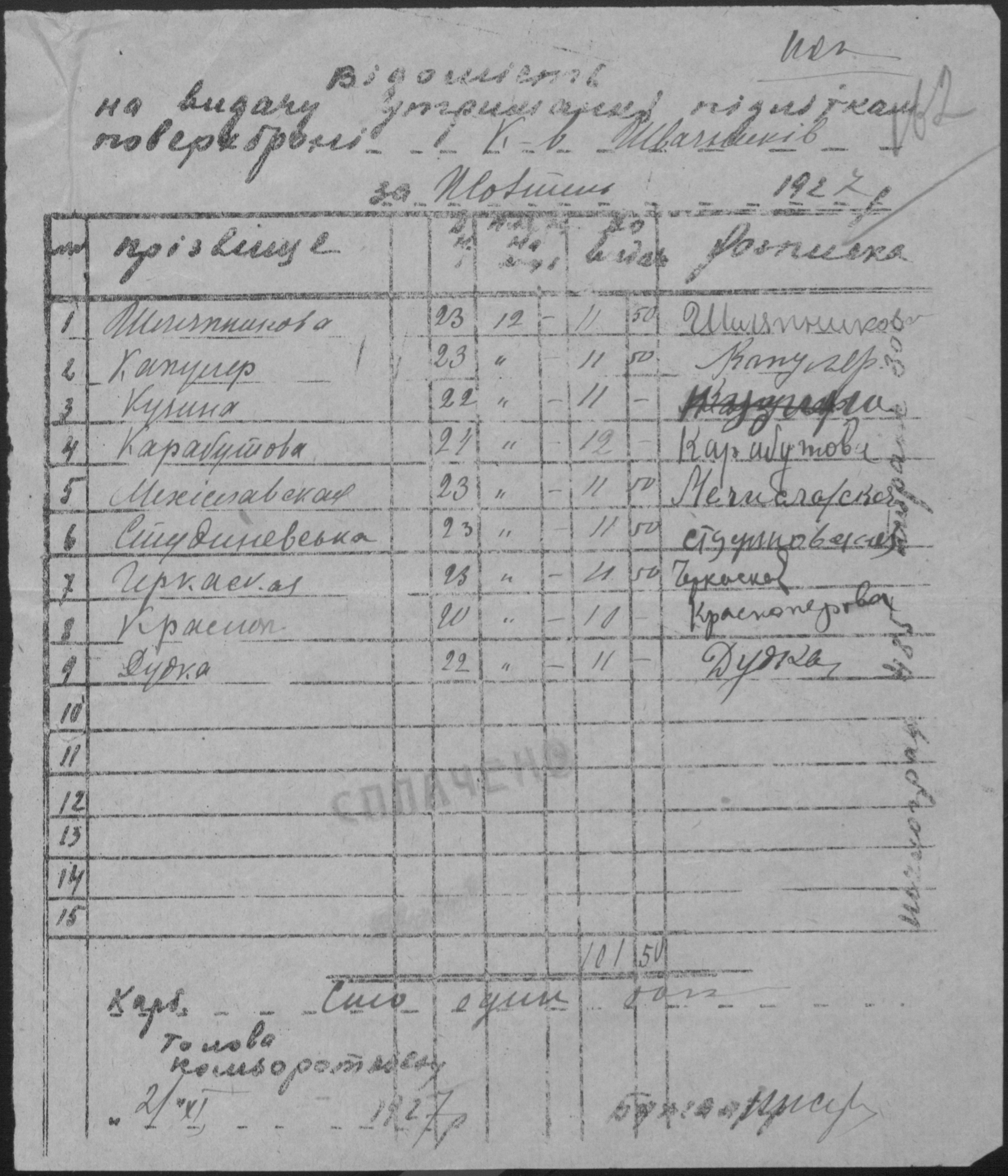 ◦ ◦ ◦ Опис № 1 справ постійного зберігання за 1923 – 1927 роки