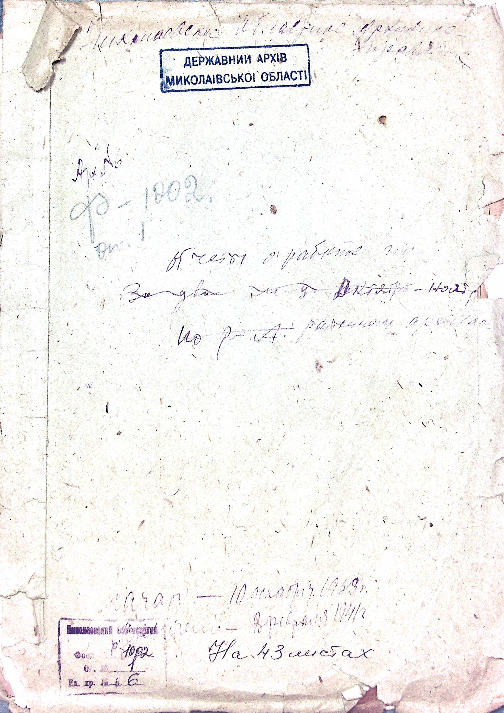 ◦ ◦ Фонд № Р-1002 “Архівний відділ управління виконкому Миколаївської обласної Ради народних депутатів, м. Миколаїв”