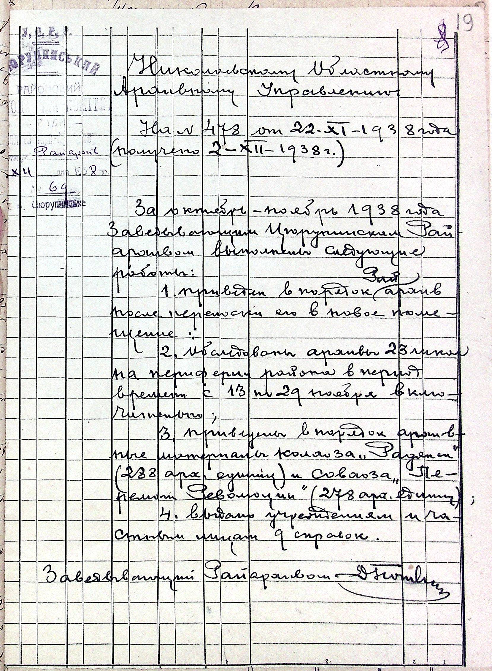 • • • • Справа № 6 “Звіти про роботу районних архівів”