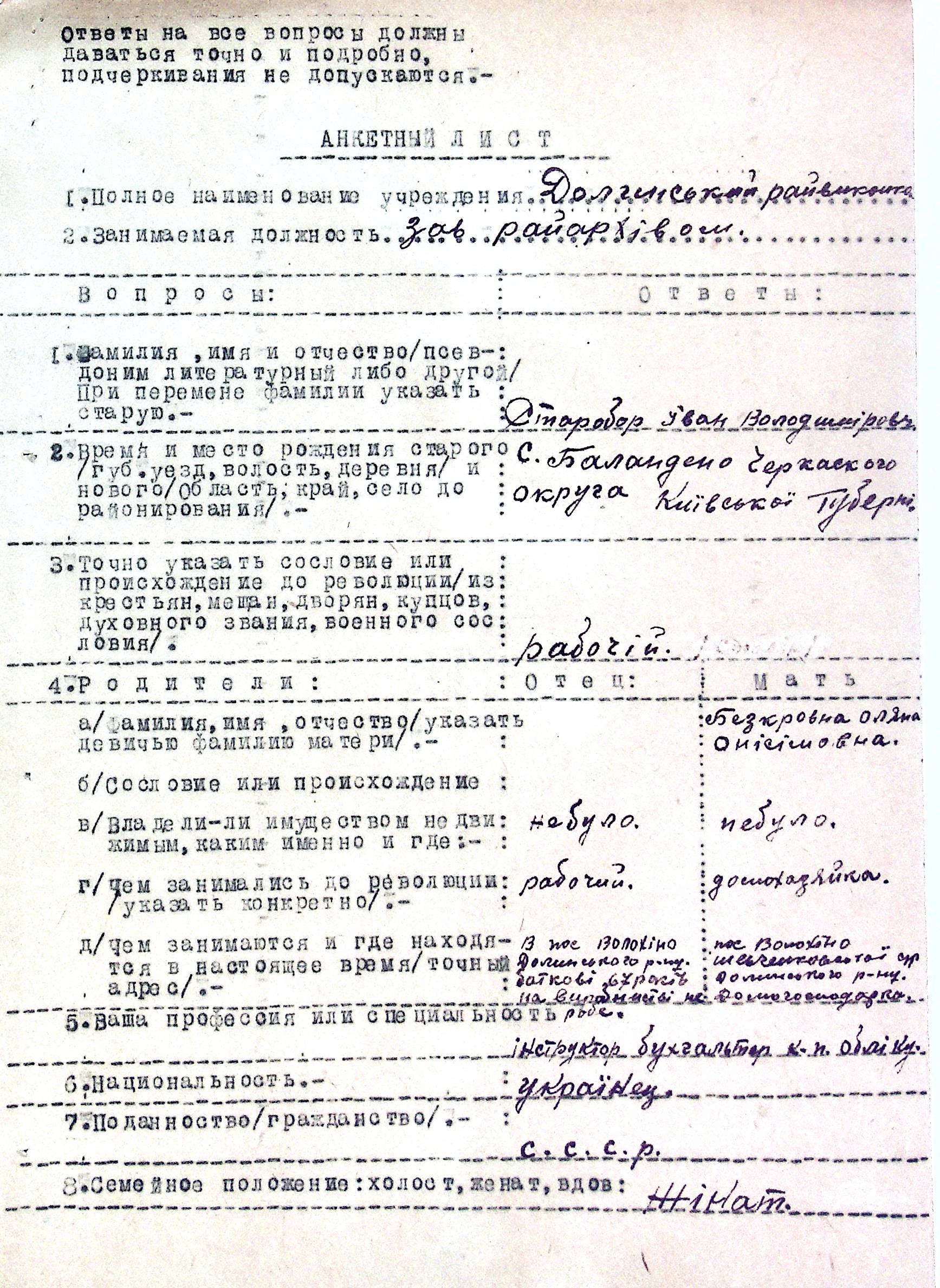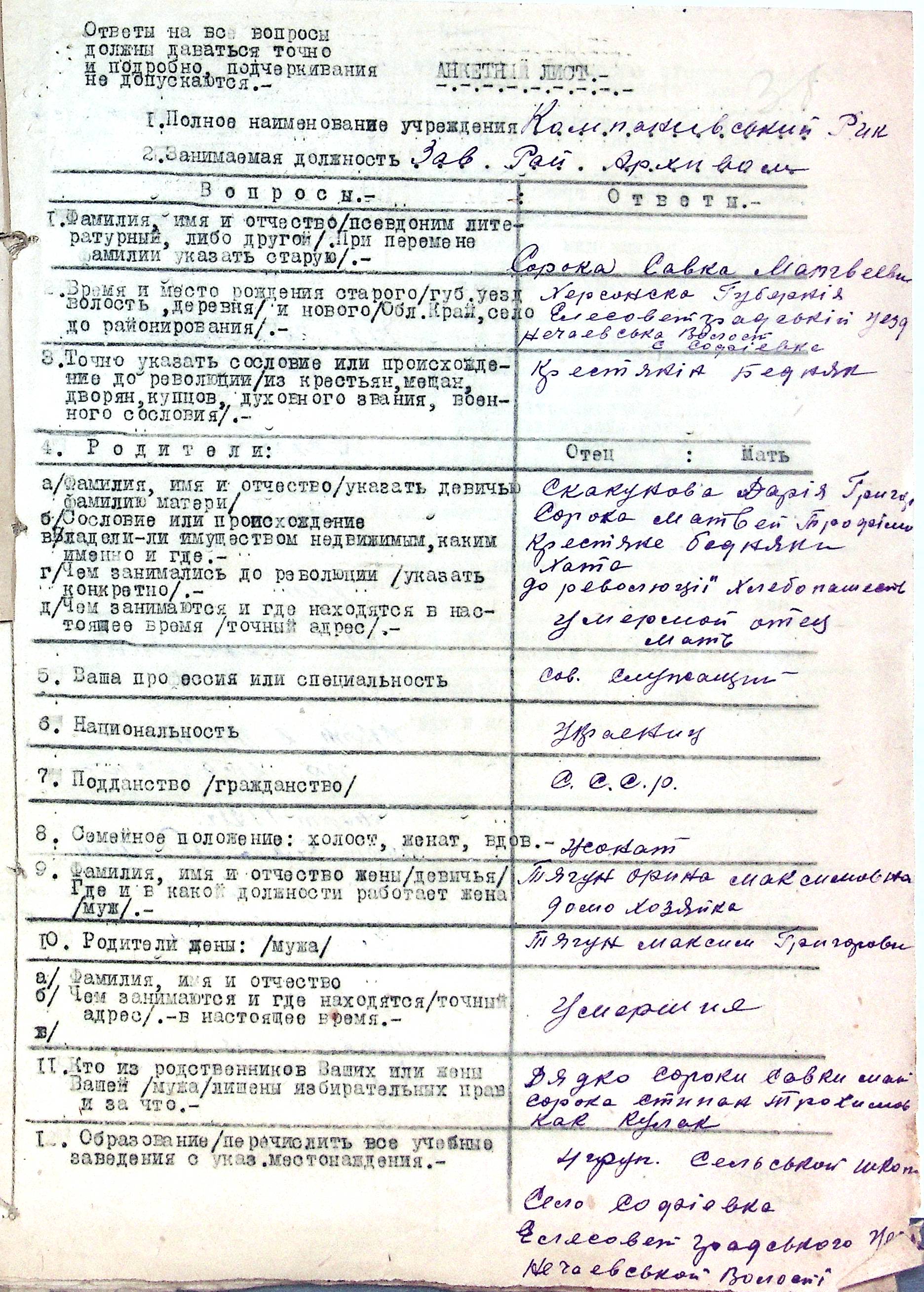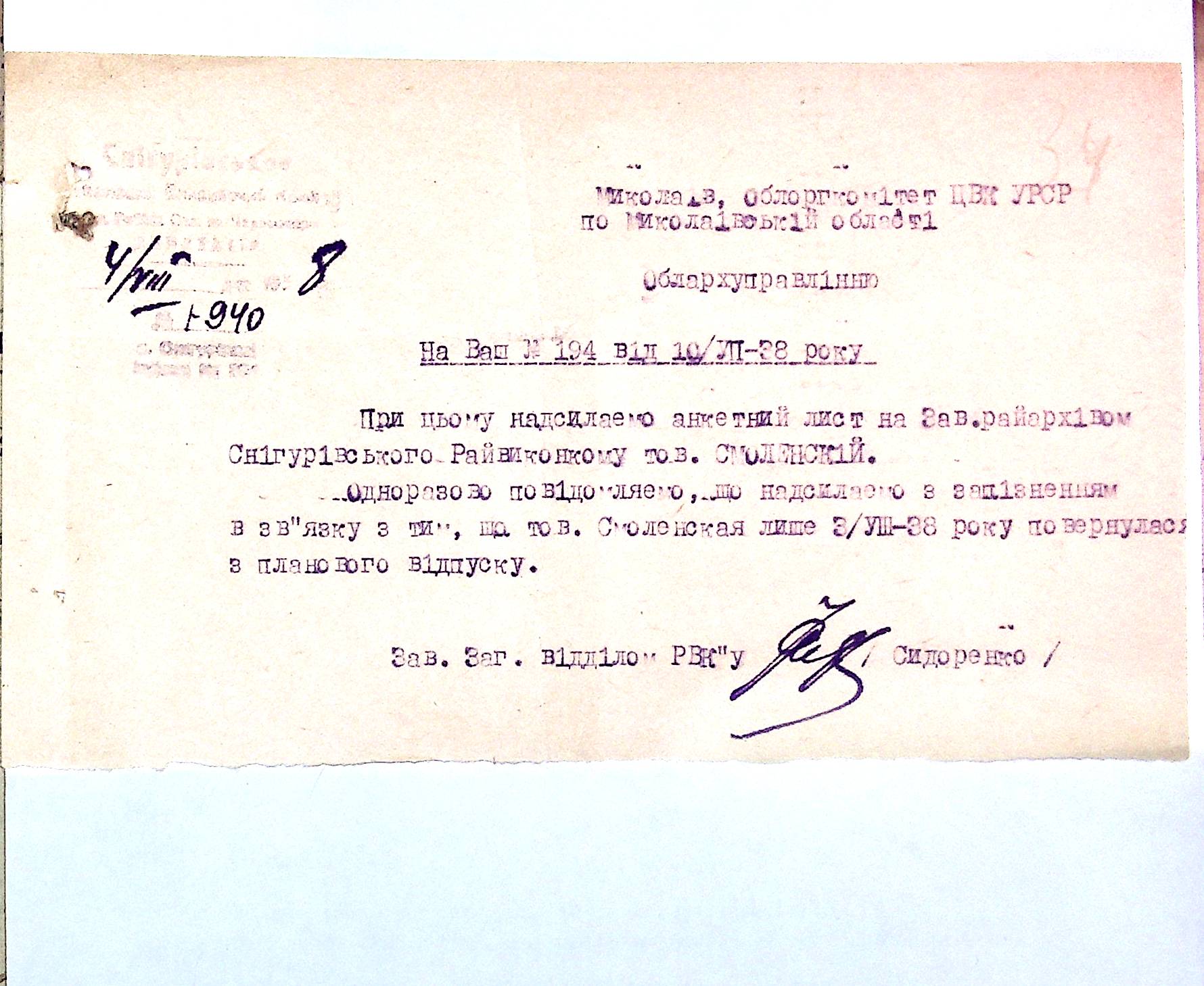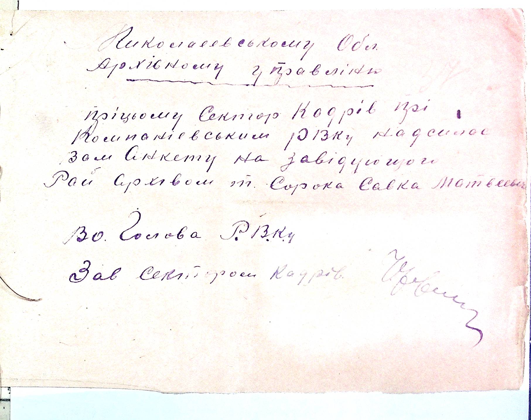 • • • • Справа № 7 “Анкети та супровідні листи до них на завідувачів міських та районних архівів”