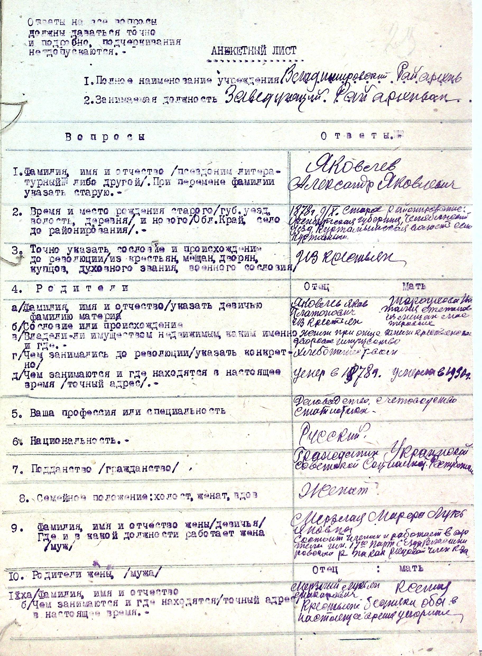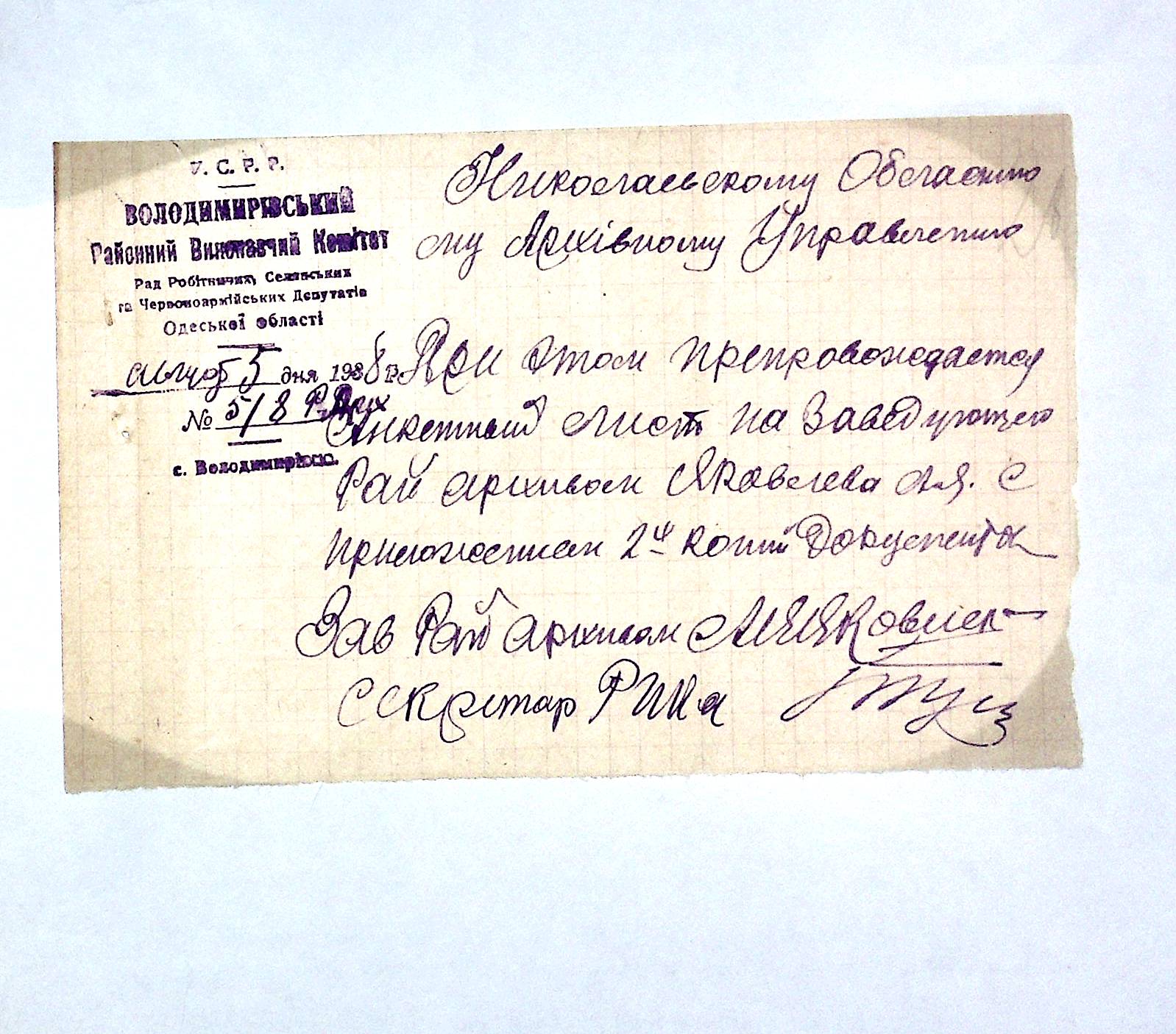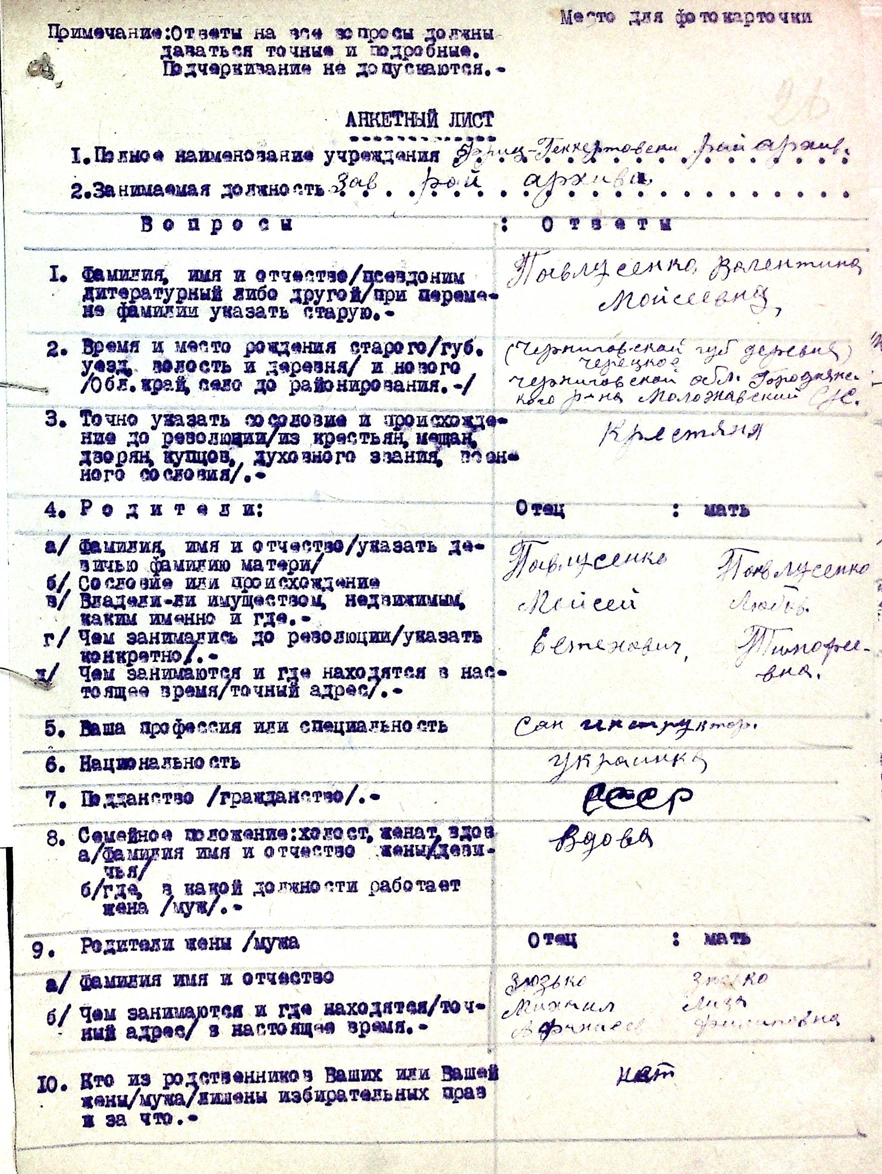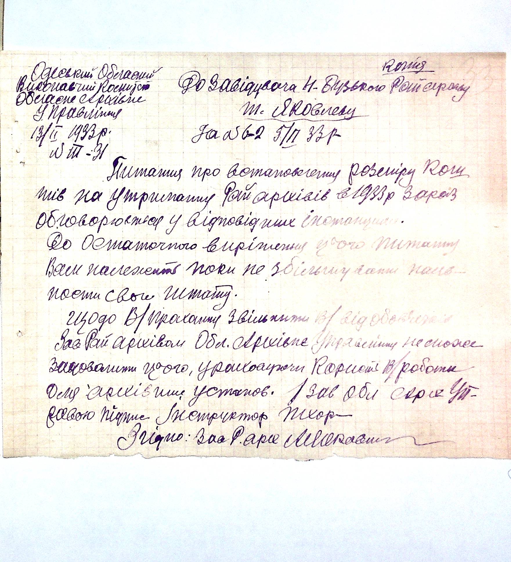 • • • • Справа № 7 “Анкети та супровідні листи до них на завідувачів міських та районних архівів”