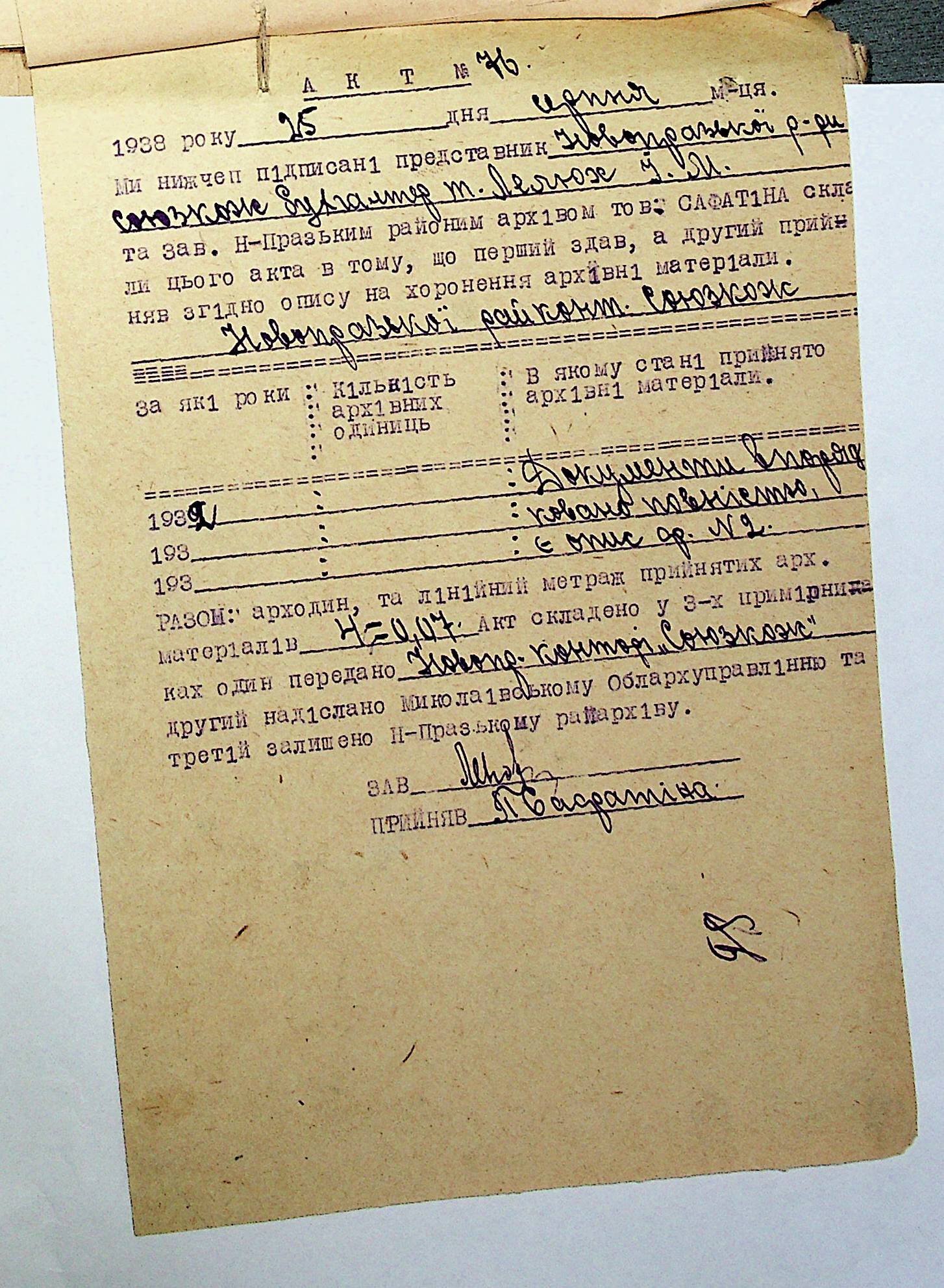 • • • • Справа № 12 “Документи (акти приймання-передавання, описи справ постійного зберігання, листування) про порядок підготовки і передавання документів на державне зберігання до історичних архівів”