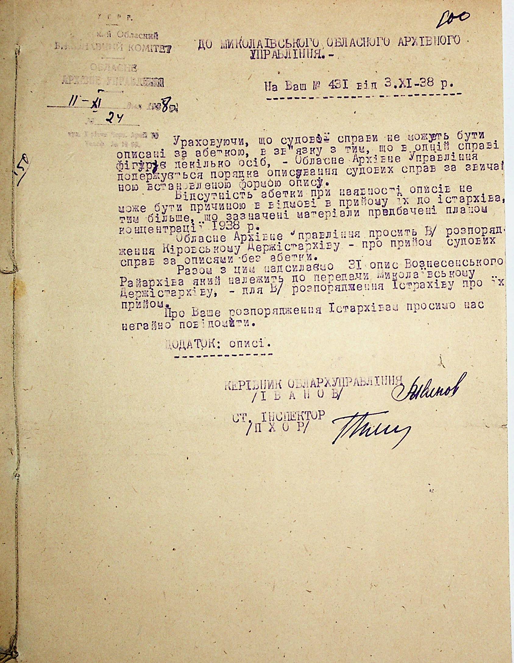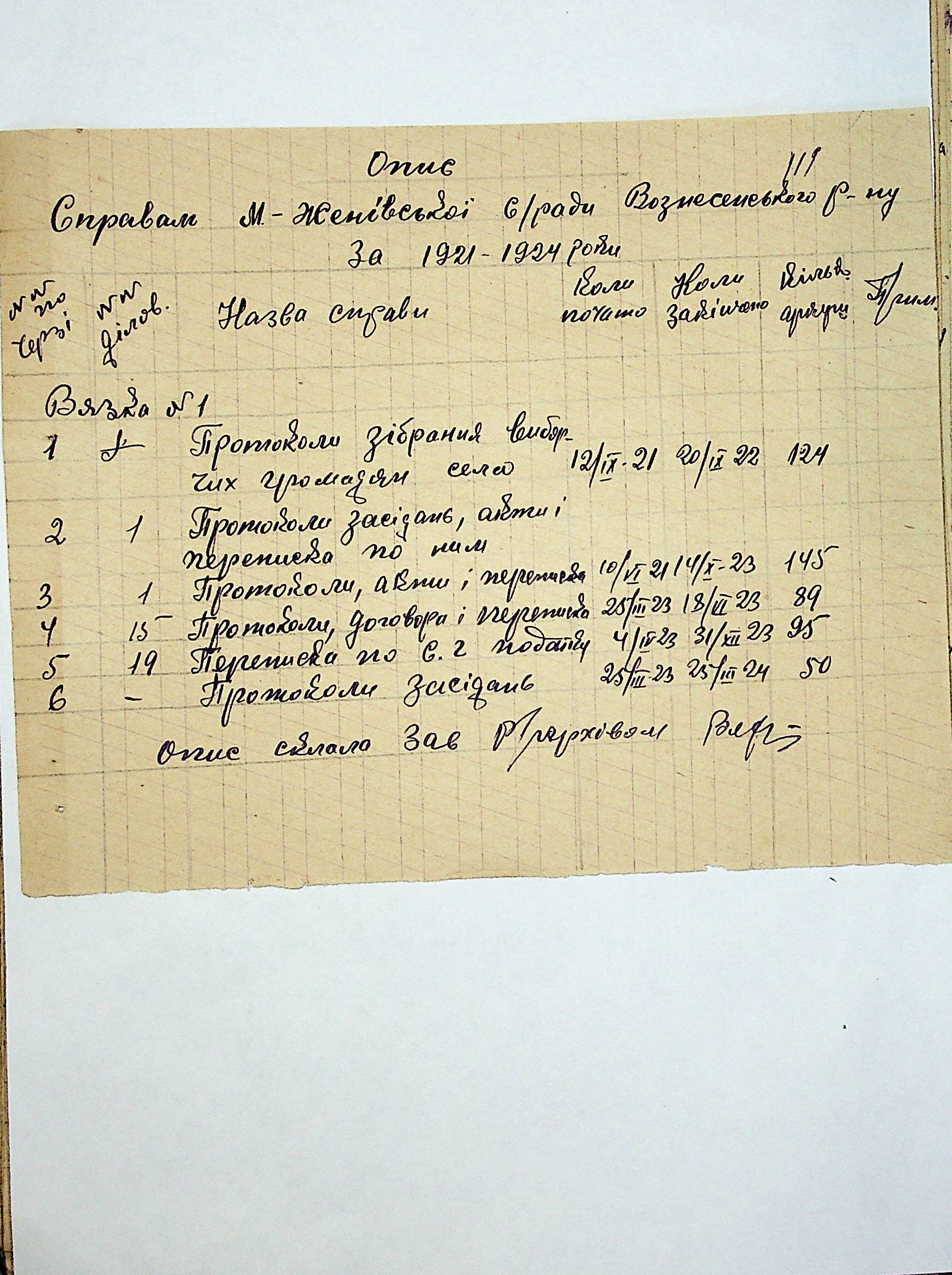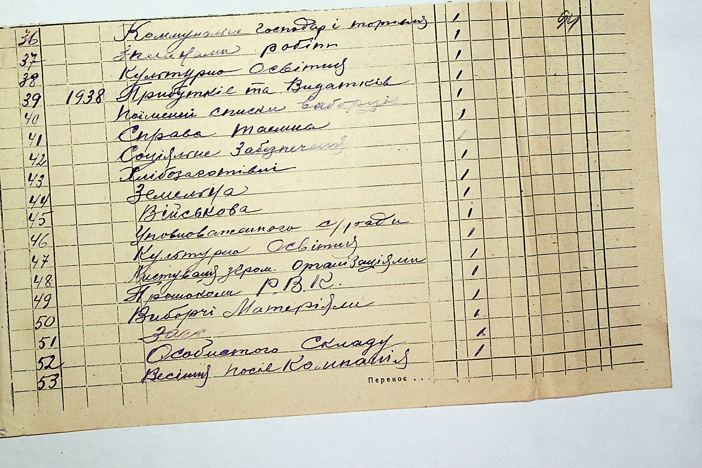 ◦ ◦ ◦ Опис № 1 справ постійного зберігання за 1938 – 1941 роки