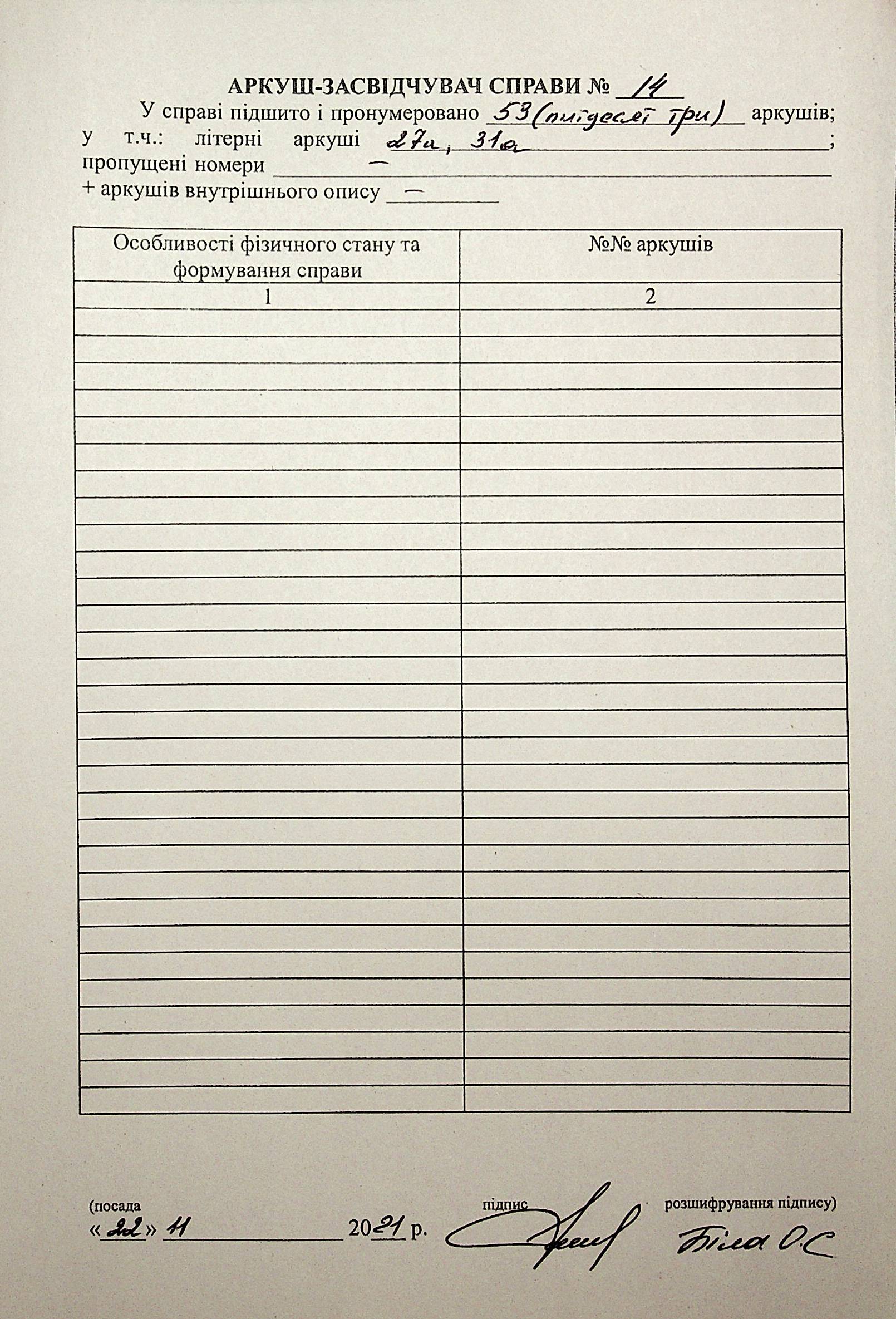 • • • • Справа № 14 “Накази начальника відділу з основної діяльності та кадрових питань”