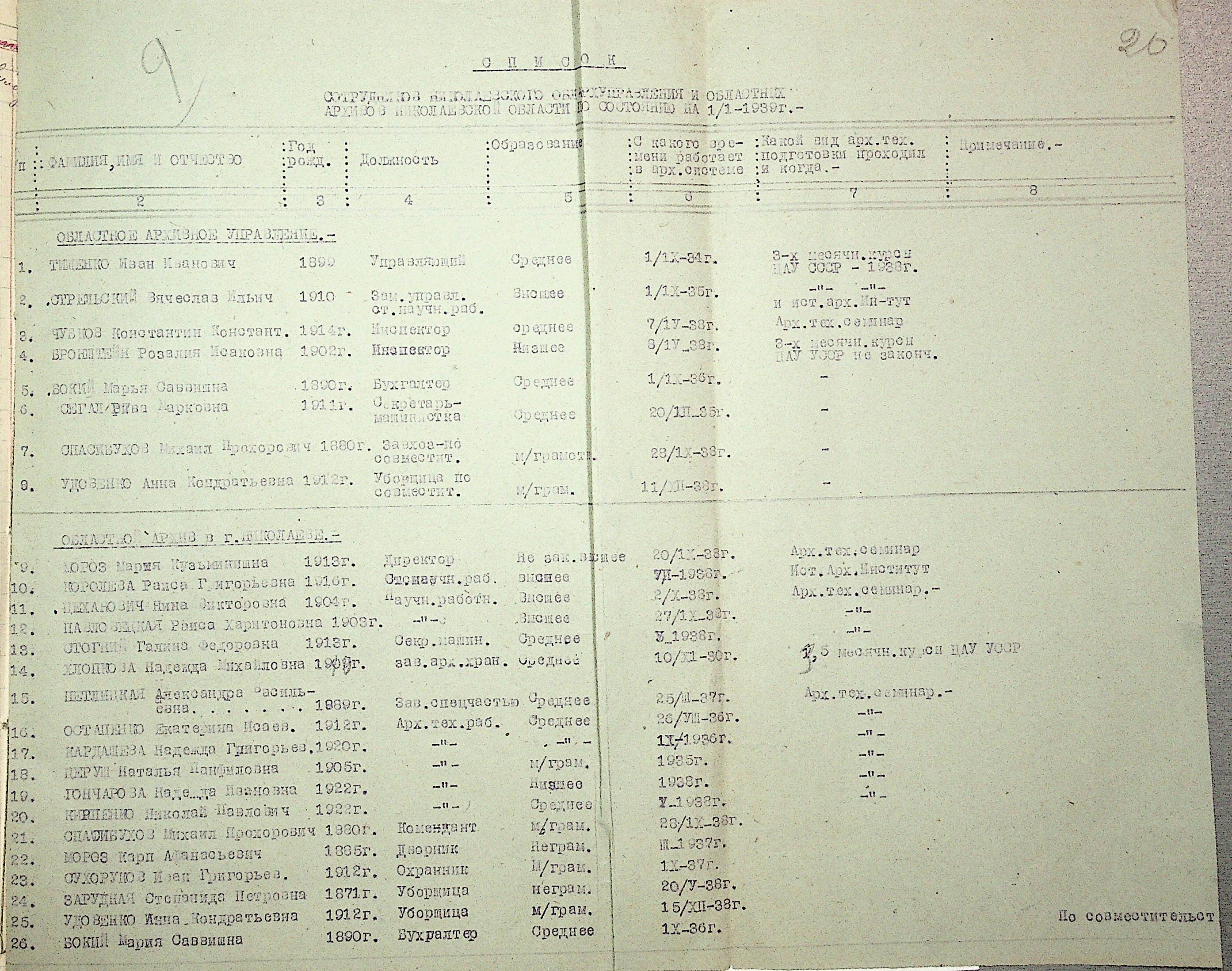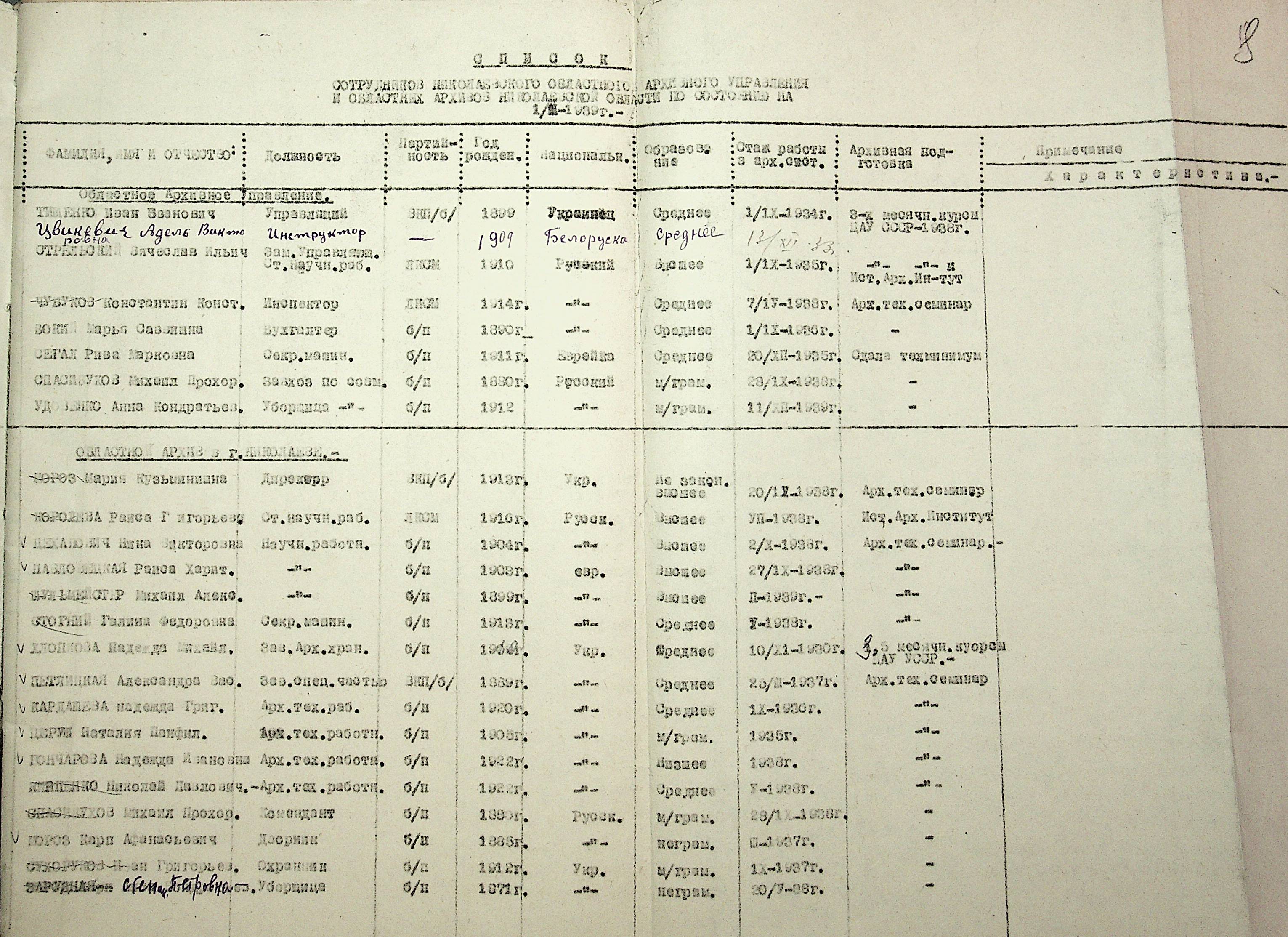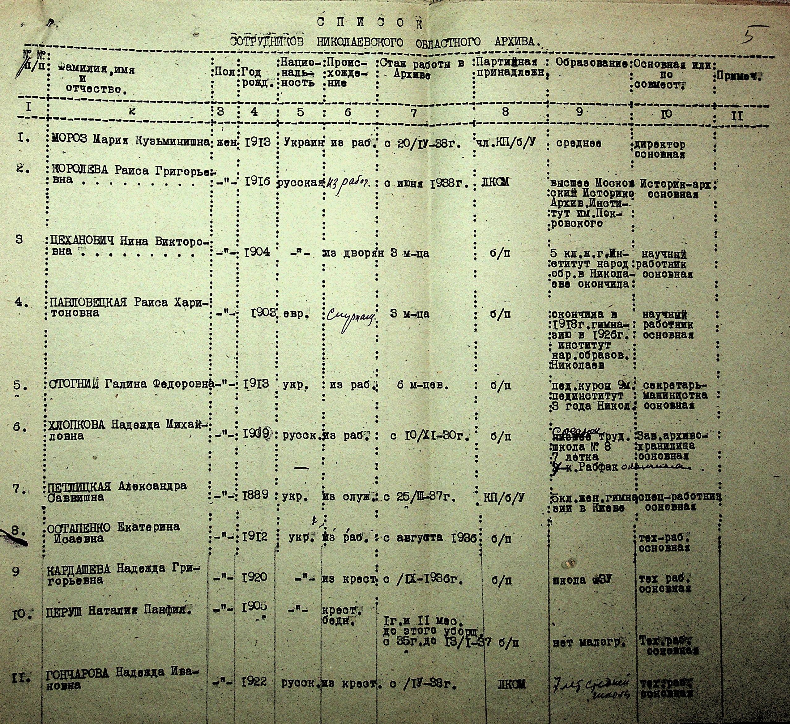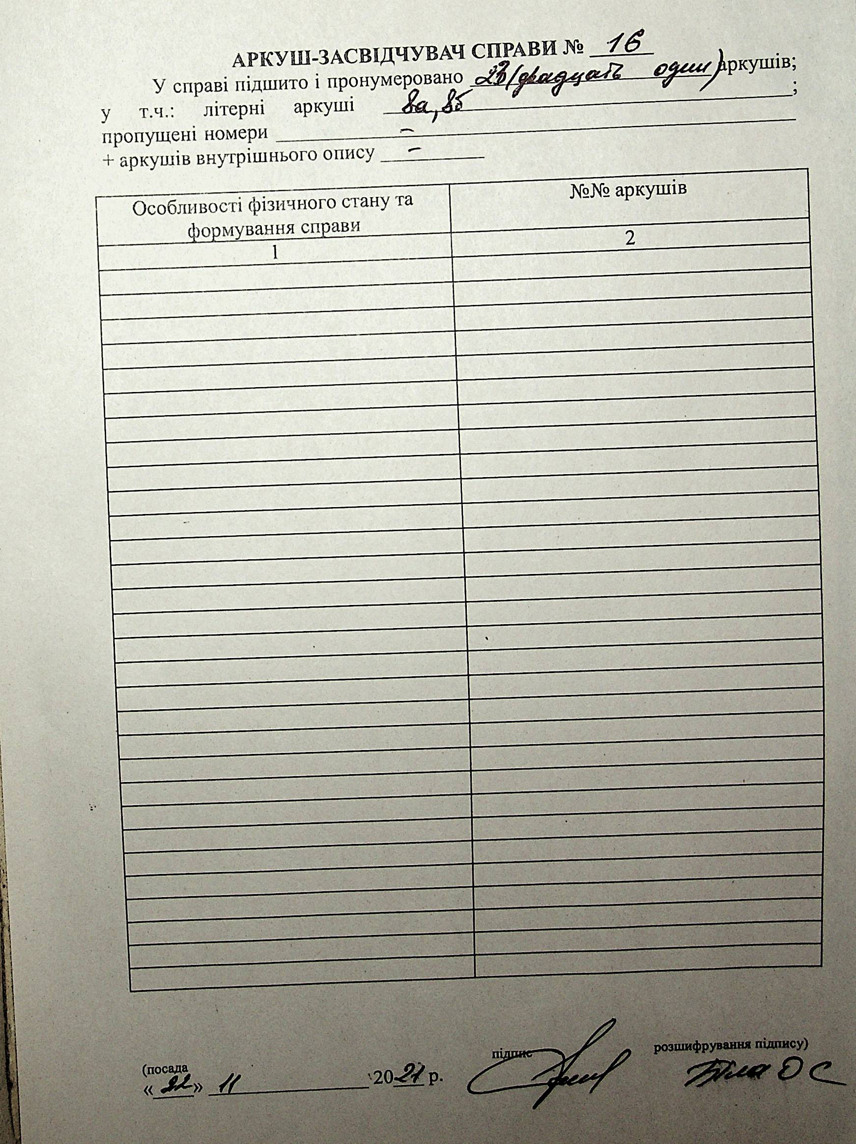 • • • • Справа № 16 “Документи (списки, анкета, автобіографія, довідка, посвідчення) співробітників Миколаївського обласного архівного управління та державних історичних архівів Миколаївської області”