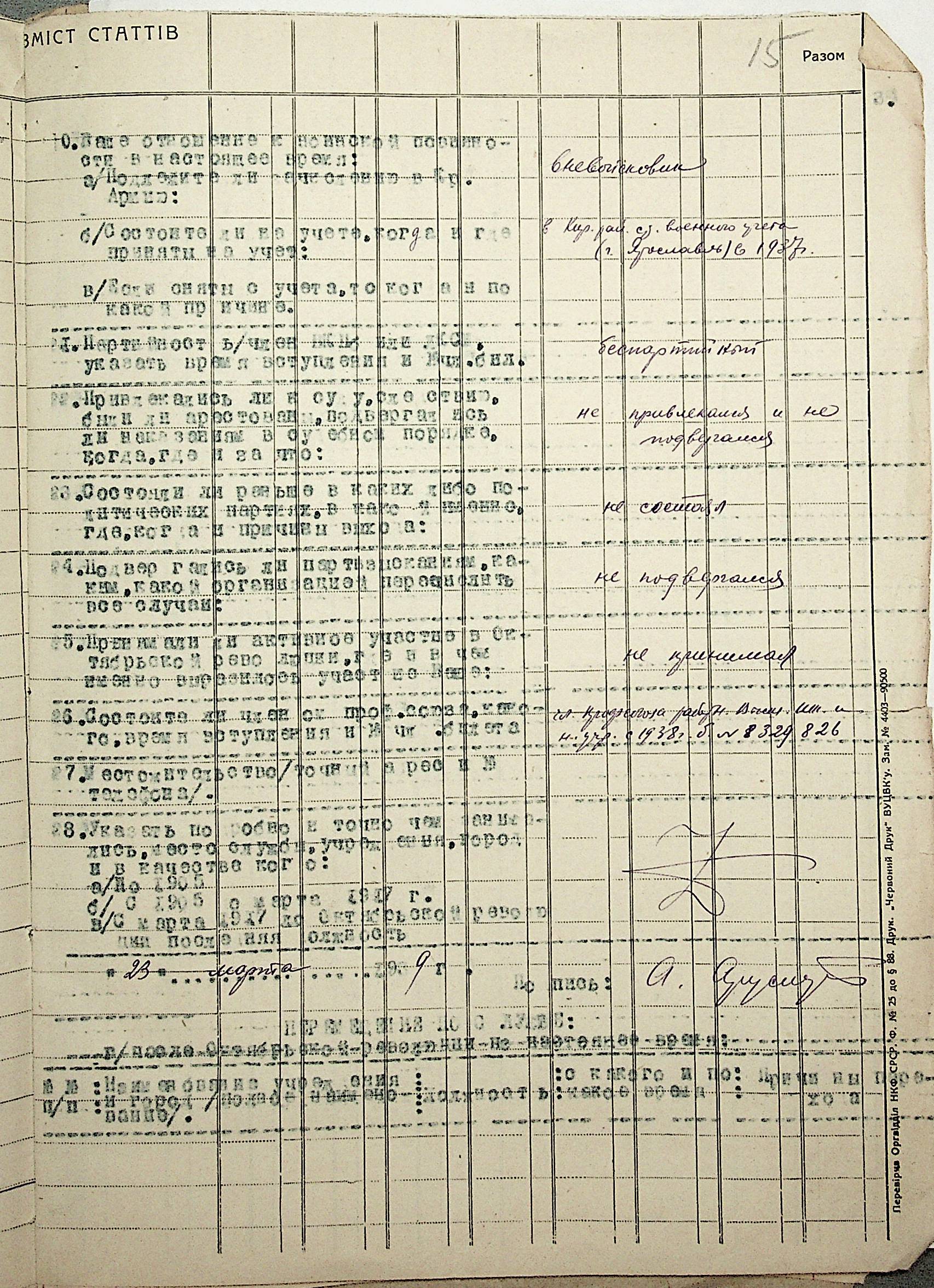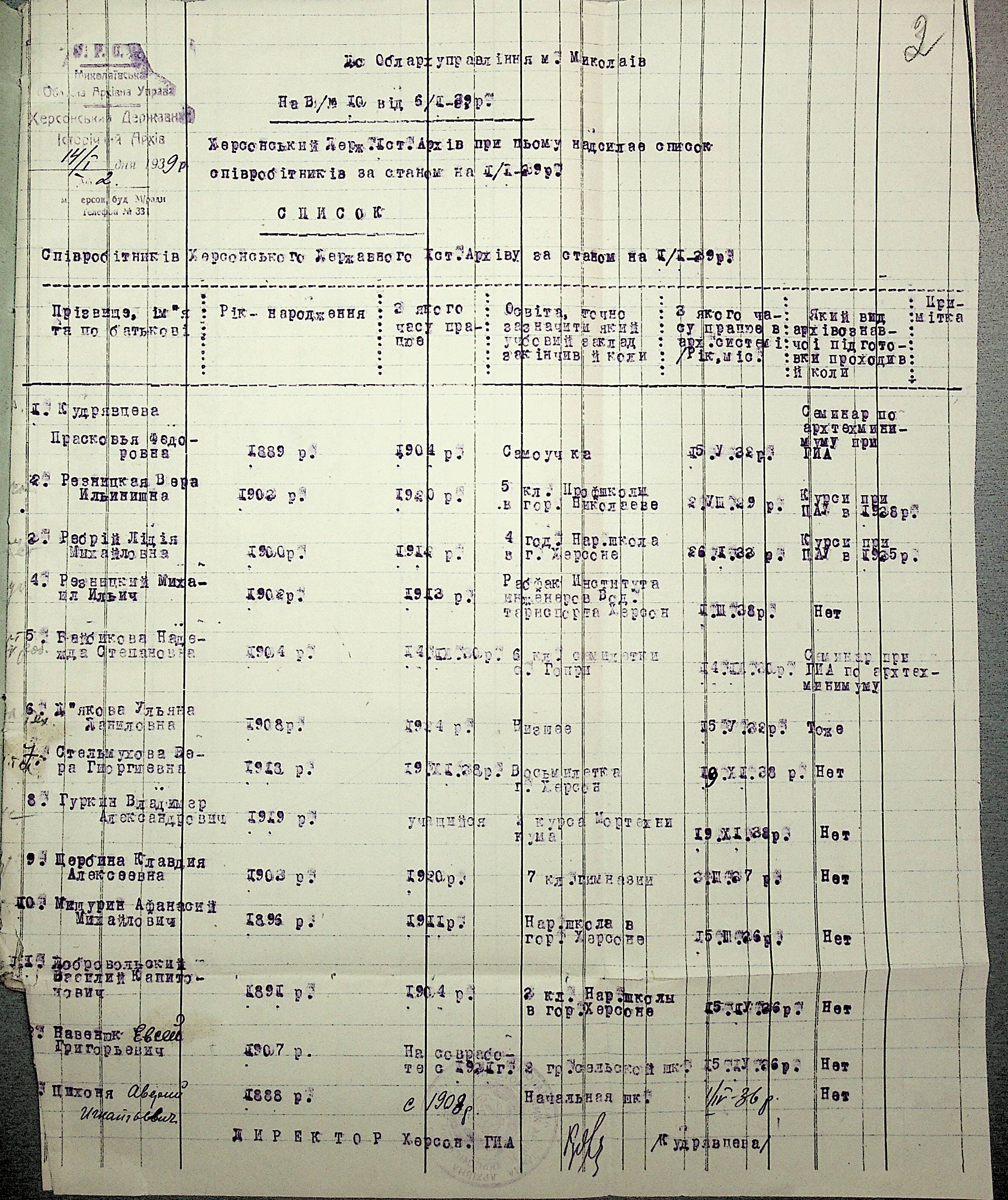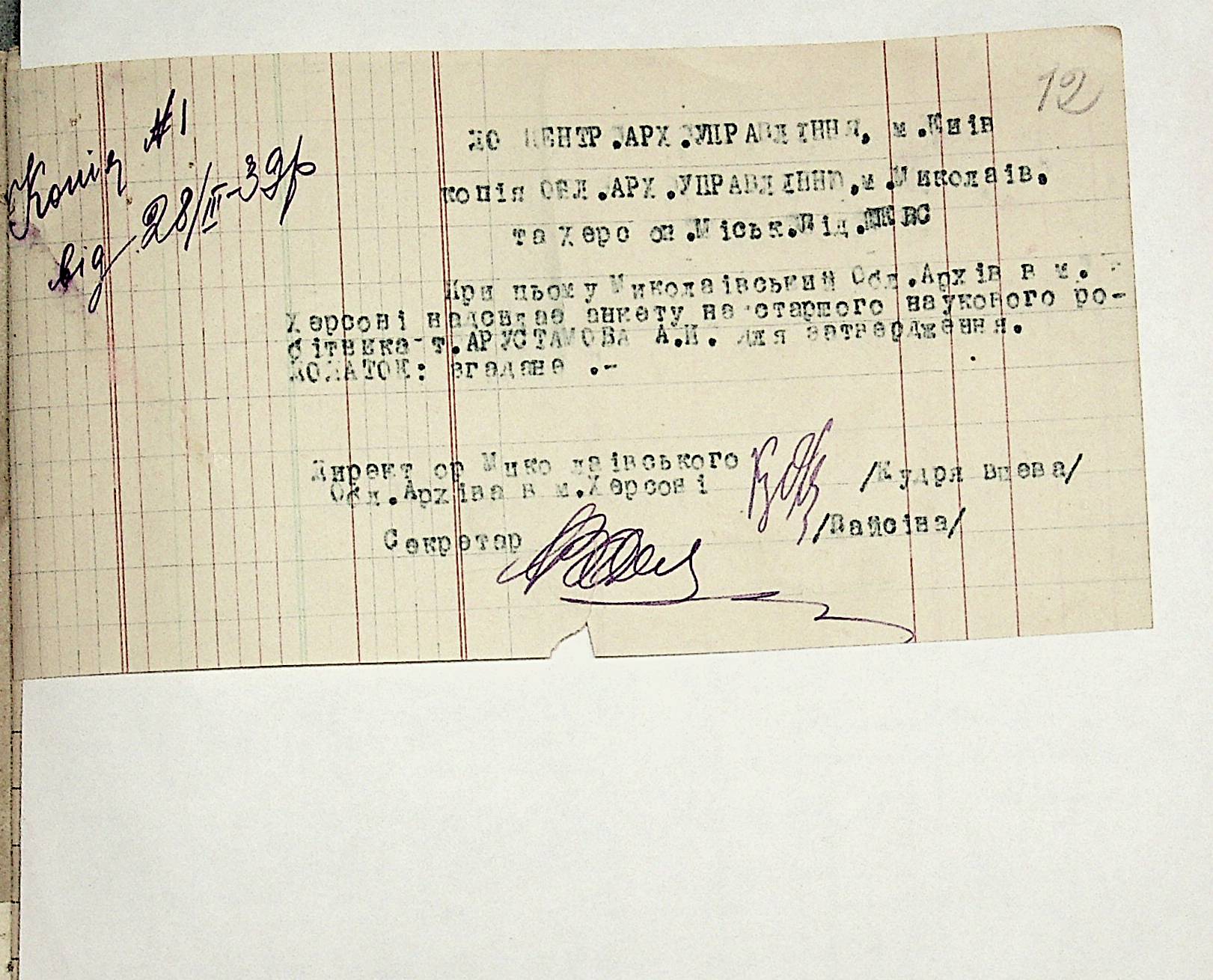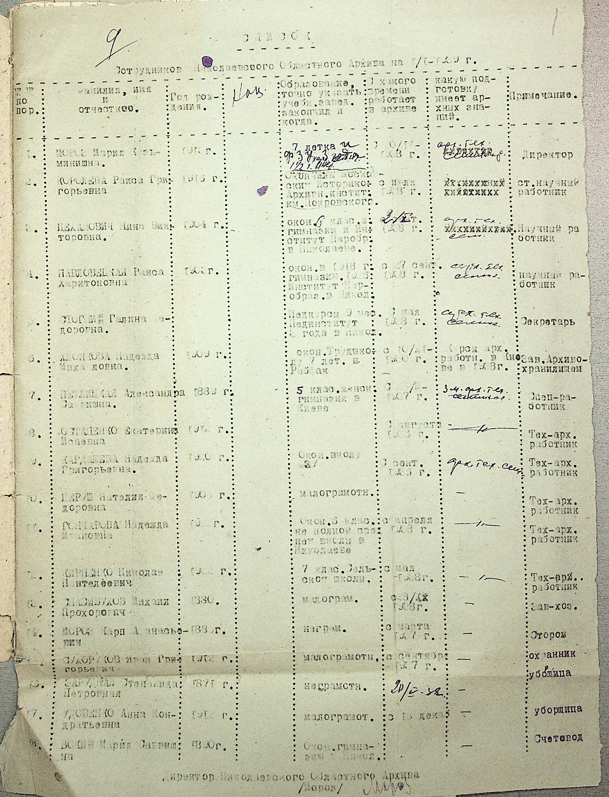 • • • • Справа № 16 “Документи (списки, анкета, автобіографія, довідка, посвідчення) співробітників Миколаївського обласного архівного управління та державних історичних архівів Миколаївської області”