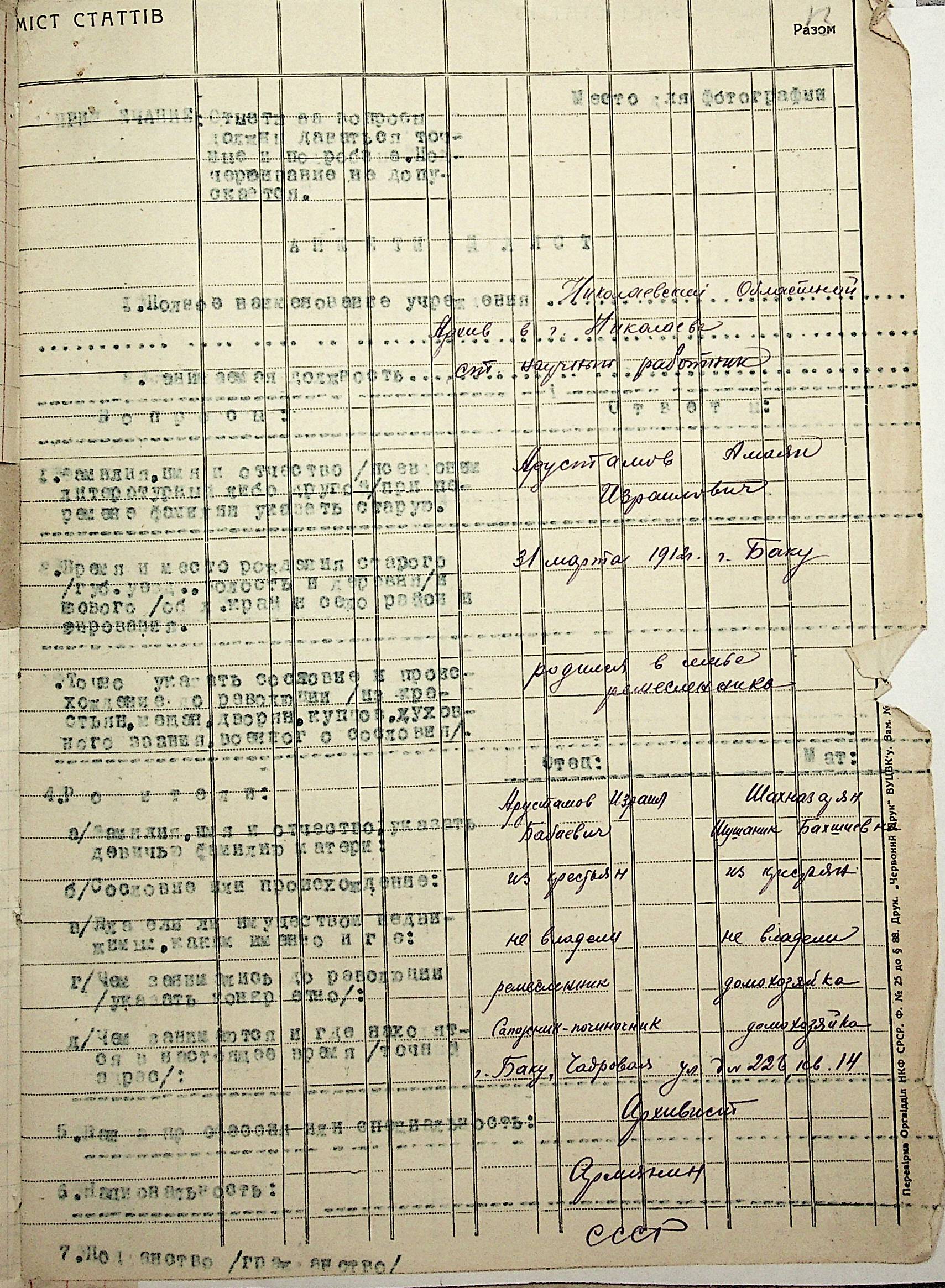 ◦ ◦ Фонд № Р-1002 “Архівний відділ управління виконкому Миколаївської обласної Ради народних депутатів, м. Миколаїв”