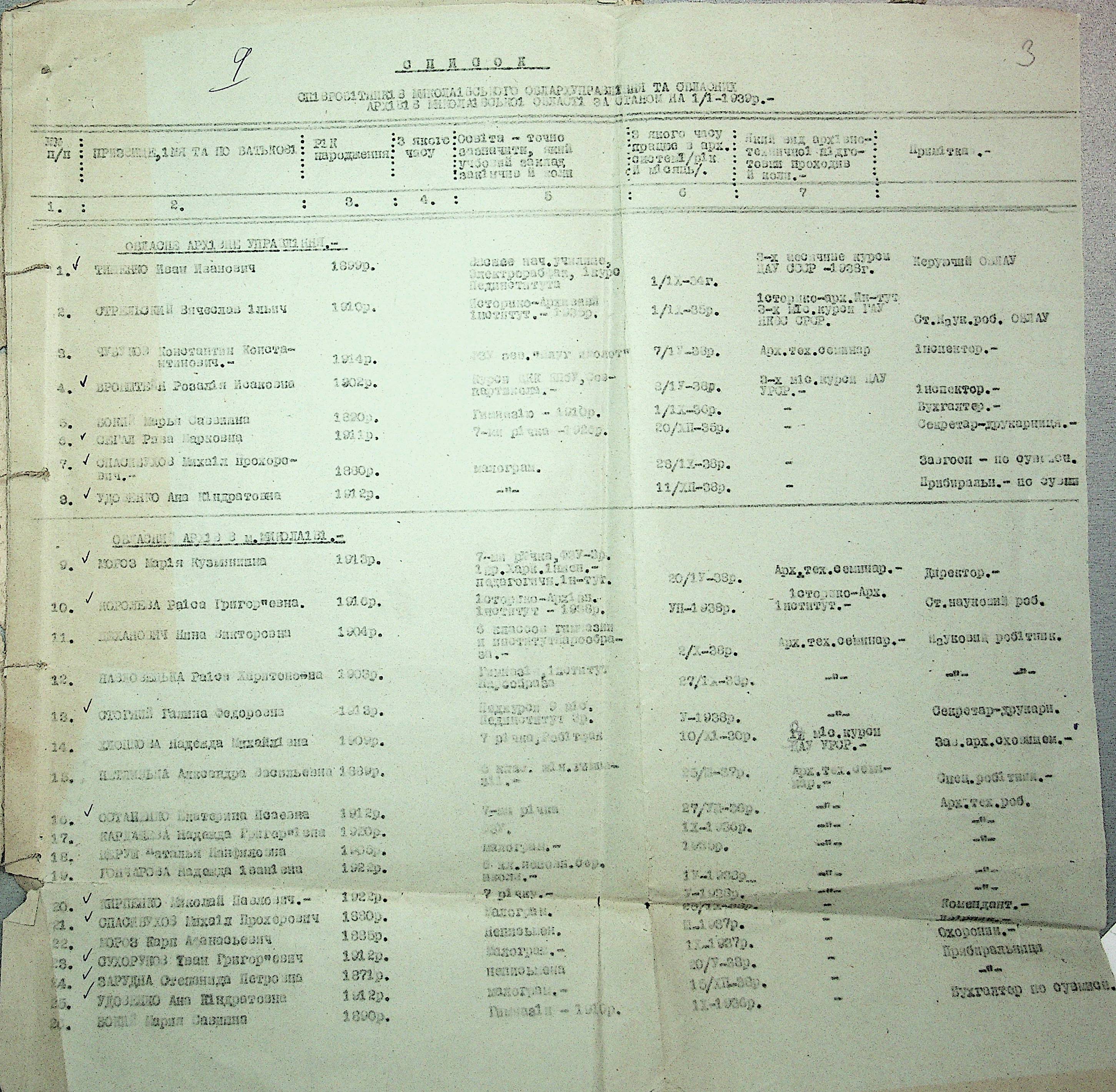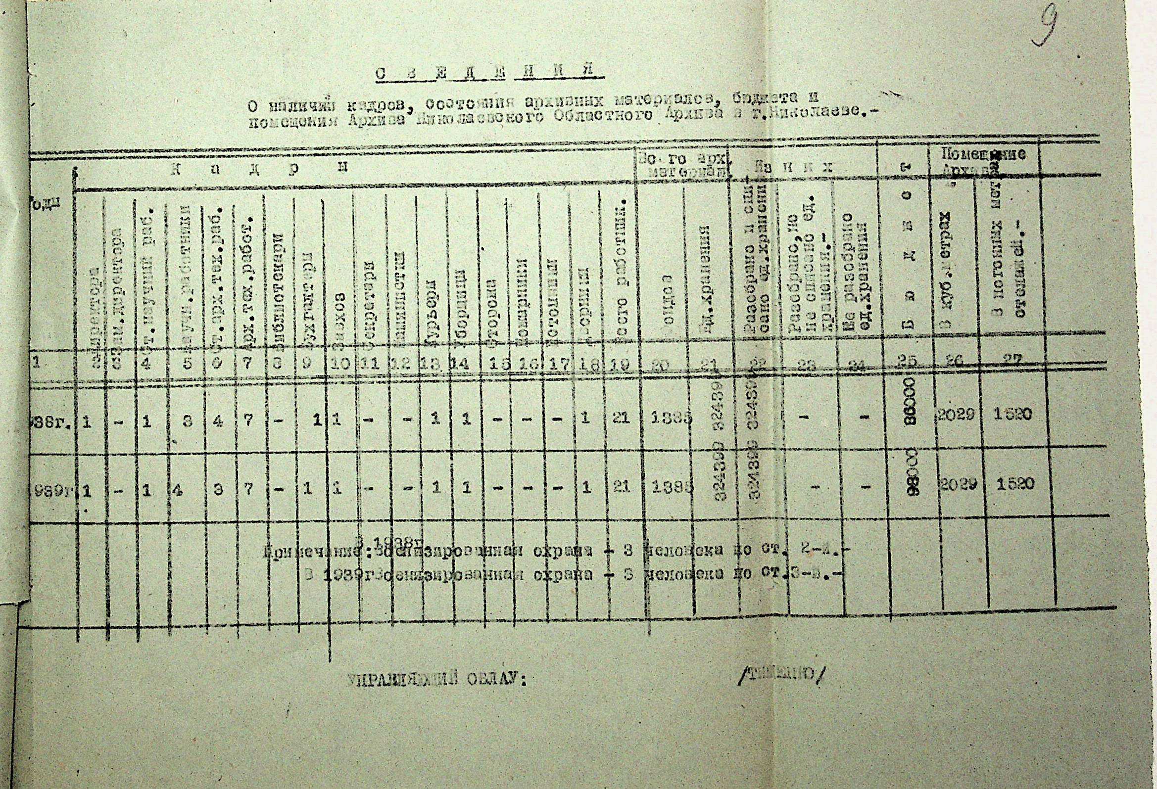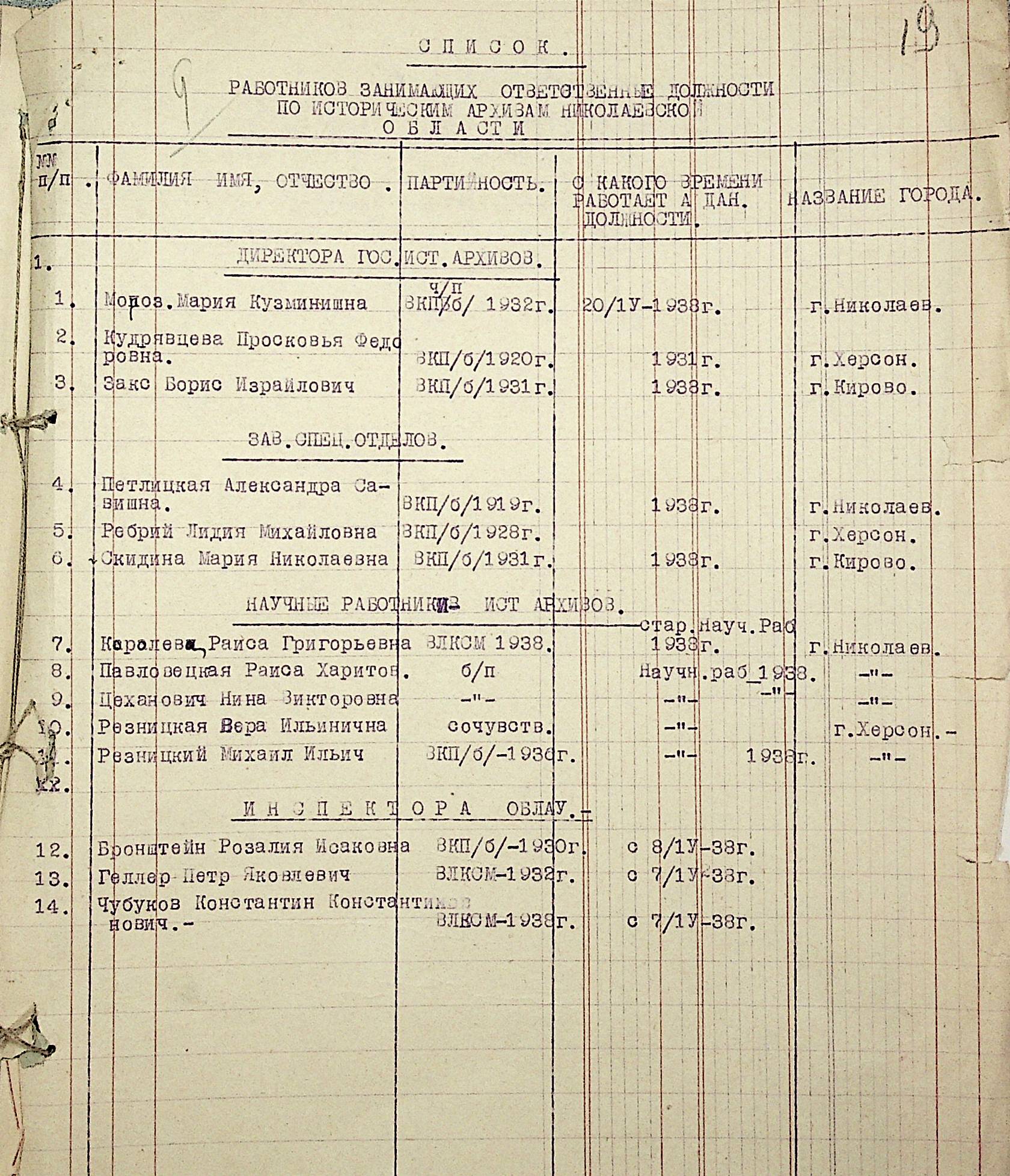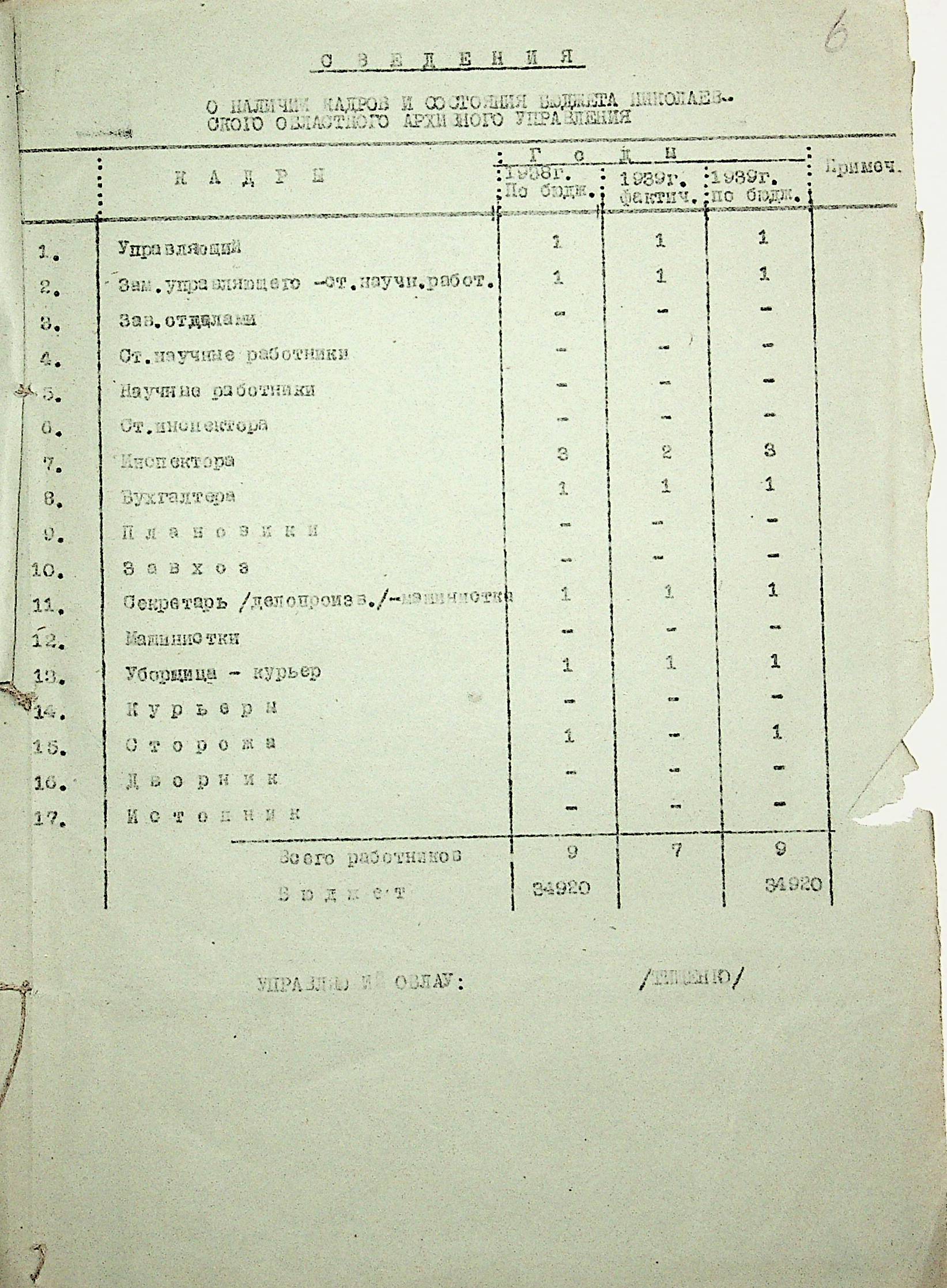 • • • • Справа № 19 “Списки співробітників Миколаївського обласного архівного управління та державних історичних архівів Миколаївської області. Відомості про наявність кадрів та стан бюджету управління, виконання архівно-технічної роботи в історичних архівах”