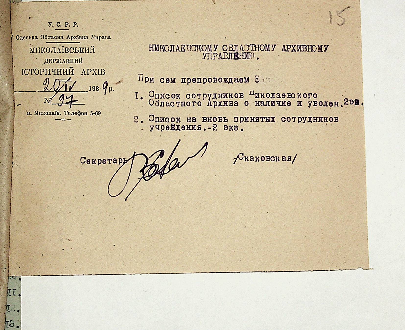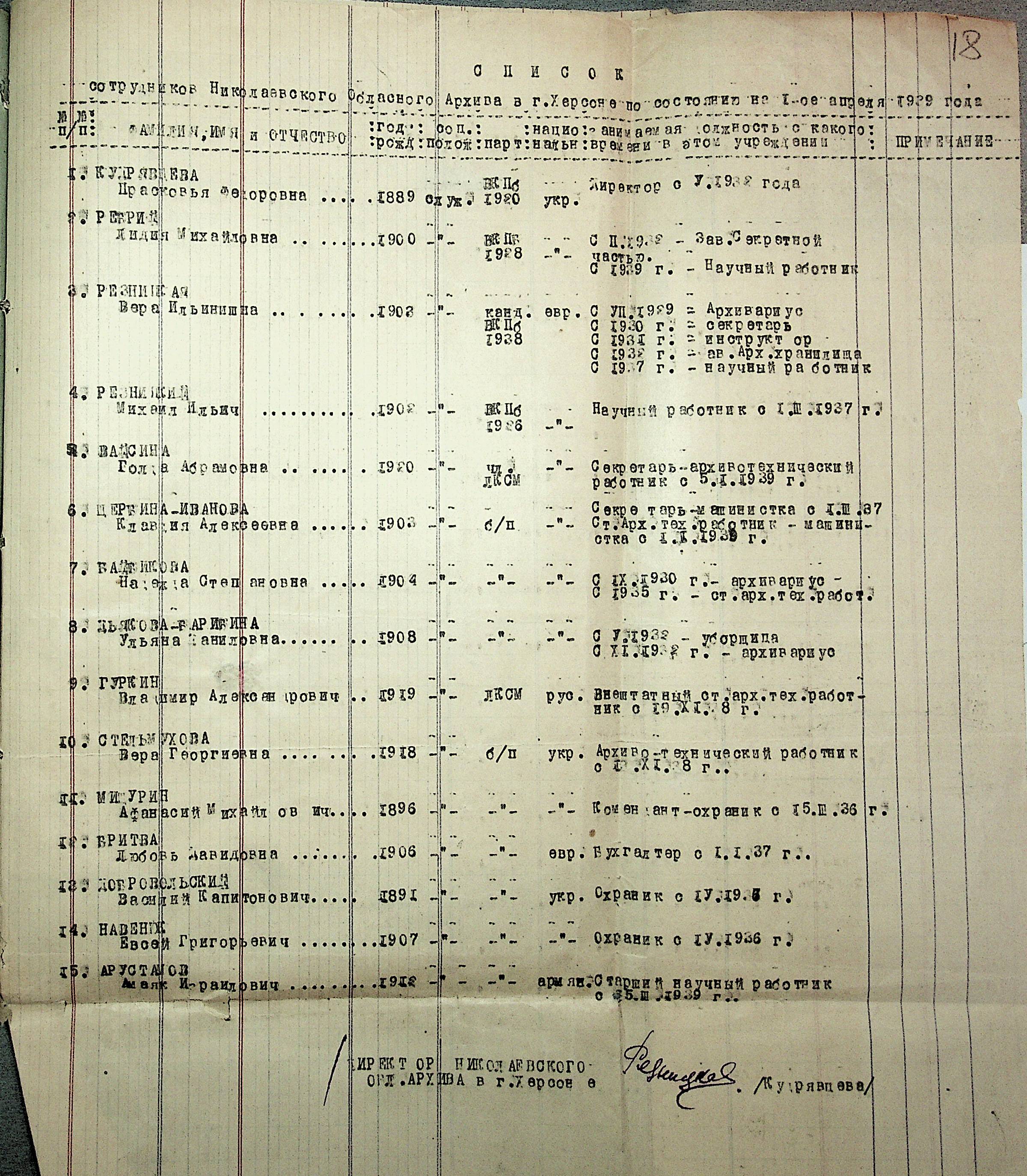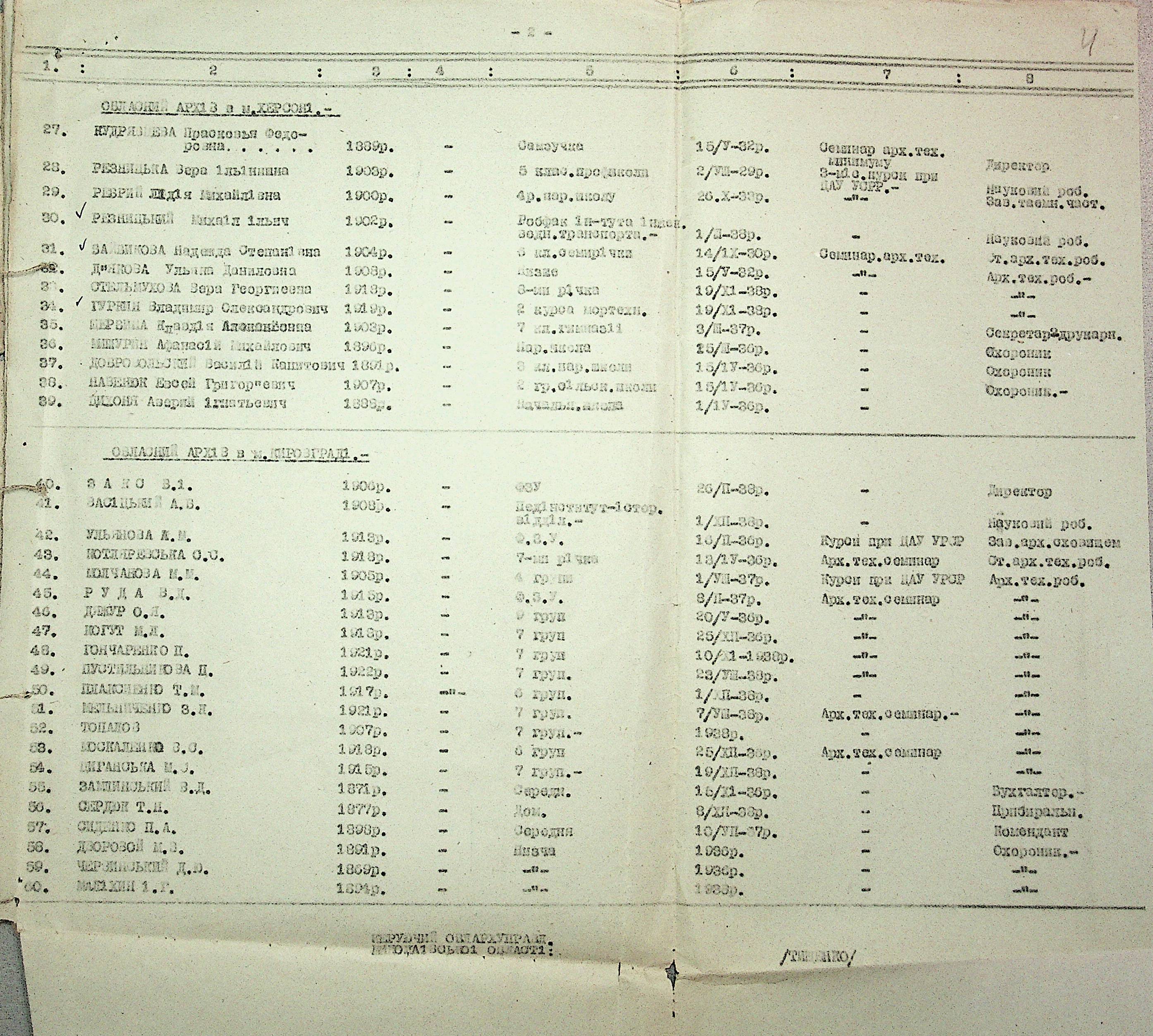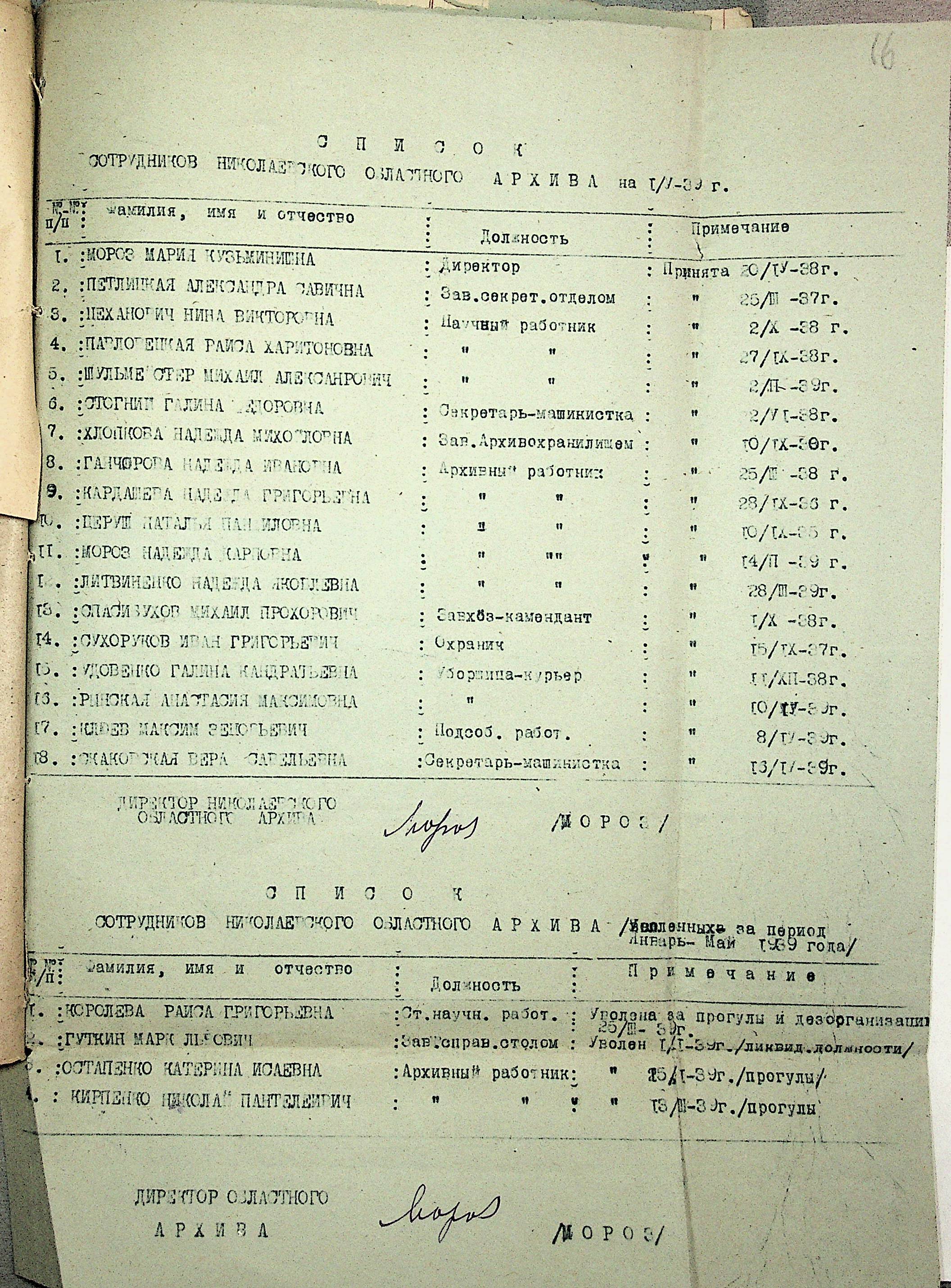 • • • • Справа № 19 “Списки співробітників Миколаївського обласного архівного управління та державних історичних архівів Миколаївської області. Відомості про наявність кадрів та стан бюджету управління, виконання архівно-технічної роботи в історичних архівах”