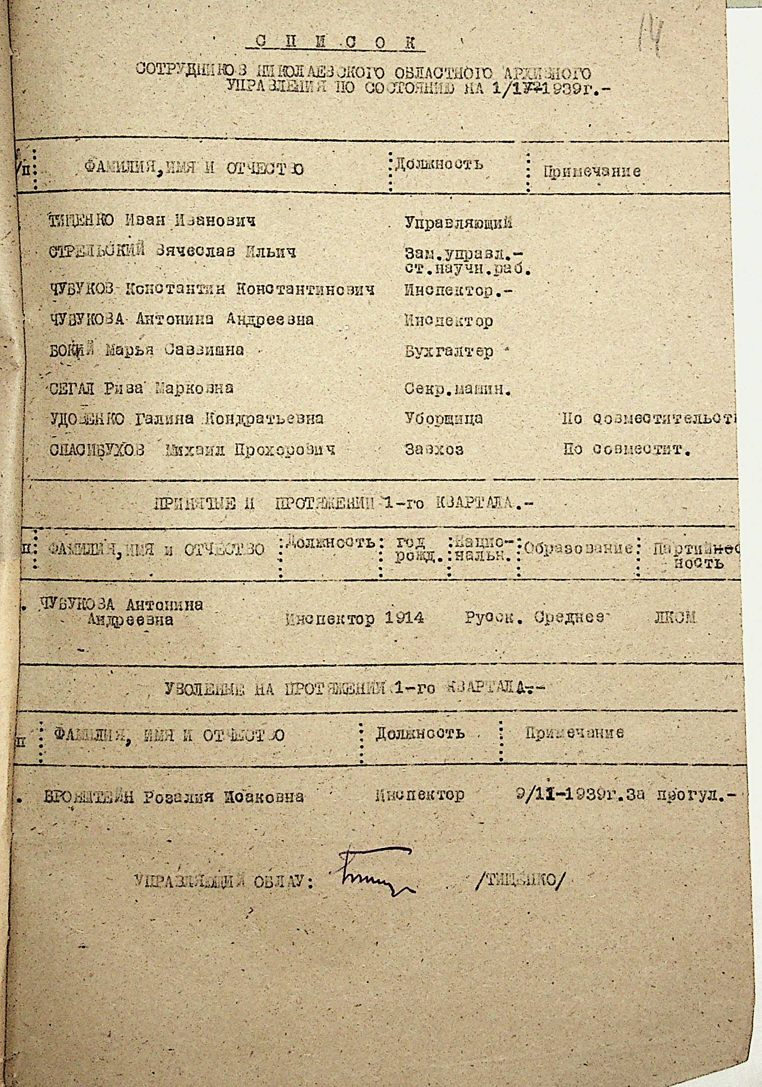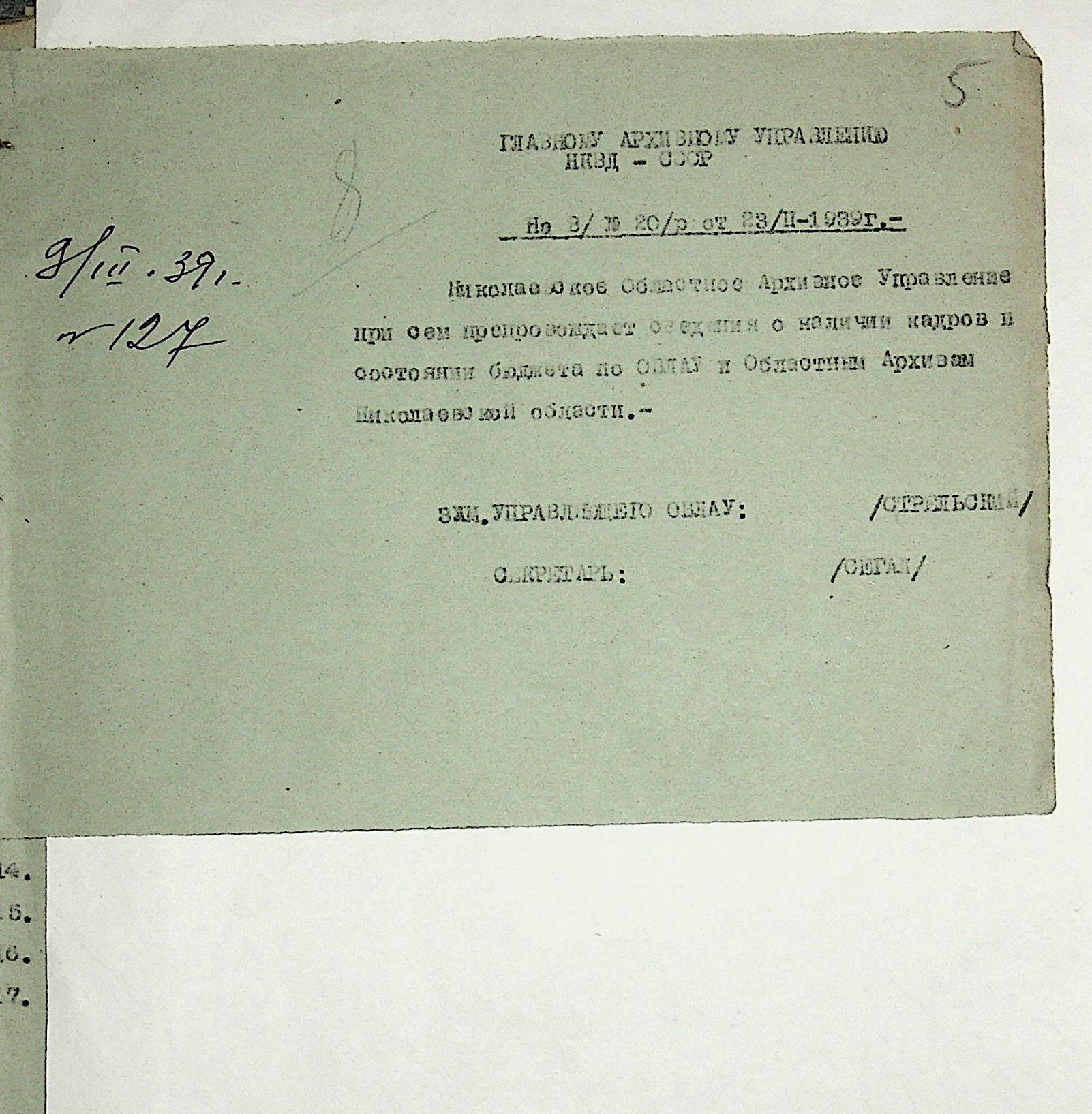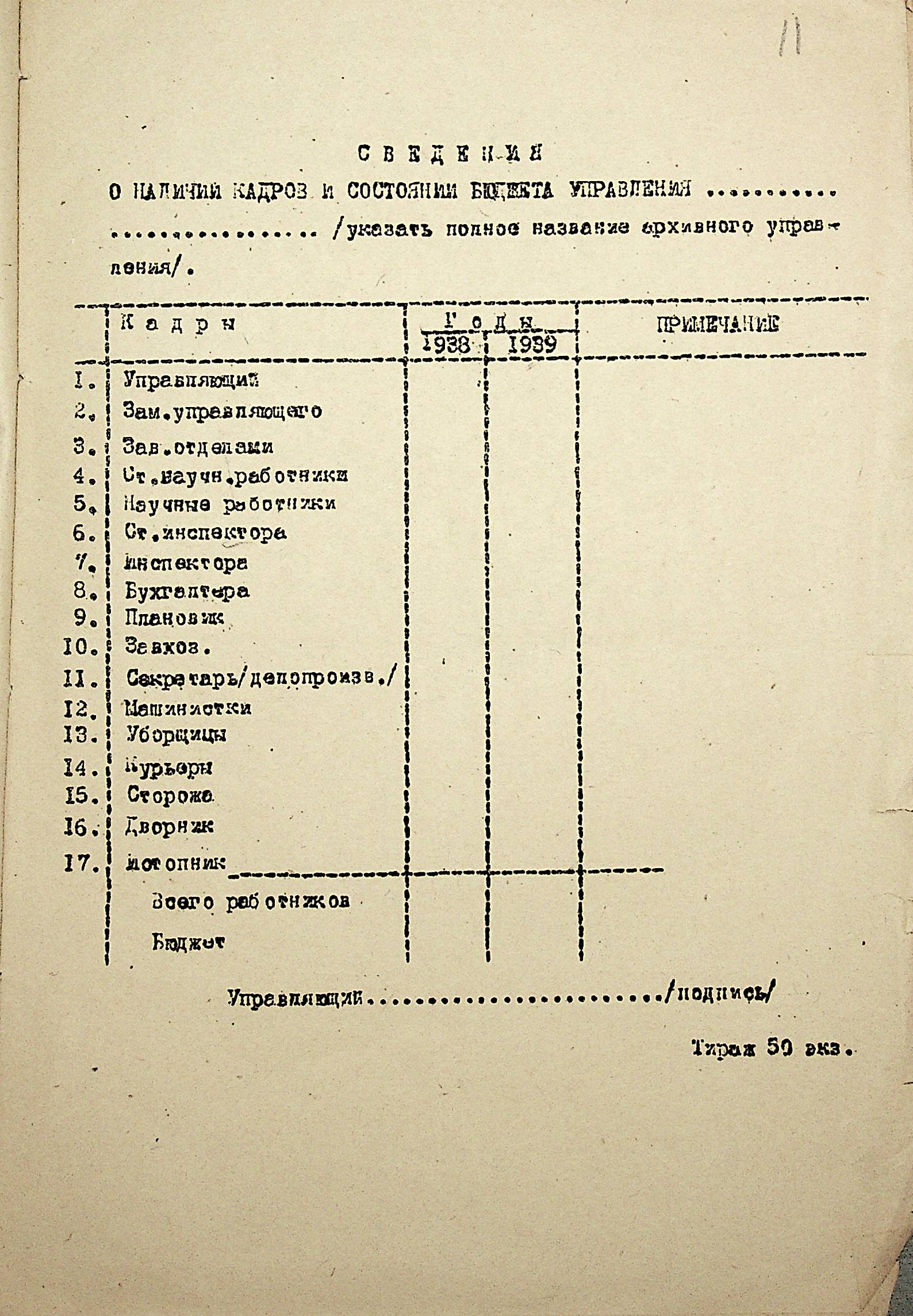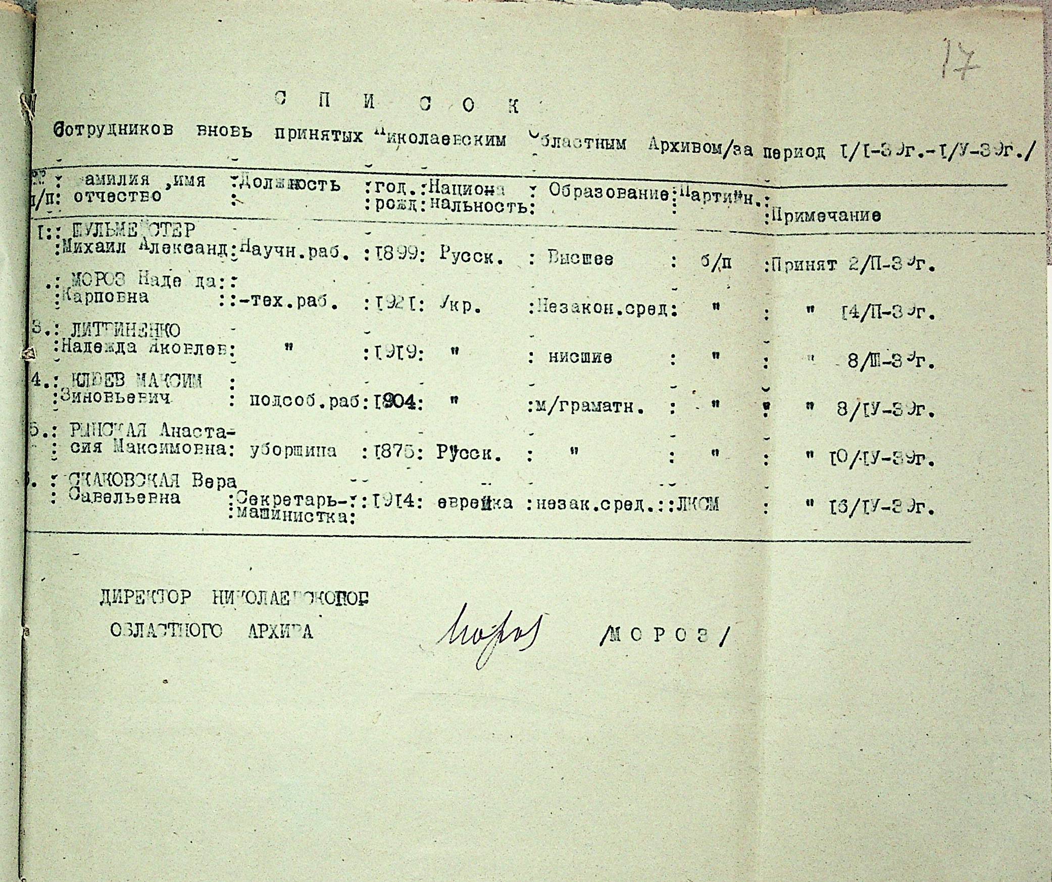 • • • • Справа № 19 “Списки співробітників Миколаївського обласного архівного управління та державних історичних архівів Миколаївської області. Відомості про наявність кадрів та стан бюджету управління, виконання архівно-технічної роботи в історичних архівах”