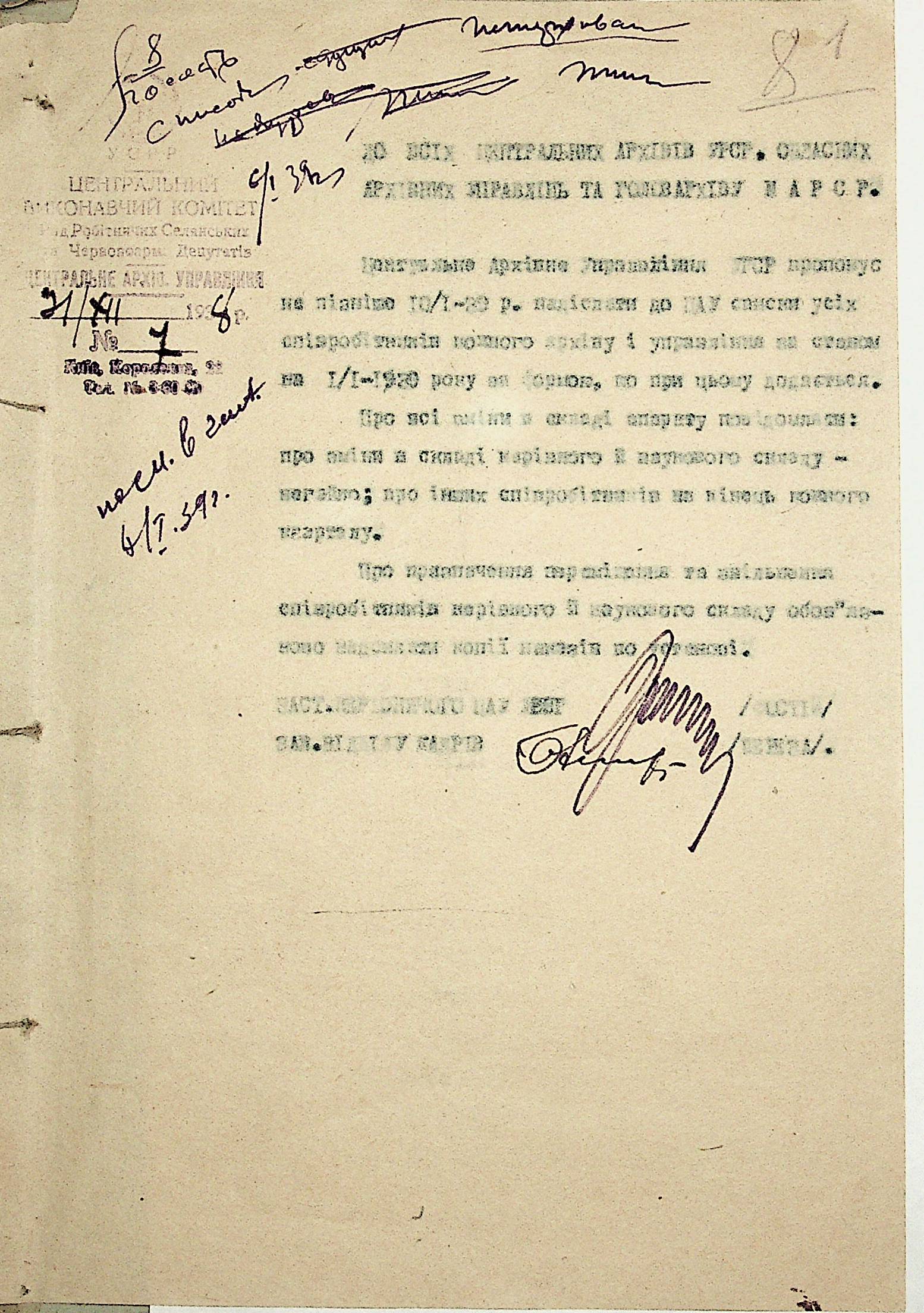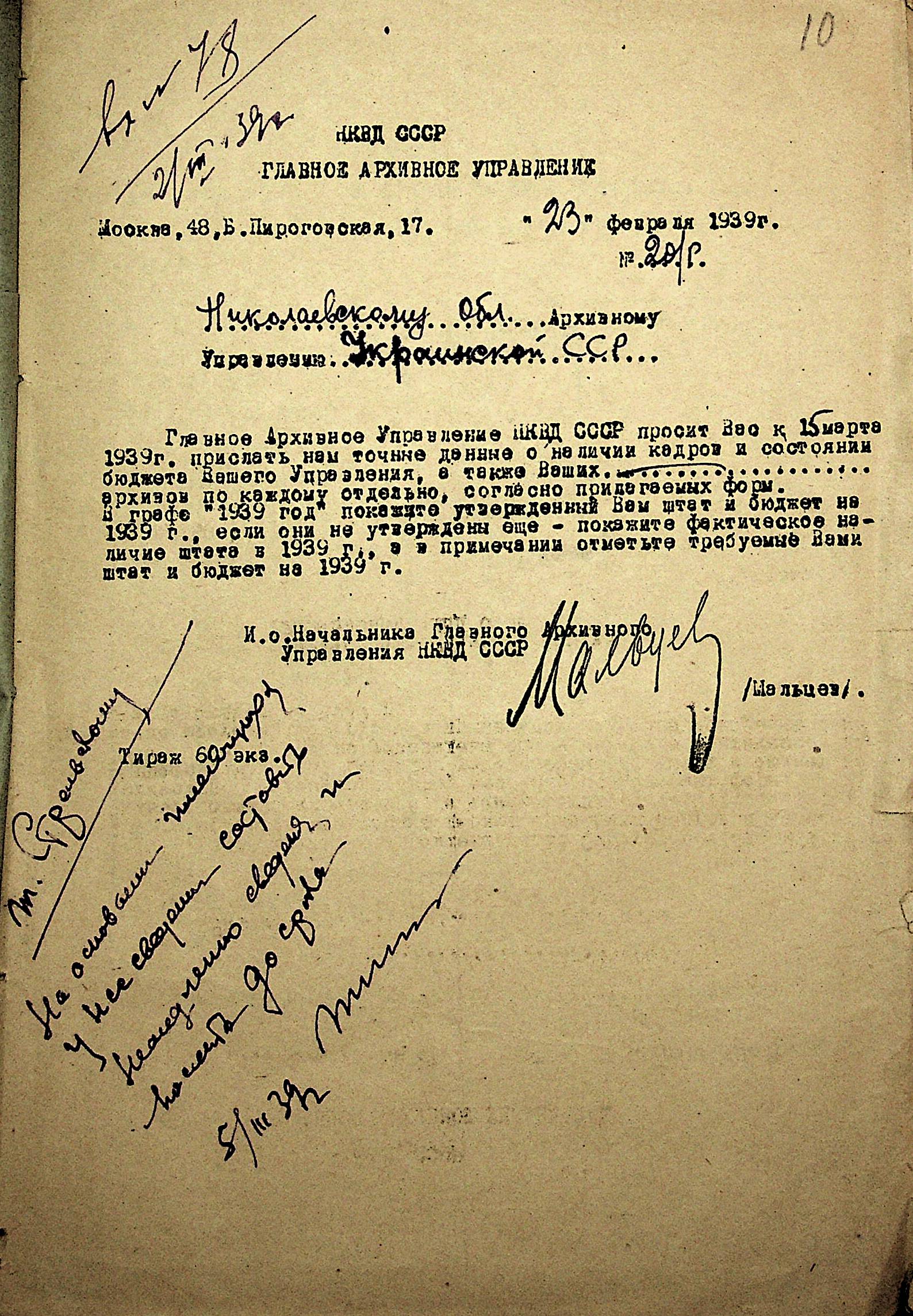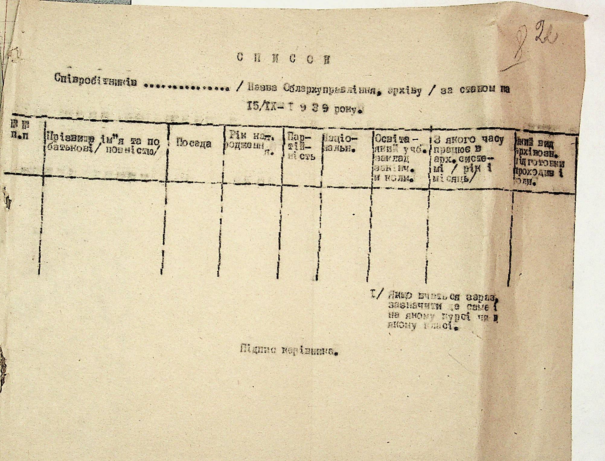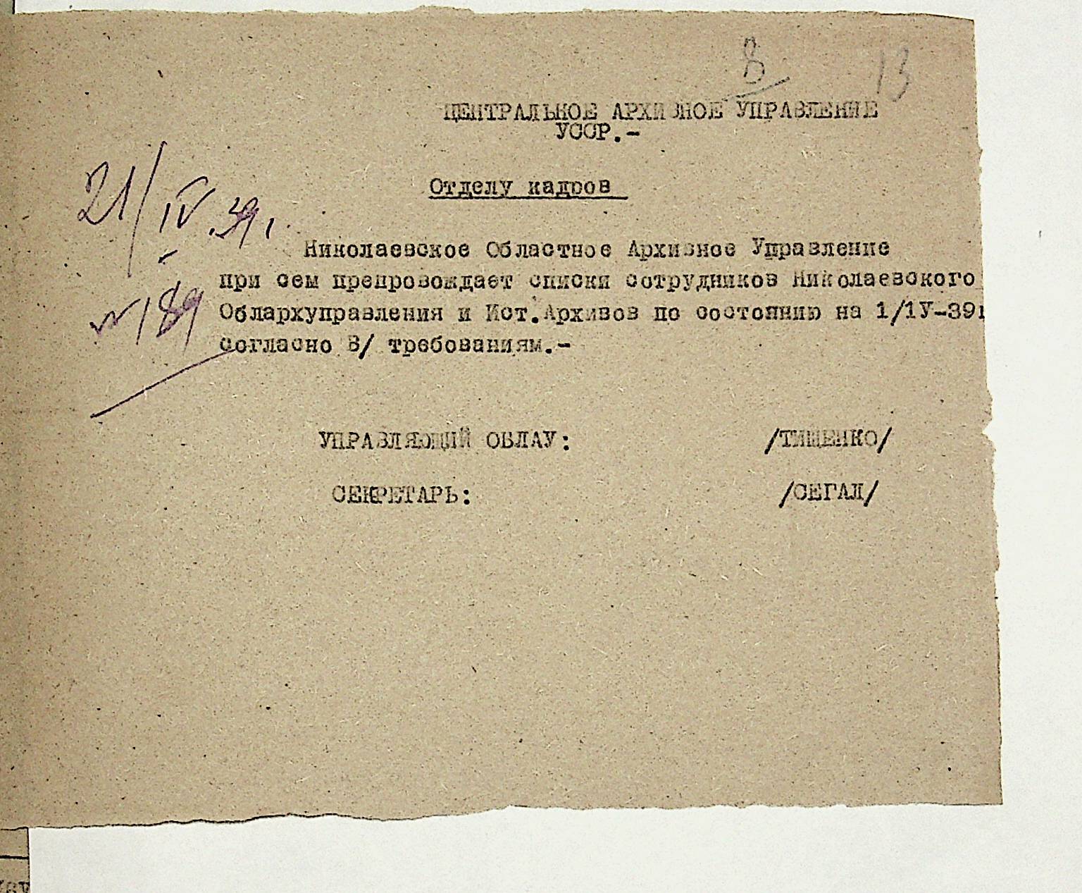 • • • • Справа № 19 “Списки співробітників Миколаївського обласного архівного управління та державних історичних архівів Миколаївської області. Відомості про наявність кадрів та стан бюджету управління, виконання архівно-технічної роботи в історичних архівах”