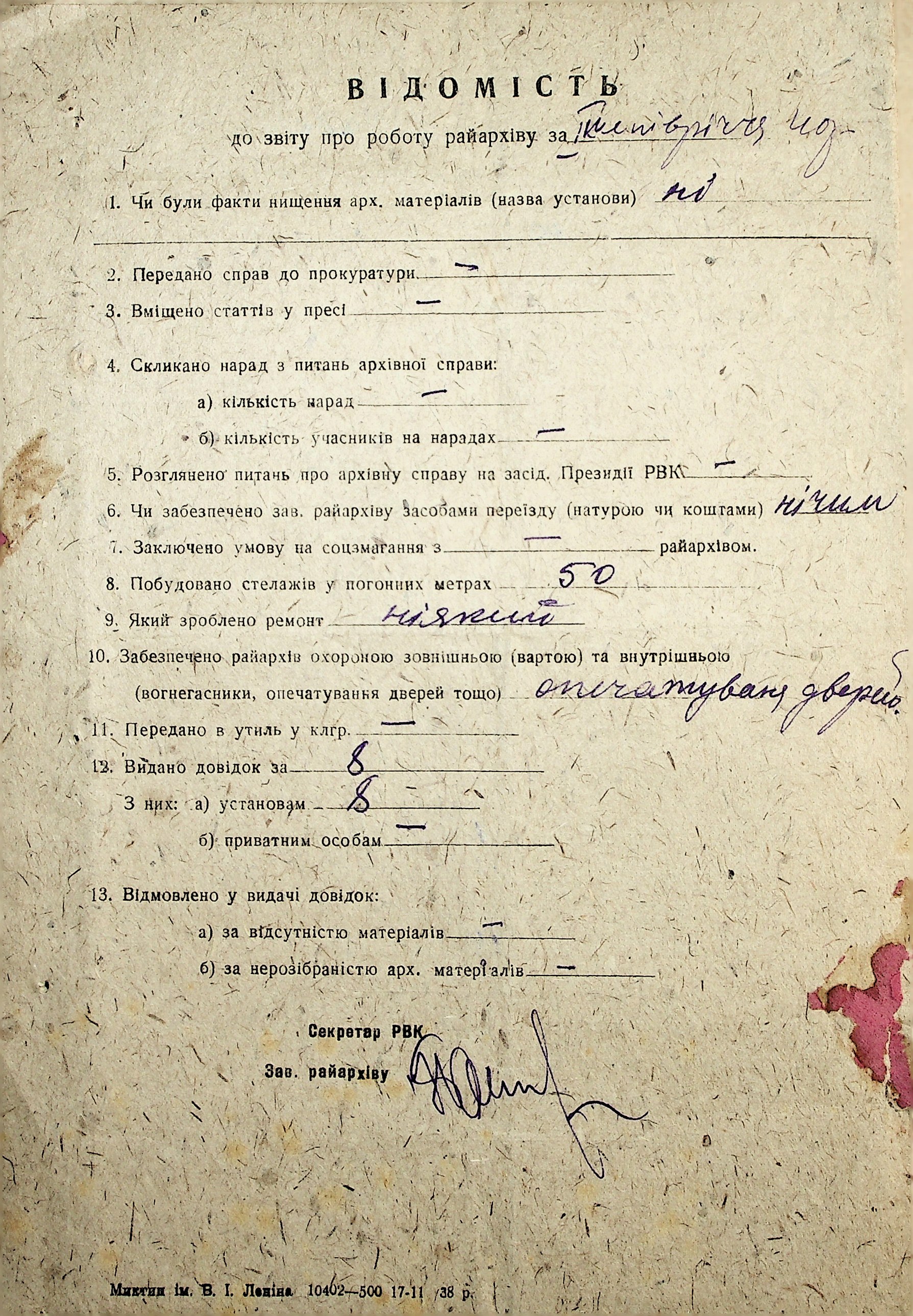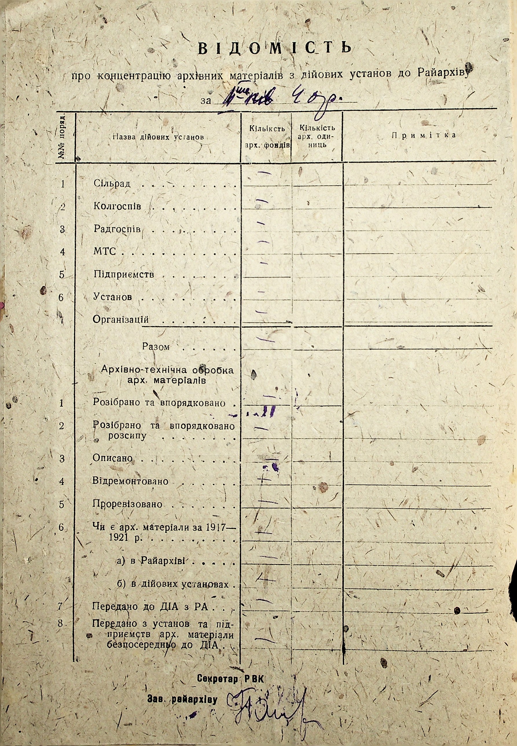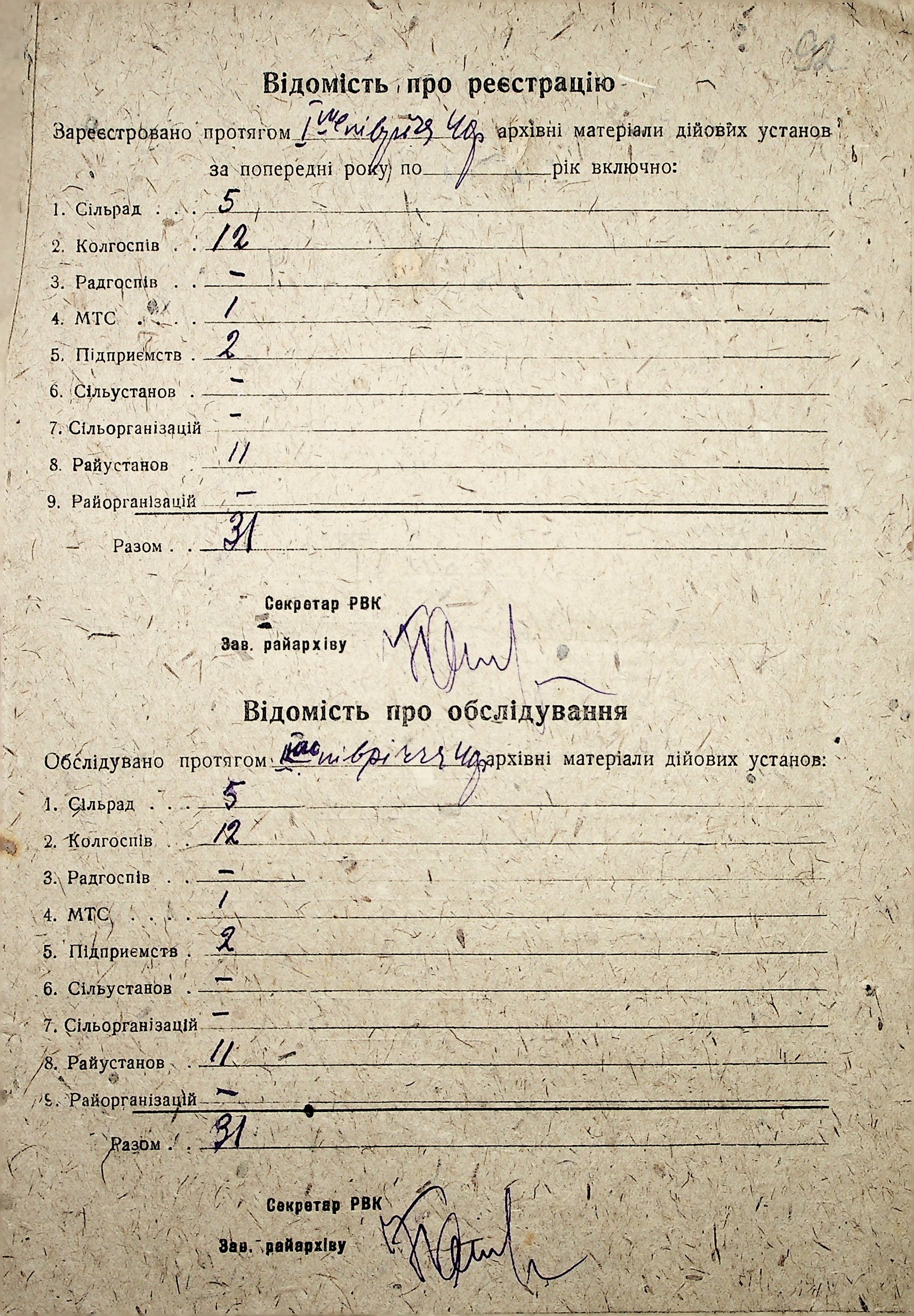 • • • • Справа № 27 “Документи (плани, звіти, статистичні звіти, відомості, акти, договори, штатний розпис, інструкції, листування) про роботу архівного відділу, Миколаївського обласного історичного архіву та районних архівів щодо виявлення, обстеження, упорядкування, обліку, перевіряння документів, порядку надання звітності; про виконання планів з наукової та архівно-технічної роботи”