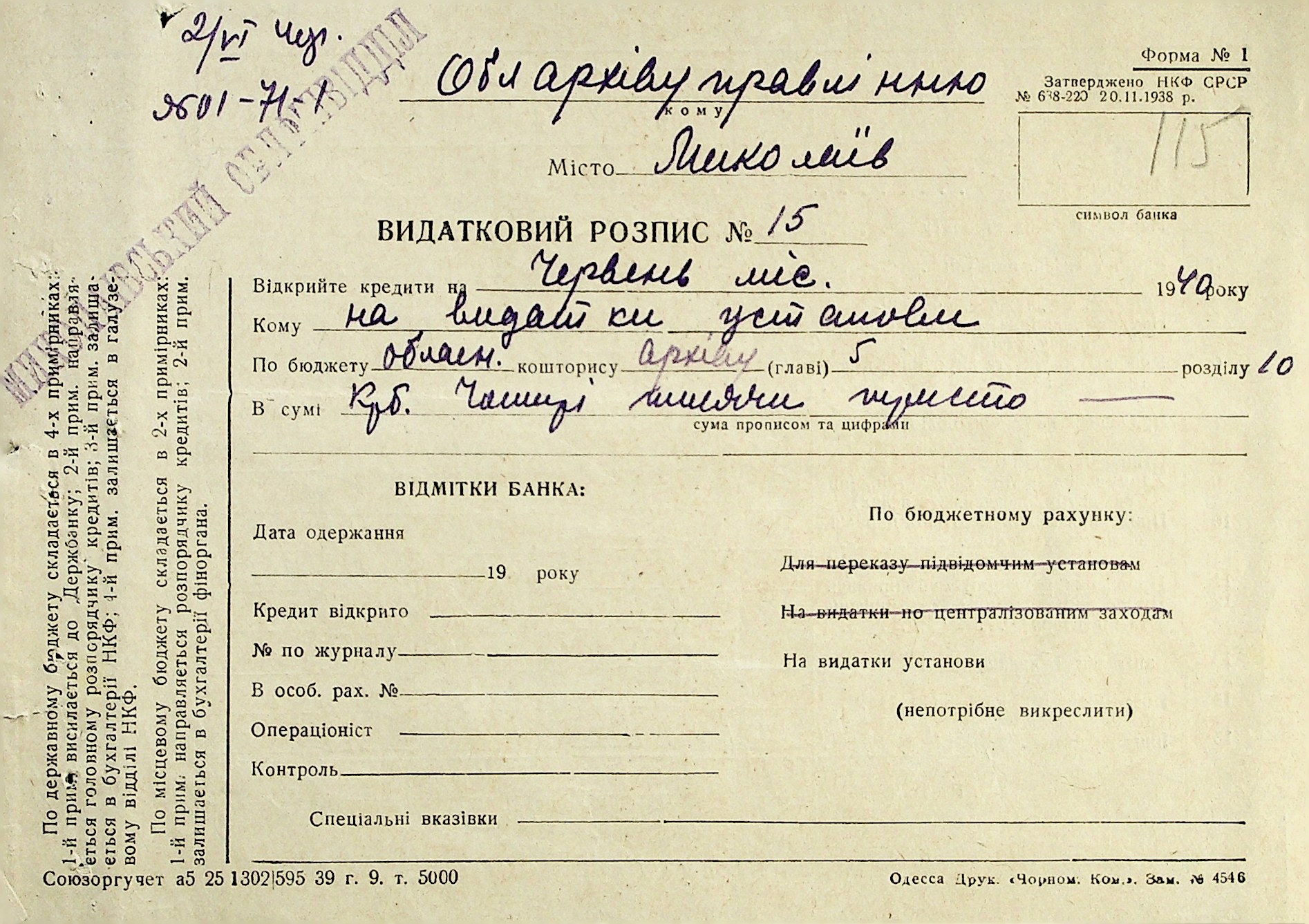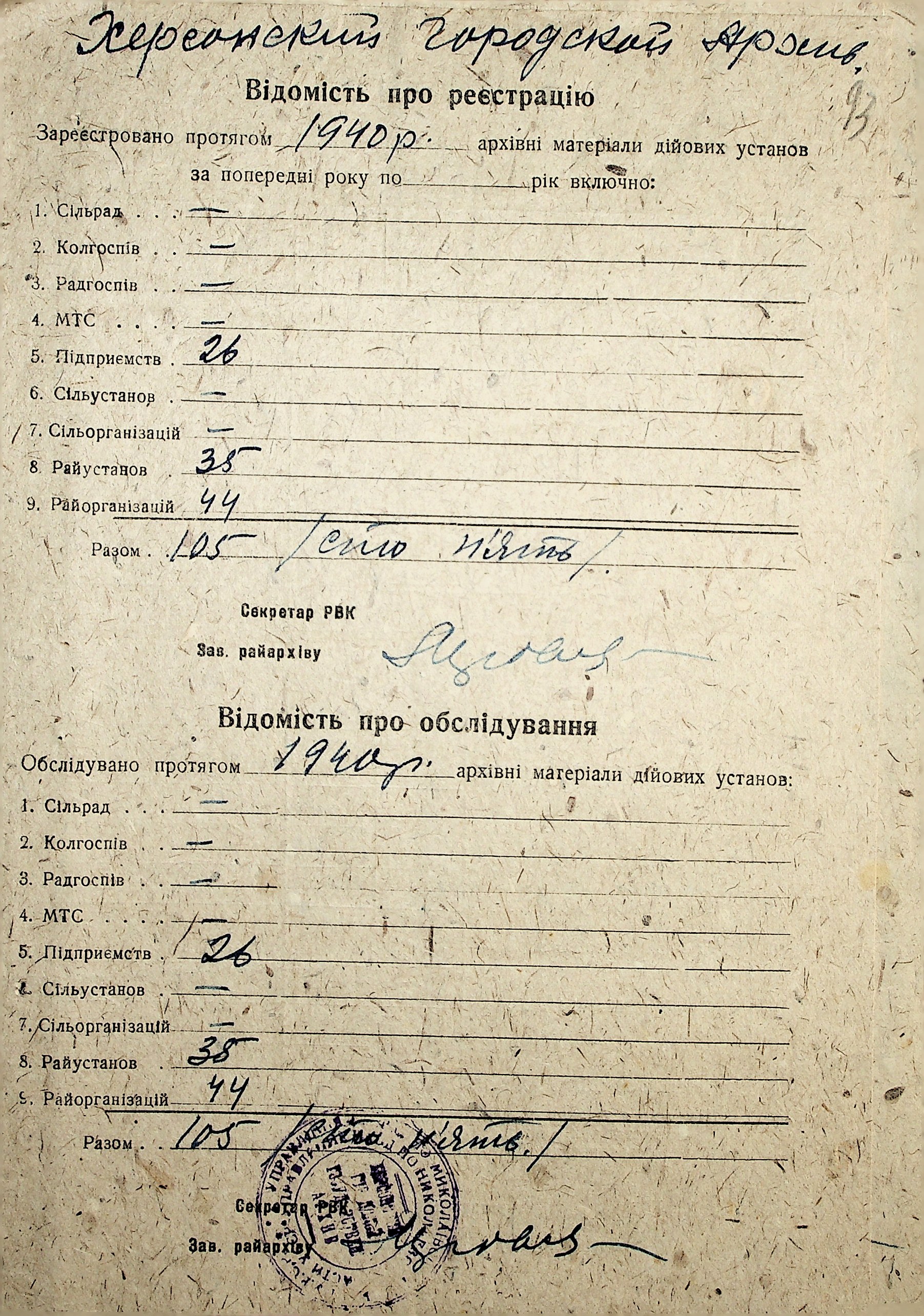 ◦ ◦ Фонд № Р-1002 “Архівний відділ управління виконкому Миколаївської обласної Ради народних депутатів, м. Миколаїв”