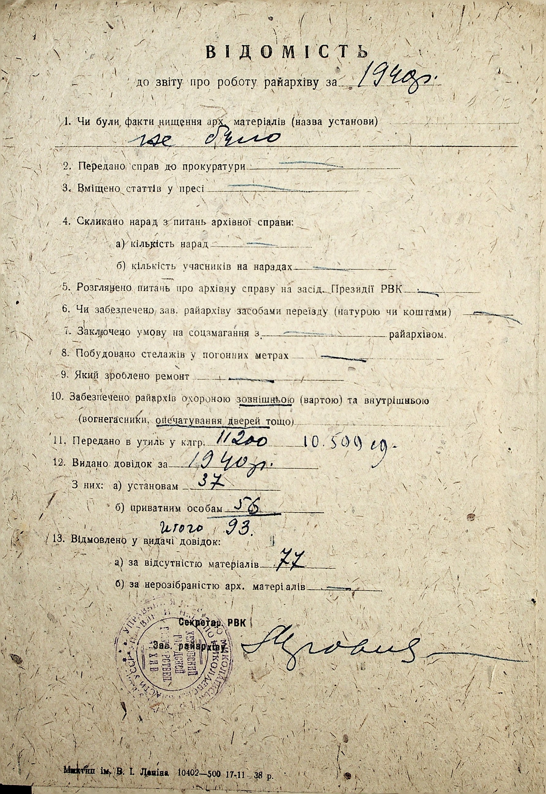 ◦ ◦ ◦ Опис № 1 справ постійного зберігання за 1938 – 1941 роки