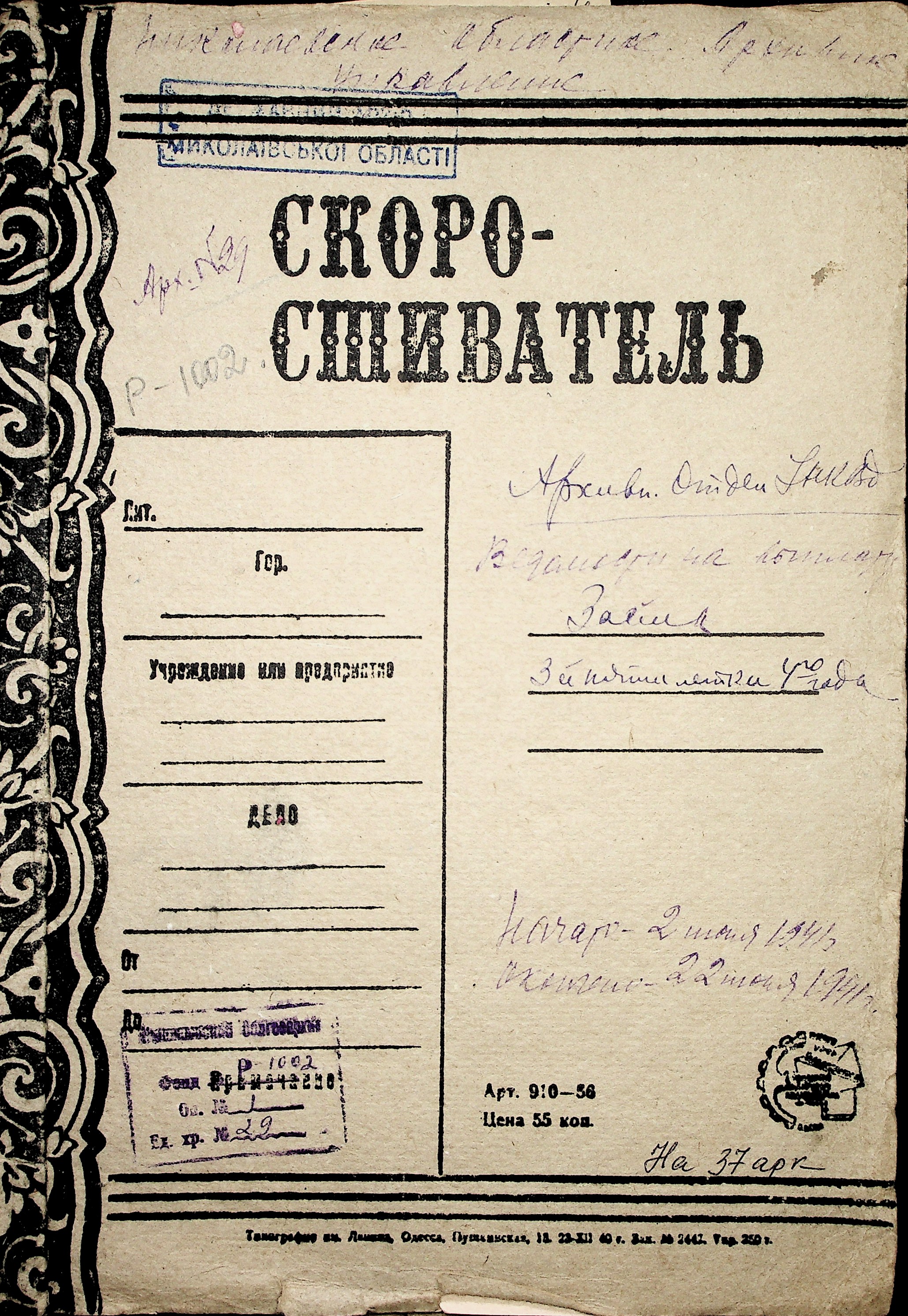◦ ◦ Фонд № Р-1002 “Архівний відділ управління виконкому Миколаївської обласної Ради народних депутатів, м. Миколаїв”