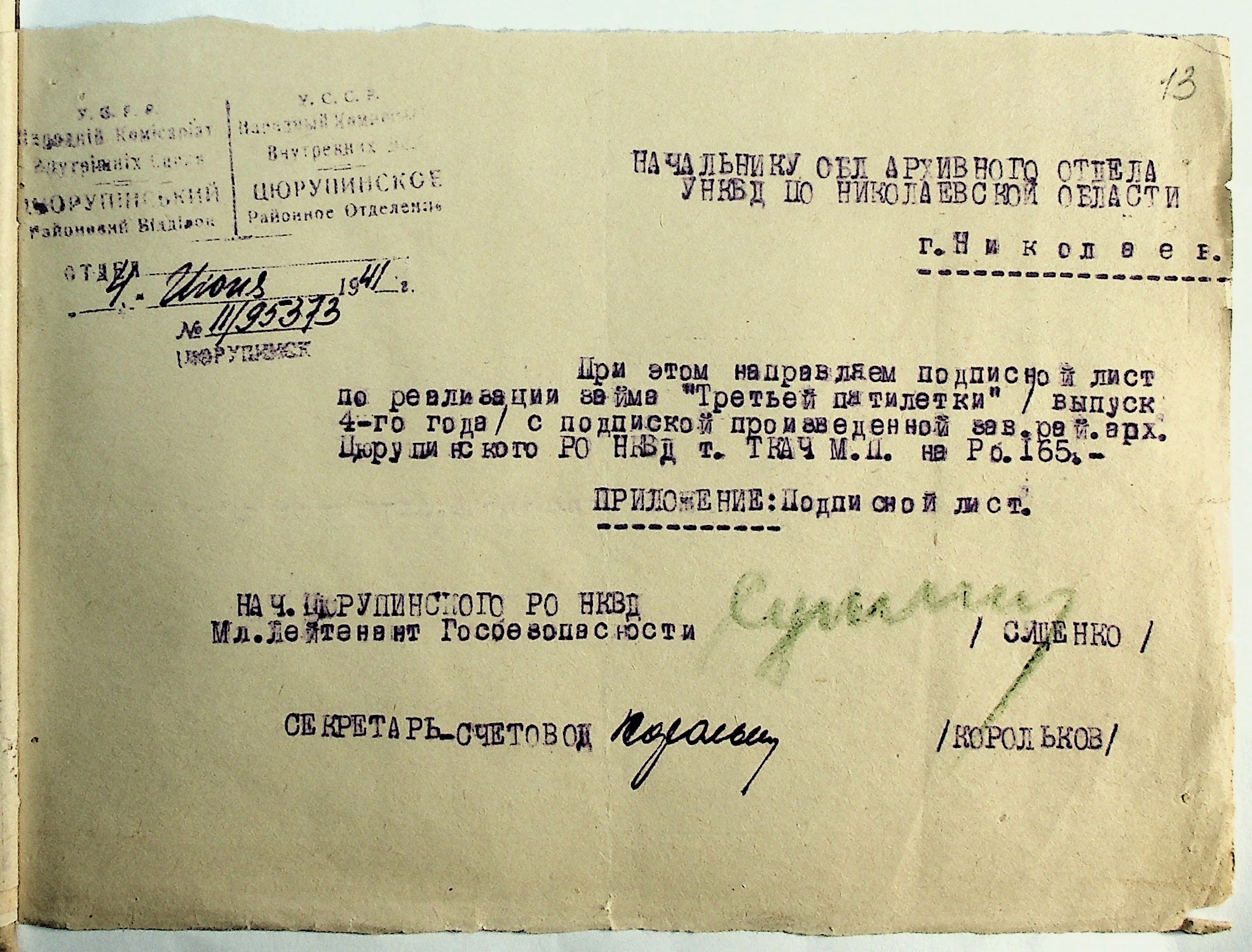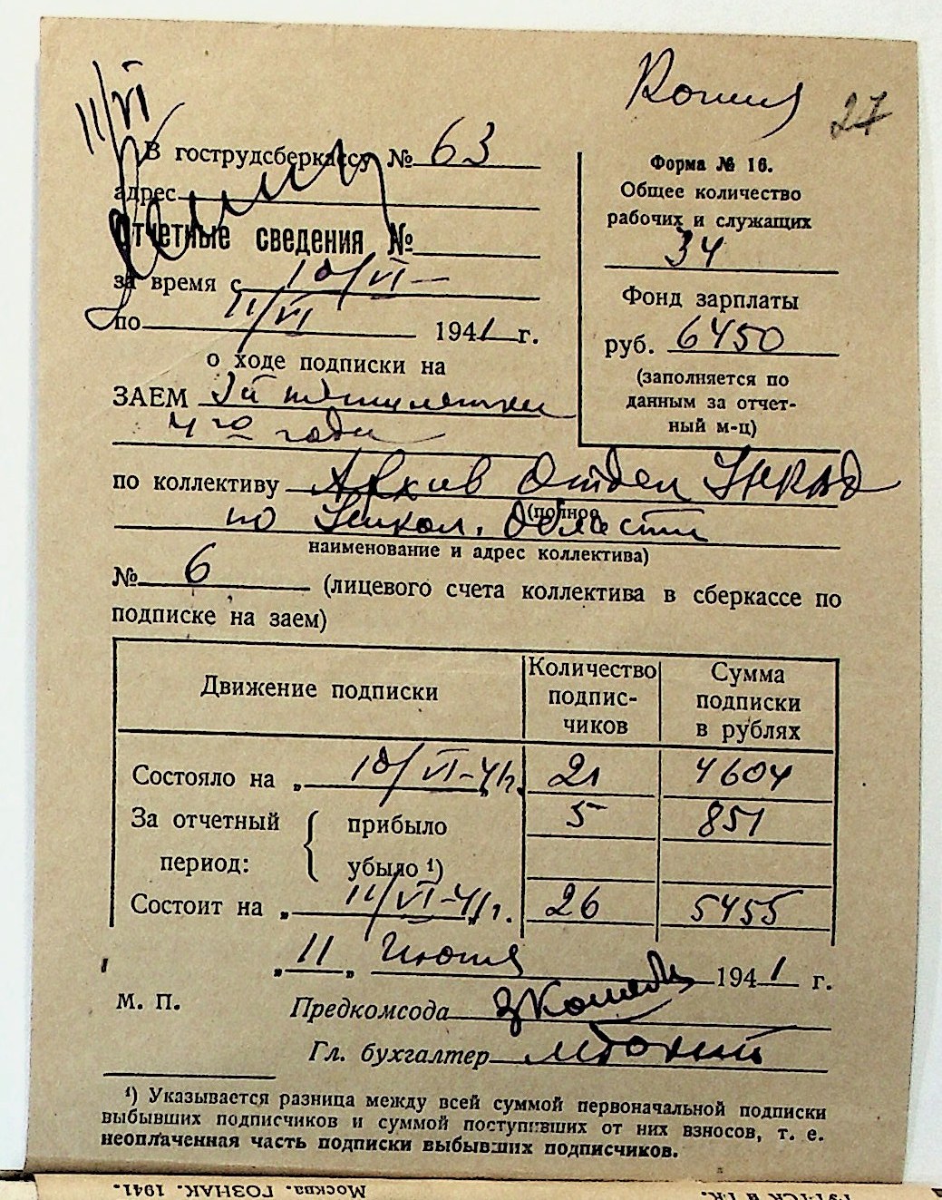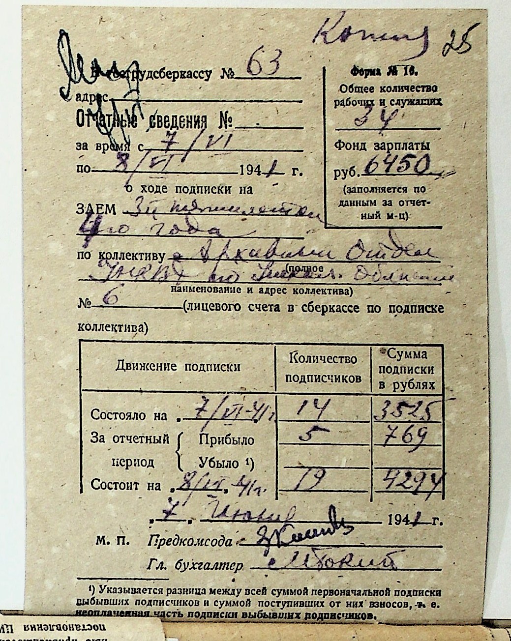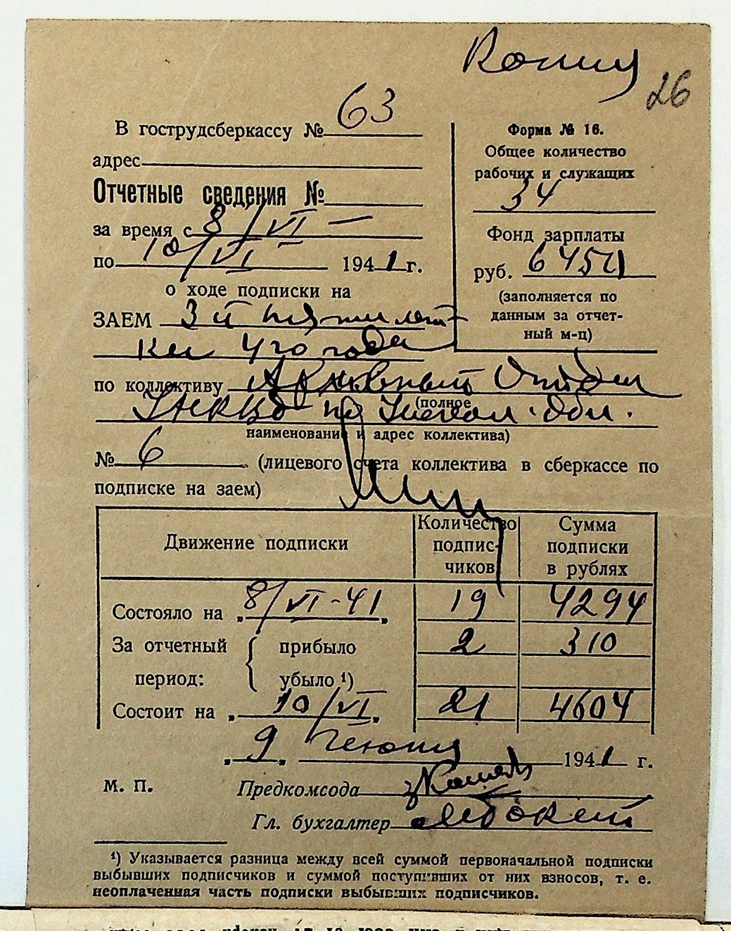 • • • • Справа № 29 “Документи (підписні листи, відомості, рапорт, листування) про підписку на облігації позики 4-го року третьої п’ятирічки”