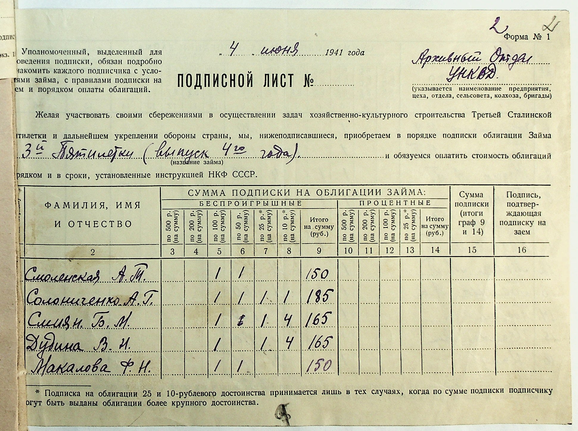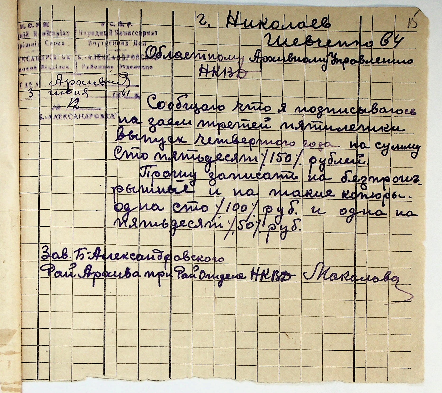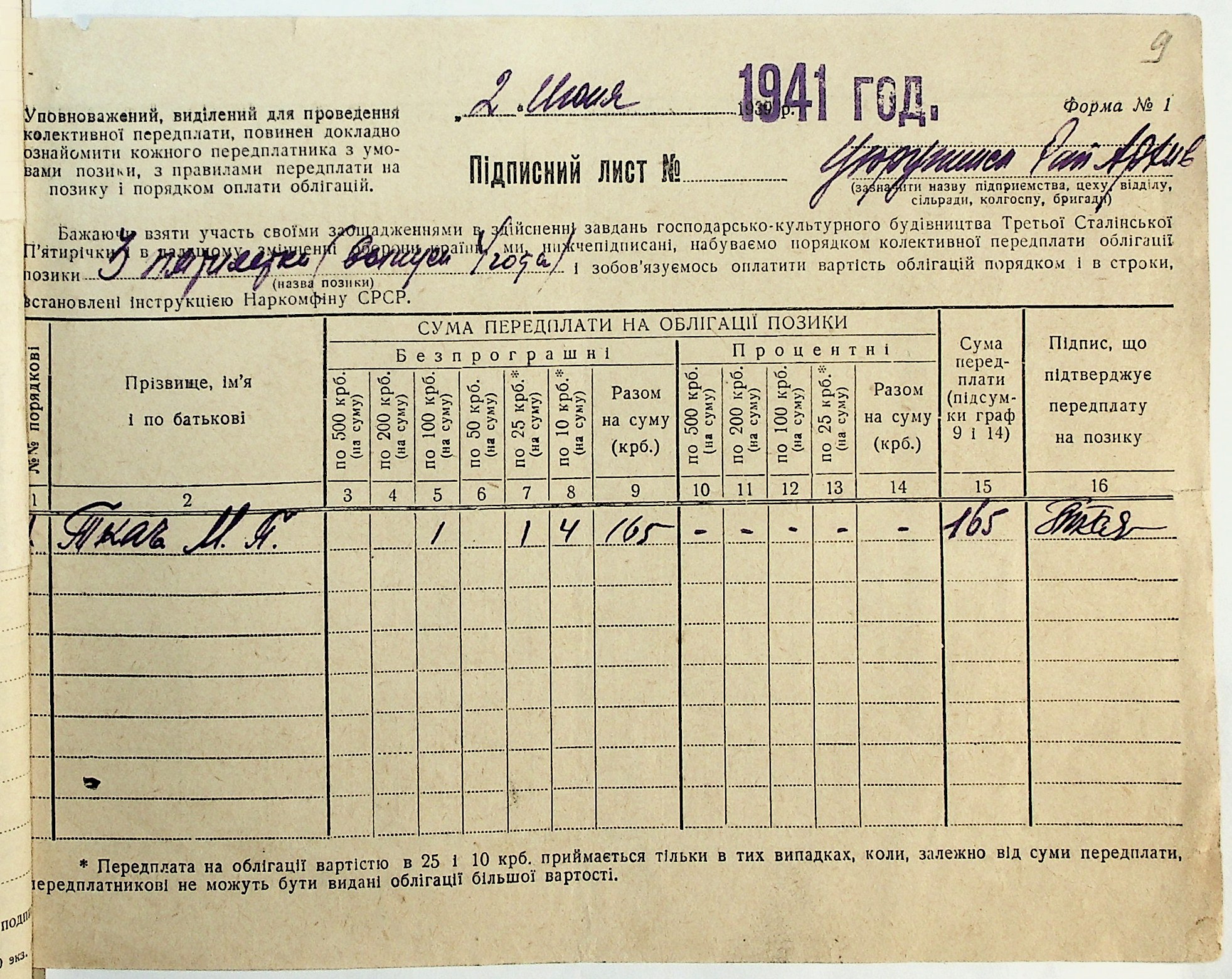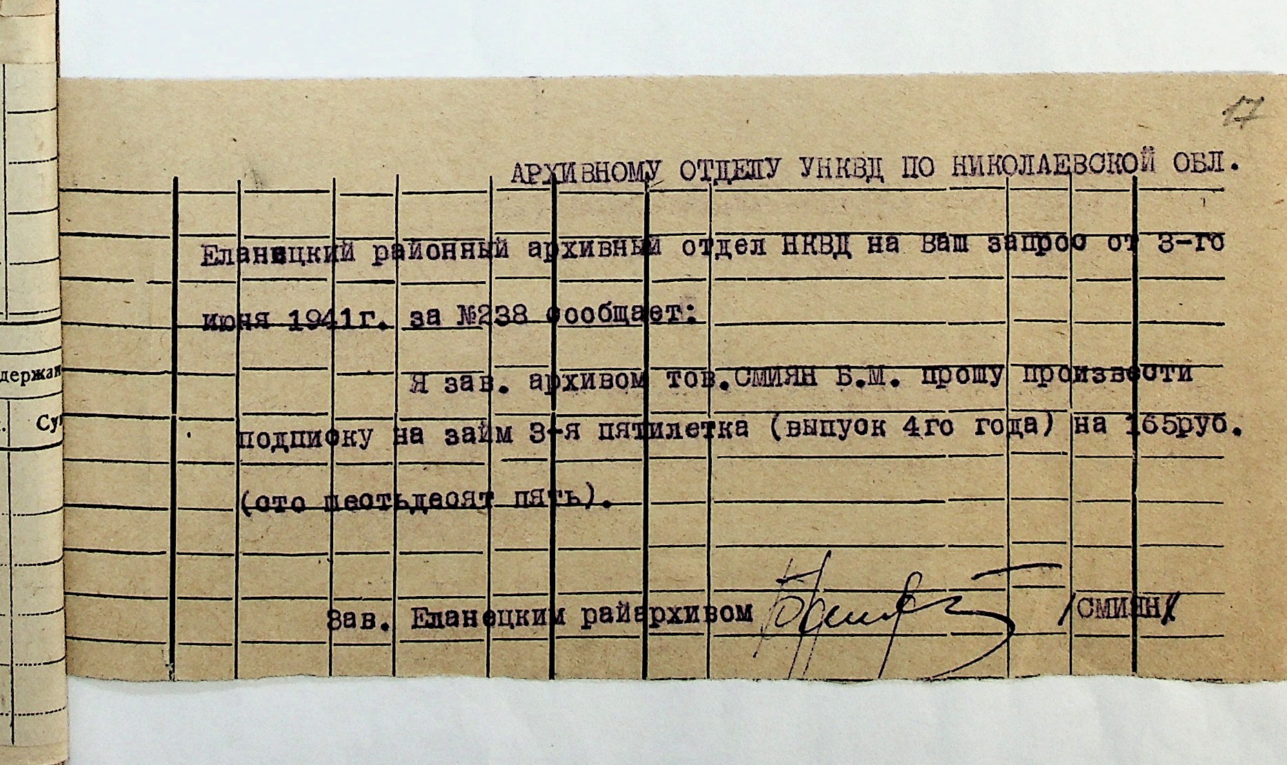 • • • • Справа № 29 “Документи (підписні листи, відомості, рапорт, листування) про підписку на облігації позики 4-го року третьої п’ятирічки”