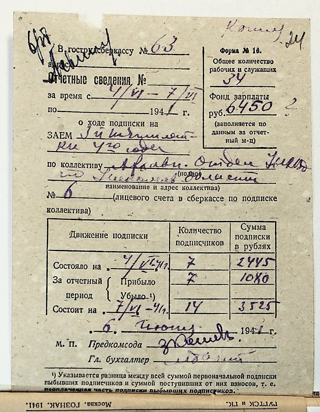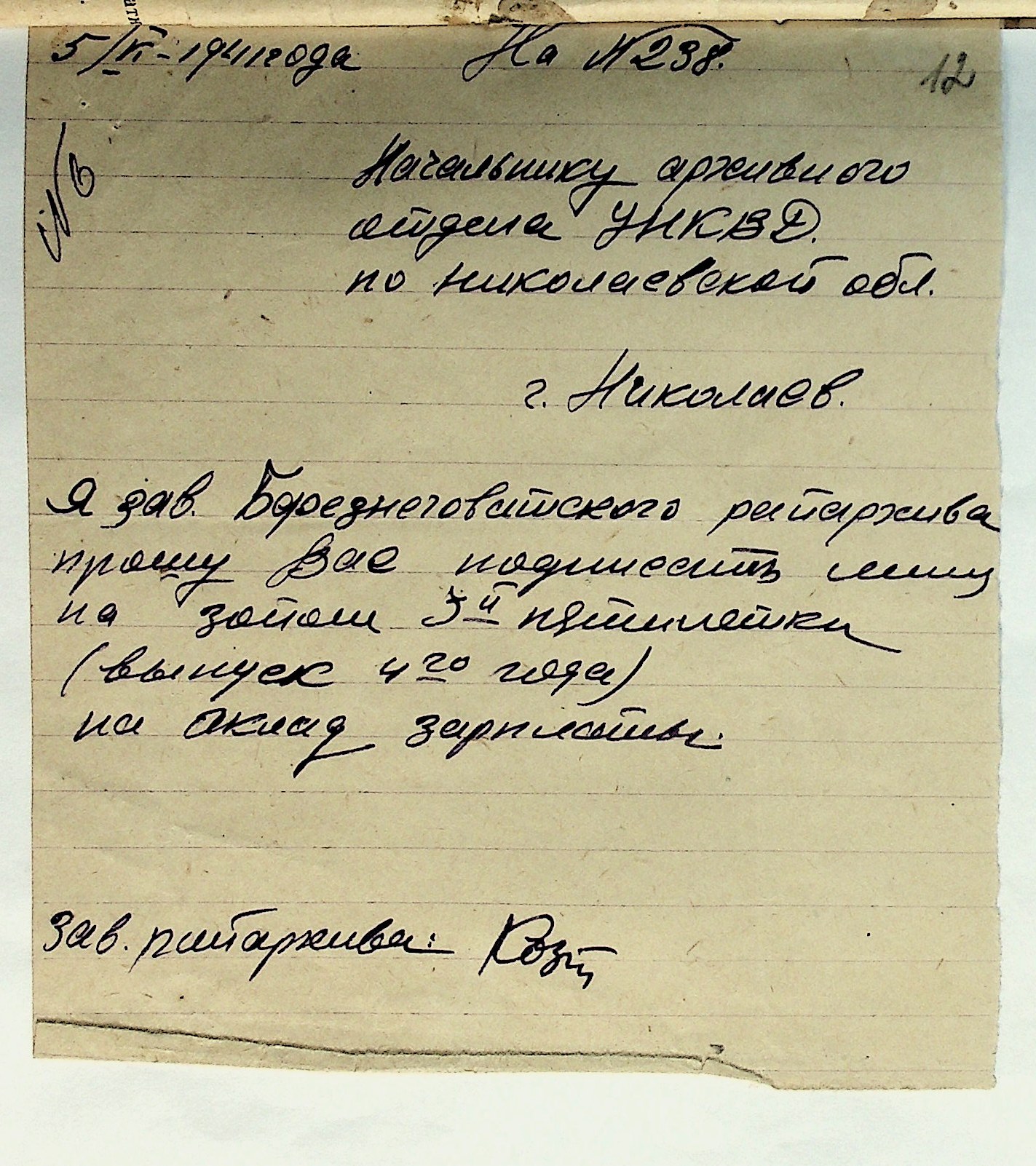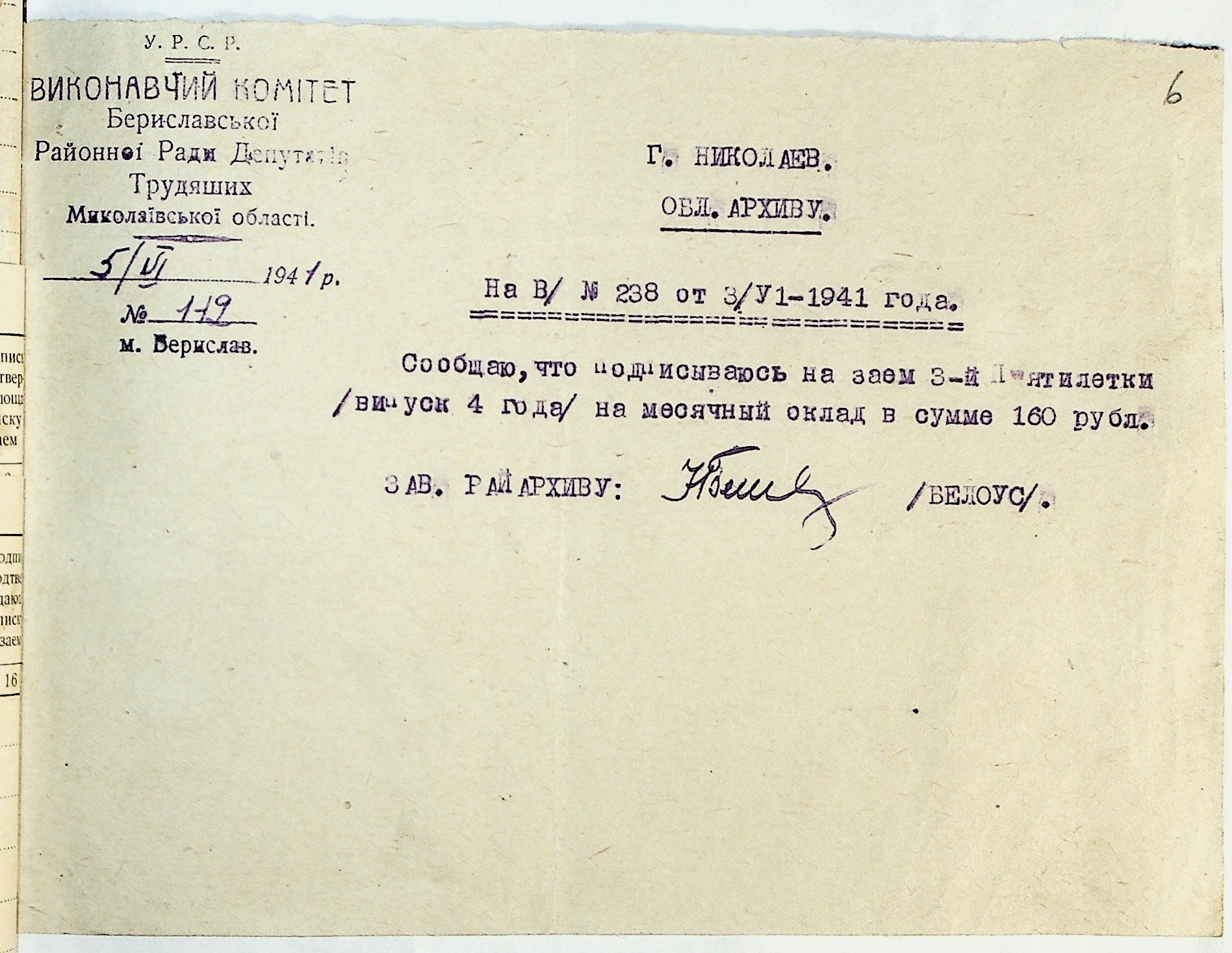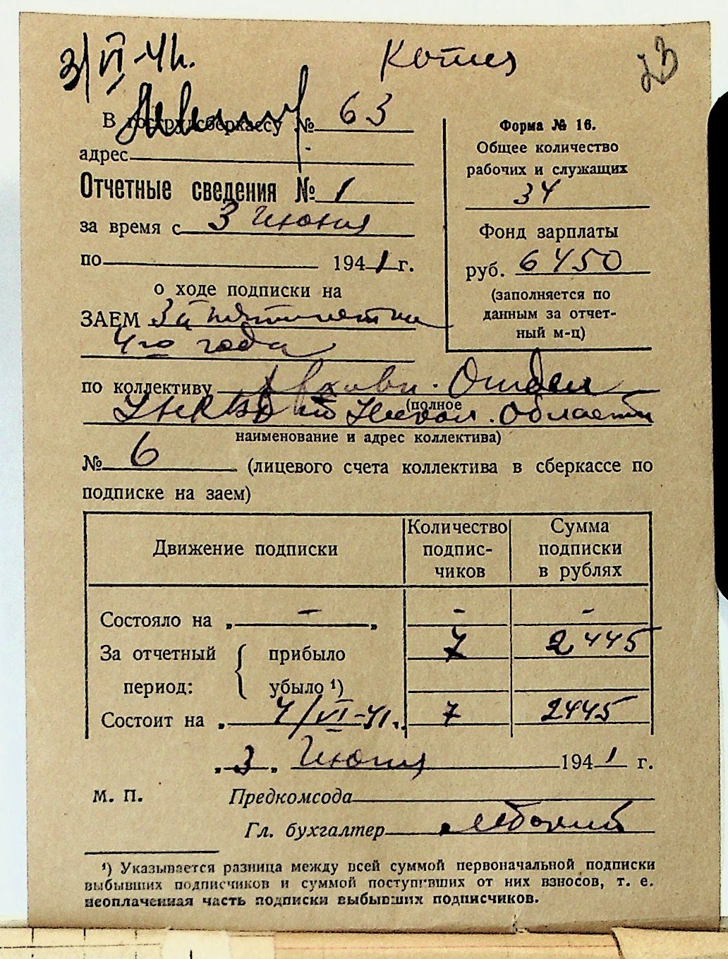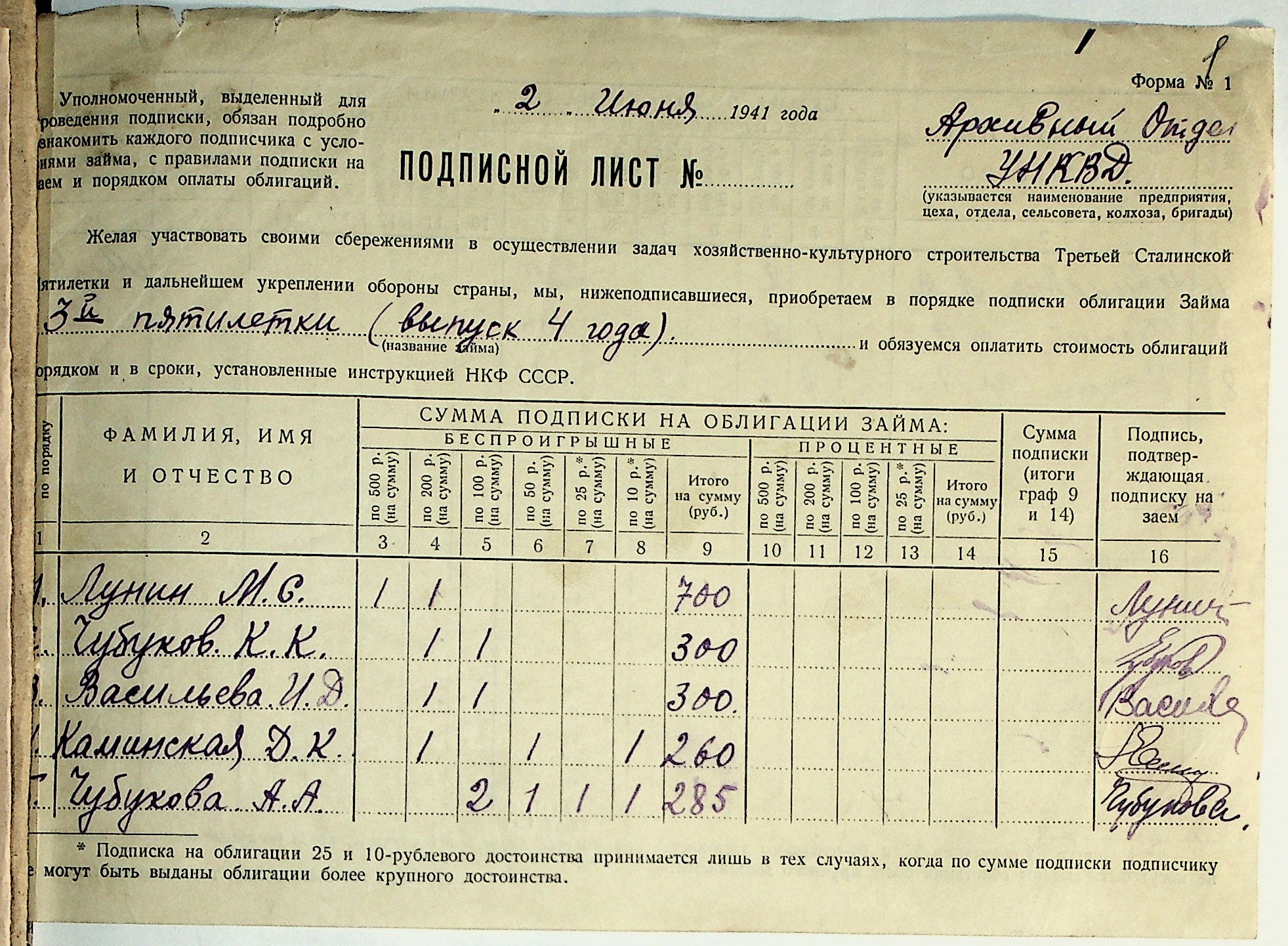 • • • • Справа № 29 “Документи (підписні листи, відомості, рапорт, листування) про підписку на облігації позики 4-го року третьої п’ятирічки”