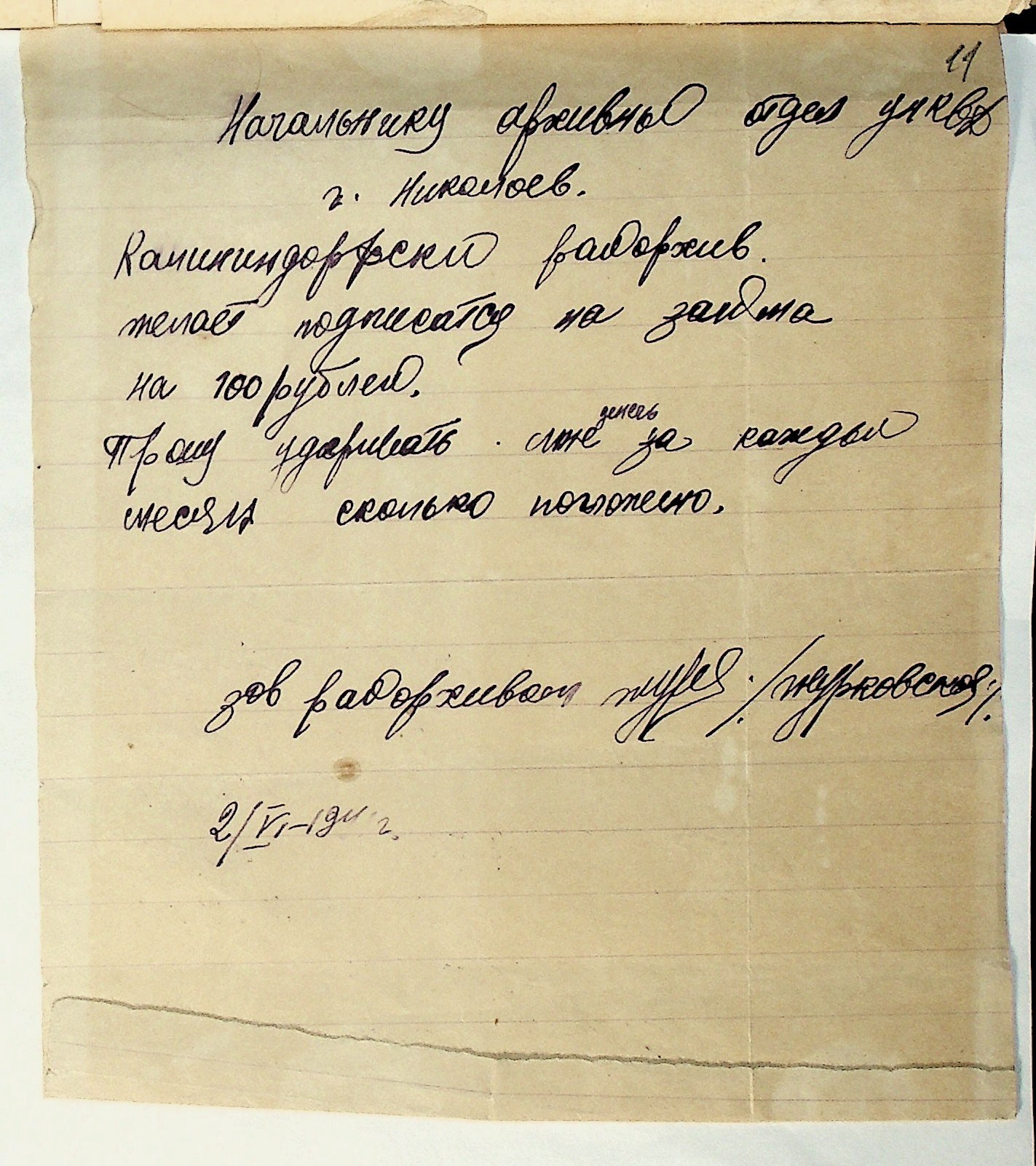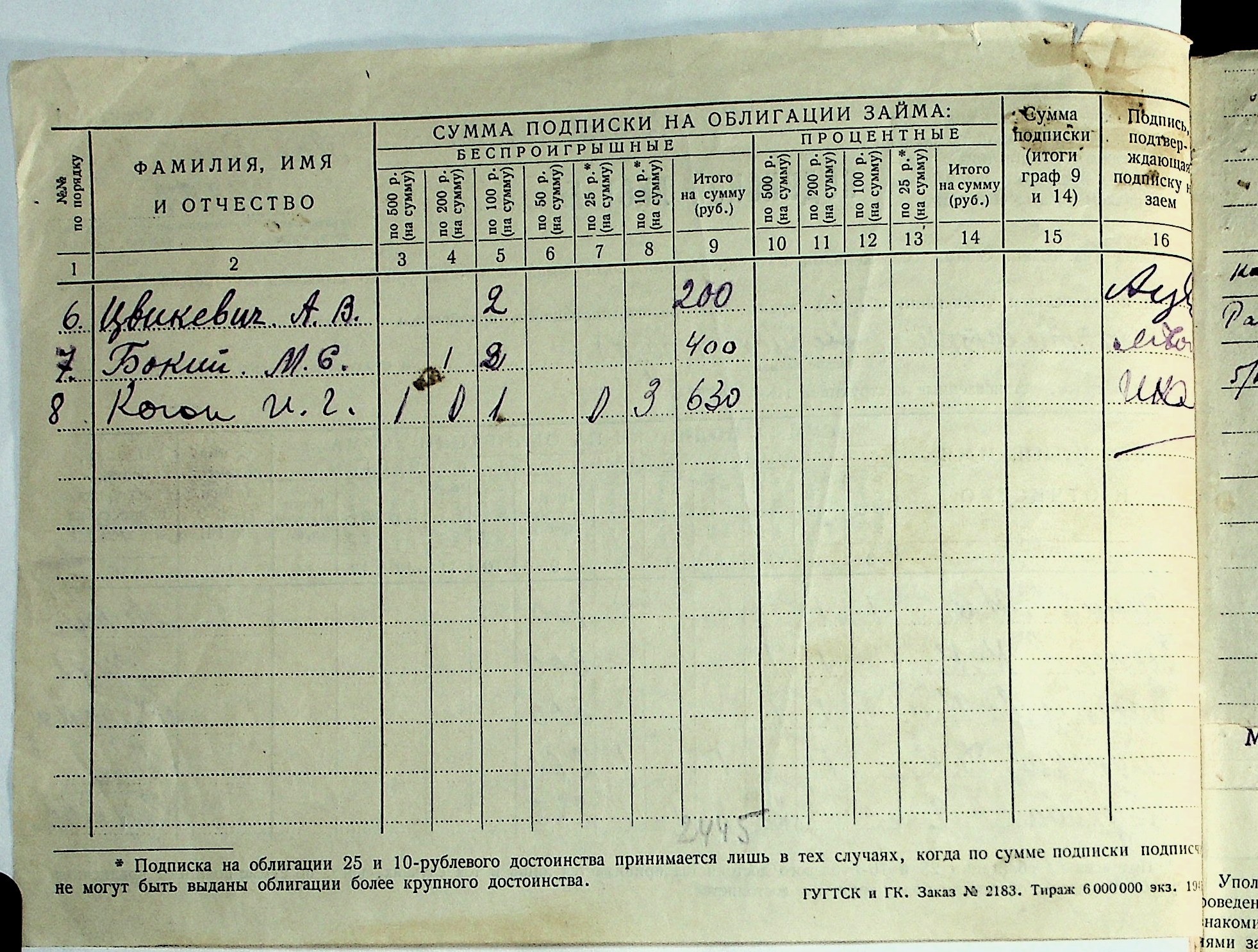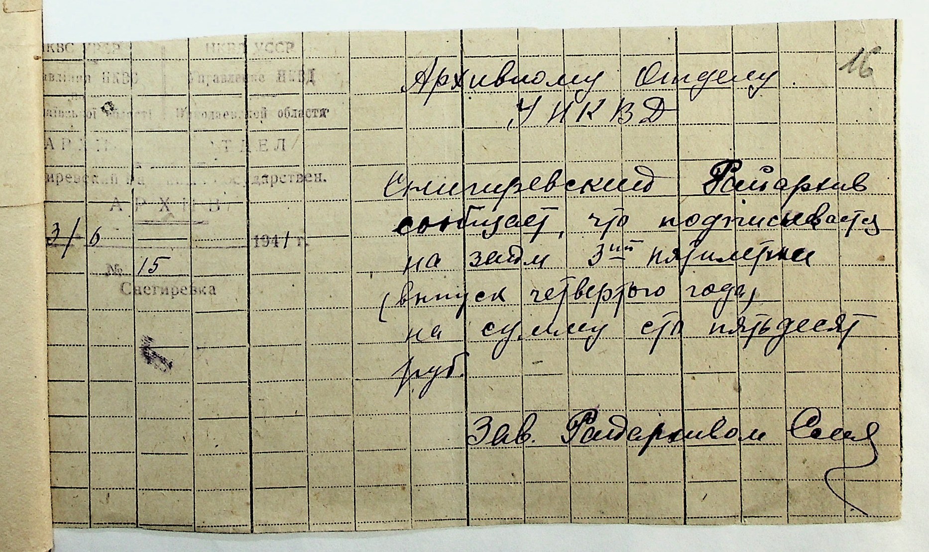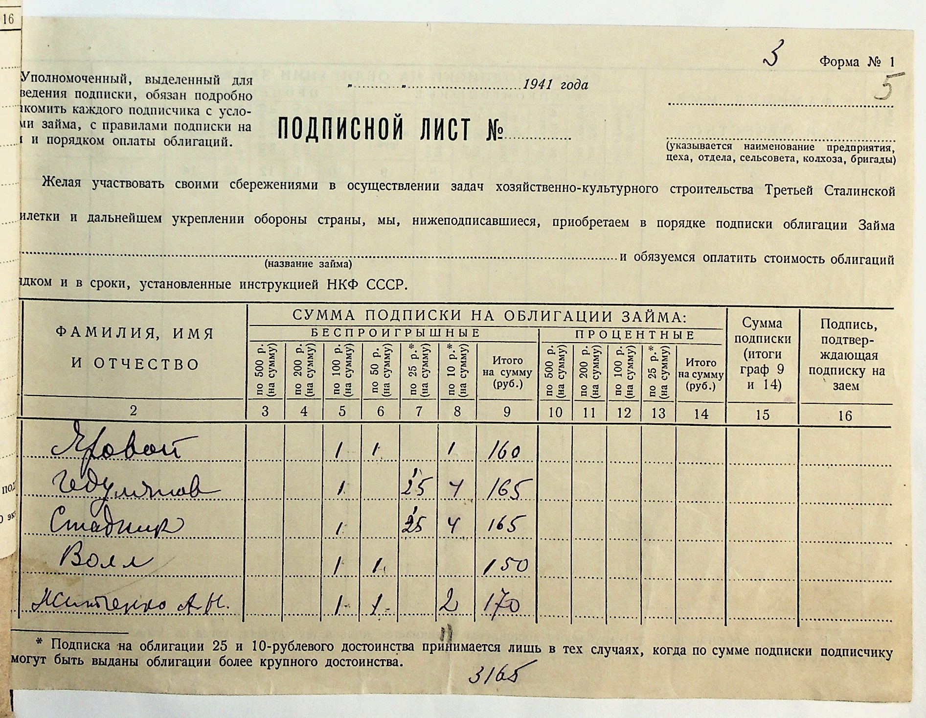 • • • • Справа № 29 “Документи (підписні листи, відомості, рапорт, листування) про підписку на облігації позики 4-го року третьої п’ятирічки”
