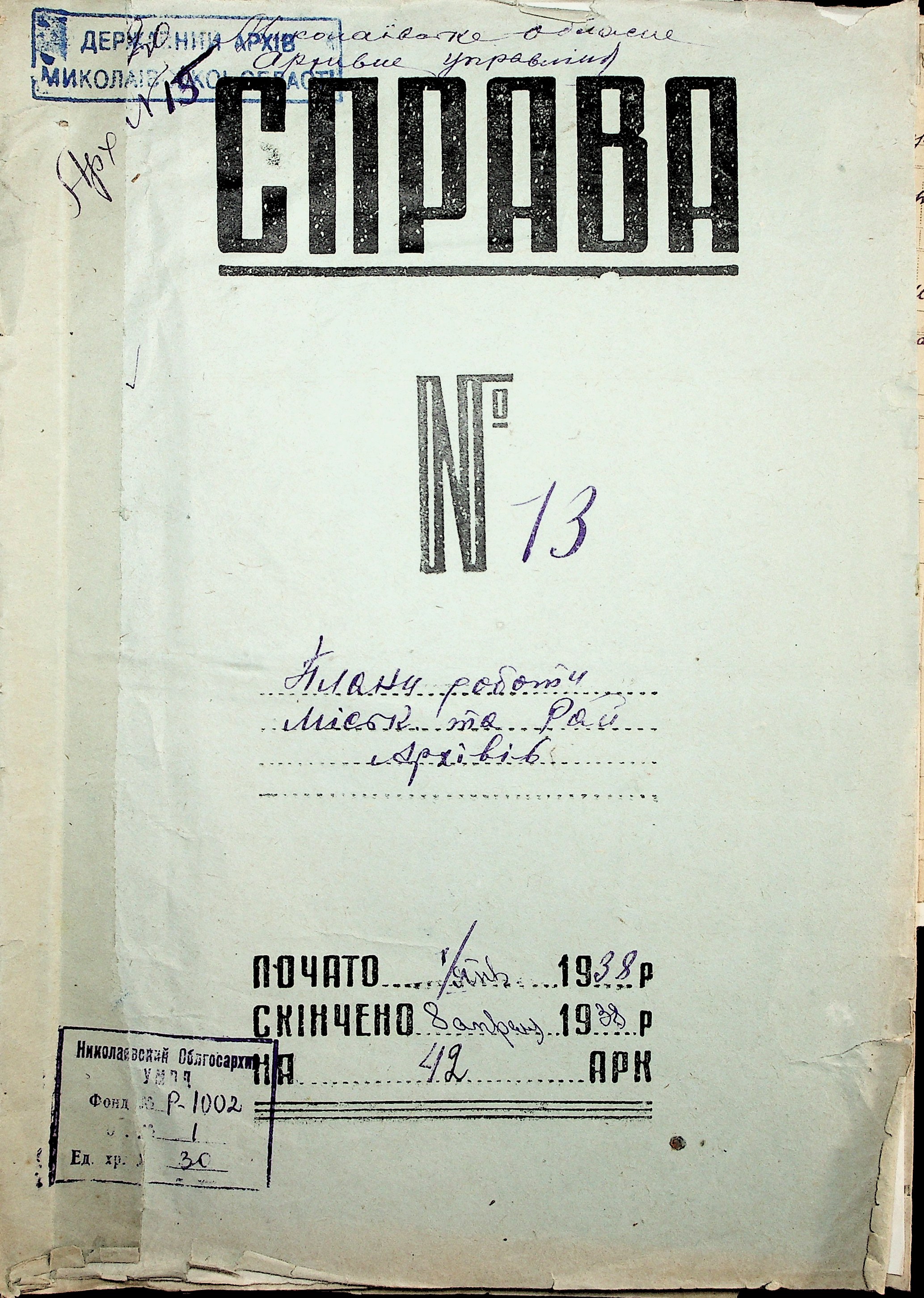 ◦ ◦ Фонд № Р-1002 “Архівний відділ управління виконкому Миколаївської обласної Ради народних депутатів, м. Миколаїв”