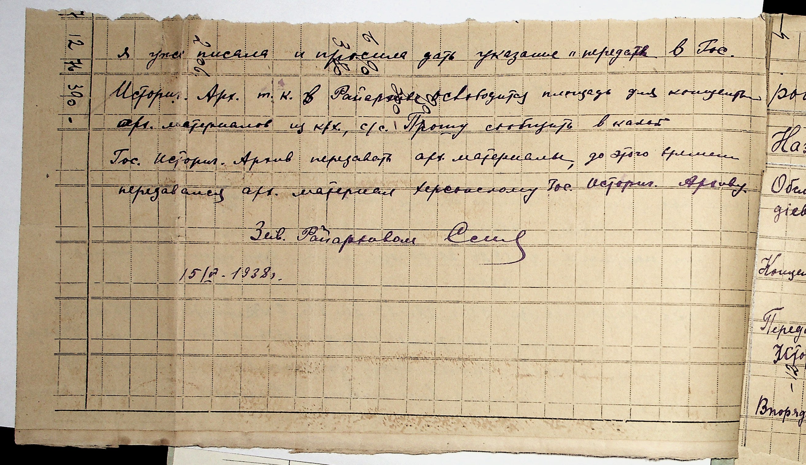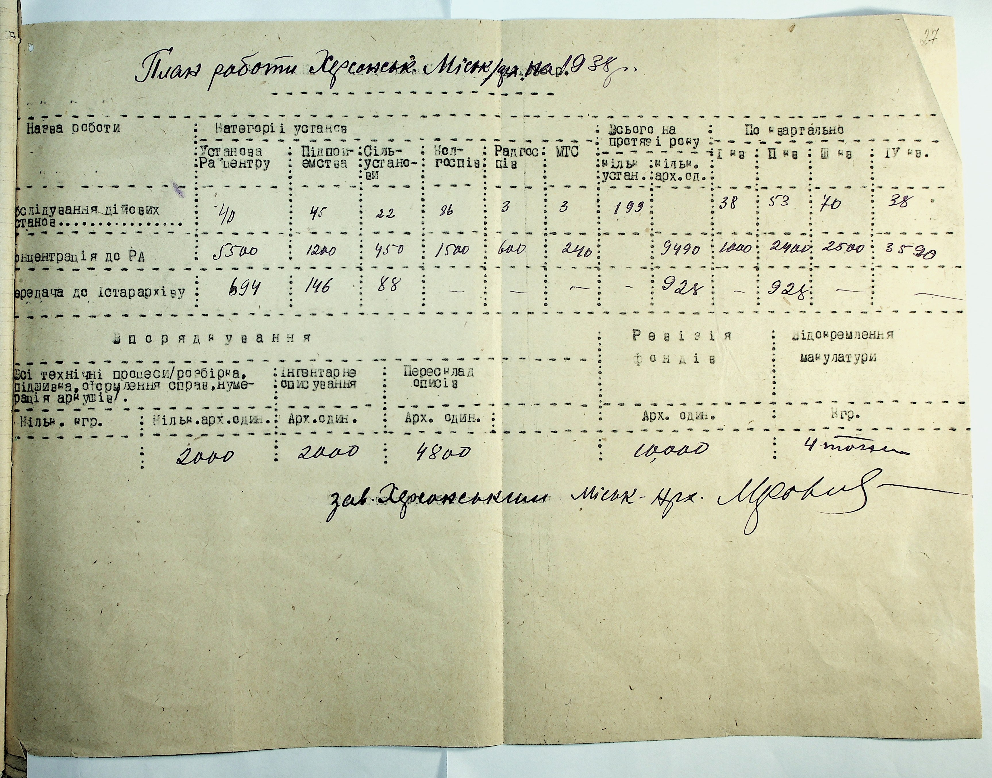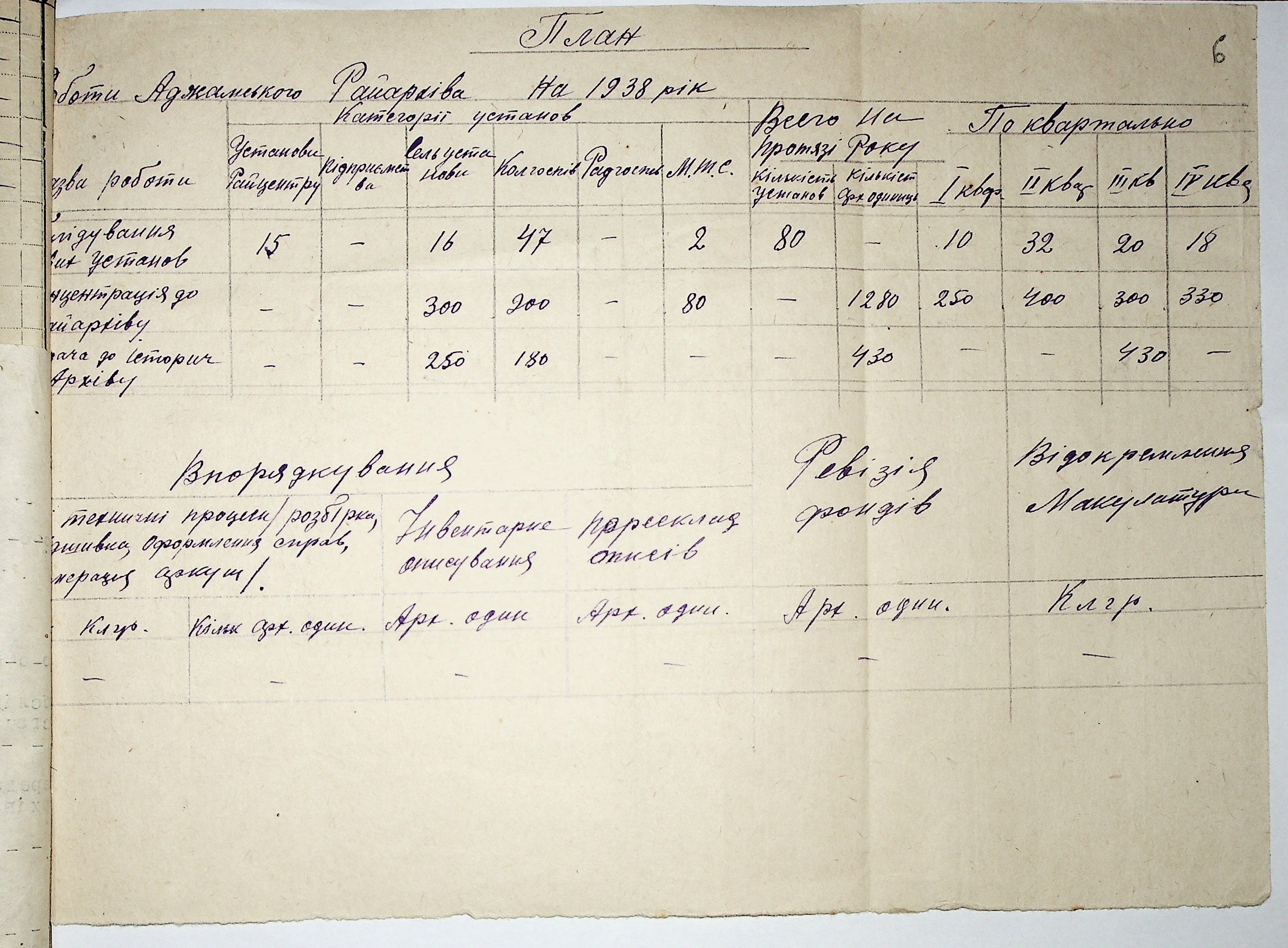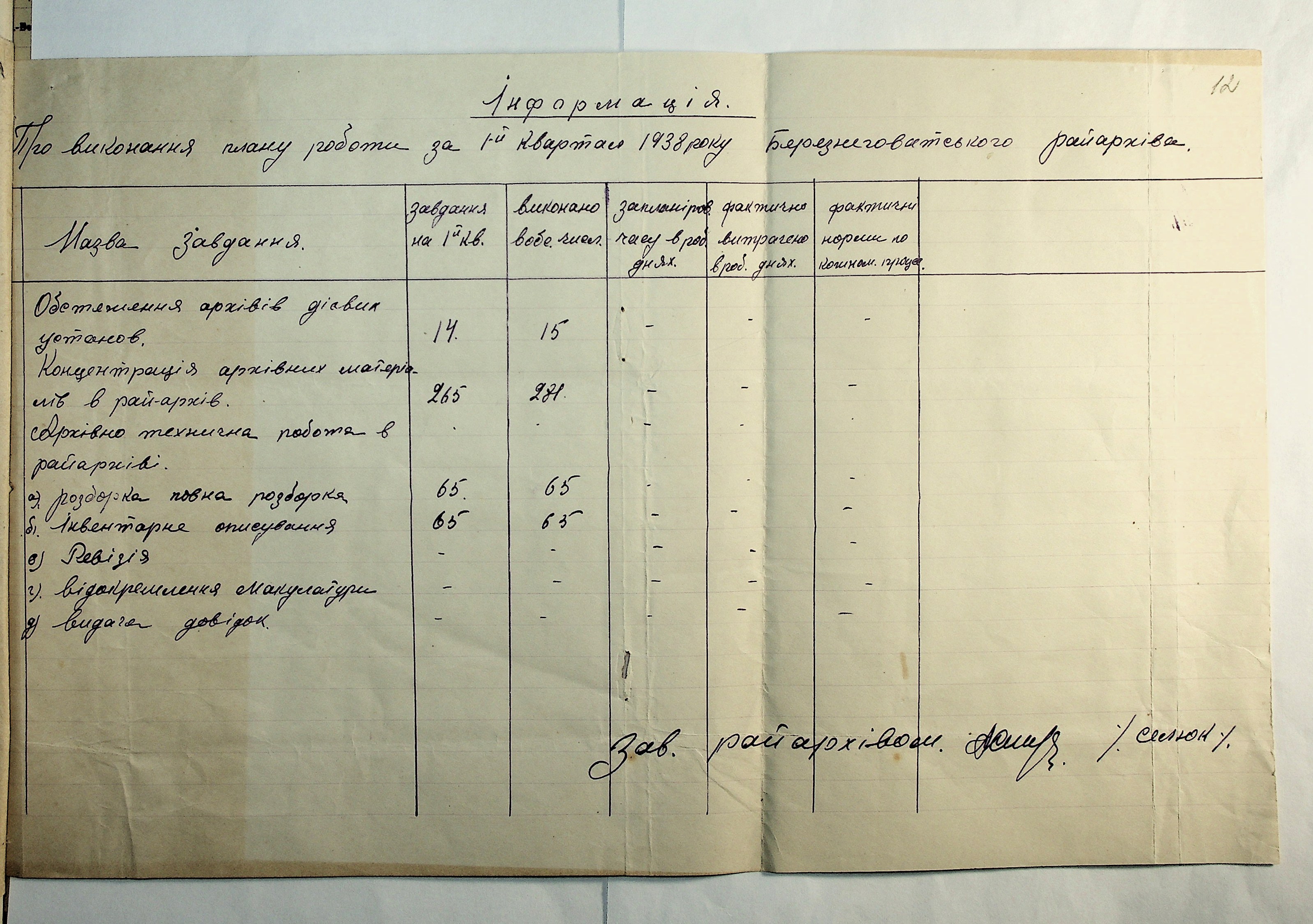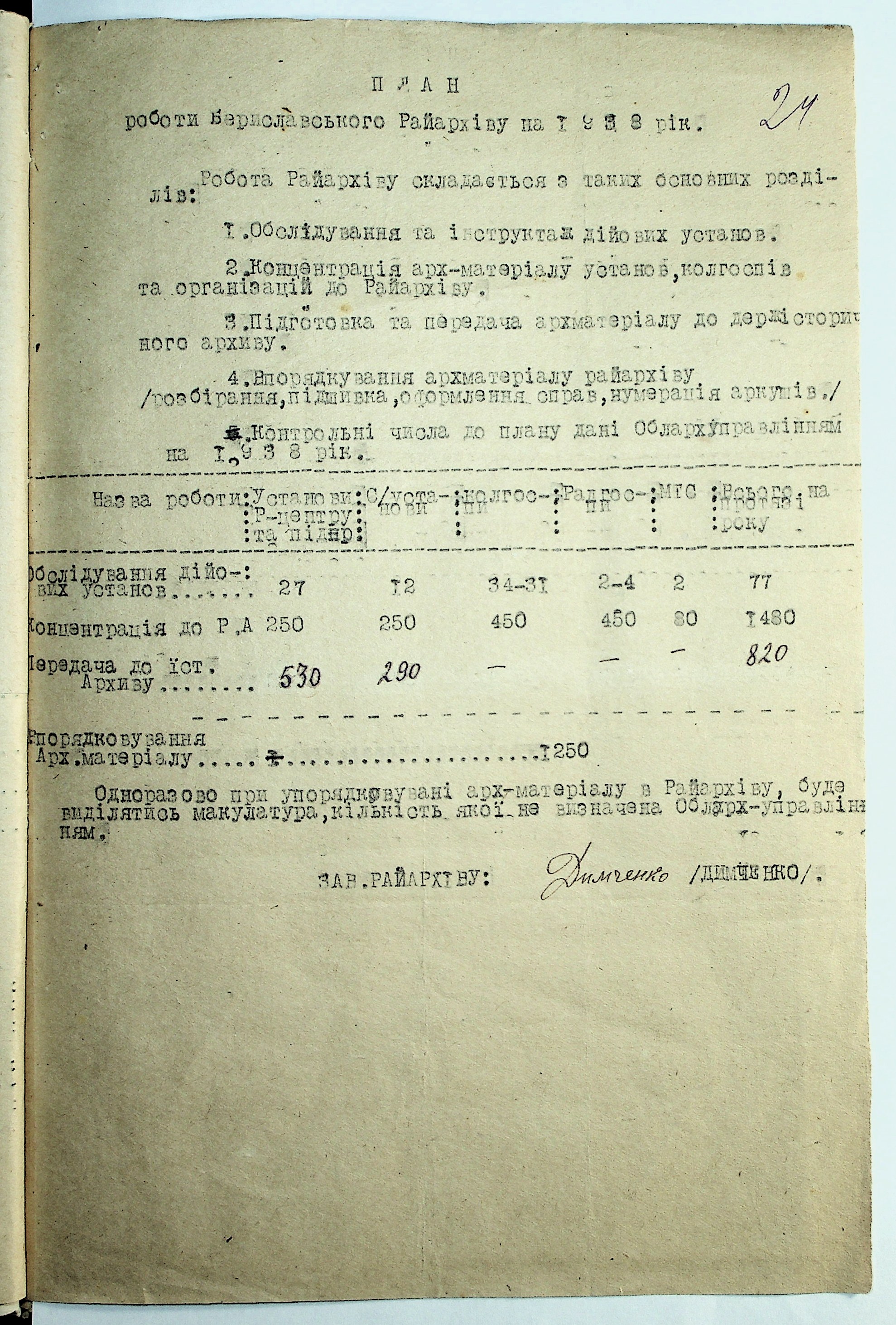 • • • • Справа № 30 “Документи (плани роботи, доповідні записки, витяг із протоколу, інформації, відомості, листування) про обстеження діючих установ – джерел комплектування архівними документами, їх впорядкування та приймання до райархівів, порядок описування та передачі до історичних архівів”