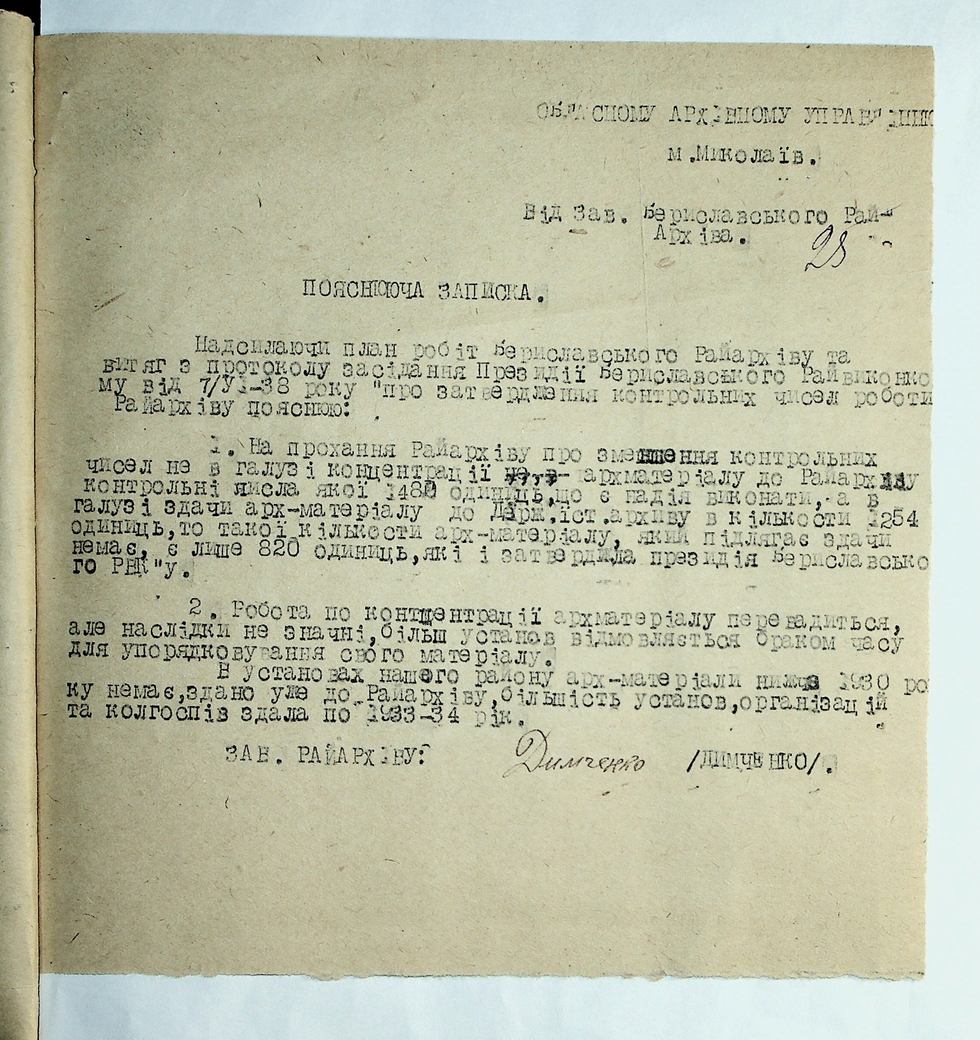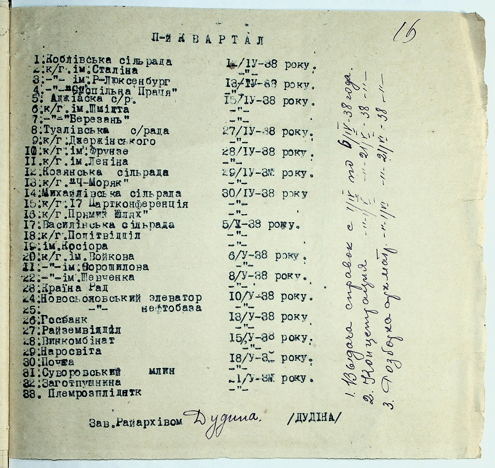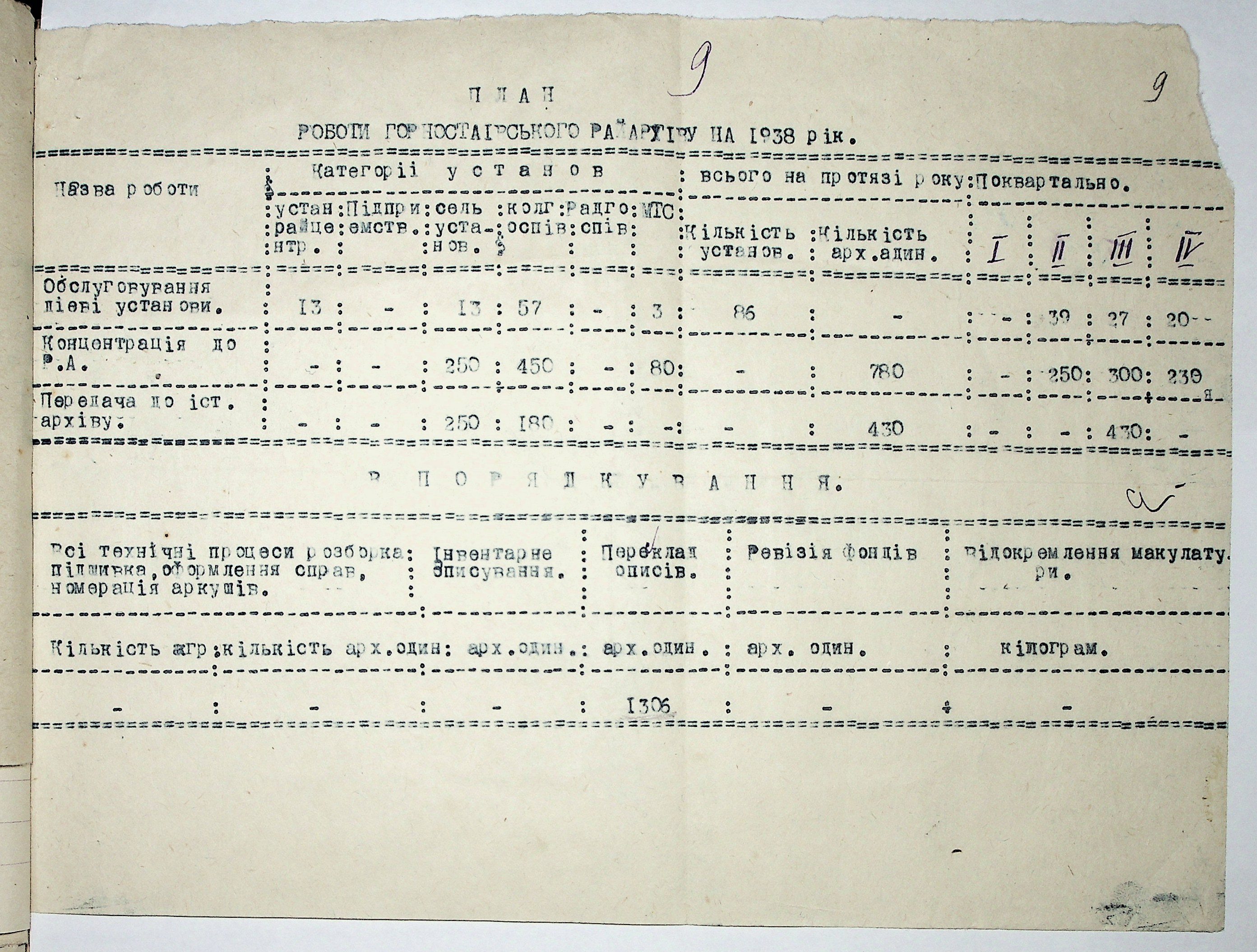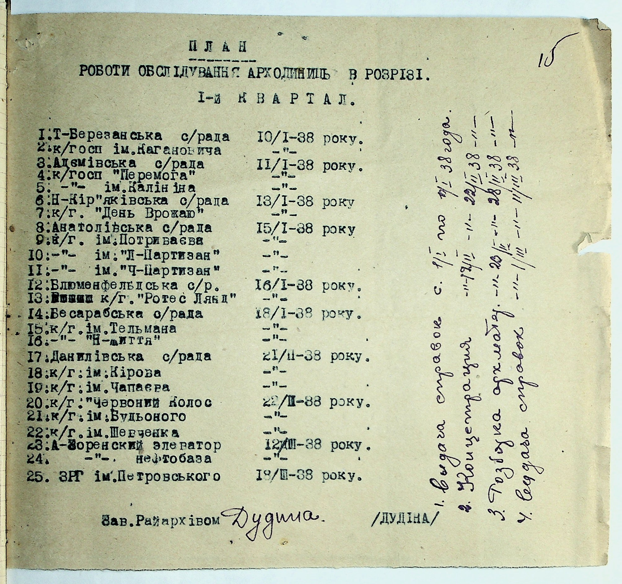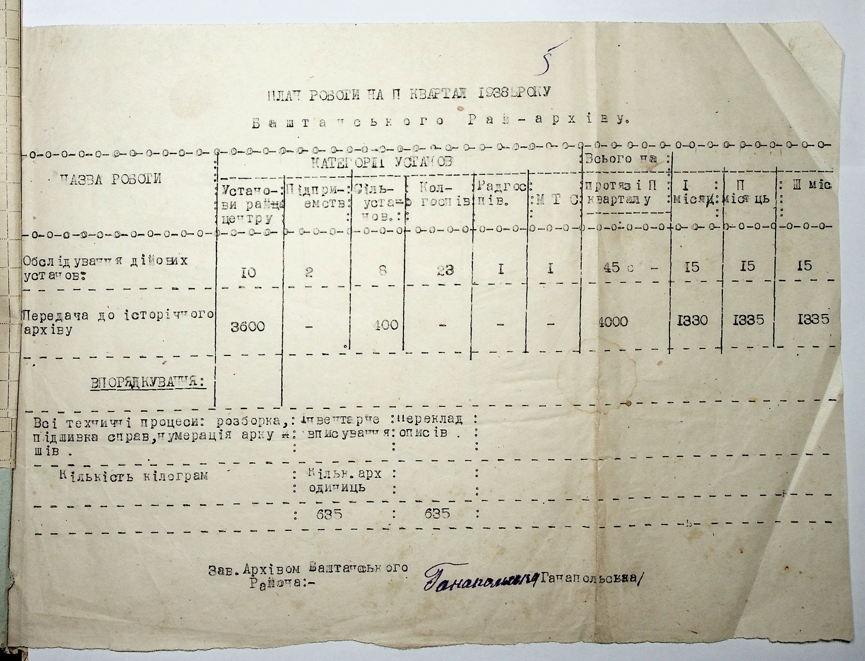 • • • • Справа № 30 “Документи (плани роботи, доповідні записки, витяг із протоколу, інформації, відомості, листування) про обстеження діючих установ – джерел комплектування архівними документами, їх впорядкування та приймання до райархівів, порядок описування та передачі до історичних архівів”