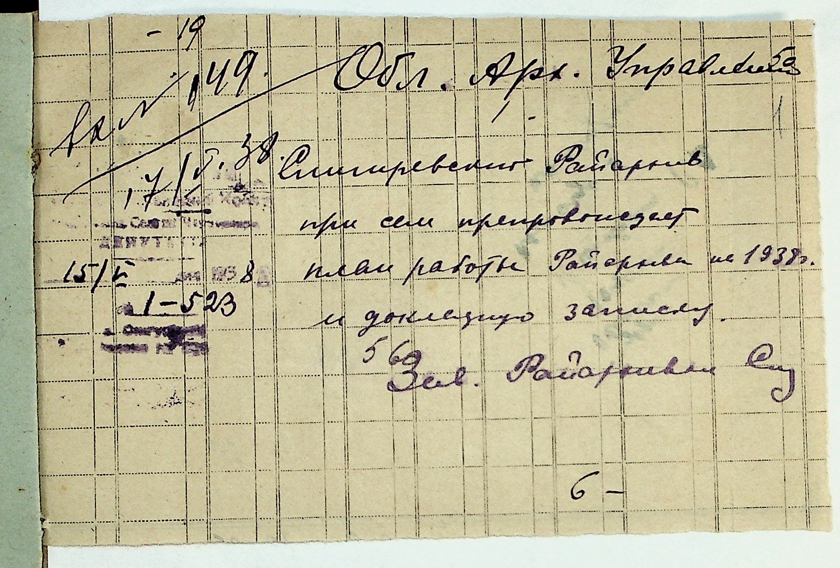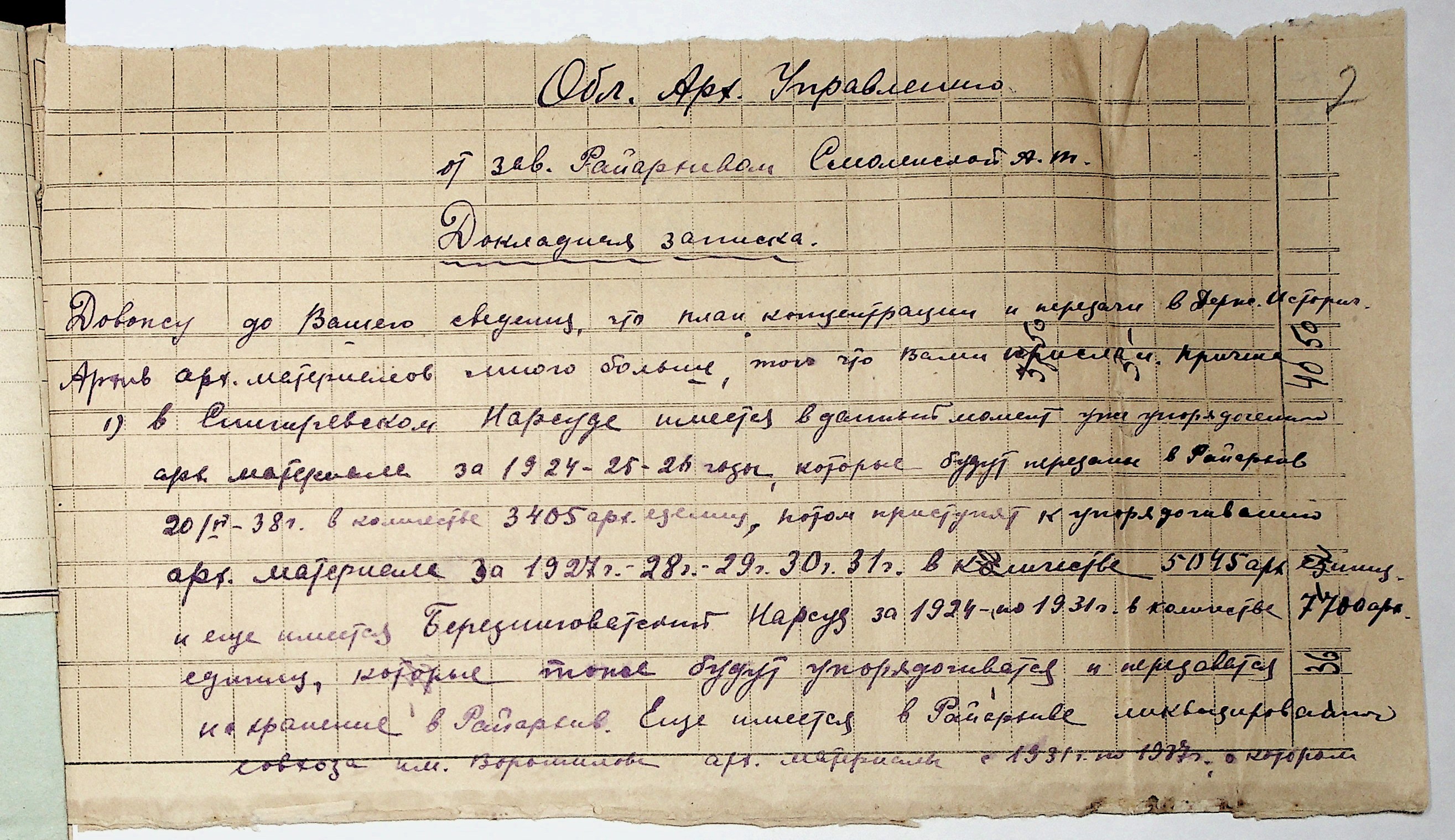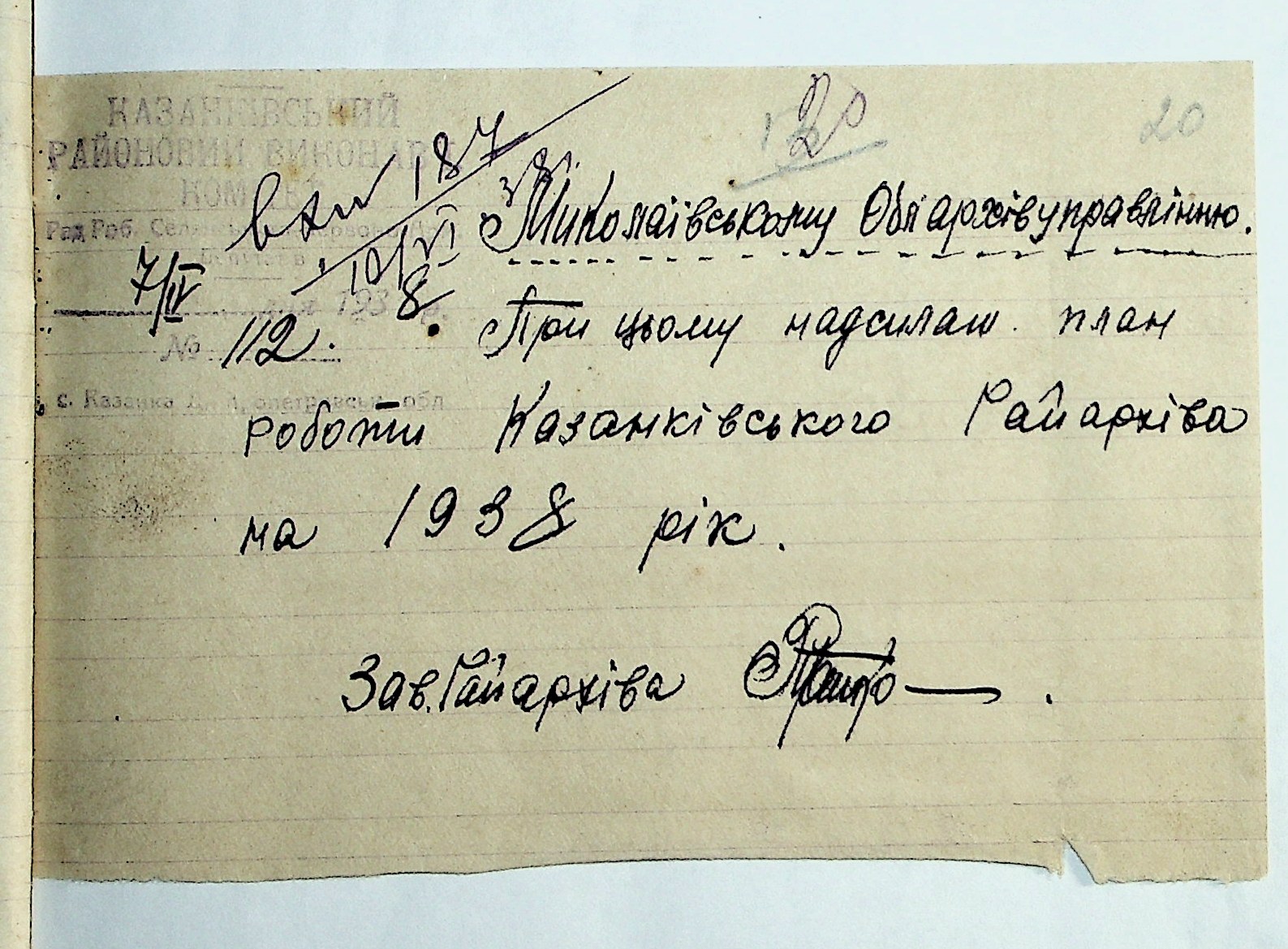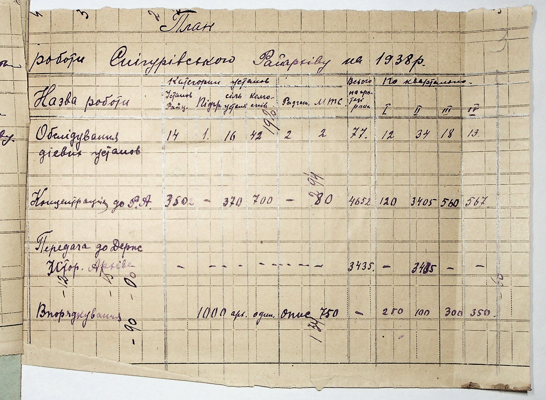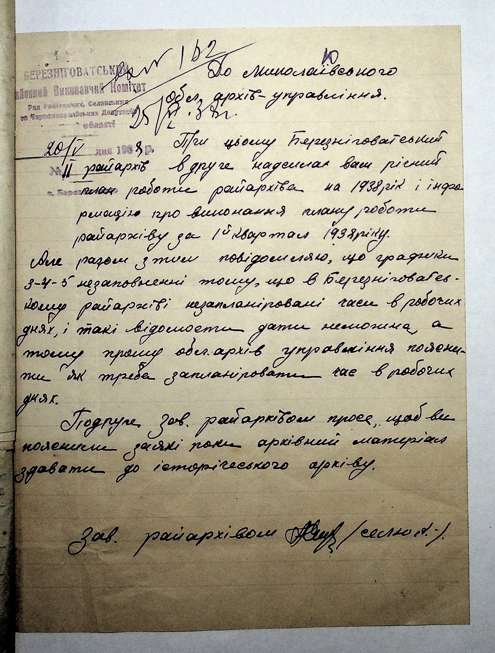 • • • • Справа № 30 “Документи (плани роботи, доповідні записки, витяг із протоколу, інформації, відомості, листування) про обстеження діючих установ – джерел комплектування архівними документами, їх впорядкування та приймання до райархівів, порядок описування та передачі до історичних архівів”