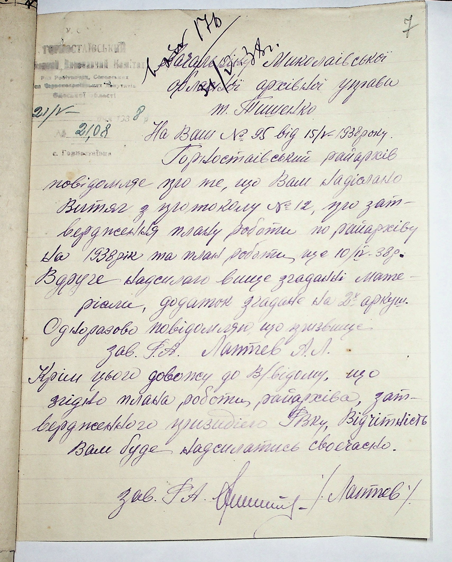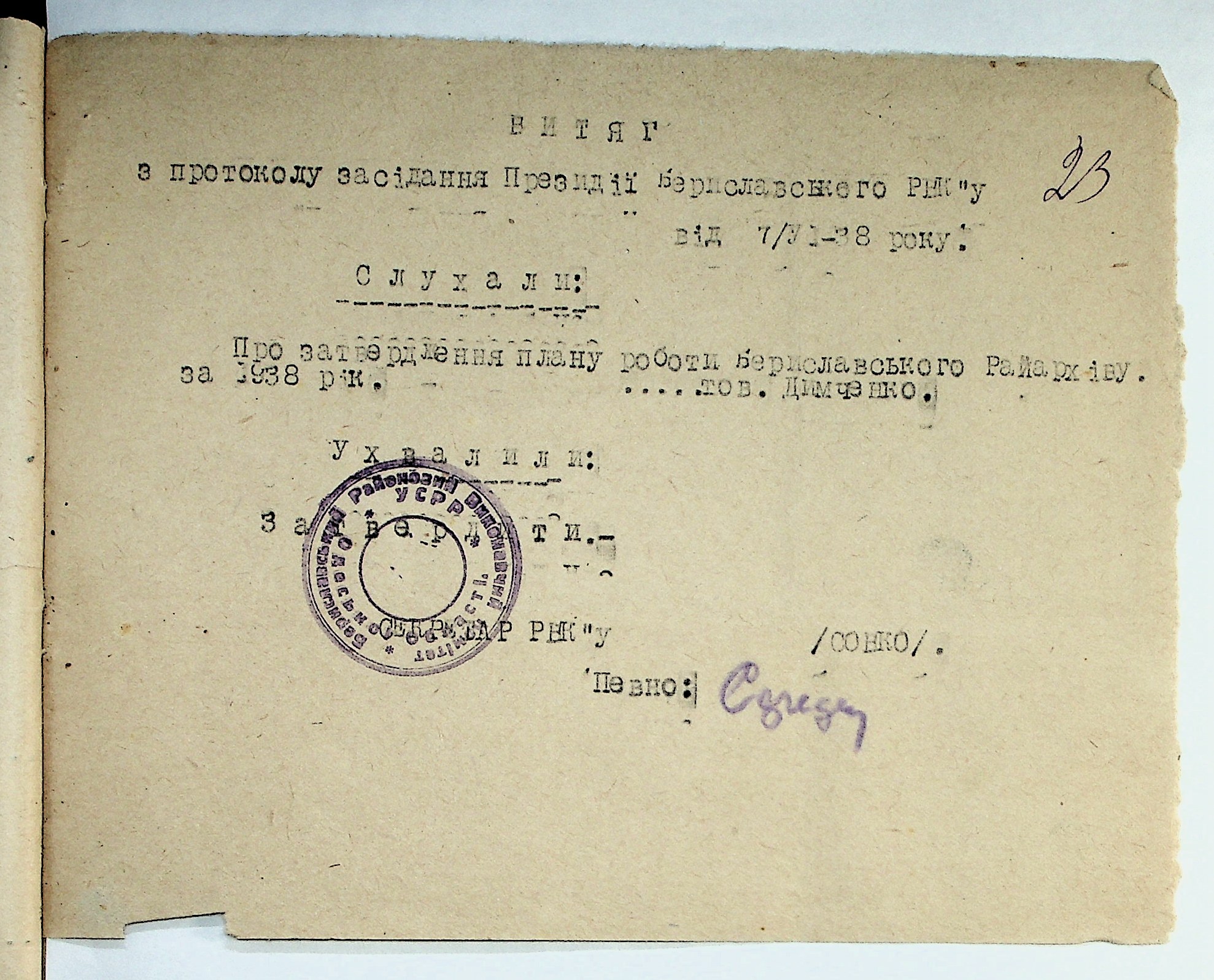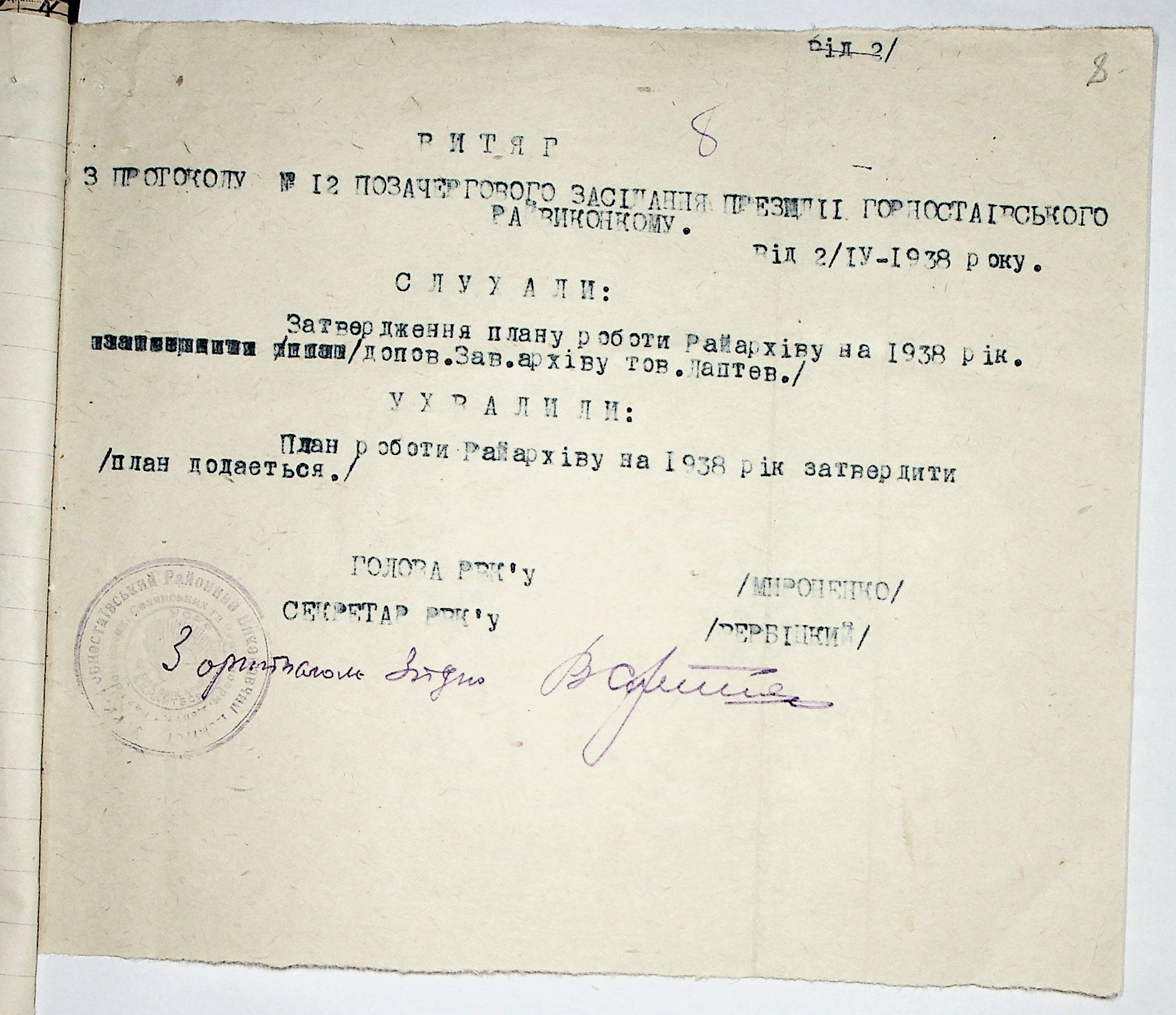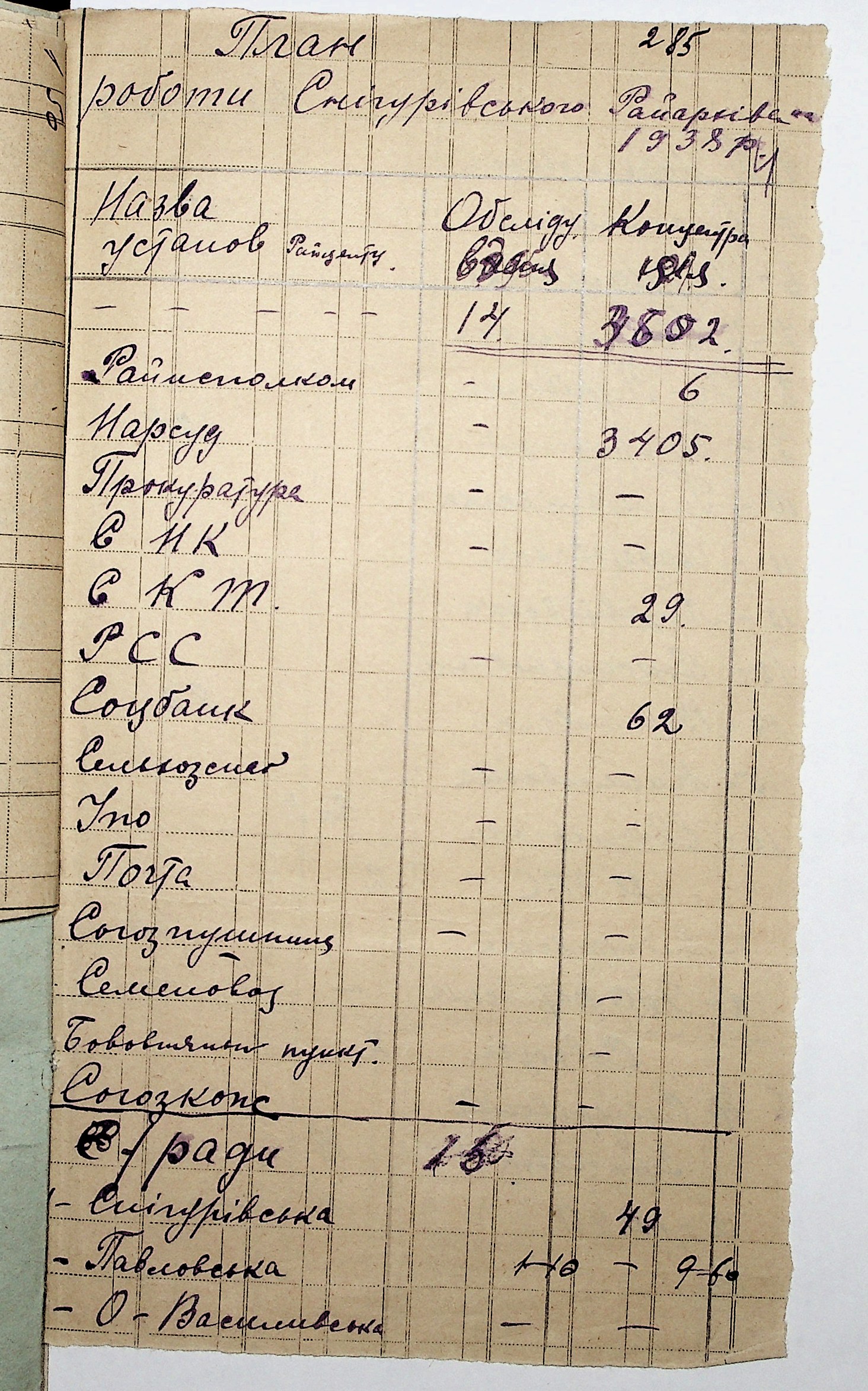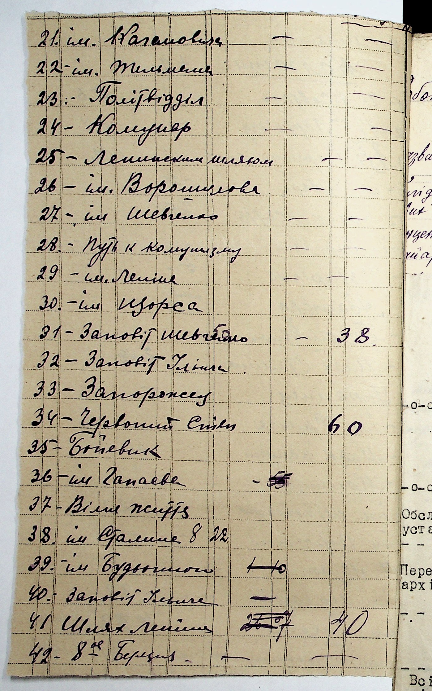 • • • • Справа № 30 “Документи (плани роботи, доповідні записки, витяг із протоколу, інформації, відомості, листування) про обстеження діючих установ – джерел комплектування архівними документами, їх впорядкування та приймання до райархівів, порядок описування та передачі до історичних архівів”