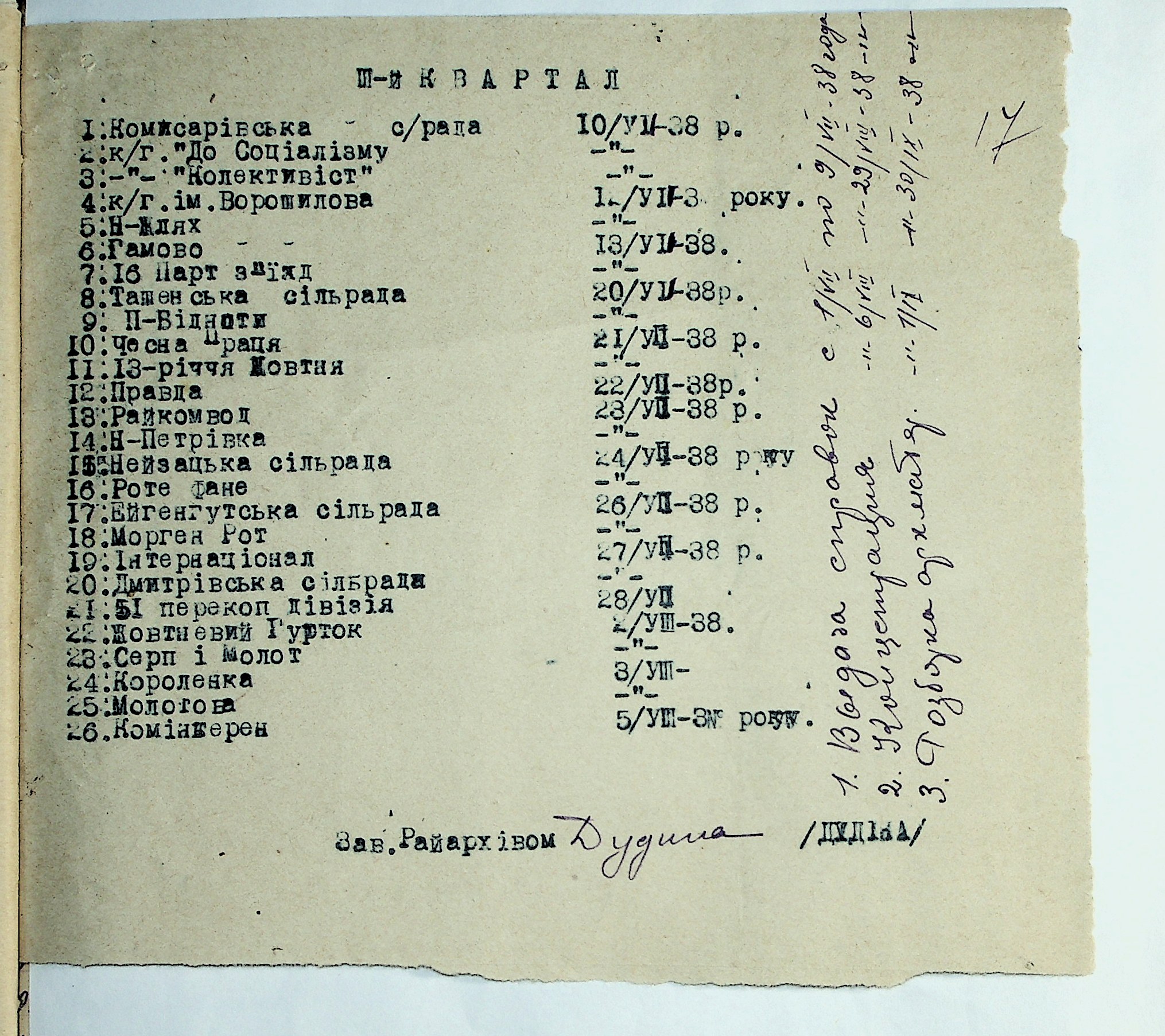 ◦ ◦ ◦ Опис № 1 справ постійного зберігання за 1938 – 1941 роки