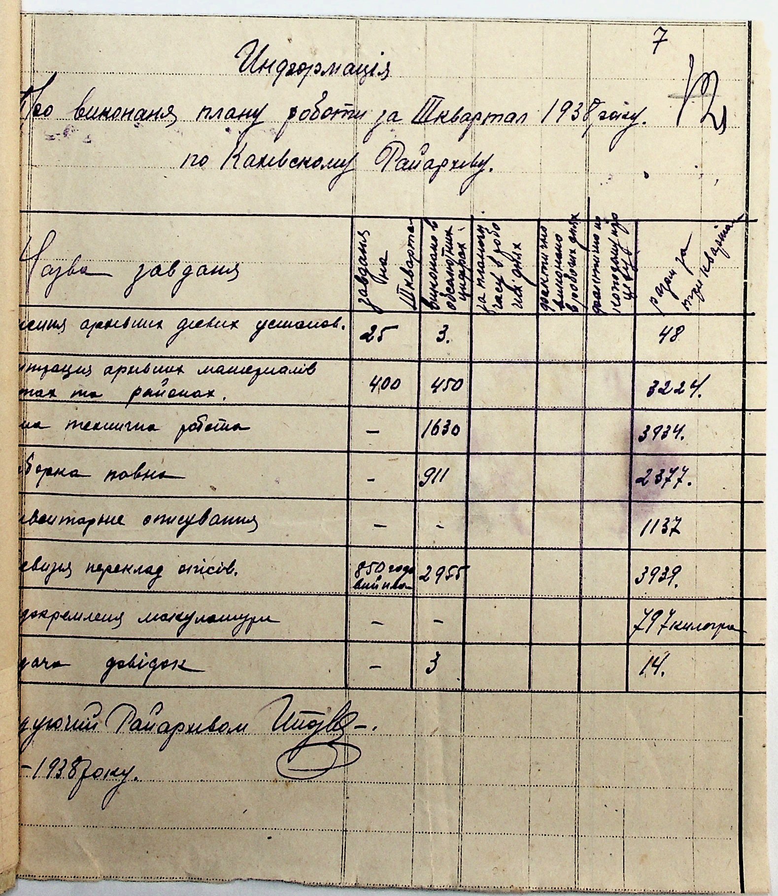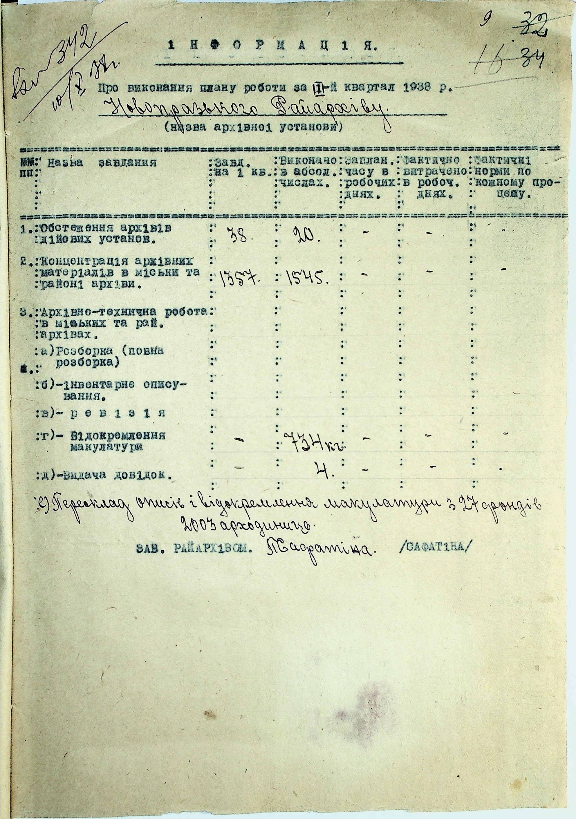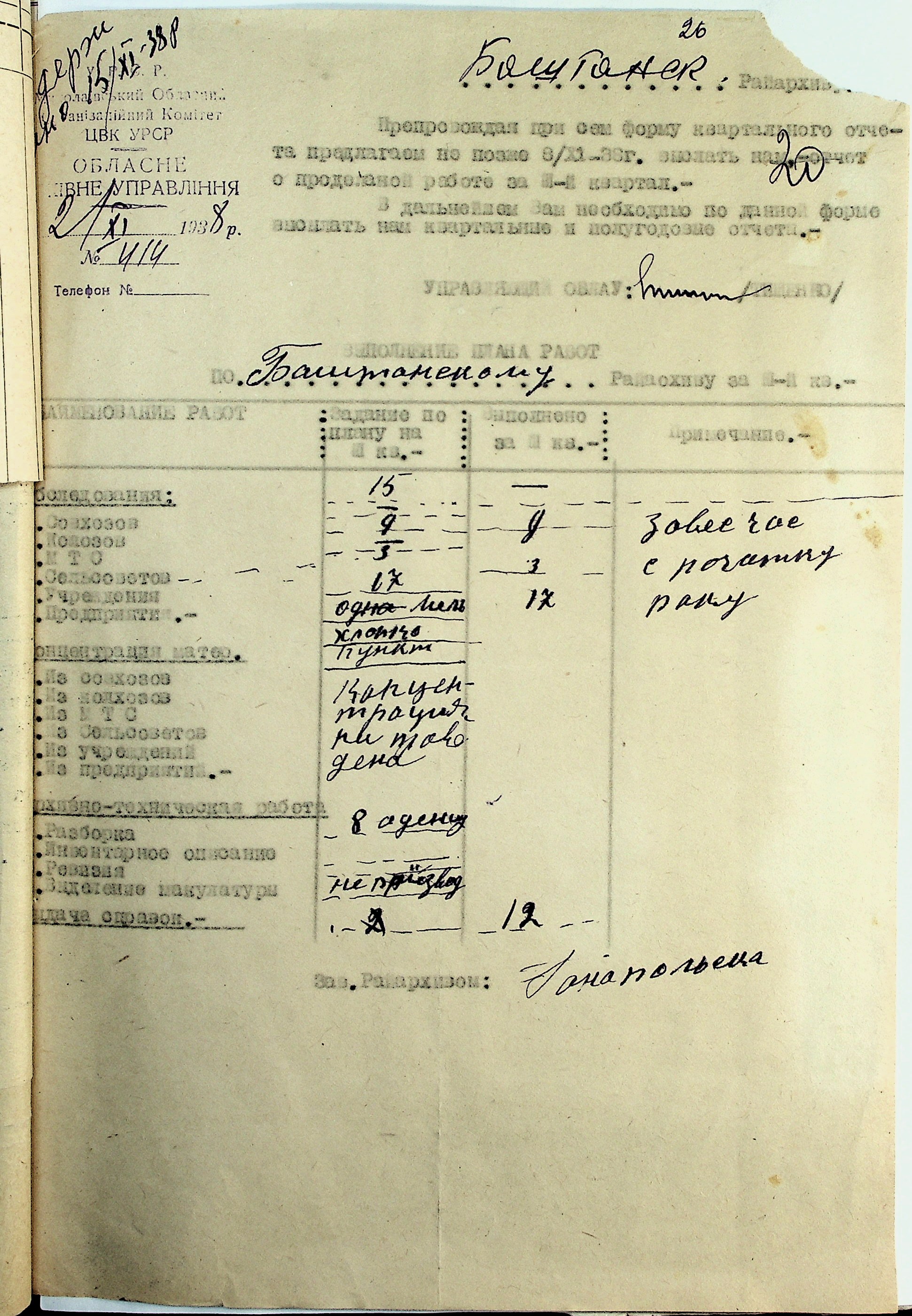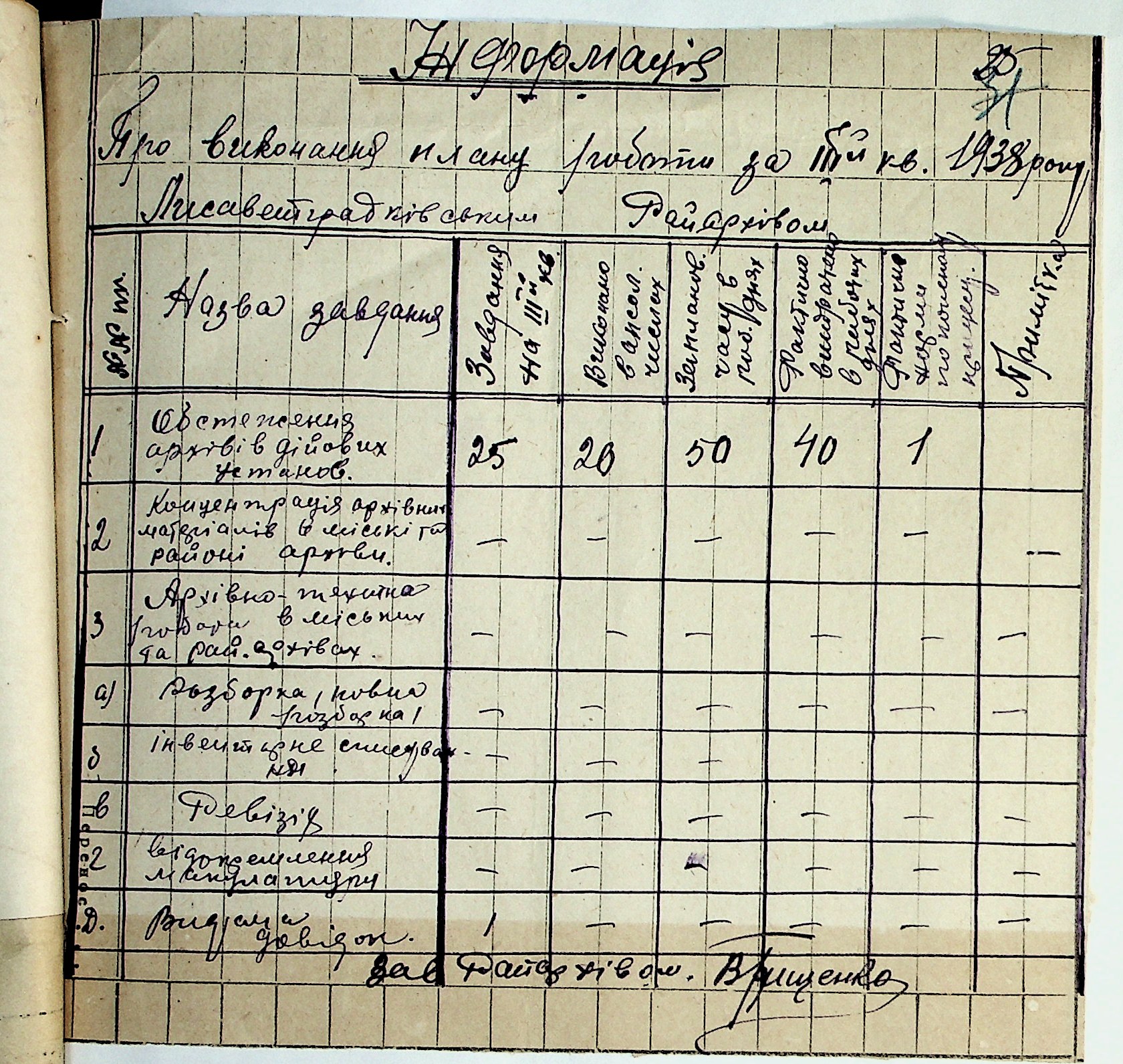 • • • • Справа № 31 “Документи (звіти, інформації, відомості, листування) про виконання планів роботи за ІІІ-й квартал 1938 р. районними архівами”