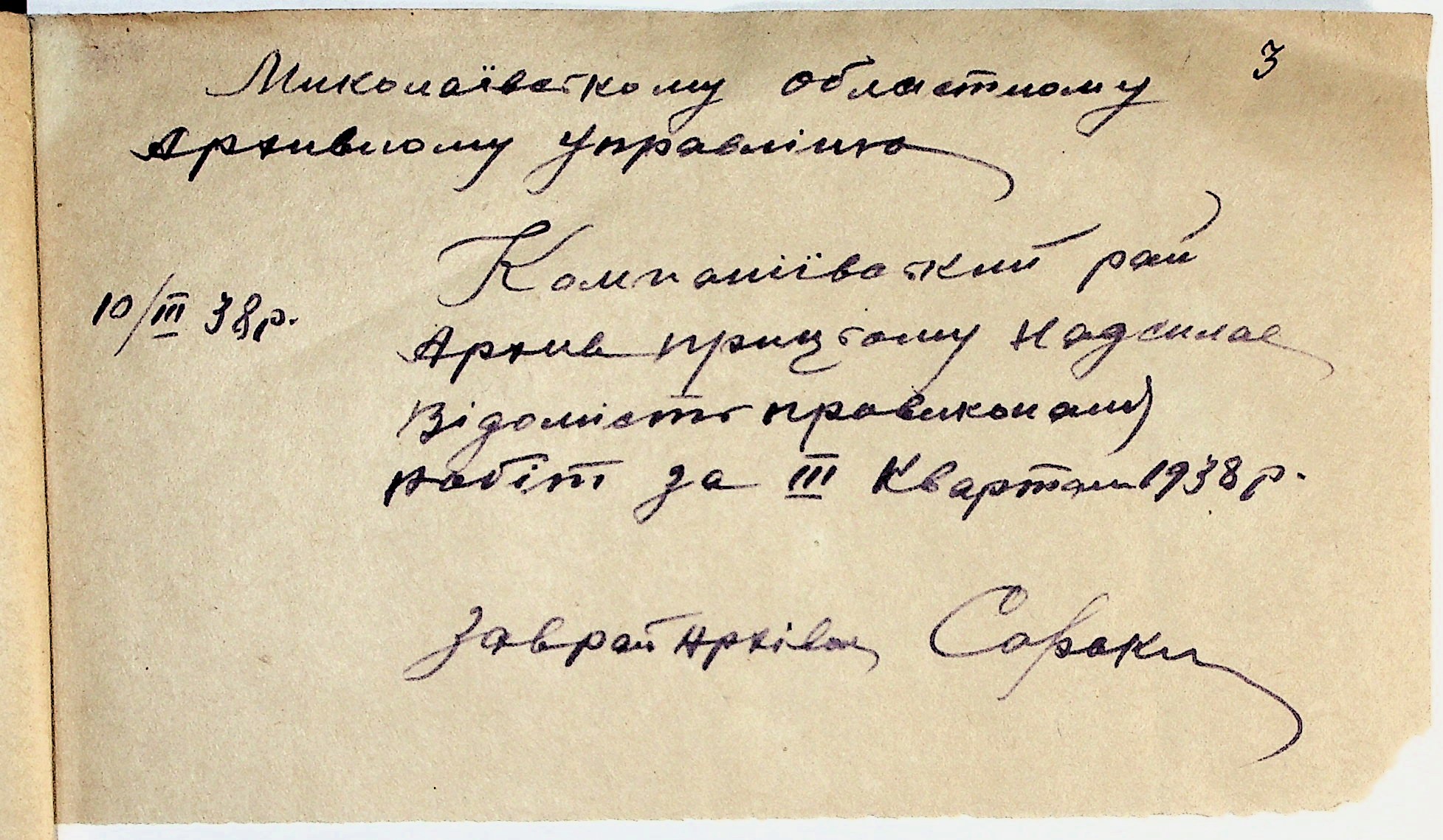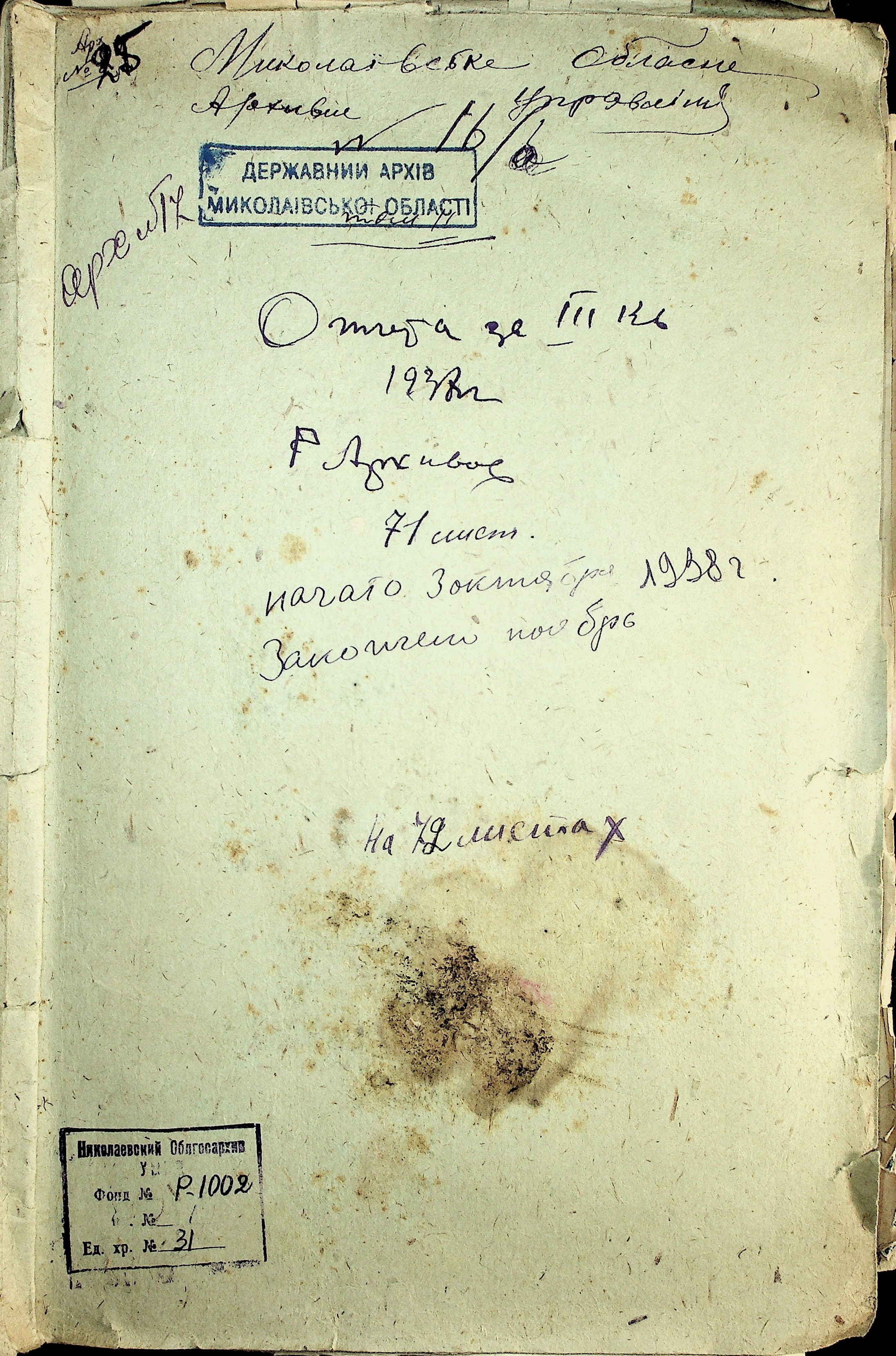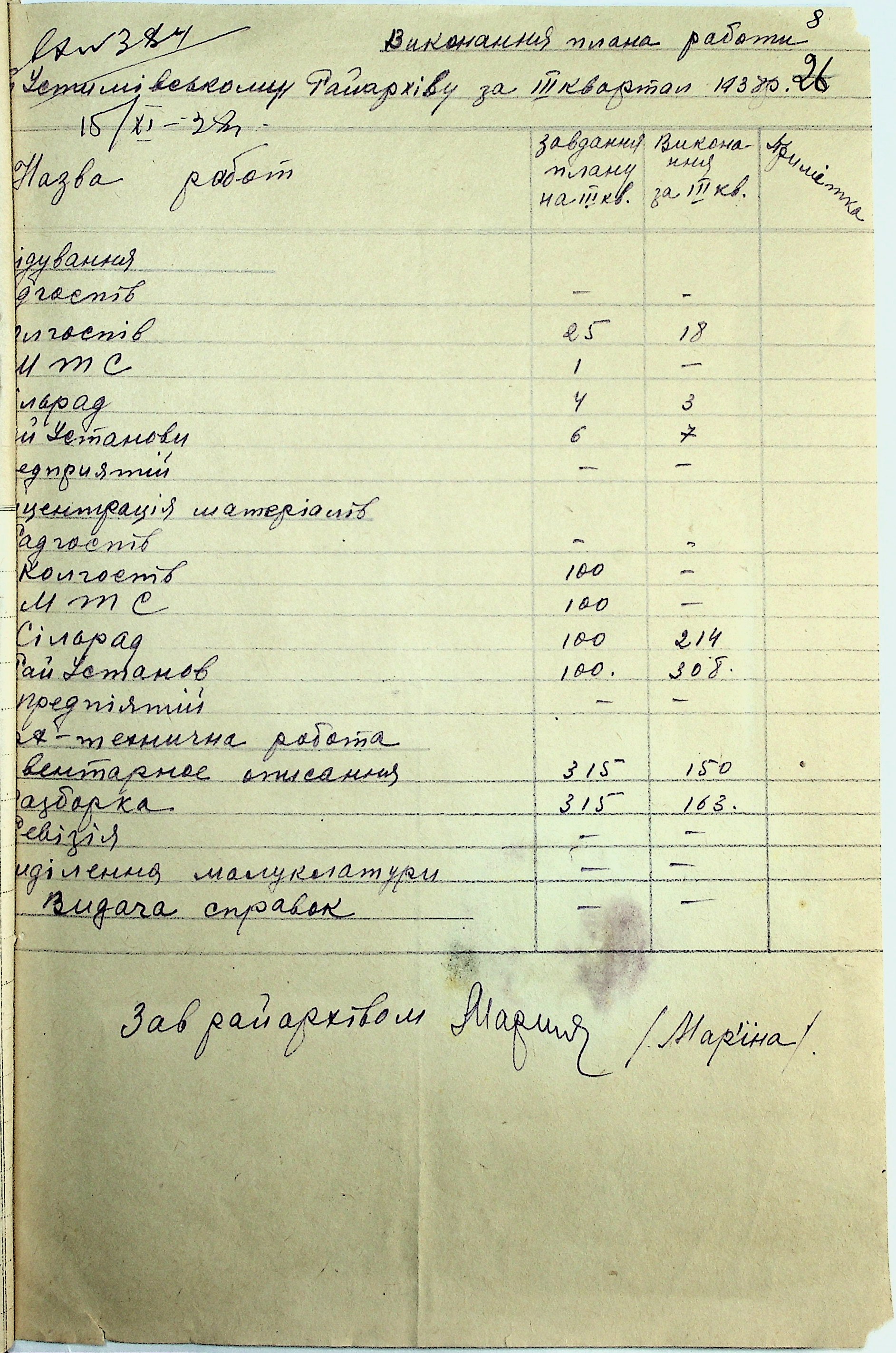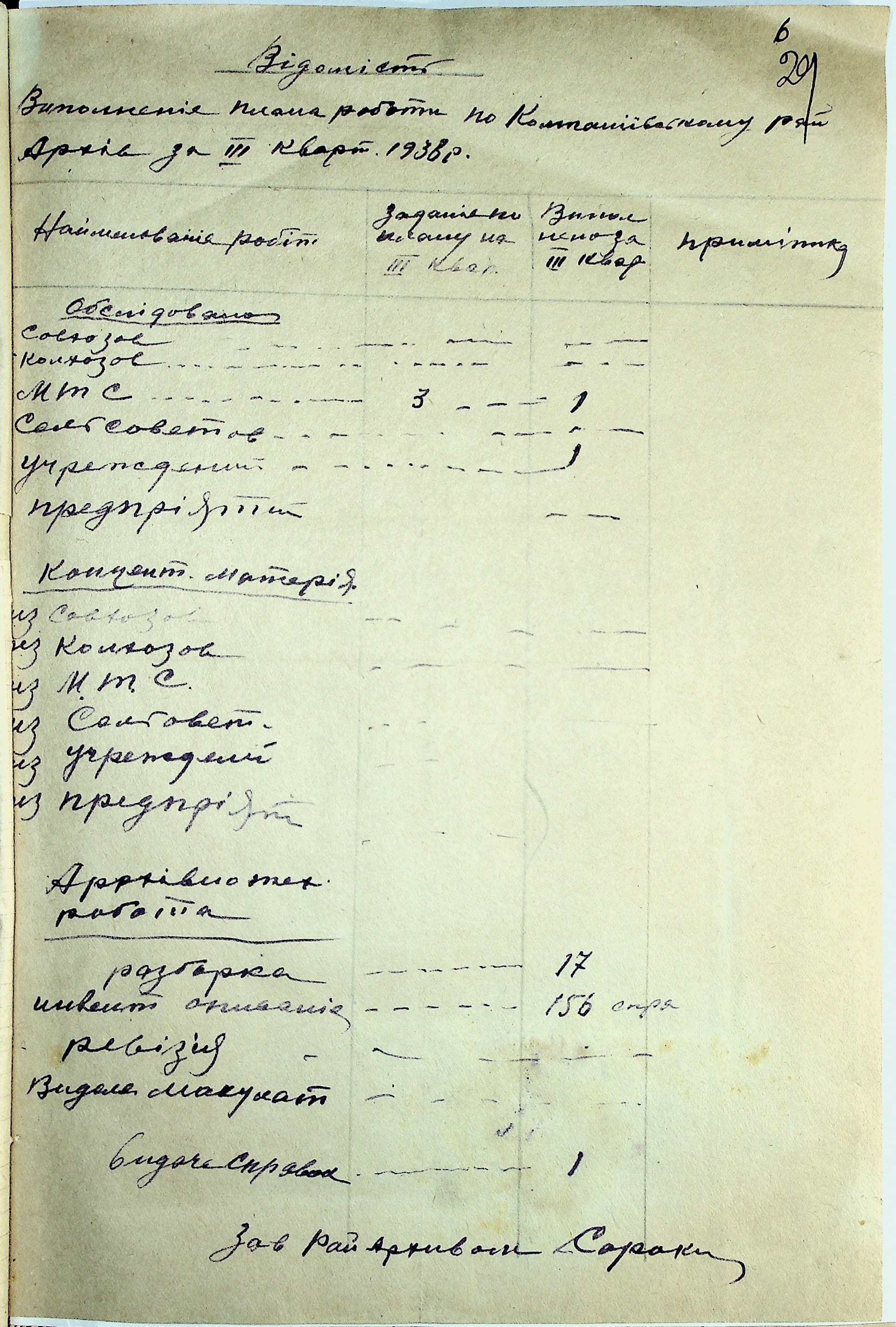 • • • • Справа № 31 “Документи (звіти, інформації, відомості, листування) про виконання планів роботи за ІІІ-й квартал 1938 р. районними архівами”