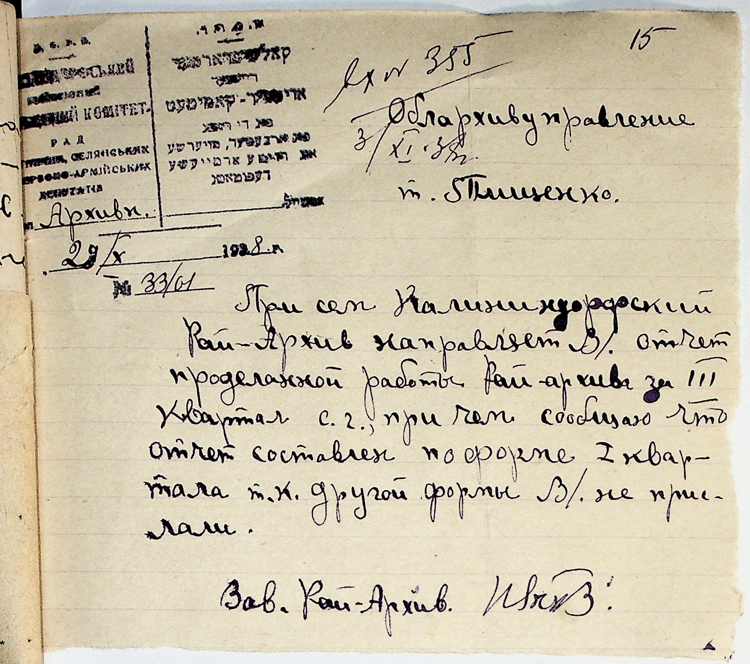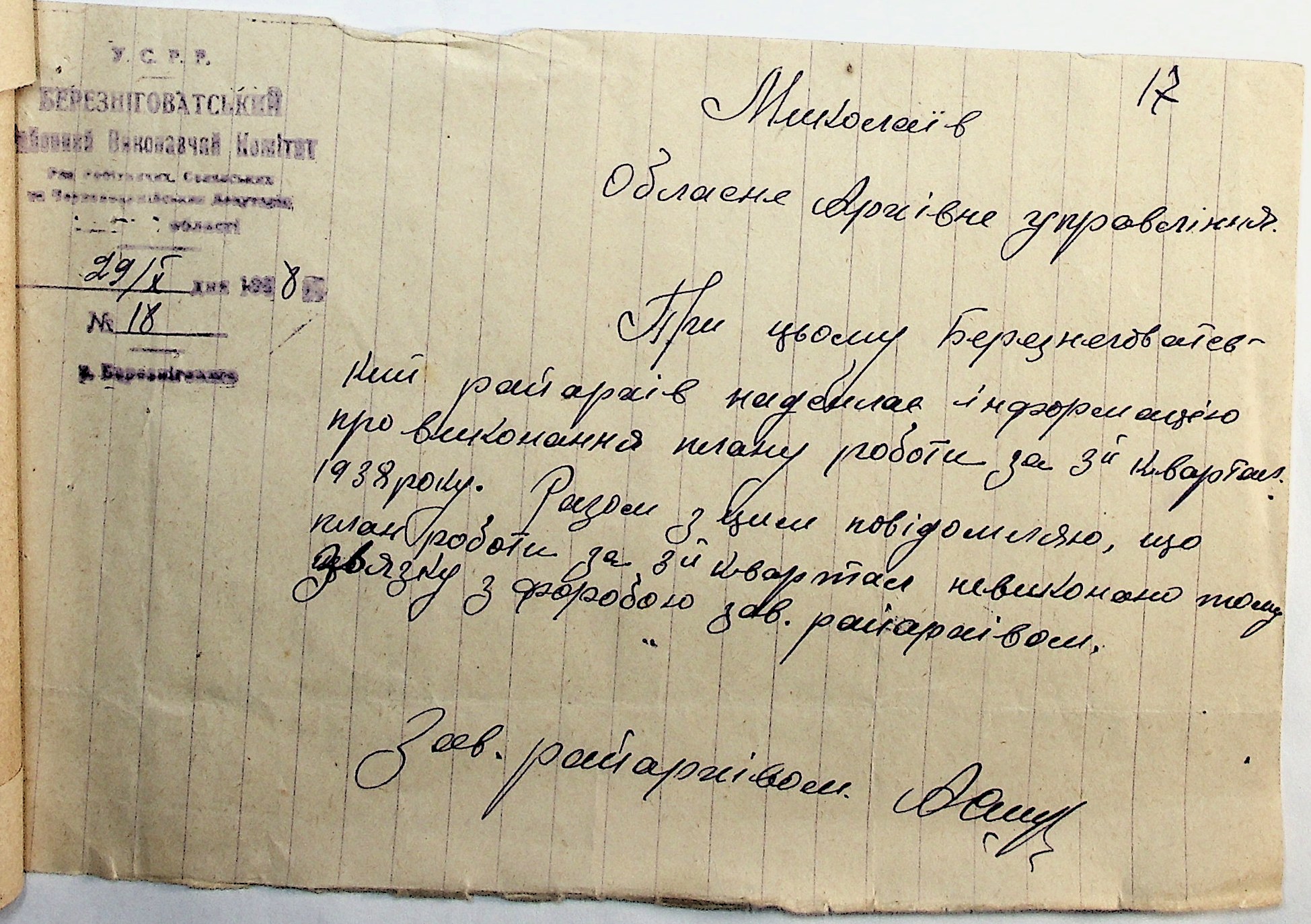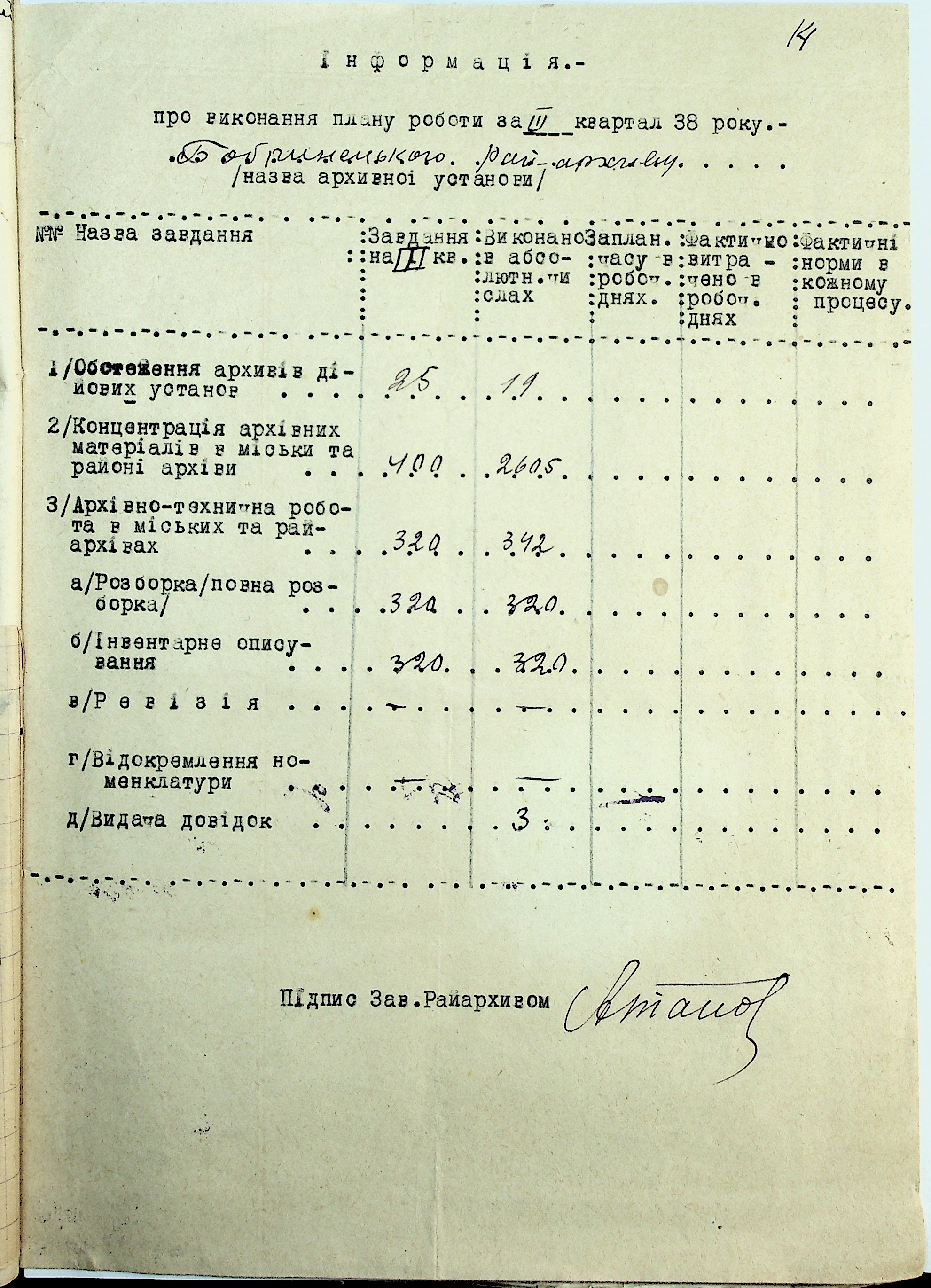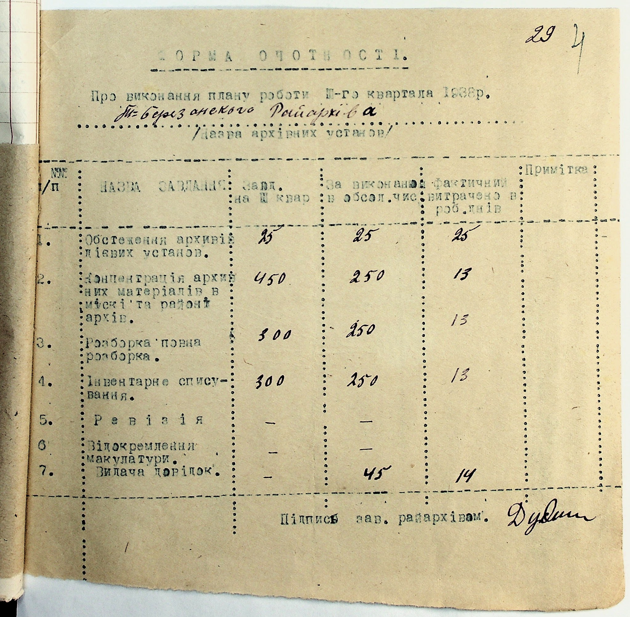 • • • • Справа № 31 “Документи (звіти, інформації, відомості, листування) про виконання планів роботи за ІІІ-й квартал 1938 р. районними архівами”