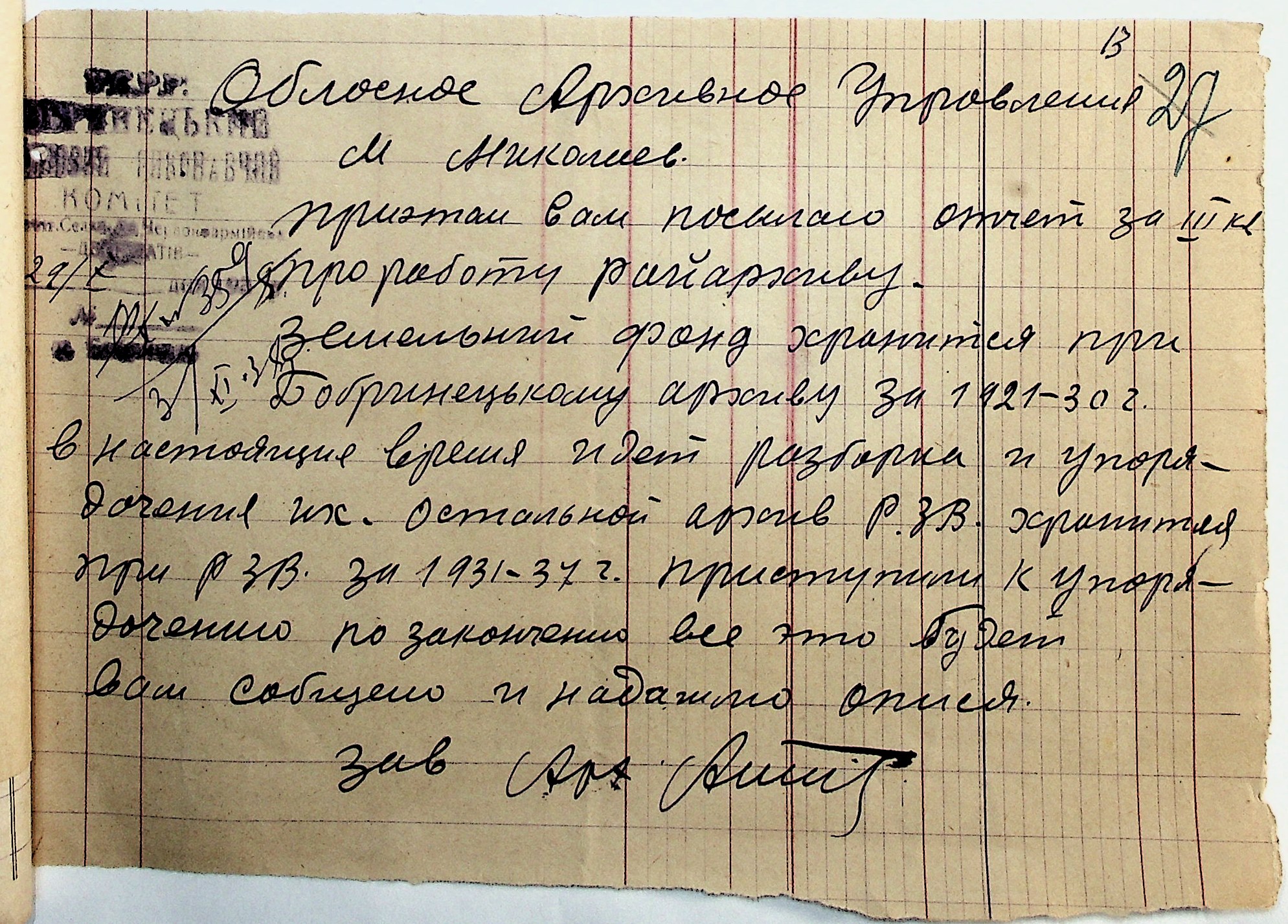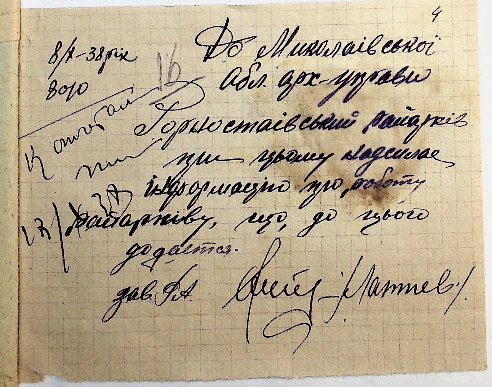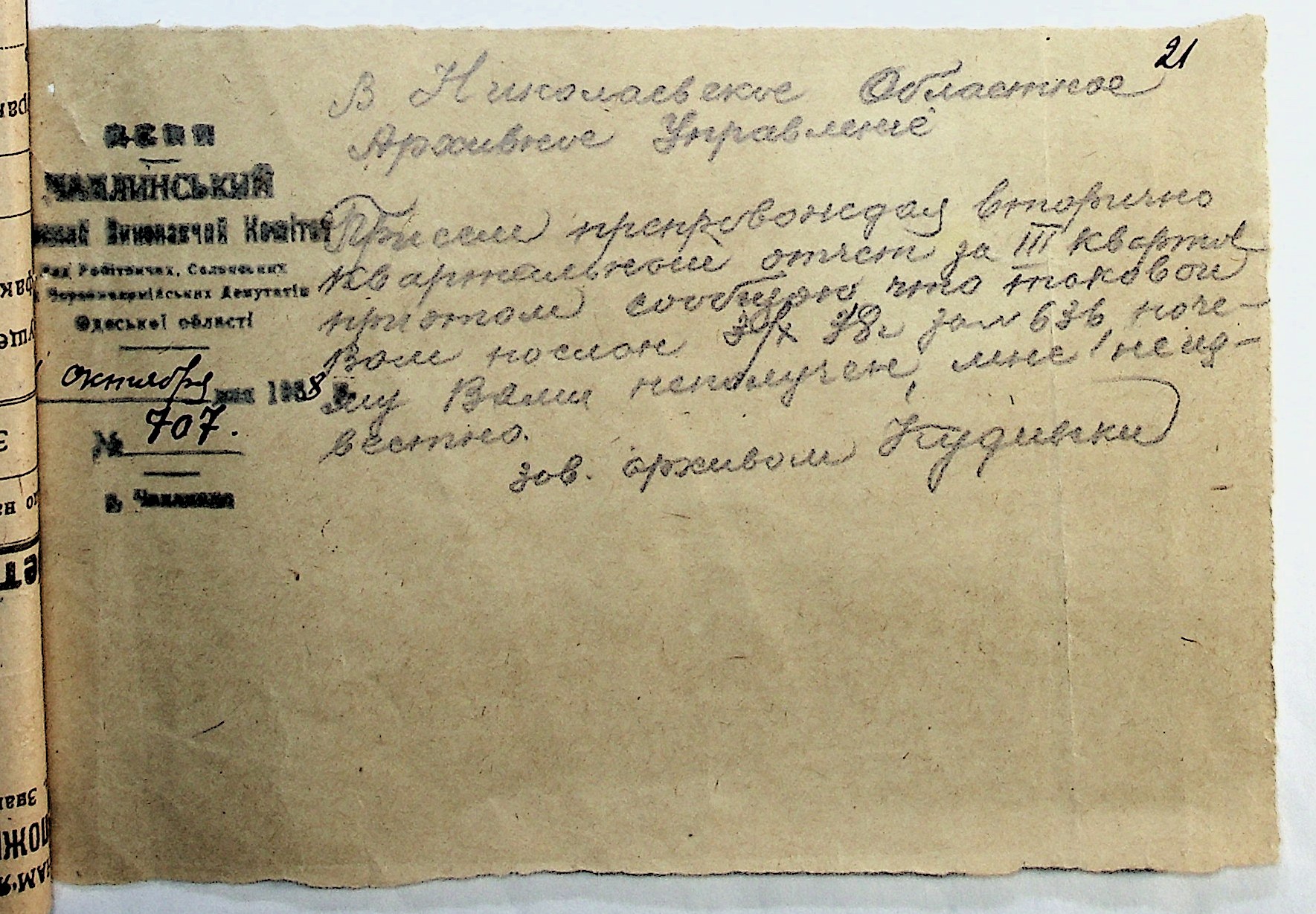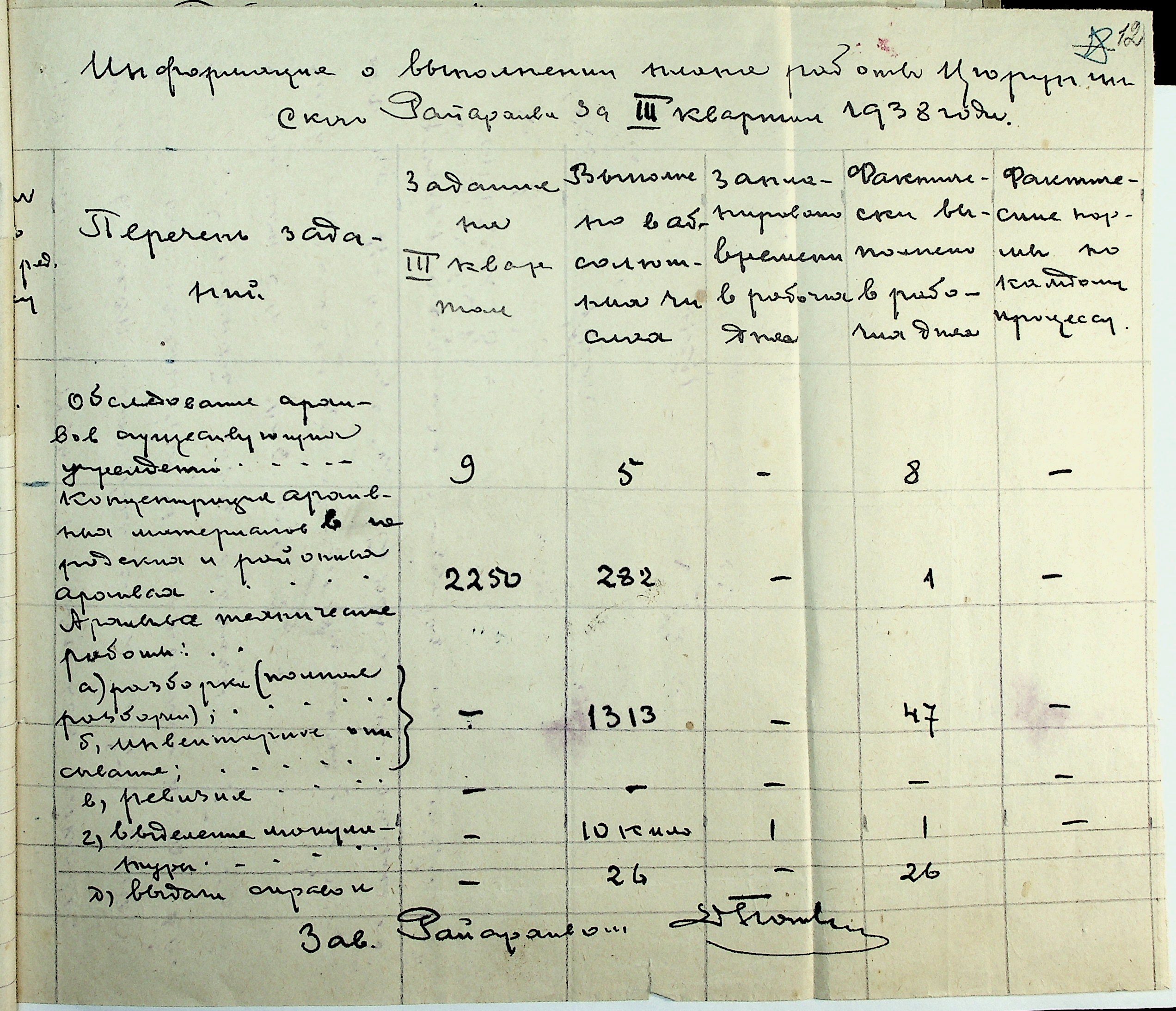 • • • • Справа № 31 “Документи (звіти, інформації, відомості, листування) про виконання планів роботи за ІІІ-й квартал 1938 р. районними архівами”